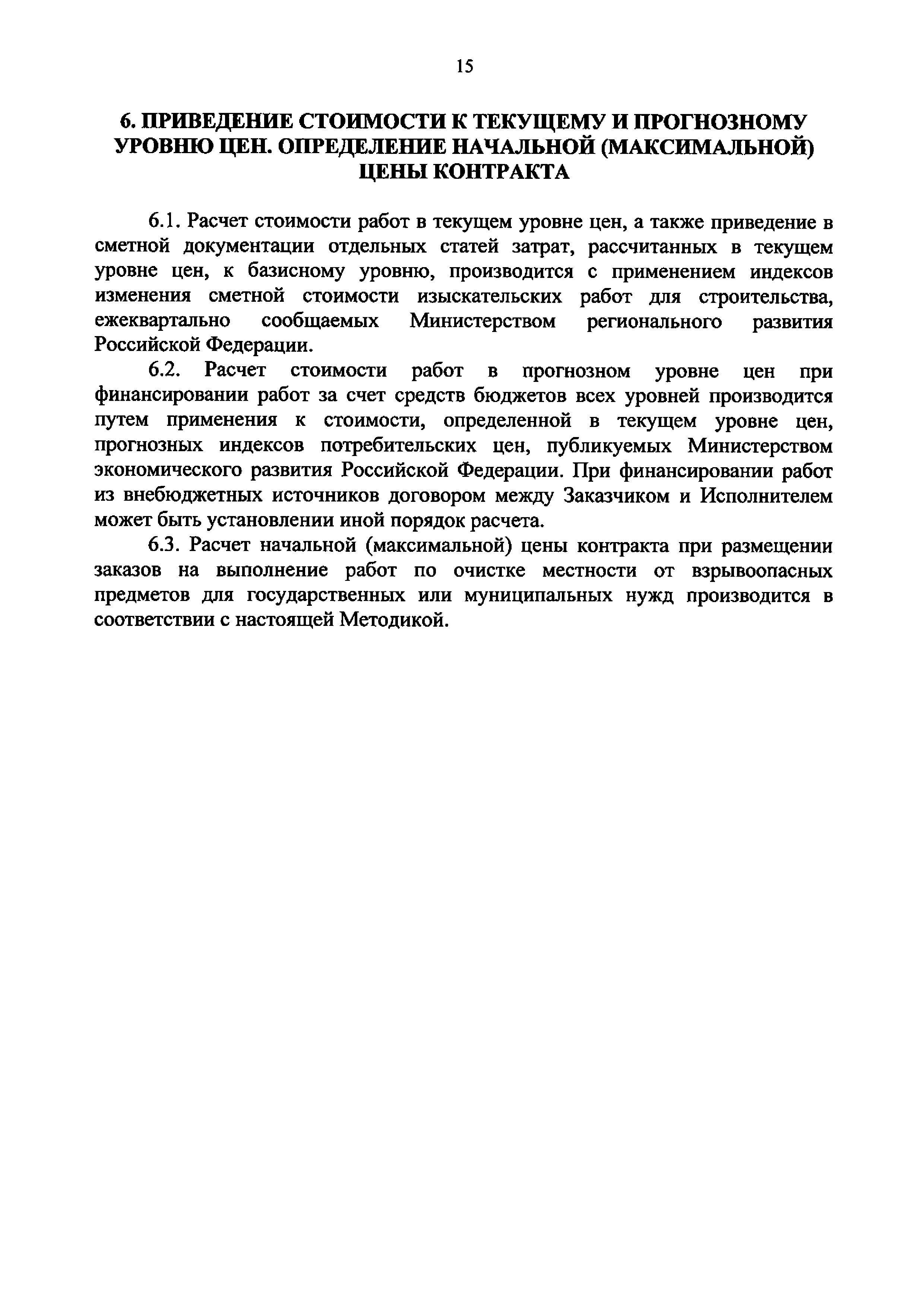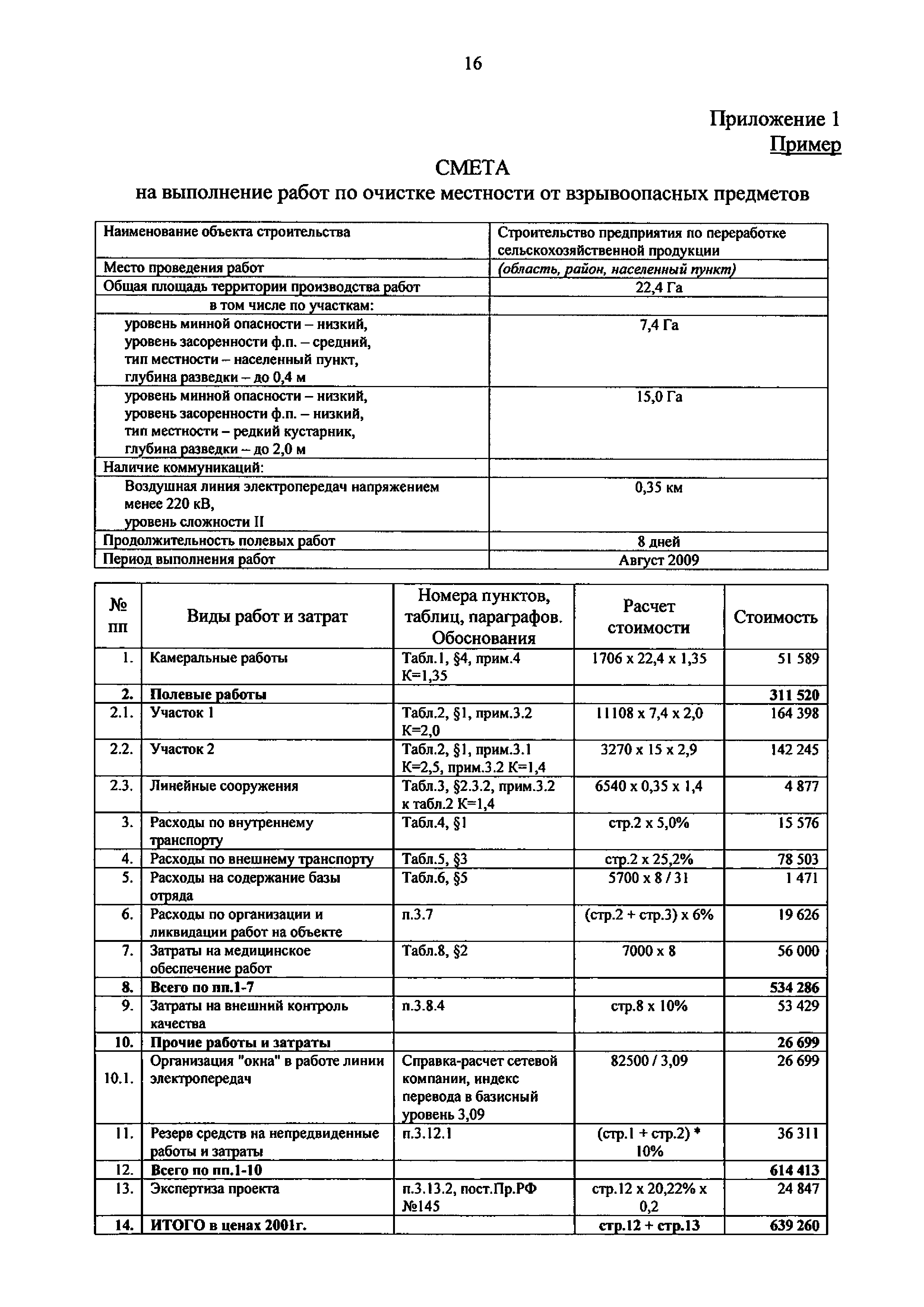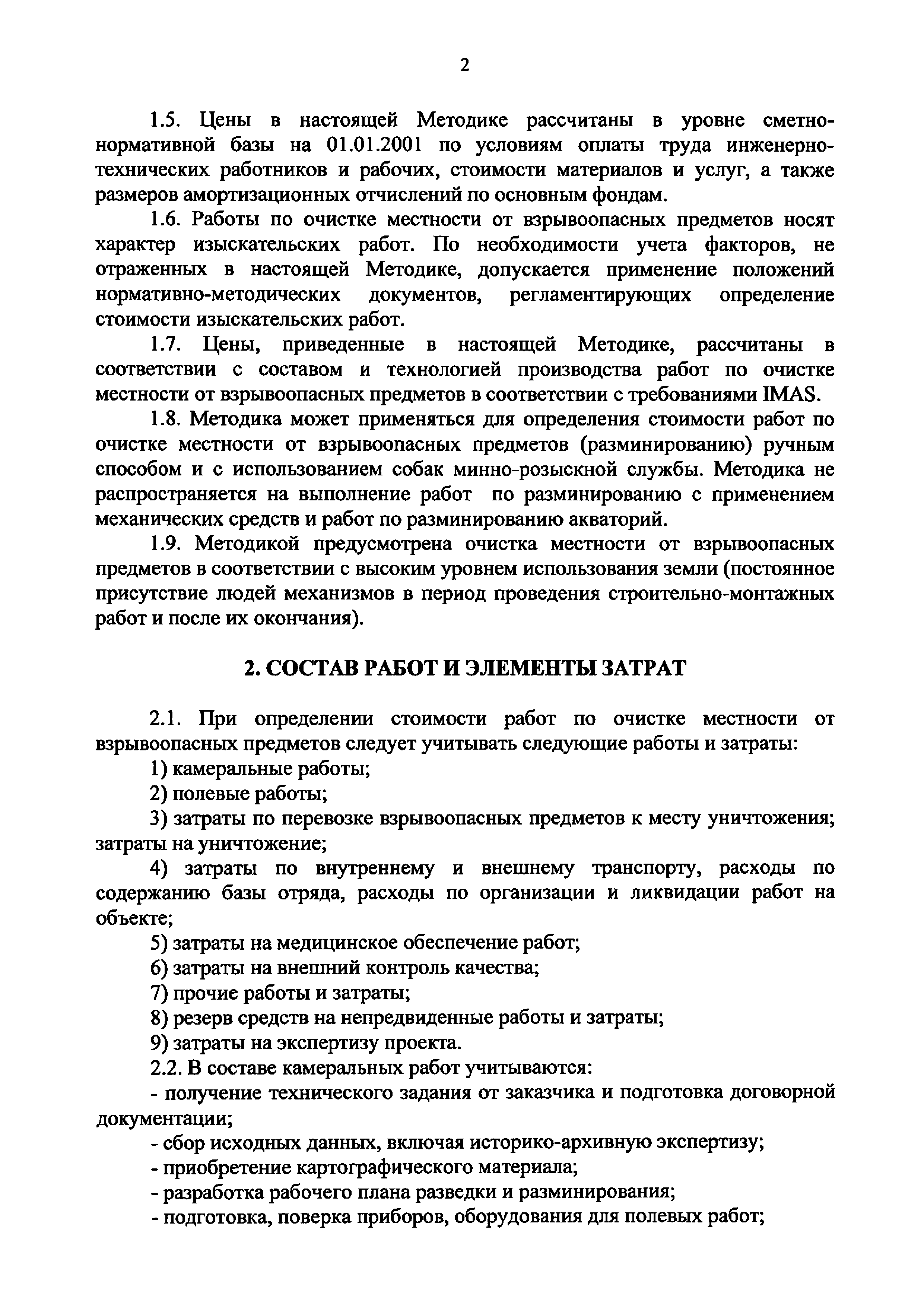| Оглавление: | 1. Общие положения 2. Состав работ и элементы затрат 3. Базовые цены на работы по очистке местности от взрывоопасных предметов 4. Определение объемов работ 5. Сметная документация 6. Приведение стоимости к текущему и прогнозному уровню цен. Определение начальной (максимальной) цены контракта Приложение 1 (Пример) Смета на выполнение работ по очистке местности от взрывоопасных предметов Приложение 2 Примерный перечень работ по внешнему контролю качества Приложение 3 Термины и определения |