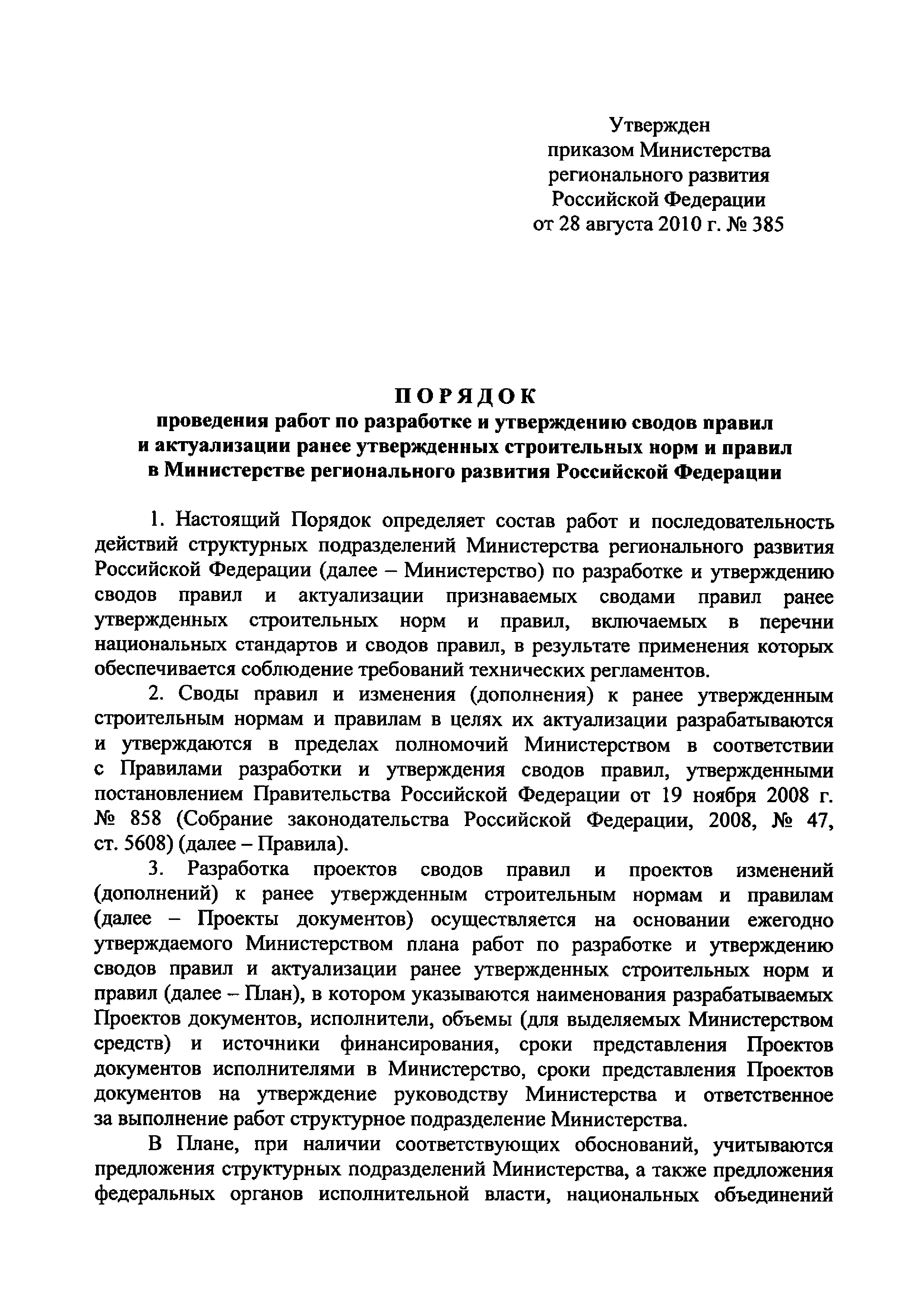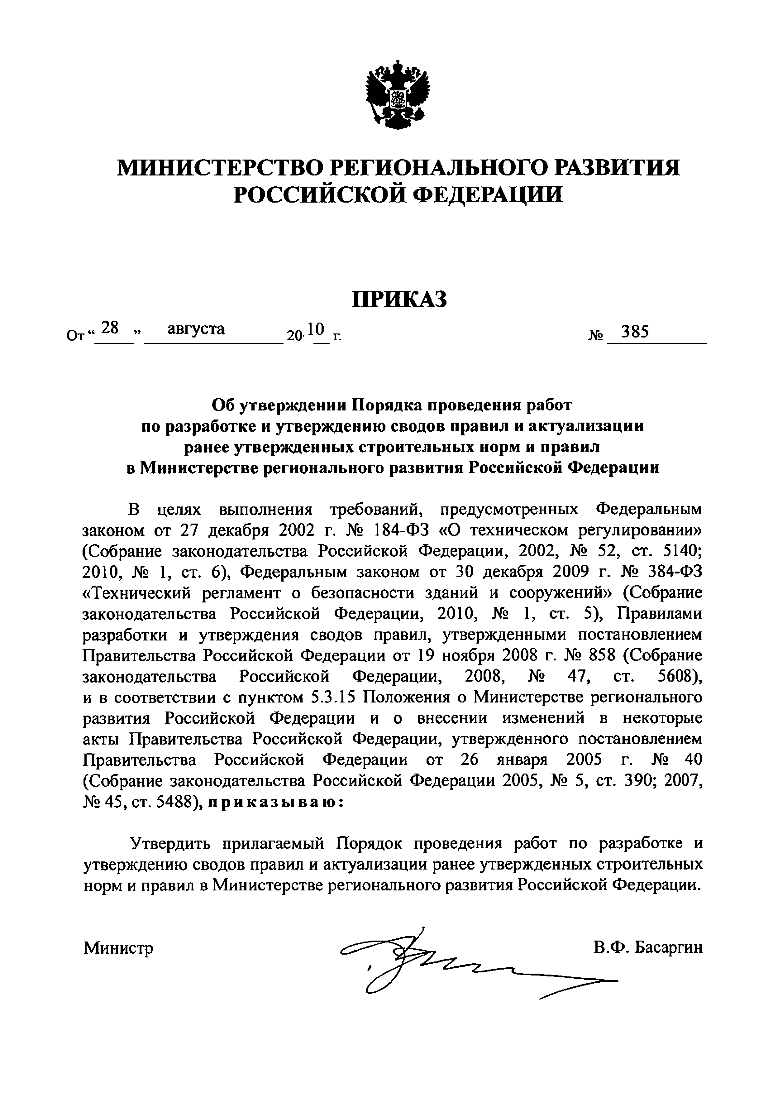 | Утверждён: | 28.08.2010 Минрегион России (385)