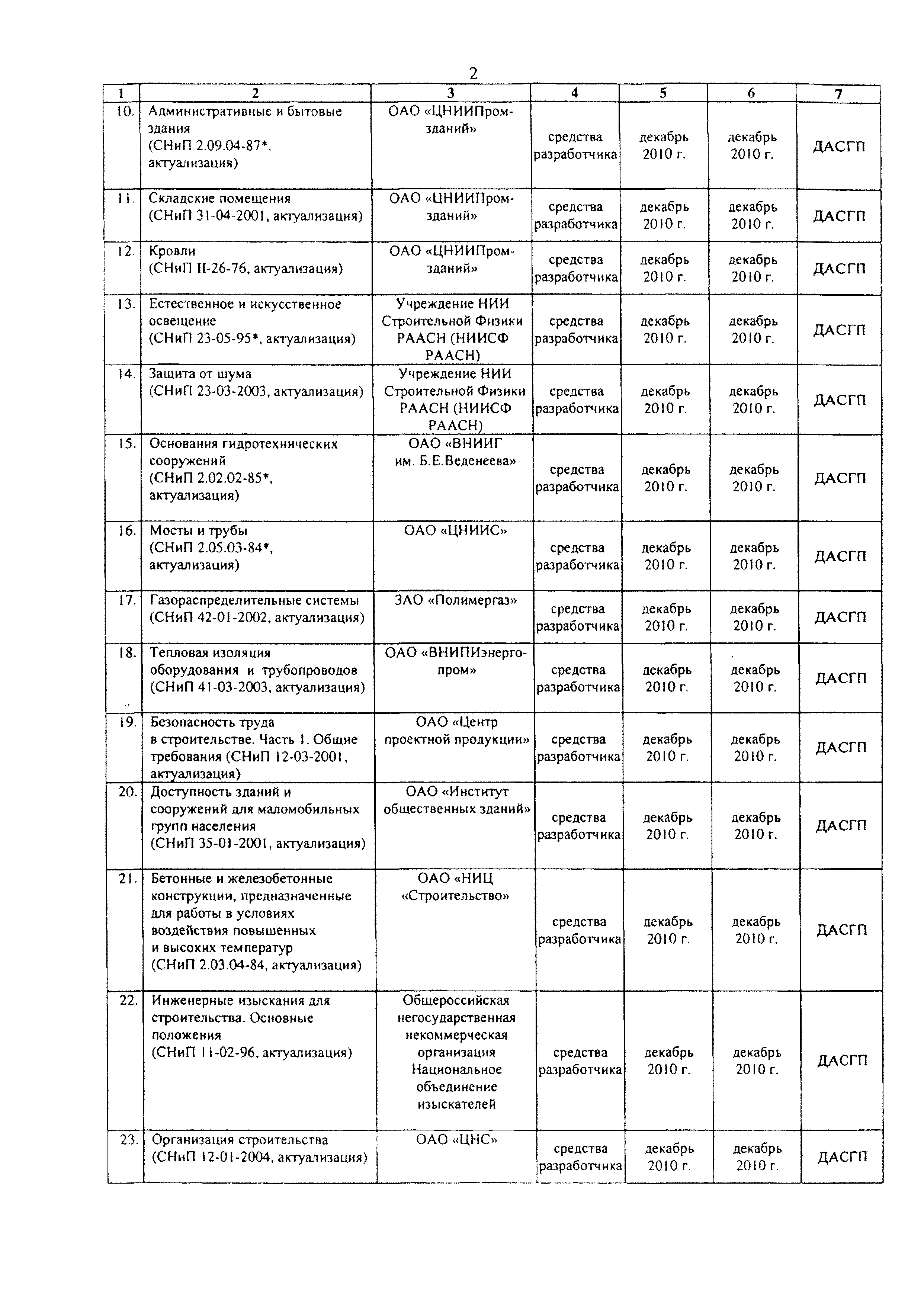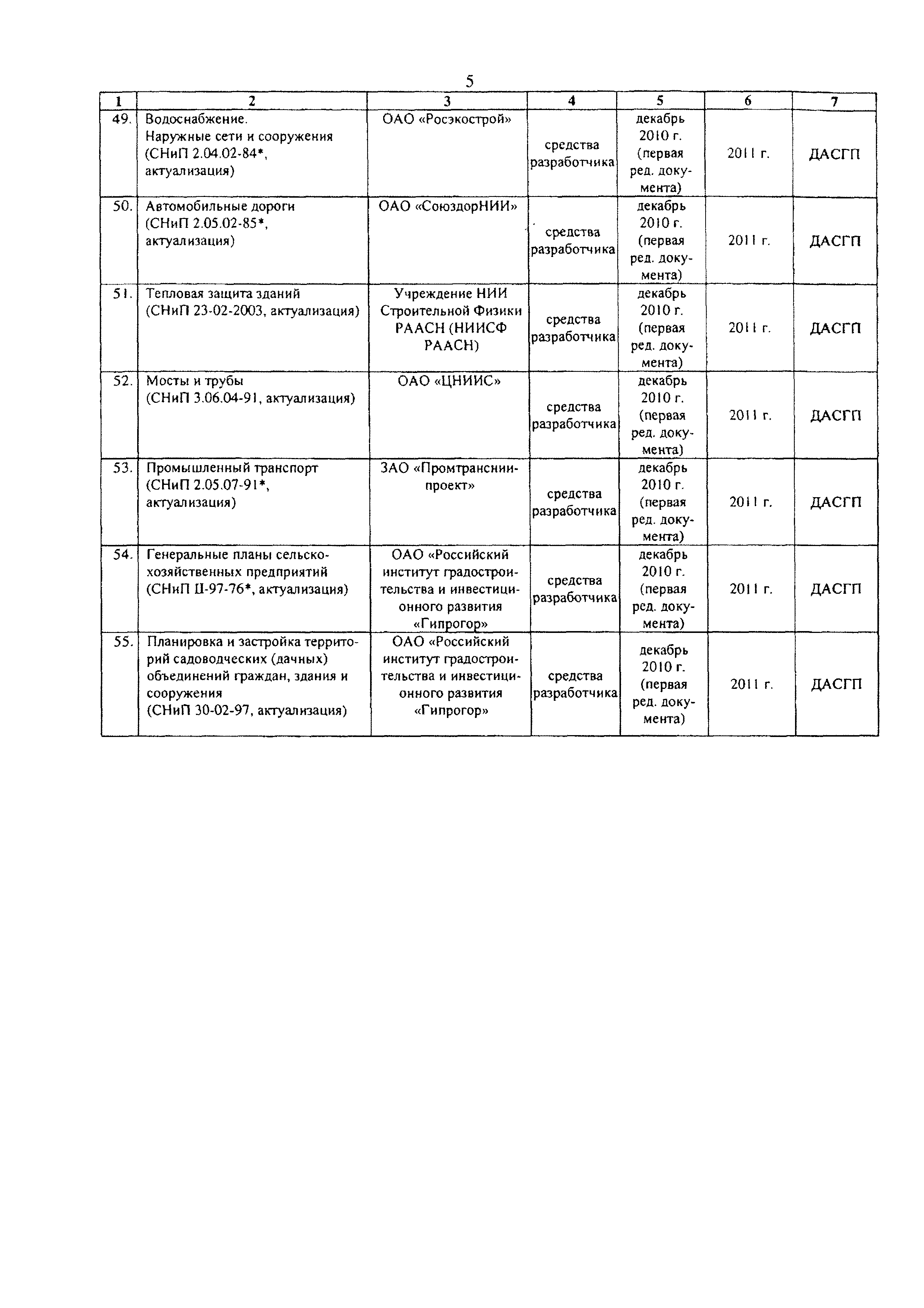 План работ по разработке и утверждению сводов правил и актуализации ранее утвержденных строительных норм и правил