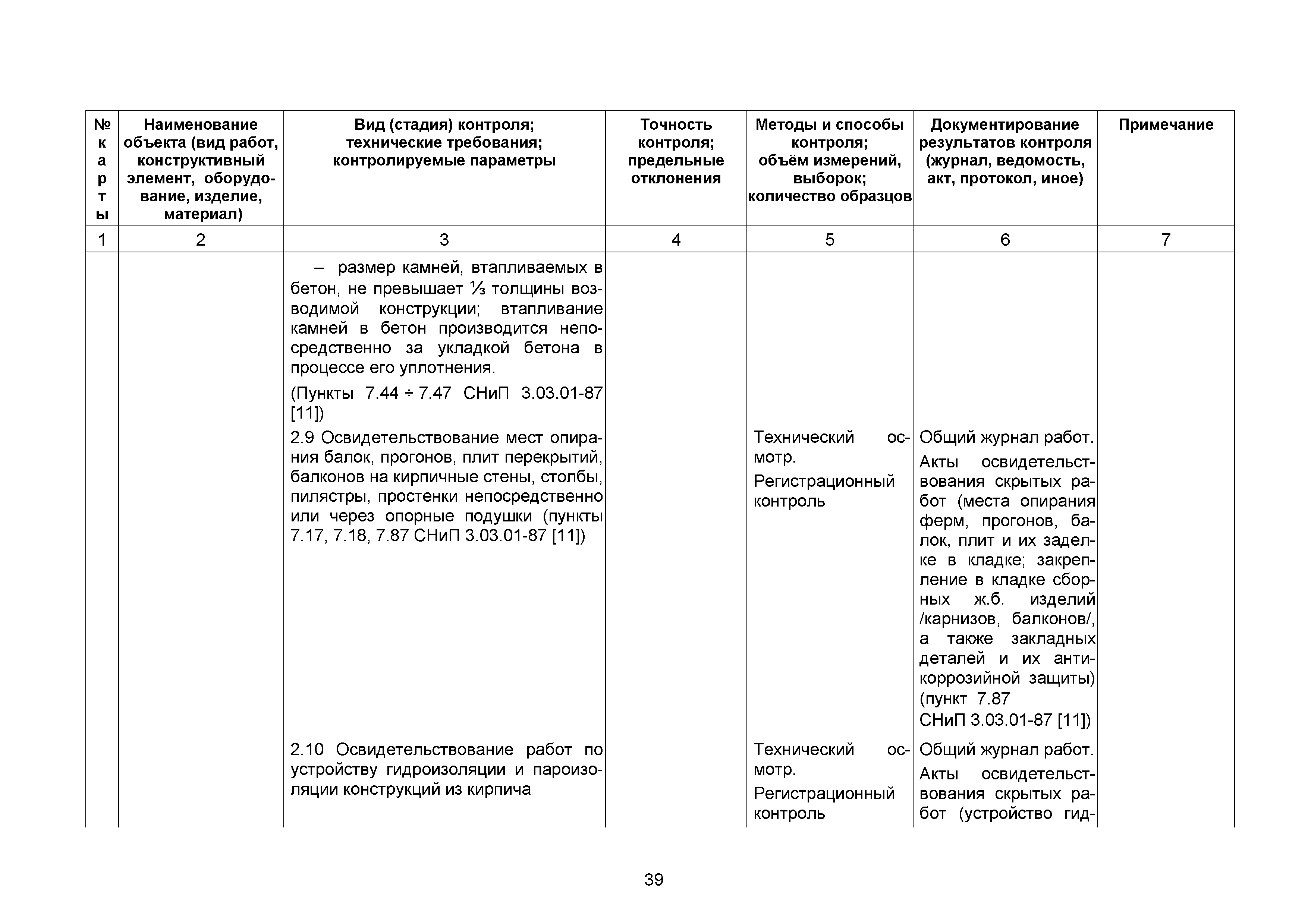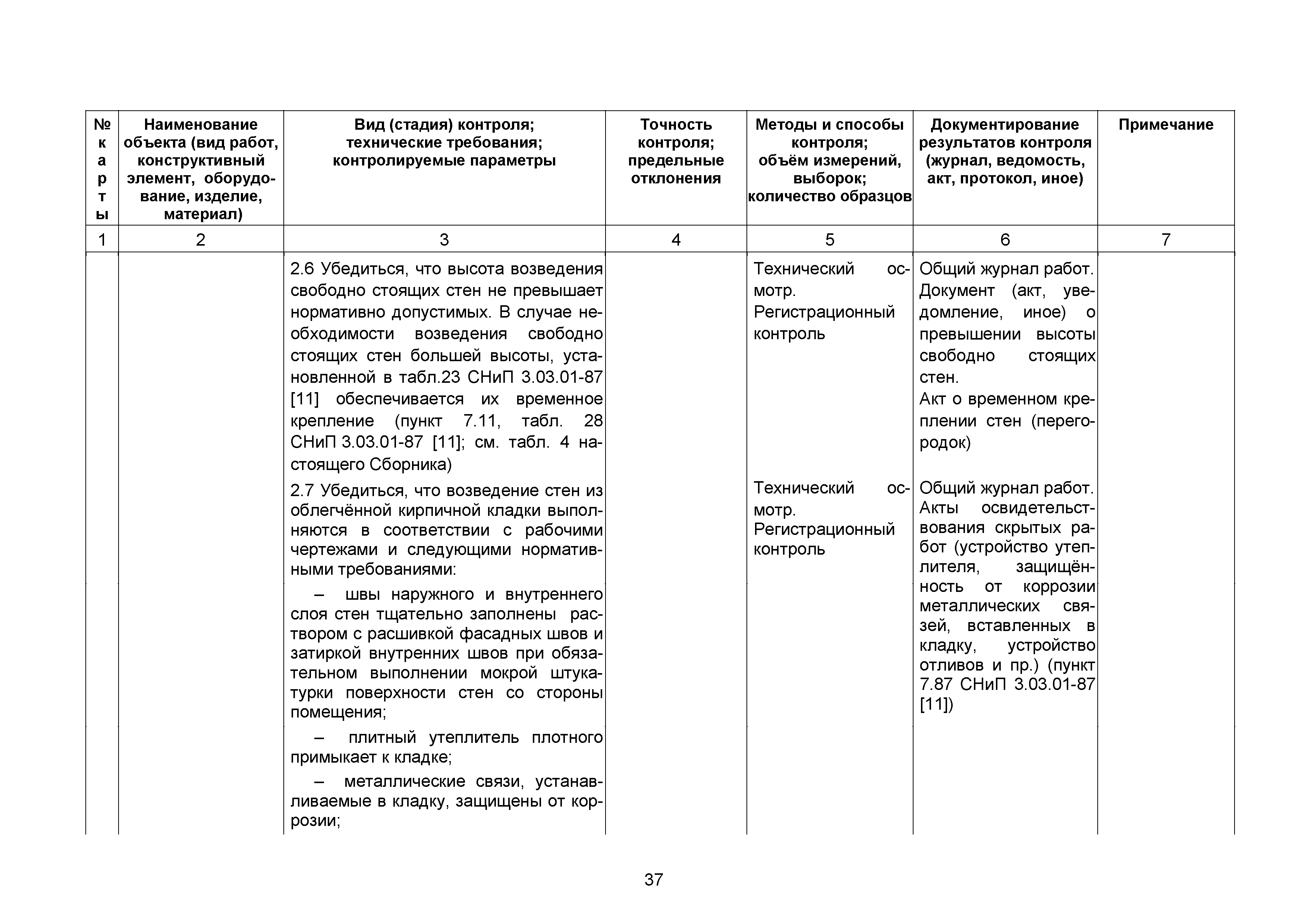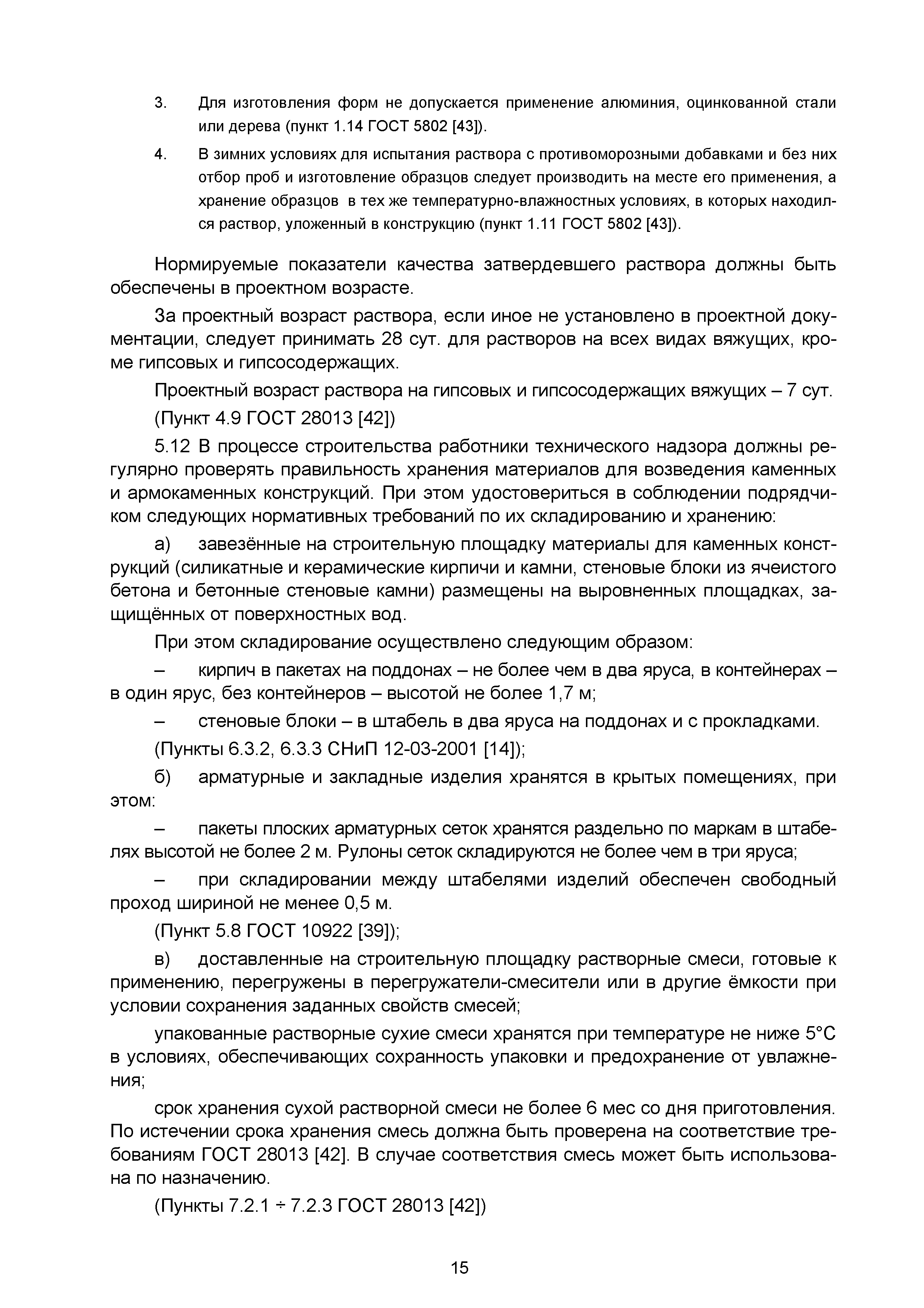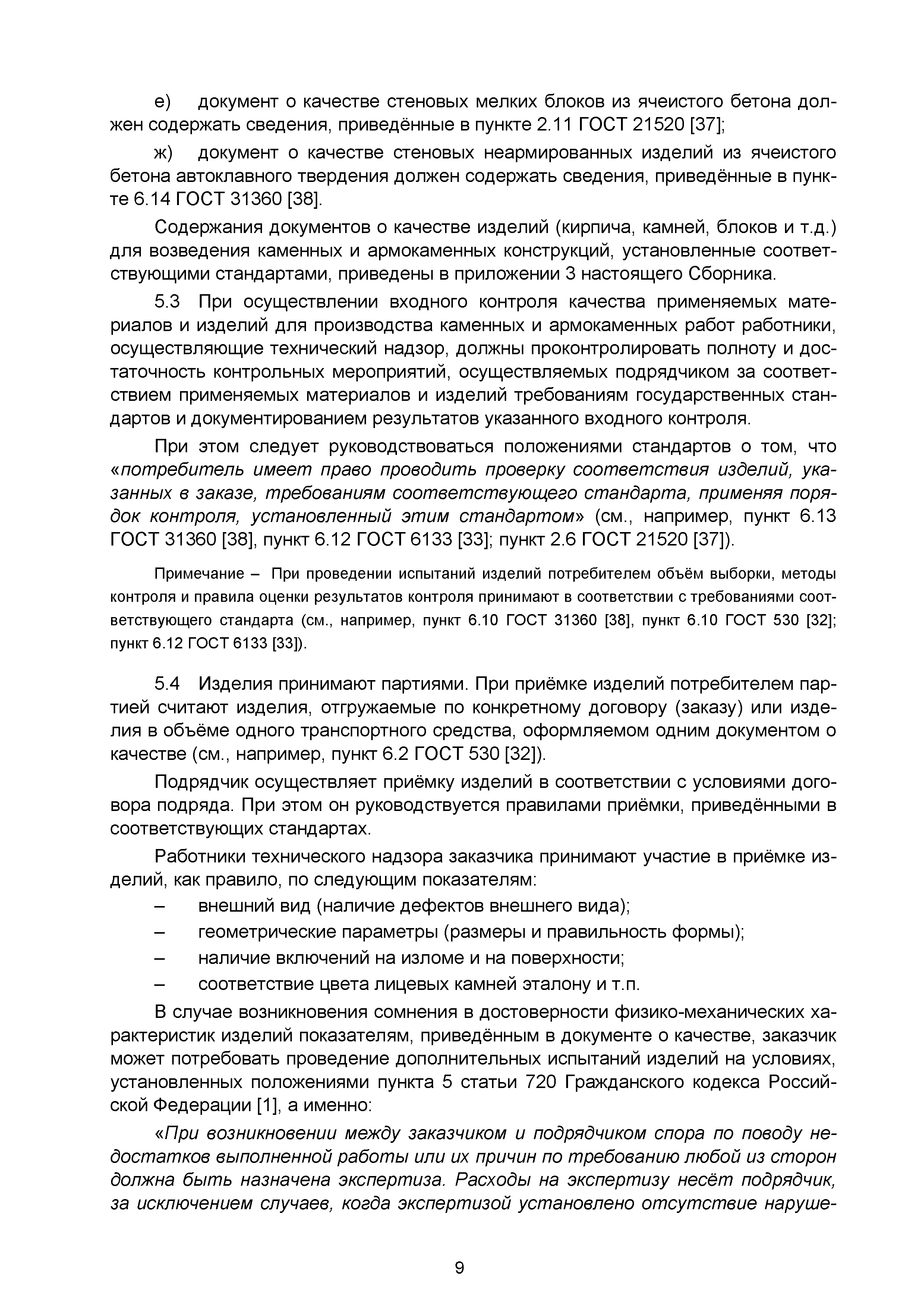 | Оглавление: | 1 Область применения 2 Нормативные ссылки 3 Термины и определения 4 Общие положения 5 Требования к складированию, хранению и качеству материалов для возведения каменных и армокаменных конструкций 6 Требования к качеству выполнения работ и отдельных технологических операций при возведении каменных и армокаменных конструкций 7 Дополнительные требования к производству работ в сейсмических районах 8 Дополнительные требования к возведению каменных и армокаменных конструкций в зимних условиях Приложение 1. Классификация дефектов по основным видам строительно-монтажных работ и производстве стеновых материалов Приложение 2. Технологическая карта на осуществление контроля качества при производстве работ по возведению каменных и армокаменных конструкций из керамического и силикатного кирпича, керамических, силикатных, природных и бетонных камней, кирпичных и керамических панелей и блоков, бетонных блоков Приложение 3. Требования к содержанию документов о качестве изделий для возведения каменных и армокаменных конструкций, установленные стандартами на эти изделия Приложение 4. Основные нормативные требования, предъявляемые к внешнему виду, размерам, цвету и другим характеристикам силикатных кирпича и камней Приложение 5. Основные нормативные требования, предъявляемые к внешнему виду, размерам, цвету и другим характеристикам керамических кирпича и камней Приложение 6. Основные нормативные требования, предъявляемые к внешнему виду, размерам, цвету и другим характеристикам камней бетонных стеновых Приложение 7. Основные нормативные требования, предъявляемые к внешнему виду, размерам, цвету и другим характеристикам плит облицовочных пиленых из природного камня Приложение 8. Основные нормативные требования, предъявляемые к внешнему виду, размерам, цвету и другим характеристикам камней стеновых из горных пород Приложение 9. Основные нормативные требования, предъявляемые к внешнему виду, размерам, цвету и другим характеристикам мелких стеновых блоков из ячеистых бетонов Приложение 10. Основные нормативные требования, предъявляемые к внешнему виду, размерам, цвету и другим характеристикам стеновых неармированных изделий из ячеистого бетона автоклавного твердения Библиография |