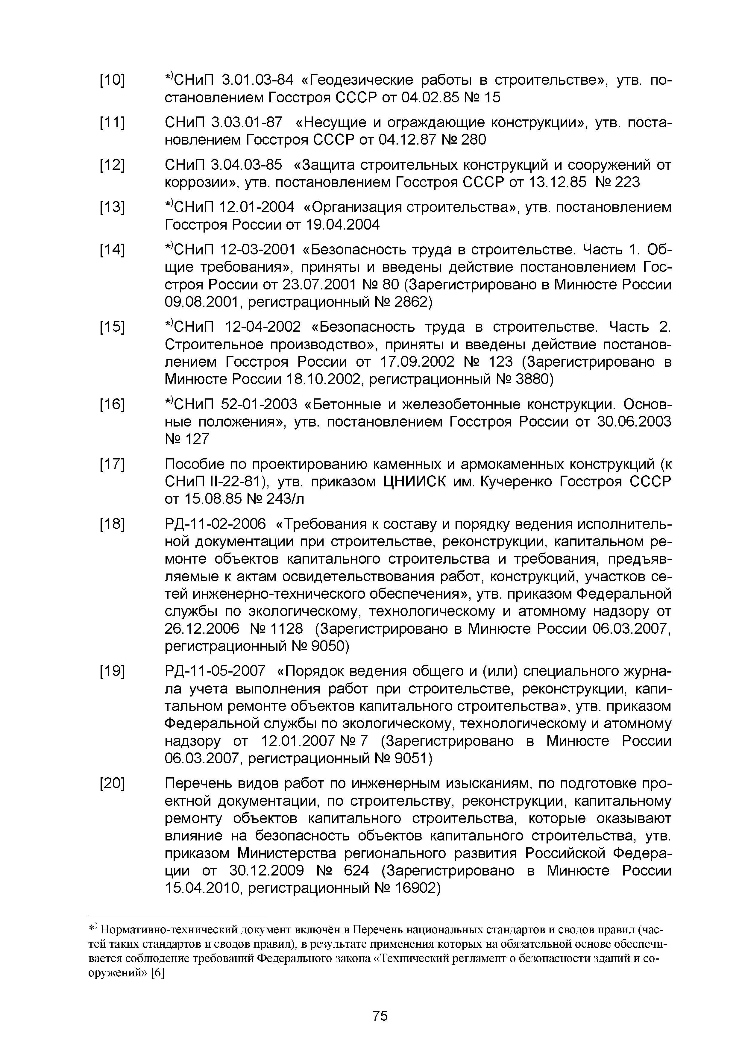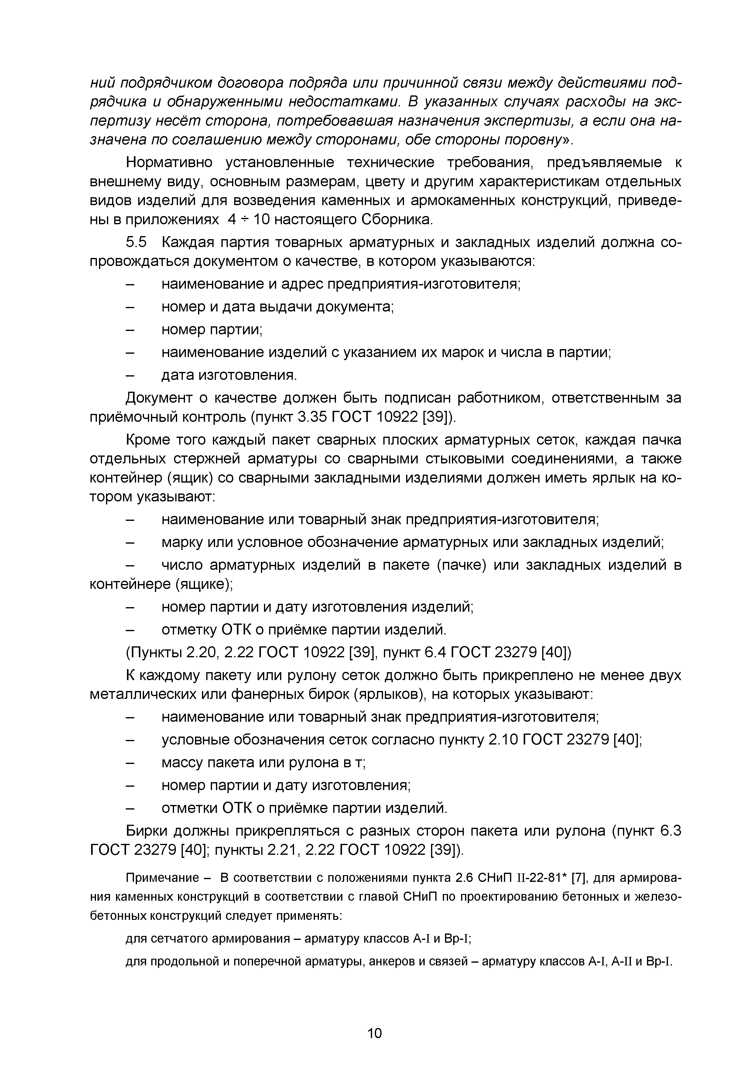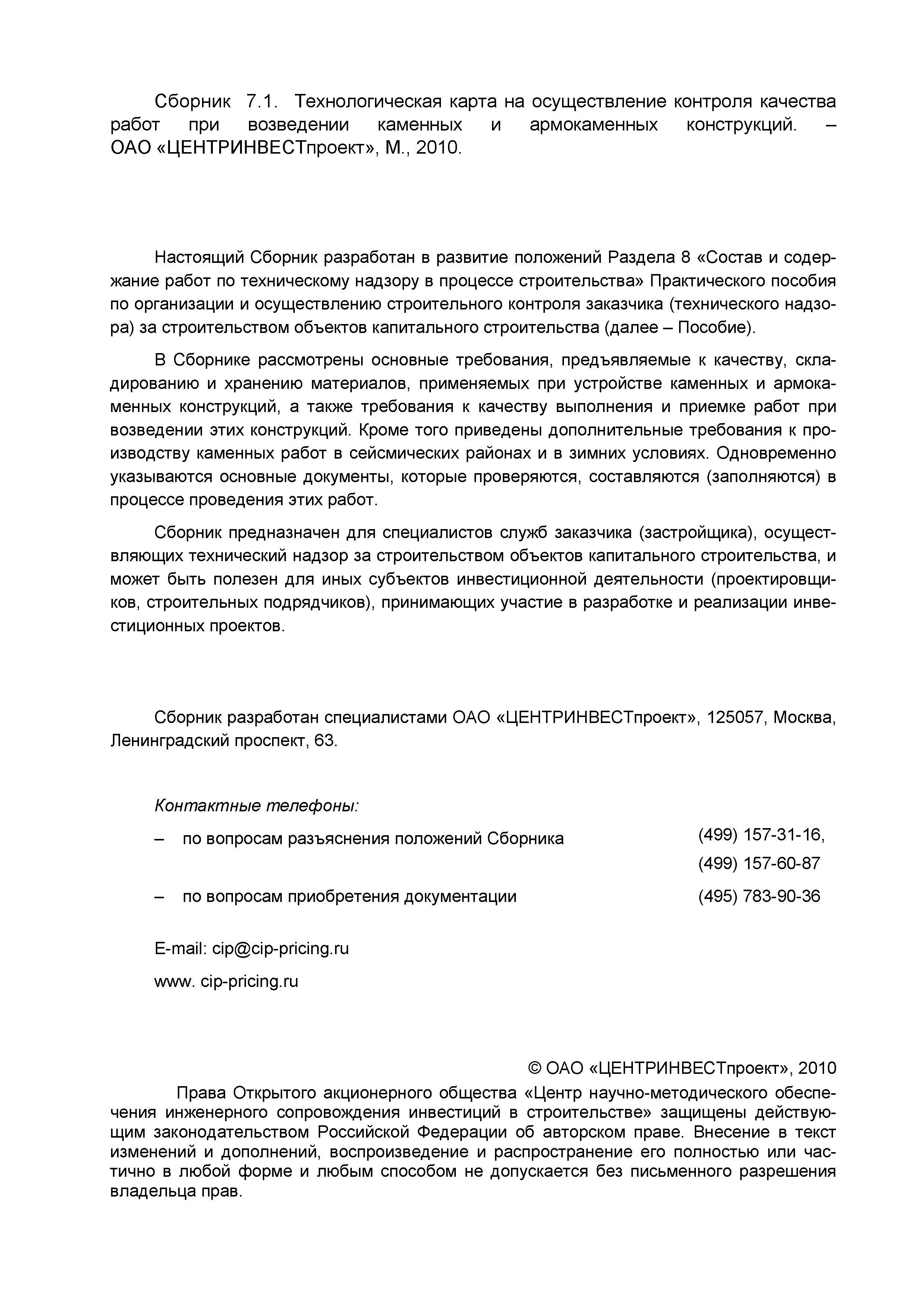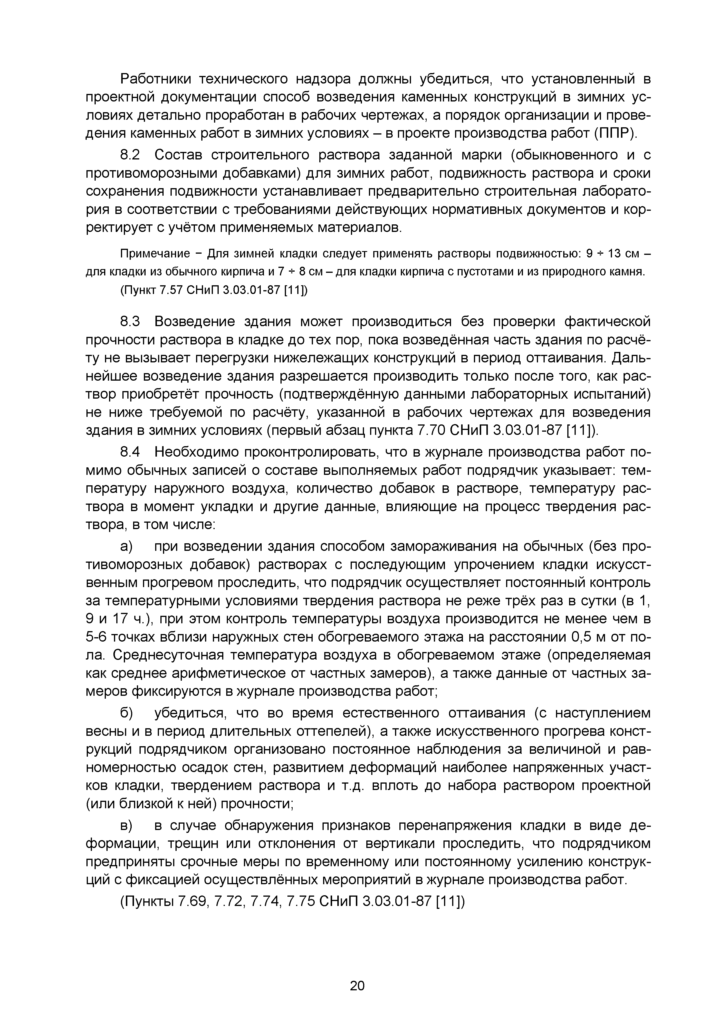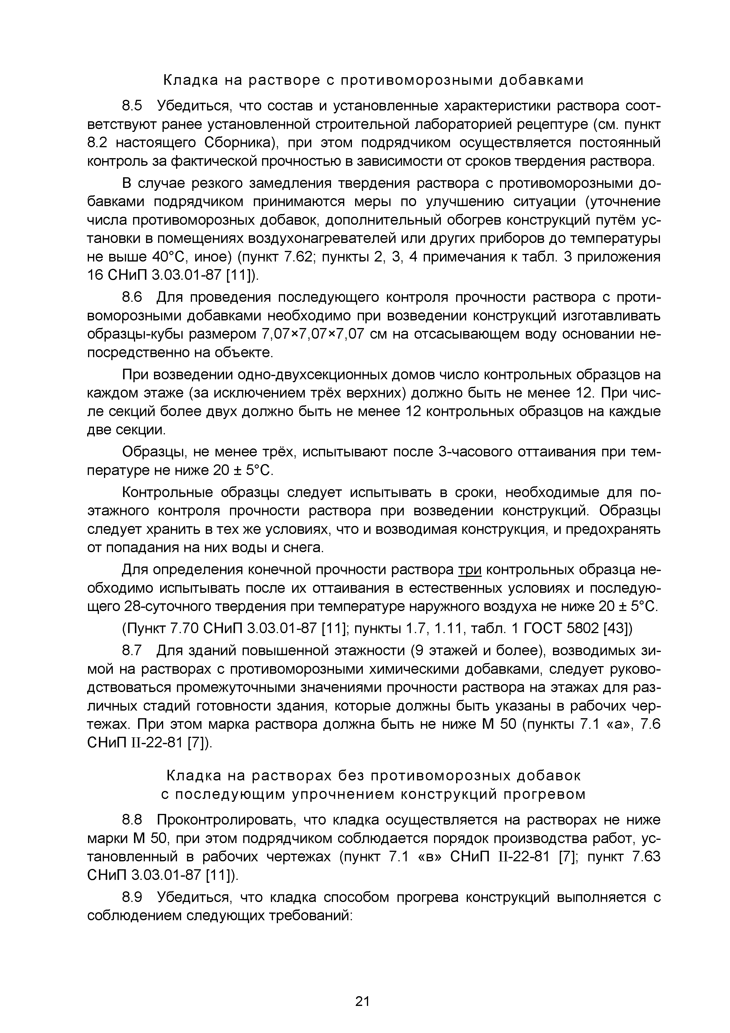 | Оглавление: | 1 Область применения 2 Нормативные ссылки 3 Термины и определения 4 Общие положения 5 Требования к складированию, хранению и качеству материалов для возведения каменных и армокаменных конструкций 6 Требования к качеству выполнения работ и отдельных технологических операций при возведении каменных и армокаменных конструкций 7 Дополнительные требования к производству работ в сейсмических районах 8 Дополнительные требования к возведению каменных и армокаменных конструкций в зимних условиях Приложение 1. Классификация дефектов по основным видам строительно-монтажных работ и производстве стеновых материалов Приложение 2. Технологическая карта на осуществление контроля качества при производстве работ по возведению каменных и армокаменных конструкций из керамического и силикатного кирпича, керамических, силикатных, природных и бетонных камней, кирпичных и керамических панелей и блоков, бетонных блоков Приложение 3. Требования к содержанию документов о качестве изделий для возведения каменных и армокаменных конструкций, установленные стандартами на эти изделия Приложение 4. Основные нормативные требования, предъявляемые к внешнему виду, размерам, цвету и другим характеристикам силикатных кирпича и камней Приложение 5. Основные нормативные требования, предъявляемые к внешнему виду, размерам, цвету и другим характеристикам керамических кирпича и камней Приложение 6. Основные нормативные требования, предъявляемые к внешнему виду, размерам, цвету и другим характеристикам камней бетонных стеновых Приложение 7. Основные нормативные требования, предъявляемые к внешнему виду, размерам, цвету и другим характеристикам плит облицовочных пиленых из природного камня Приложение 8. Основные нормативные требования, предъявляемые к внешнему виду, размерам, цвету и другим характеристикам камней стеновых из горных пород Приложение 9. Основные нормативные требования, предъявляемые к внешнему виду, размерам, цвету и другим характеристикам мелких стеновых блоков из ячеистых бетонов Приложение 10. Основные нормативные требования, предъявляемые к внешнему виду, размерам, цвету и другим характеристикам стеновых неармированных изделий из ячеистого бетона автоклавного твердения Библиография |