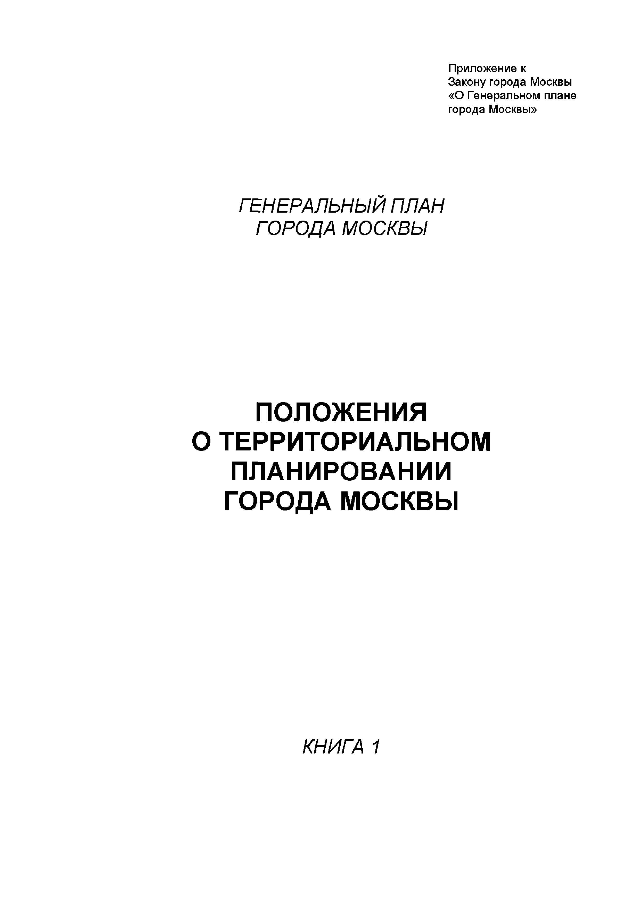 | Название рус.: | Приложение 1 к Закону города Москвы "О Генеральном плане города Москвы". Положения о территориальном планировании города Москвы. Книга 1 |