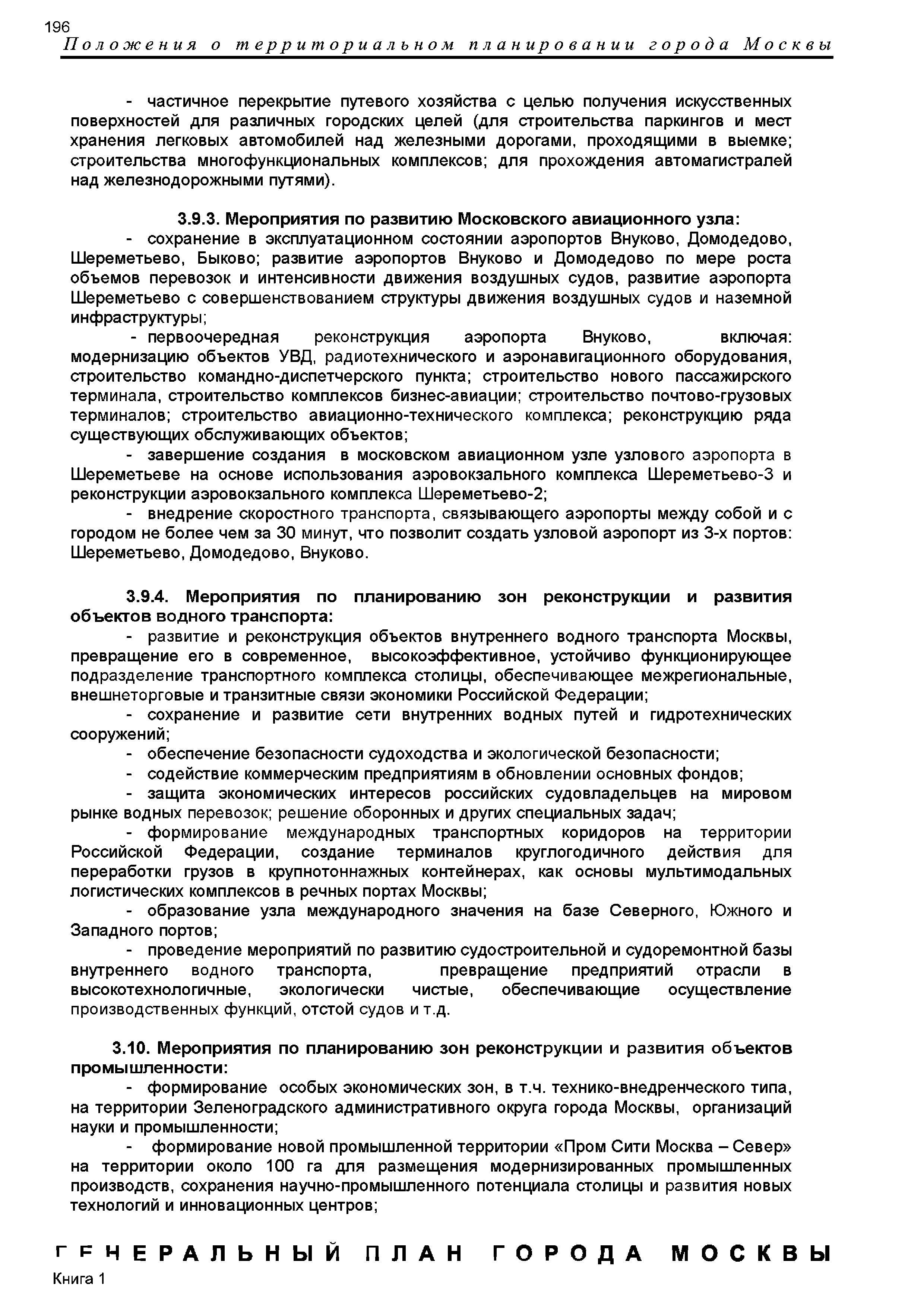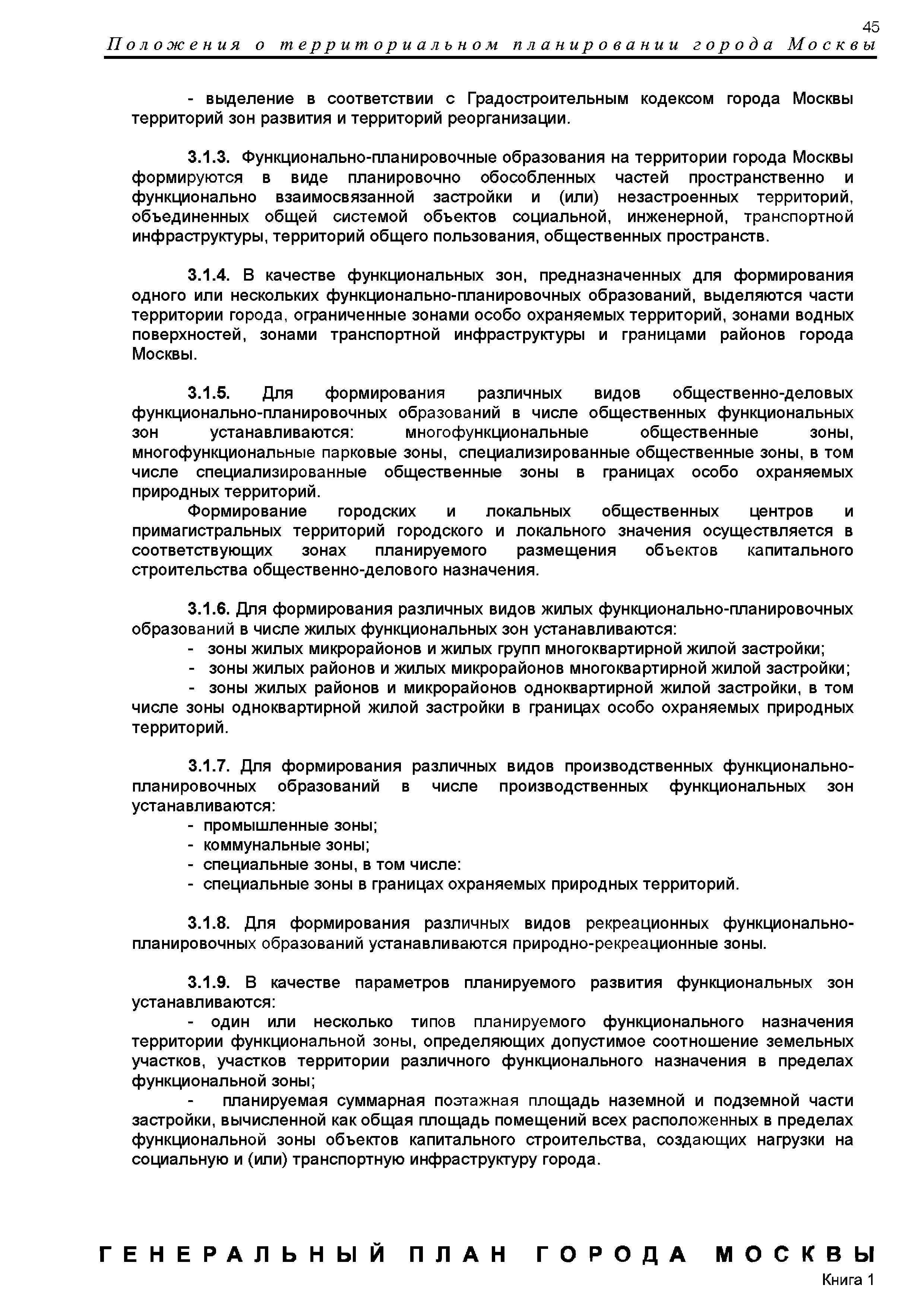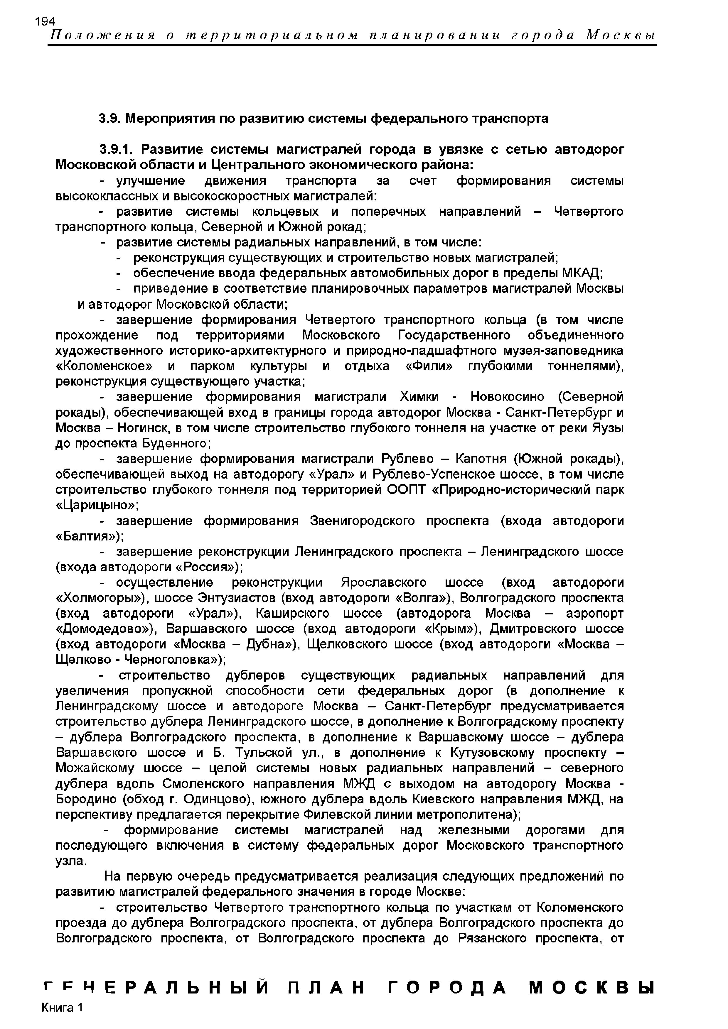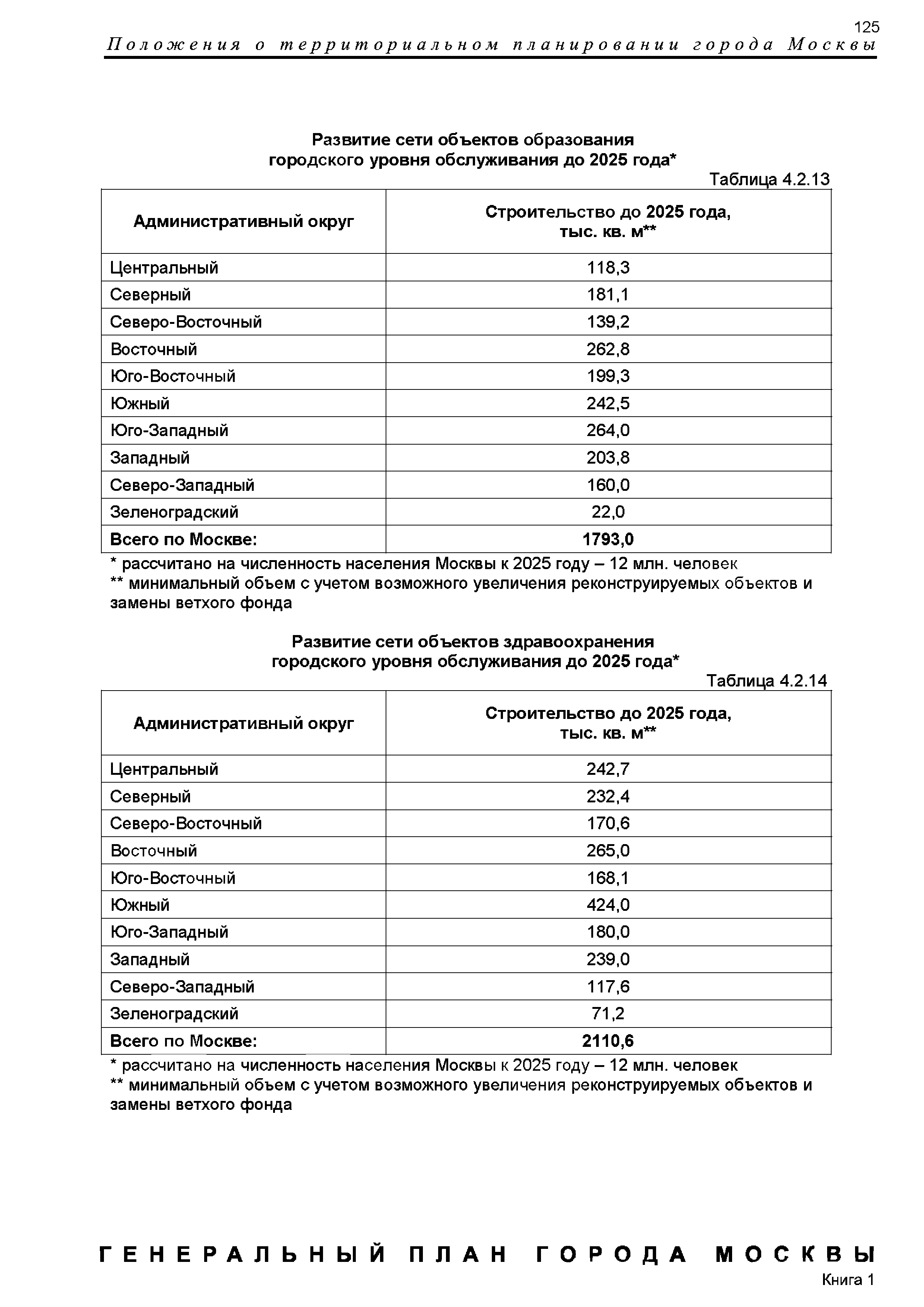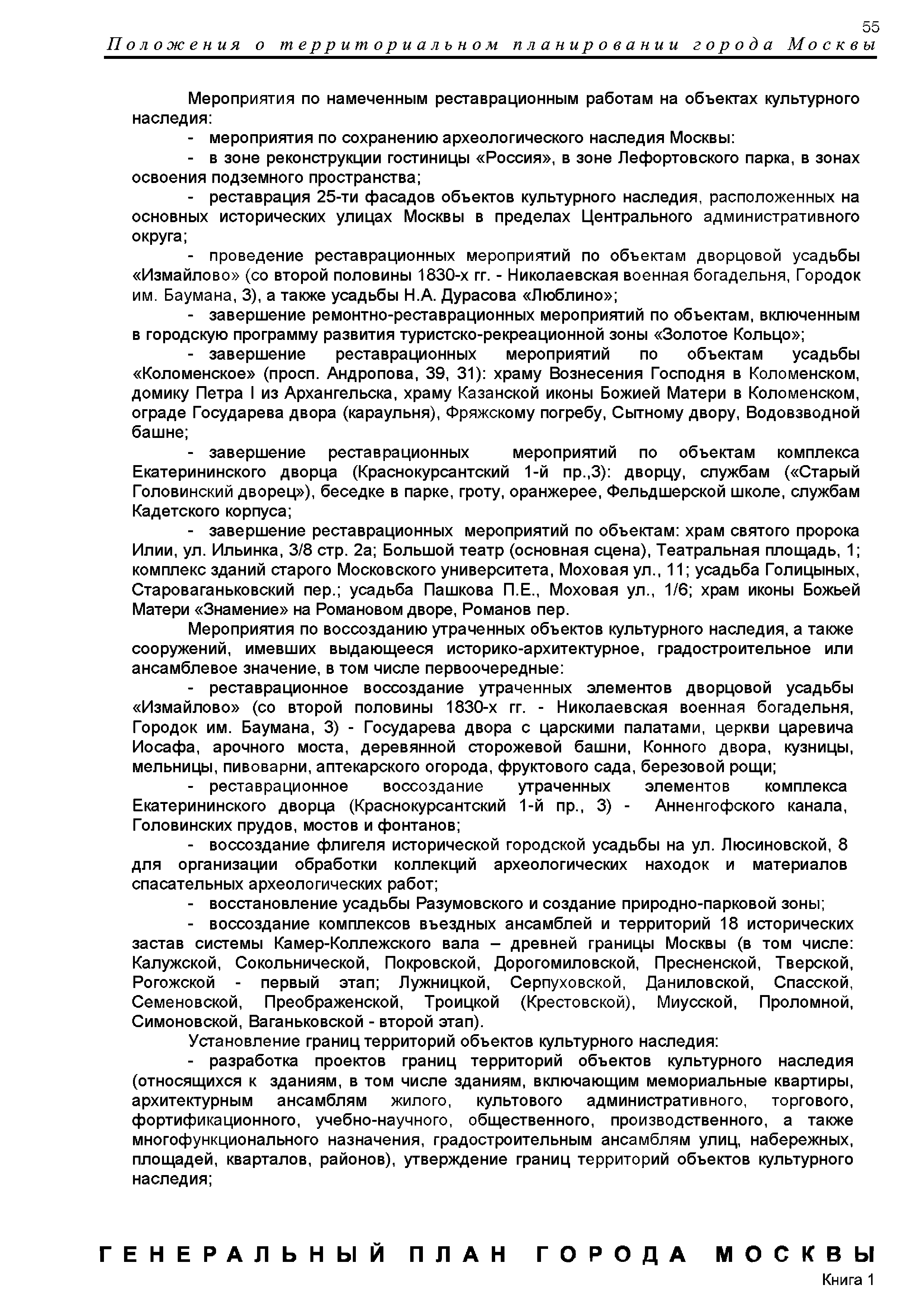 | Оглавление: | Содержание Часть 1. Социально-экономические предпосылки развития города Москвы 1. Общие положения 1.1. Цели и задачи социально-экономического развития города Москвы 1.2. Повышение качества жизни и уровня воспроизводства населения 1.3. Устойчивое и сбалансированное развитие отраслей экономики города Москвы и рост валового регионального продукта 1.4. Повышение эффективности использования накопленного потенциала и ресурсов города 1.5. Мероприятия социально-экономического развития города Москвы Часть 2. Территориальное планирование развития города Москвы 1. Цели территориального планирования пространственного развития города Москвы на период до 2025 года 2. Задачи территориального планирования пространственного развития города Москвы на период до 2025 года, направленные на обеспечение общественных интересов, социальных гарантий, последовательное повышение качества городской среды и устойчивости развития города 3. Основные группы мероприятий территориального планирования города Москвы 3.1. Мероприятия в области планировочной организации и функционального зонирования территории 3.2. Инженерно-технические мероприятия по охране окружающей среды и защите населения и территории от опасных воздействий природного и техногенного характера 3.3. Мероприятия по сохранению, восстановлению объектов культурного наследия и реабилитации исторической среды 3.4. Мероприятия по сохранению и реабилитации особо охраняемых природных территорий 3.5. Мероприятия по размещению и строительству, реконструкции, реновации, капитальному ремонту объектов капитального строительства жилищного, общественного, административного, делового, производственного назначения 3.6. Мероприятия по развитию, размещению и строительству, реконструкции систем и объектов транспортной инфраструктуры и совершенствованию их функционирования 3.7. Мероприятия по развитию, размещению и строительству, реконструкции систем и объектов инженерной инфраструктуры и совершенствованию их функционирования 3.8. Мероприятия по развитию, размещению и строительству, реконструкции социально значимых объектов социальной инфраструктуры 3.9. Мероприятия в области ландшафтного и садово-паркового строительства, комплексного благоустройства и художественного оформления территории 4. Показатели территориального планирования развития города Москвы 4.1. Основные показатели развития особо охраняемых природных территорий, природных и озелененных территорий, охраны окружающей среды и защиты населения и территорий от опасных воздействий 4.2. Основные показатели развития социальной инфраструктуры 4.3. Основные показатели в области жилищного строительства 4.4. Основные показатели развития транспортной инфраструктуры 4.5. Основные показатели развития инженерной инфраструктуры Часть 3. Обеспечение совместных интересов субъектов Российской Федерации - города федерального значения Москвы и Московской области в сфере территориального планирования 1. Цели и задачи территориального планирования в части обеспечения совместных интересов города Москвы и Московской области 2. Мероприятия территориального планирования в части обеспечения совместных интересов города Москвы и Московской области 2.1. Формирование эффективной системы расселения города Москвы и Московской области 2
