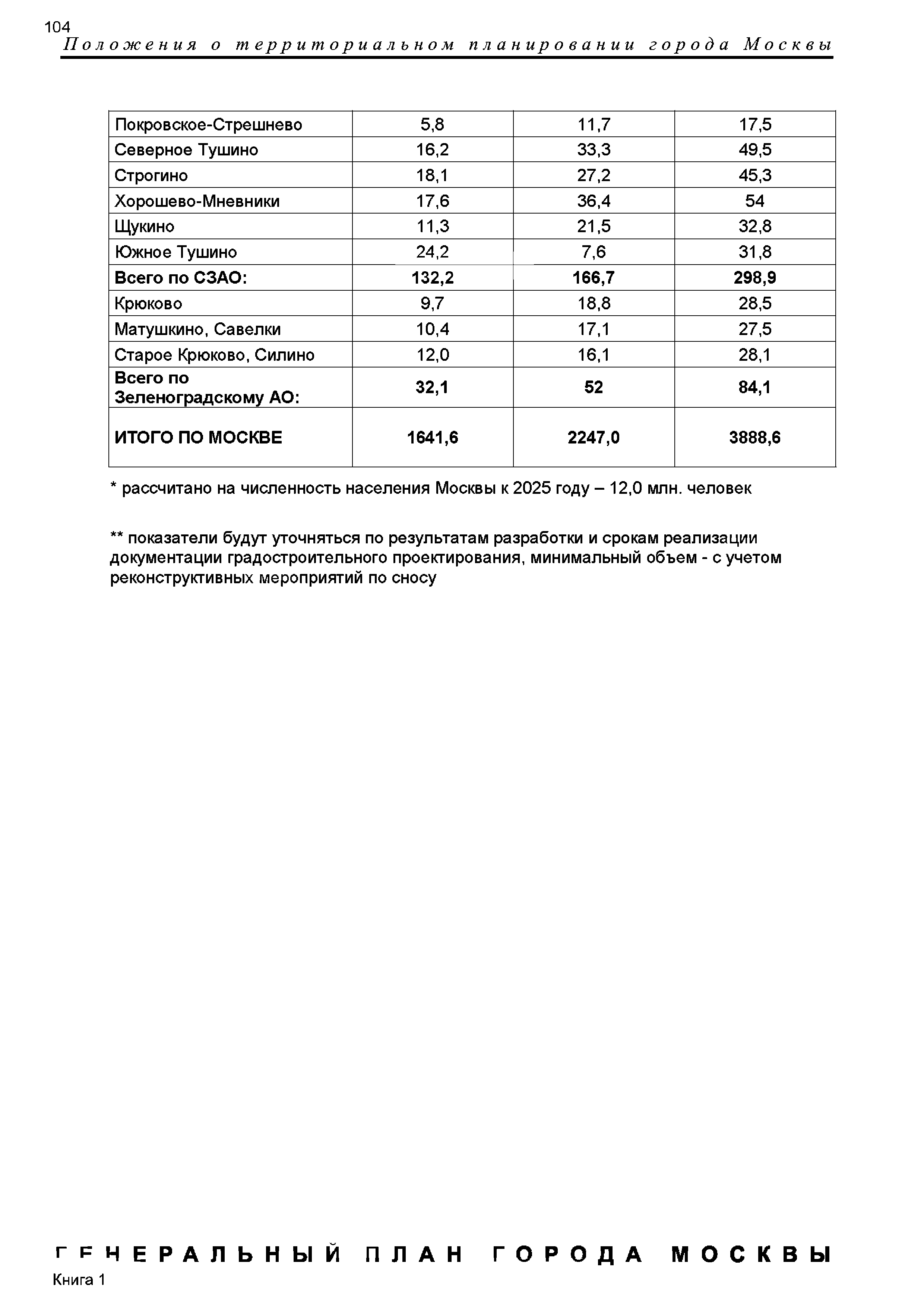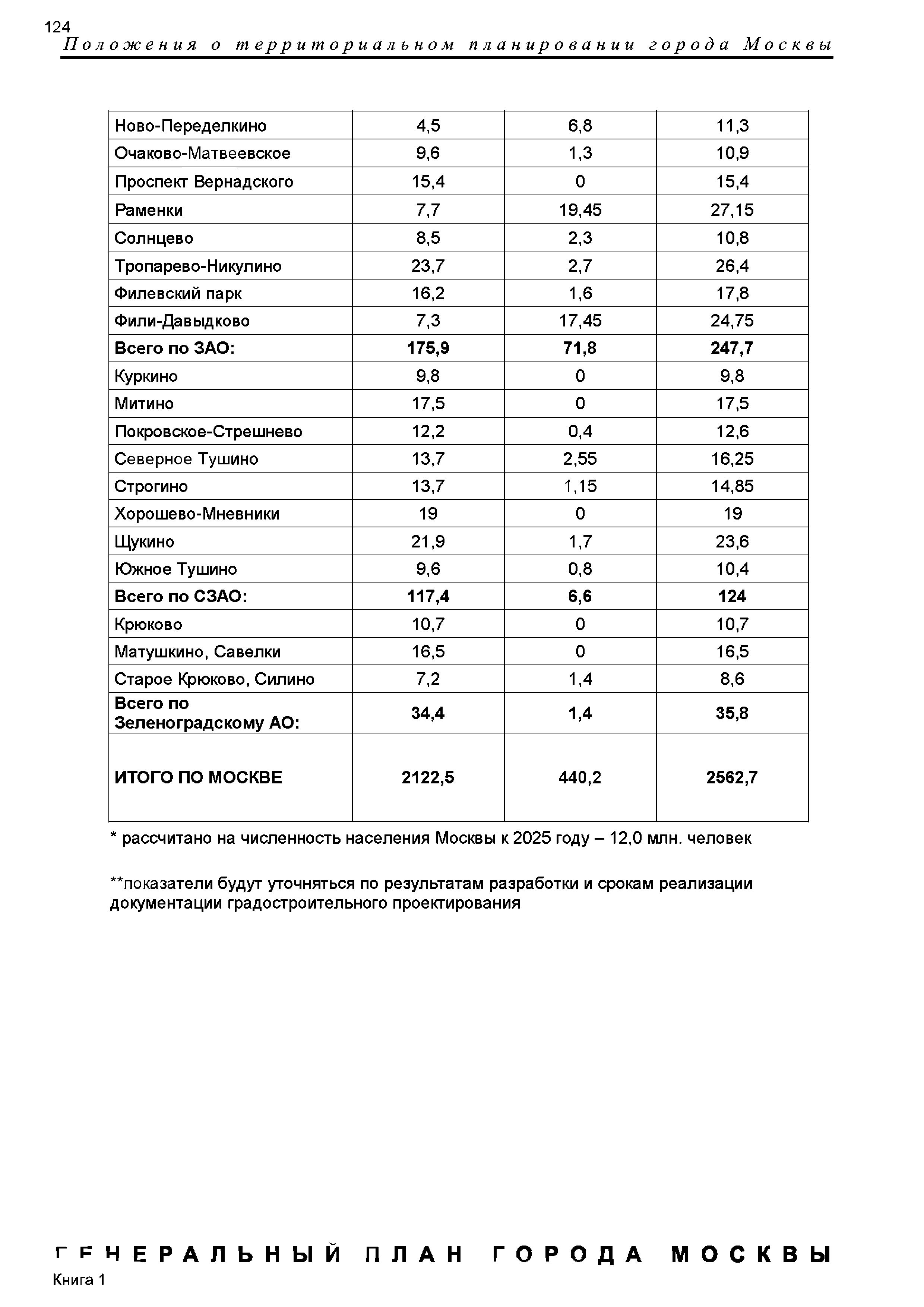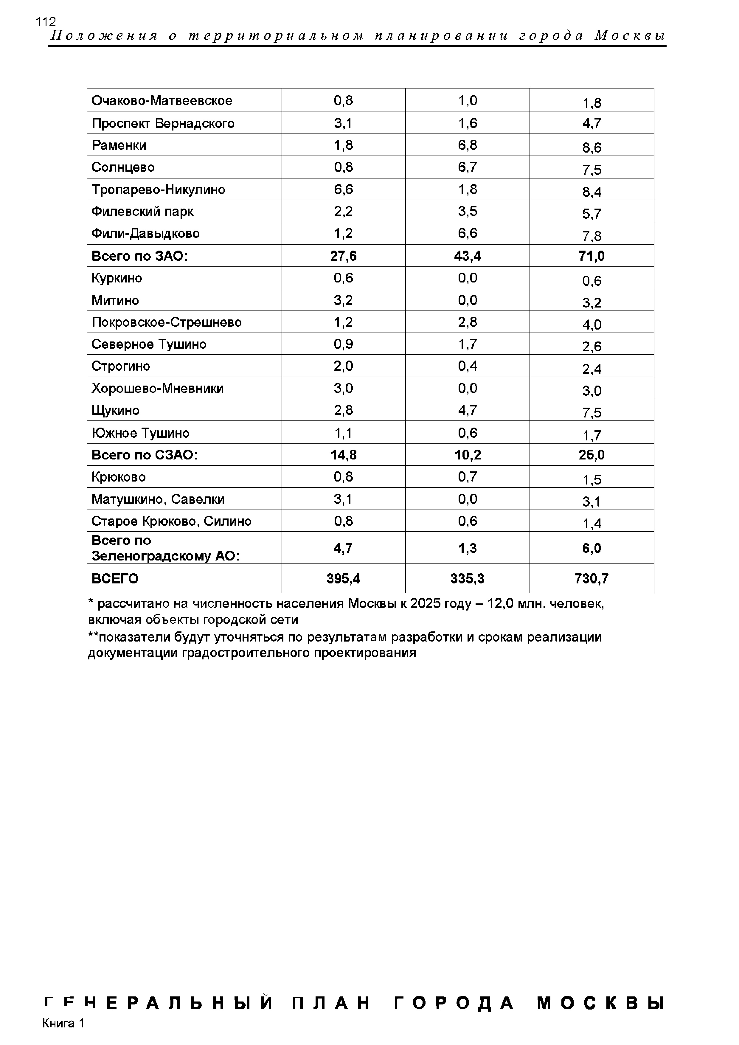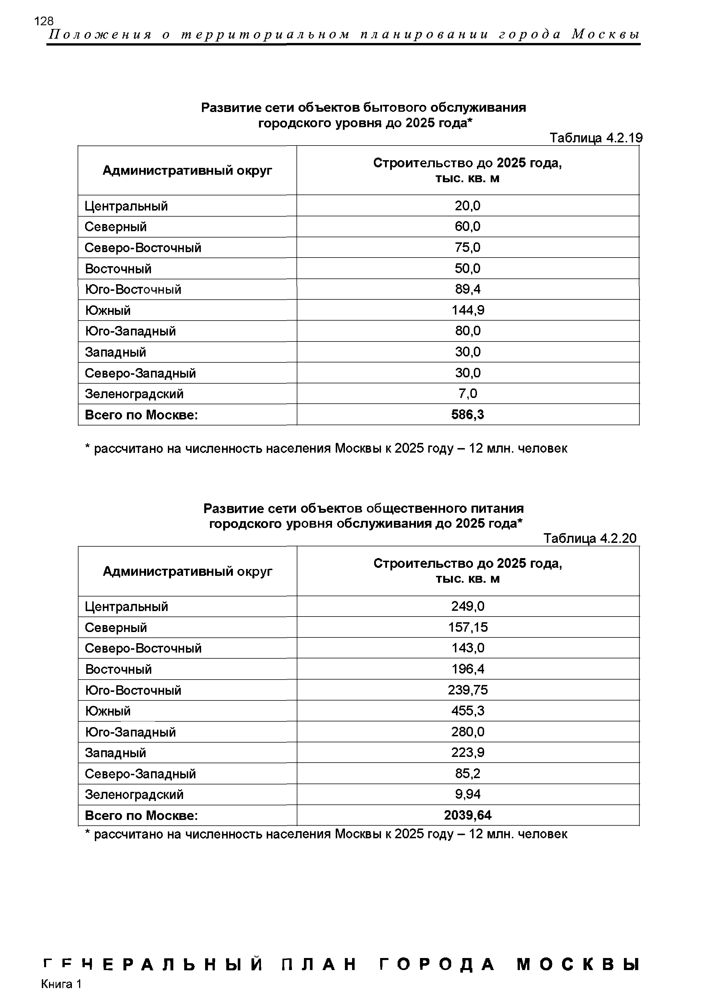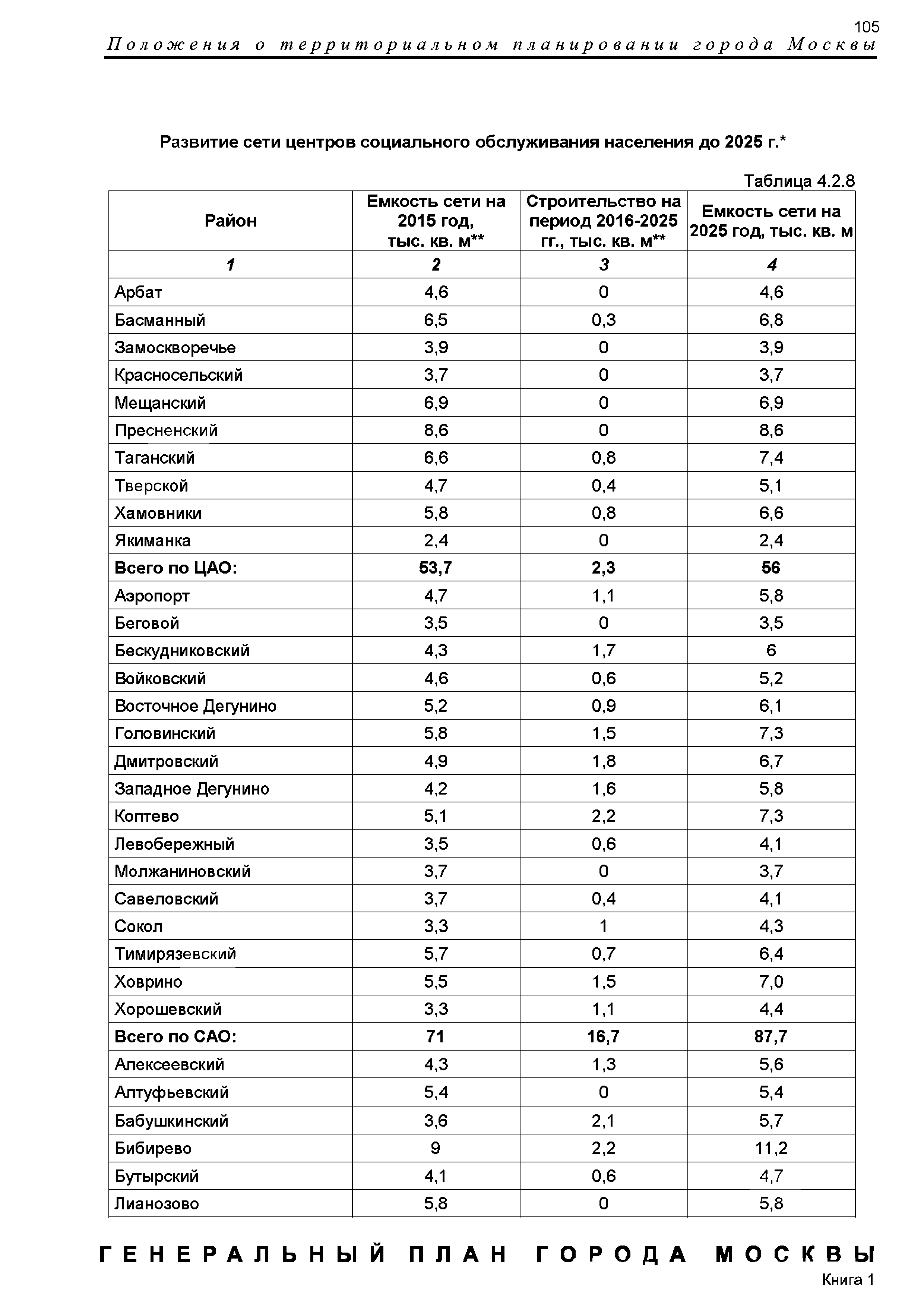 | Оглавление: | Содержание Часть 1. Социально-экономические предпосылки развития города Москвы 1. Общие положения 1.1. Цели и задачи социально-экономического развития города Москвы 1.2. Повышение качества жизни и уровня воспроизводства населения 1.3. Устойчивое и сбалансированное развитие отраслей экономики города Москвы и рост валового регионального продукта 1.4. Повышение эффективности использования накопленного потенциала и ресурсов города 1.5. Мероприятия социально-экономического развития города Москвы Часть 2. Территориальное планирование развития города Москвы 1. Цели территориального планирования пространственного развития города Москвы на период до 2025 года 2. Задачи территориального планирования пространственного развития города Москвы на период до 2025 года, направленные на обеспечение общественных интересов, социальных гарантий, последовательное повышение качества городской среды и устойчивости развития города 3. Основные группы мероприятий территориального планирования города Москвы 3.1. Мероприятия в области планировочной организации и функционального зонирования территории 3.2. Инженерно-технические мероприятия по охране окружающей среды и защите населения и территории от опасных воздействий природного и техногенного характера 3.3. Мероприятия по сохранению, восстановлению объектов культурного наследия и реабилитации исторической среды 3.4. Мероприятия по сохранению и реабилитации особо охраняемых природных территорий 3.5. Мероприятия по размещению и строительству, реконструкции, реновации, капитальному ремонту объектов капитального строительства жилищного, общественного, административного, делового, производственного назначения 3.6. Мероприятия по развитию, размещению и строительству, реконструкции систем и объектов транспортной инфраструктуры и совершенствованию их функционирования 3.7. Мероприятия по развитию, размещению и строительству, реконструкции систем и объектов инженерной инфраструктуры и совершенствованию их функционирования 3.8. Мероприятия по развитию, размещению и строительству, реконструкции социально значимых объектов социальной инфраструктуры 3.9. Мероприятия в области ландшафтного и садово-паркового строительства, комплексного благоустройства и художественного оформления территории 4. Показатели территориального планирования развития города Москвы 4.1. Основные показатели развития особо охраняемых природных территорий, природных и озелененных территорий, охраны окружающей среды и защиты населения и территорий от опасных воздействий 4.2. Основные показатели развития социальной инфраструктуры 4.3. Основные показатели в области жилищного строительства 4.4. Основные показатели развития транспортной инфраструктуры 4.5. Основные показатели развития инженерной инфраструктуры Часть 3. Обеспечение совместных интересов субъектов Российской Федерации - города федерального значения Москвы и Московской области в сфере территориального планирования 1. Цели и задачи территориального планирования в части обеспечения совместных интересов города Москвы и Московской области 2. Мероприятия территориального планирования в части обеспечения совместных интересов города Москвы и Московской области 2.1. Формирование эффективной системы расселения города Москвы и Московской области 2