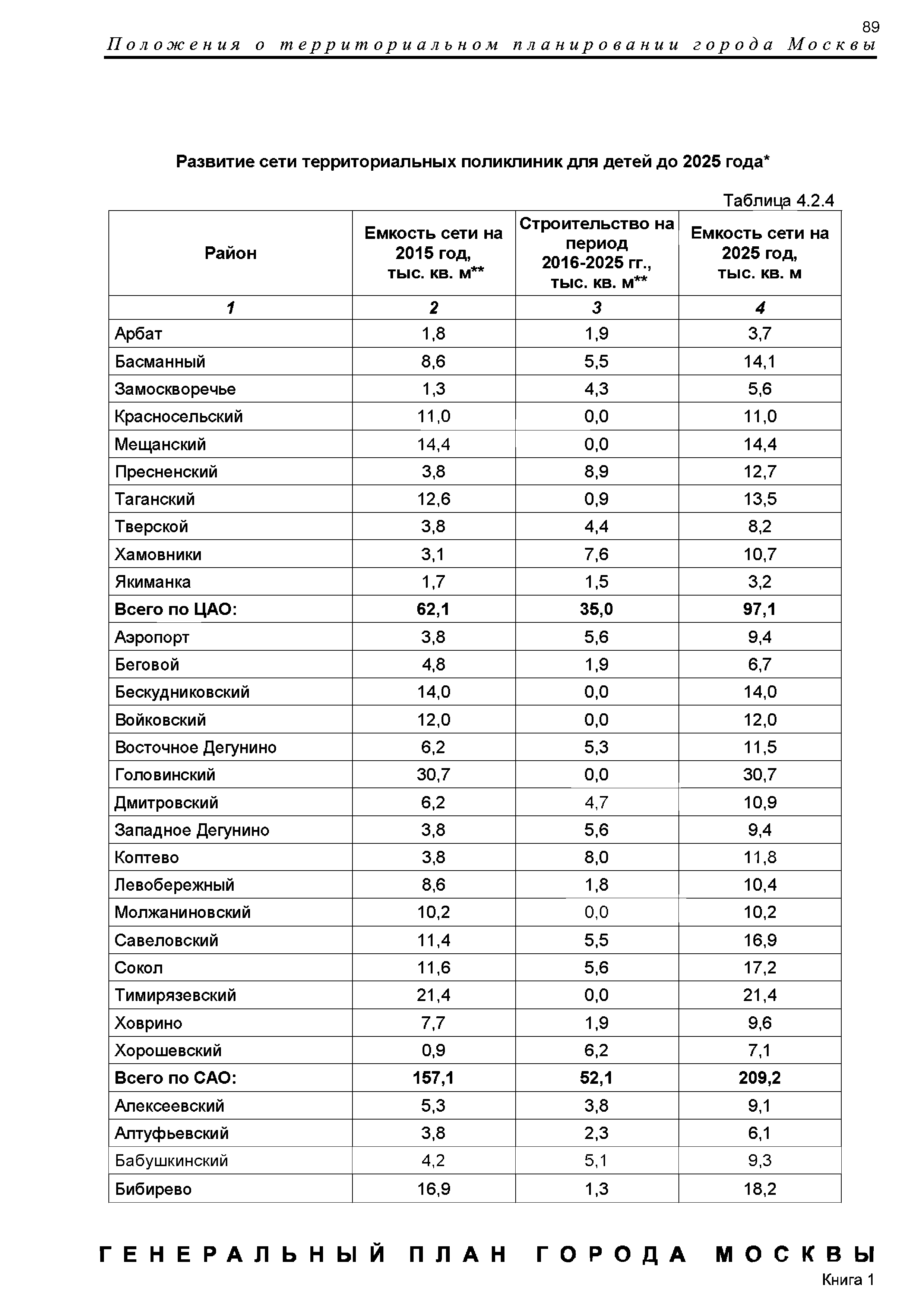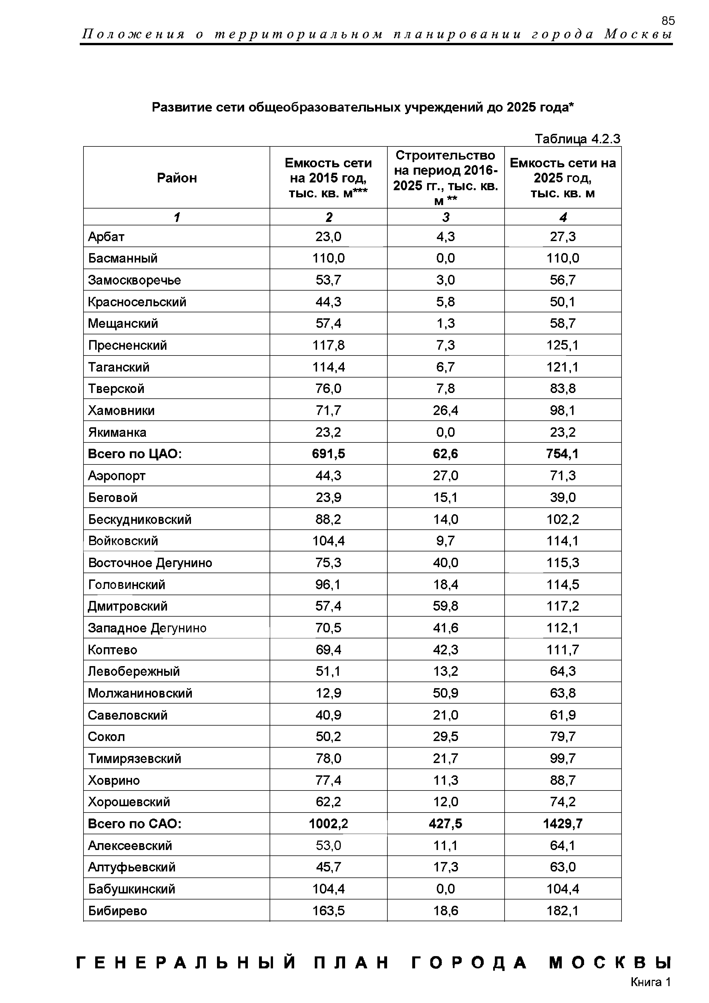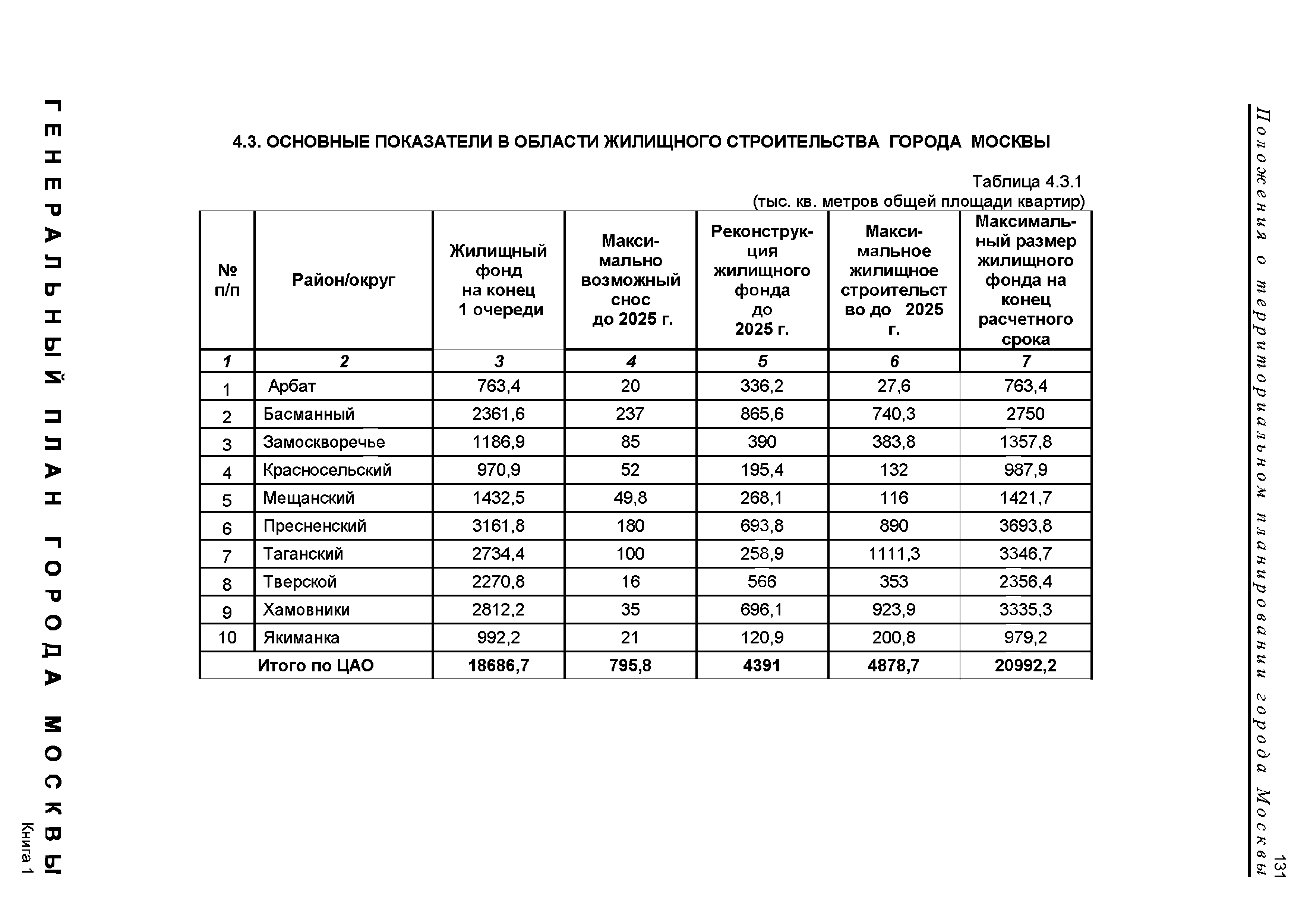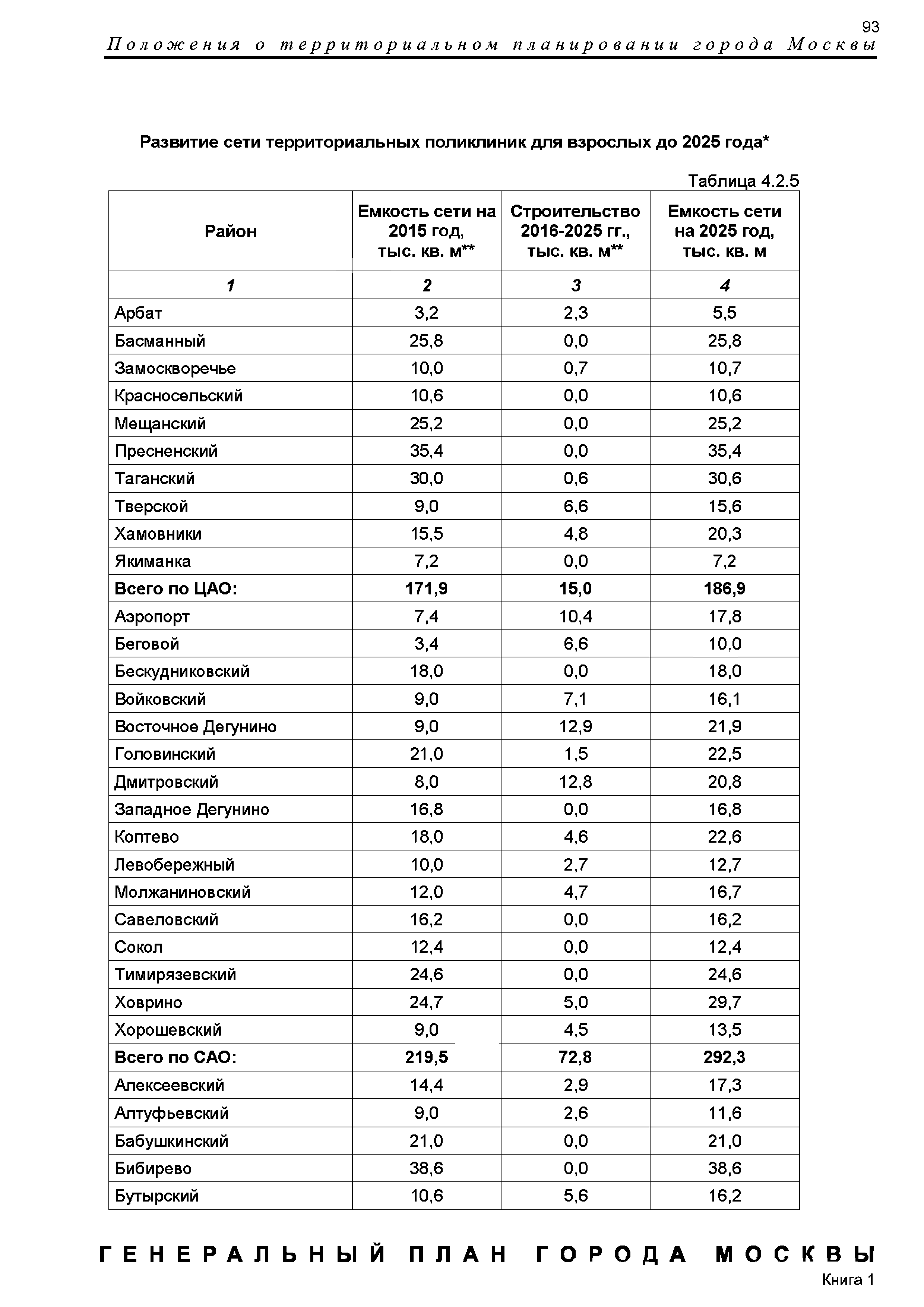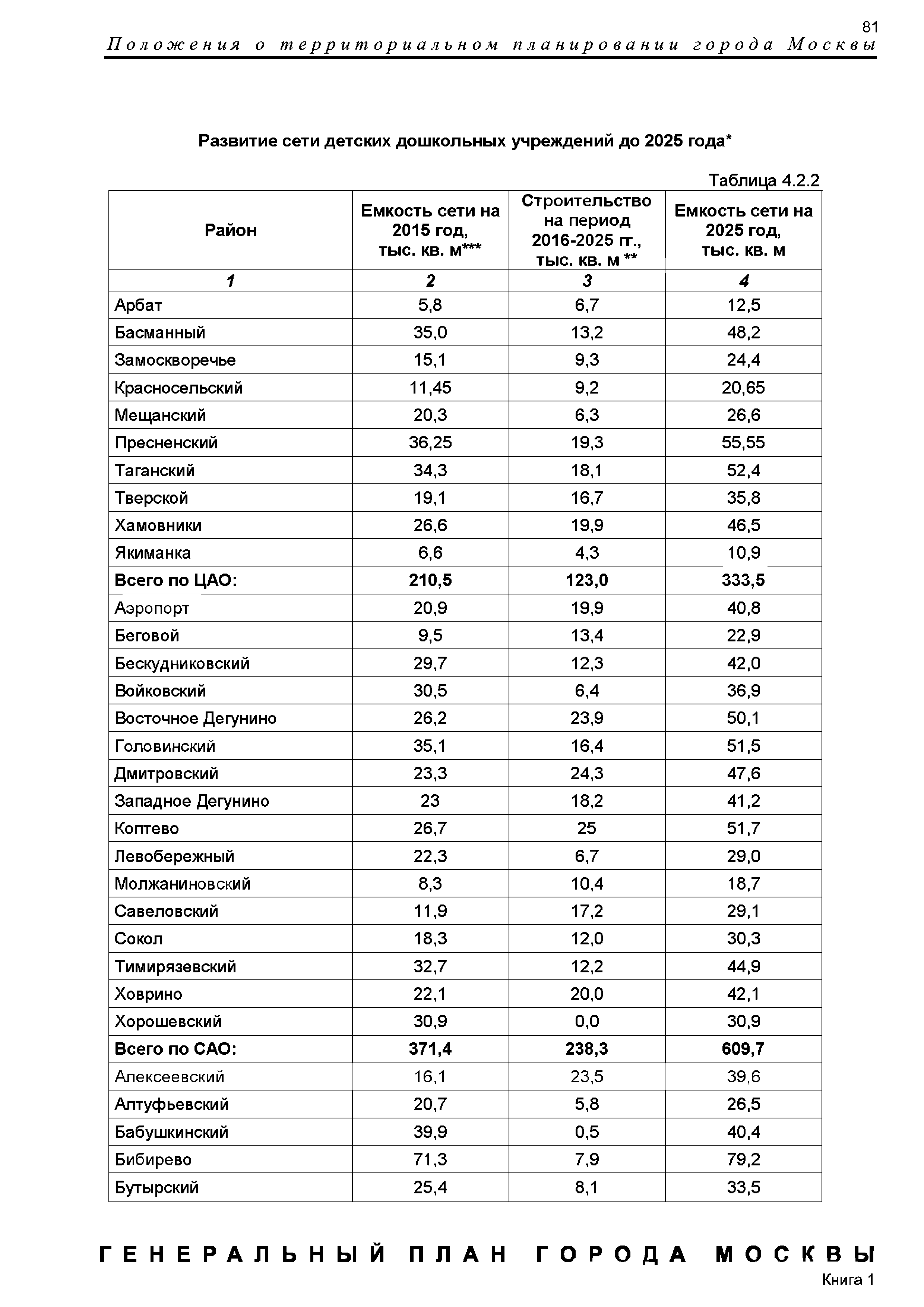 | Оглавление: | Содержание Часть 1. Социально-экономические предпосылки развития города Москвы 1. Общие положения 1.1. Цели и задачи социально-экономического развития города Москвы 1.2. Повышение качества жизни и уровня воспроизводства населения 1.3. Устойчивое и сбалансированное развитие отраслей экономики города Москвы и рост валового регионального продукта 1.4. Повышение эффективности использования накопленного потенциала и ресурсов города 1.5. Мероприятия социально-экономического развития города Москвы Часть 2. Территориальное планирование развития города Москвы 1. Цели территориального планирования пространственного развития города Москвы на период до 2025 года 2. Задачи территориального планирования пространственного развития города Москвы на период до 2025 года, направленные на обеспечение общественных интересов, социальных гарантий, последовательное повышение качества городской среды и устойчивости развития города 3. Основные группы мероприятий территориального планирования города Москвы 3.1. Мероприятия в области планировочной организации и функционального зонирования территории 3.2. Инженерно-технические мероприятия по охране окружающей среды и защите населения и территории от опасных воздействий природного и техногенного характера 3.3. Мероприятия по сохранению, восстановлению объектов культурного наследия и реабилитации исторической среды 3.4. Мероприятия по сохранению и реабилитации особо охраняемых природных территорий 3.5. Мероприятия по размещению и строительству, реконструкции, реновации, капитальному ремонту объектов капитального строительства жилищного, общественного, административного, делового, производственного назначения 3.6. Мероприятия по развитию, размещению и строительству, реконструкции систем и объектов транспортной инфраструктуры и совершенствованию их функционирования 3.7. Мероприятия по развитию, размещению и строительству, реконструкции систем и объектов инженерной инфраструктуры и совершенствованию их функционирования 3.8. Мероприятия по развитию, размещению и строительству, реконструкции социально значимых объектов социальной инфраструктуры 3.9. Мероприятия в области ландшафтного и садово-паркового строительства, комплексного благоустройства и художественного оформления территории 4. Показатели территориального планирования развития города Москвы 4.1. Основные показатели развития особо охраняемых природных территорий, природных и озелененных территорий, охраны окружающей среды и защиты населения и территорий от опасных воздействий 4.2. Основные показатели развития социальной инфраструктуры 4.3. Основные показатели в области жилищного строительства 4.4. Основные показатели развития транспортной инфраструктуры 4.5. Основные показатели развития инженерной инфраструктуры Часть 3. Обеспечение совместных интересов субъектов Российской Федерации - города федерального значения Москвы и Московской области в сфере территориального планирования 1. Цели и задачи территориального планирования в части обеспечения совместных интересов города Москвы и Московской области 2. Мероприятия территориального планирования в части обеспечения совместных интересов города Москвы и Московской области 2.1. Формирование эффективной системы расселения города Москвы и Московской области 2