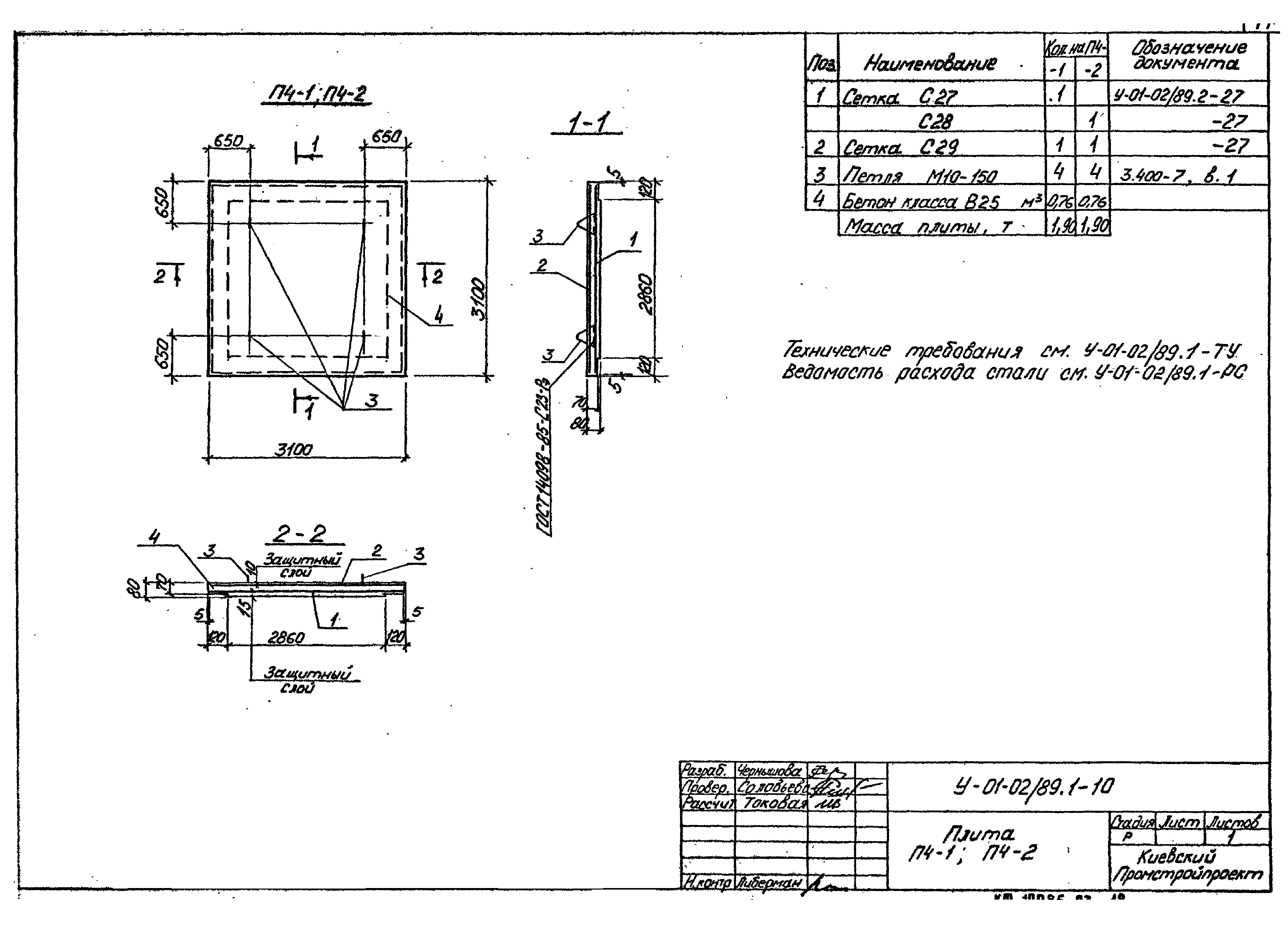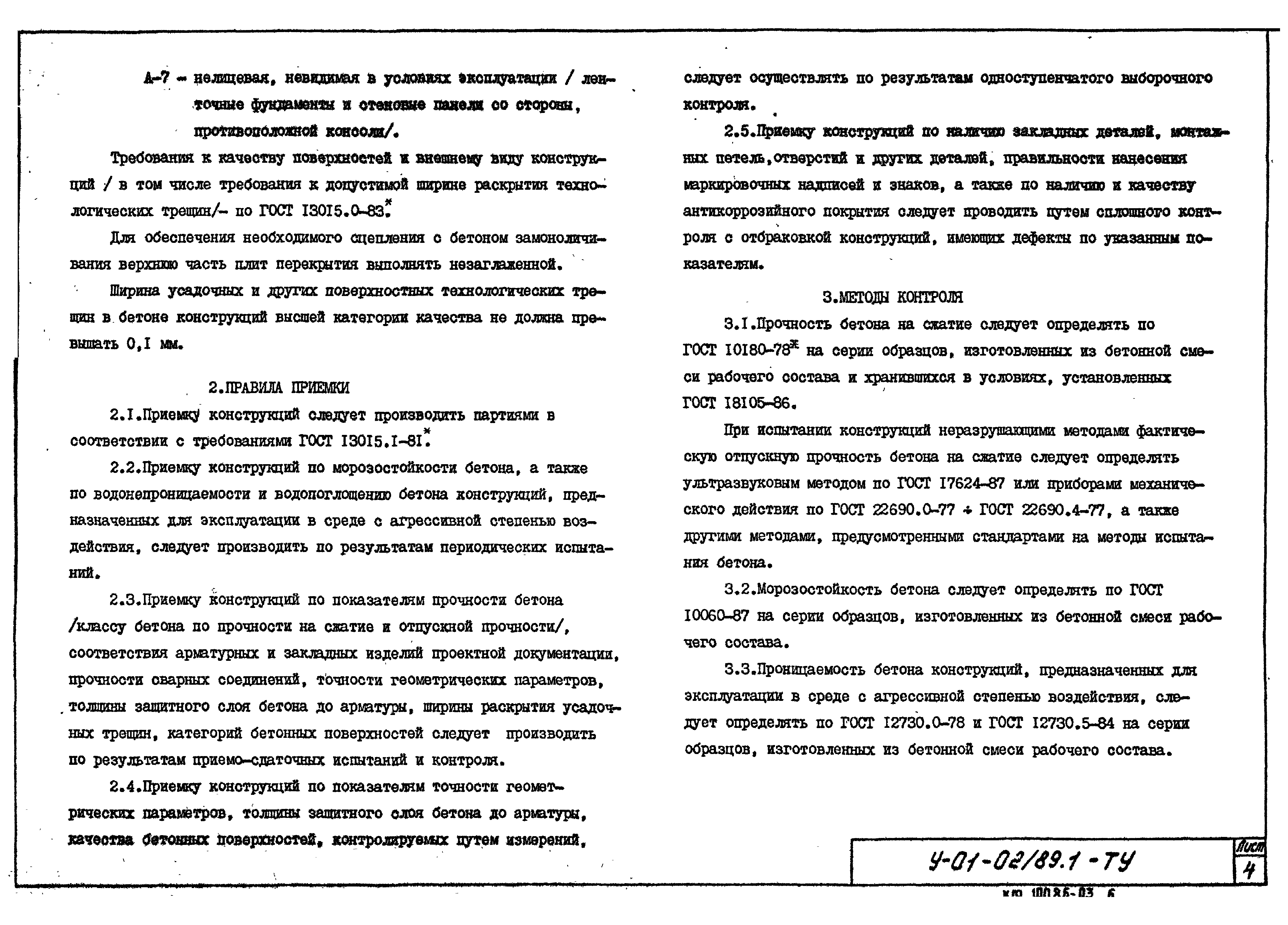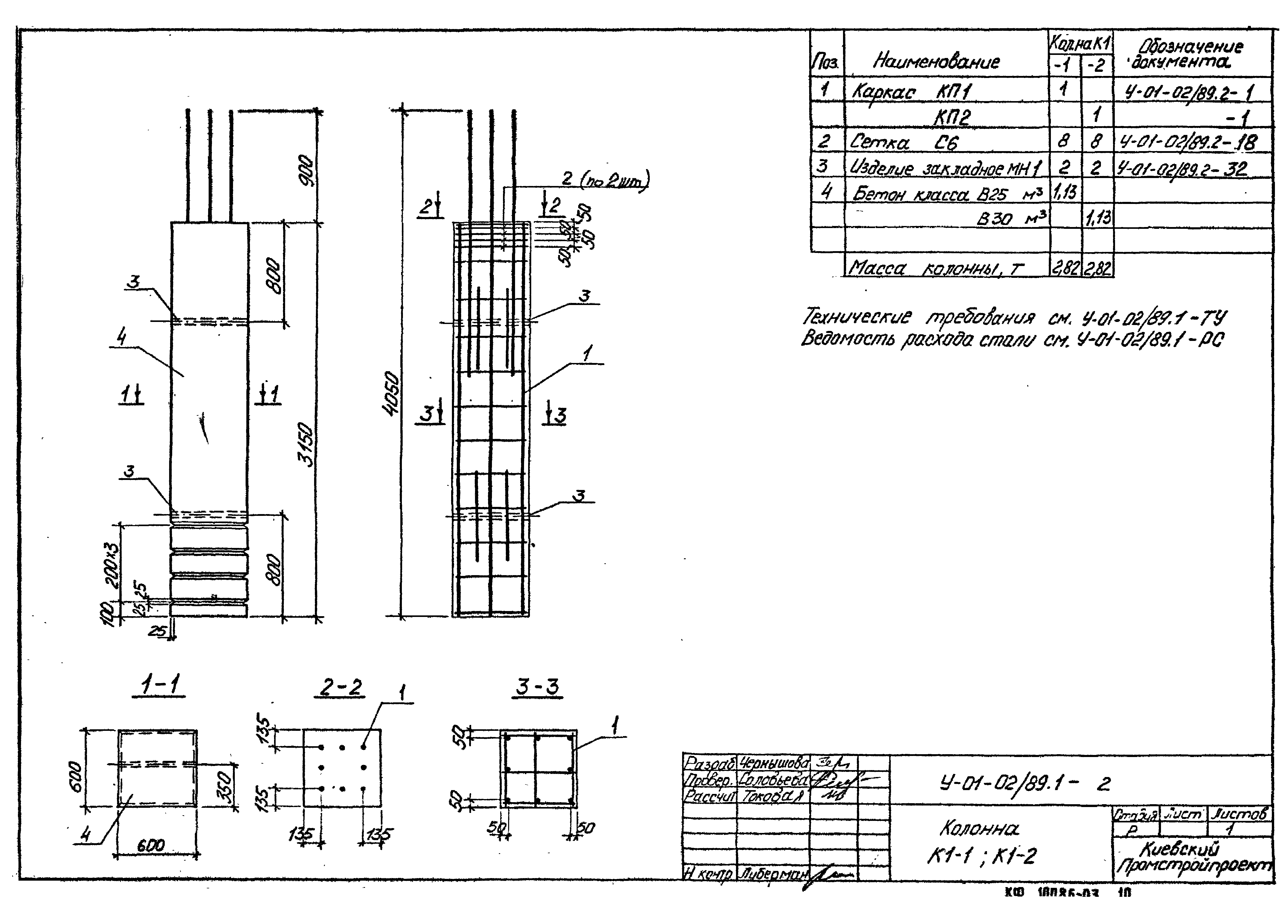 | Оглавление: | У-01-02/89.1-ТУ Технические условия У-01-02/89.1-1 Ленточный фундамент ФЛ1-1, ФЛ2-1 У-01-02/89.1-2 Колонна К1-1, К1-2 У-01-02/89.1-3 Колонна К2-1 - К2-4 У-01-02/89.1-4 Капитель КТ1-1, КТ1-2, КТ2-1, КТ2-2 У-01-02/89.1-5 Панель стеновая ПС1-1, ПС1-2, ПС2-1 - ПС2-4 У-01-02/89.1-6 Панель стеновая ПС3-1, ПС3-2, ПС4-1, ПС4-2 У-01-02/89.1-7 Плита П1-1 - П1-6 У-01-02/89.1-8 Плита П2-1, П2-2 У-01-02/89.1-9 Плита П3-1 - П3-3 У-01-02/89.1-10 Плита П4-1, П4-2 У-01-02/89.1-11 Плита П5-1 - П5-3 У-01-02/89.1-12 Плита П6-1 - П6-3 У-01-02/89.1-РС Ведомость расхода стали |