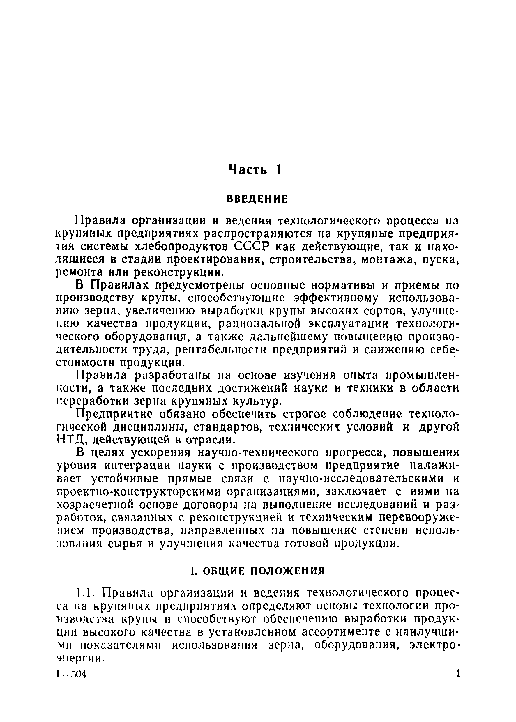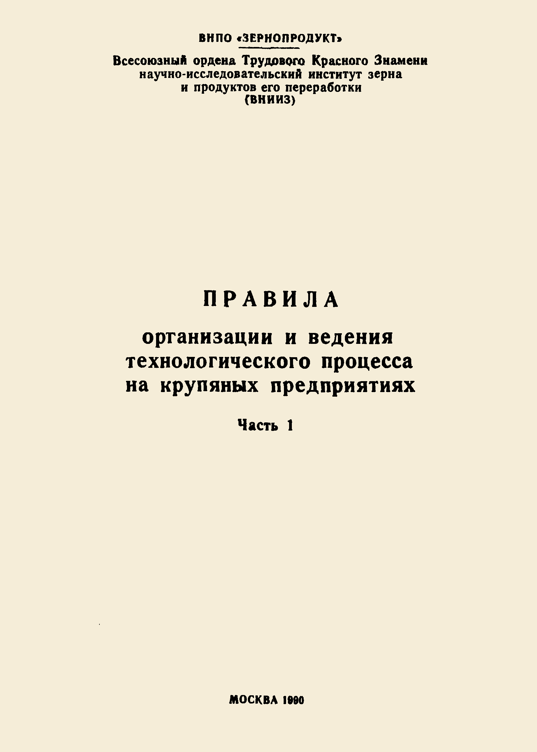| Название рус.: | Правила организации и ведения технологического процесса на крупяных предприятиях. Часть 1 |