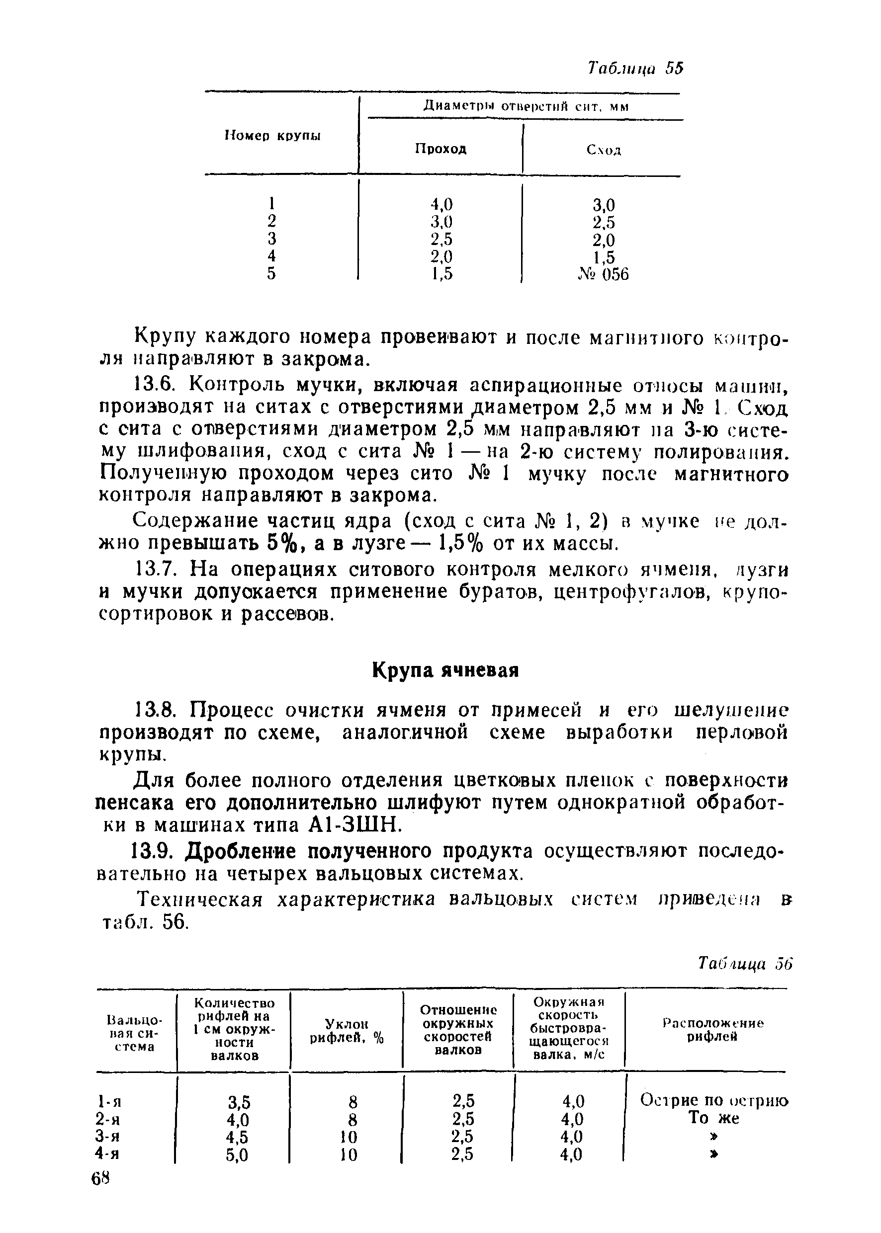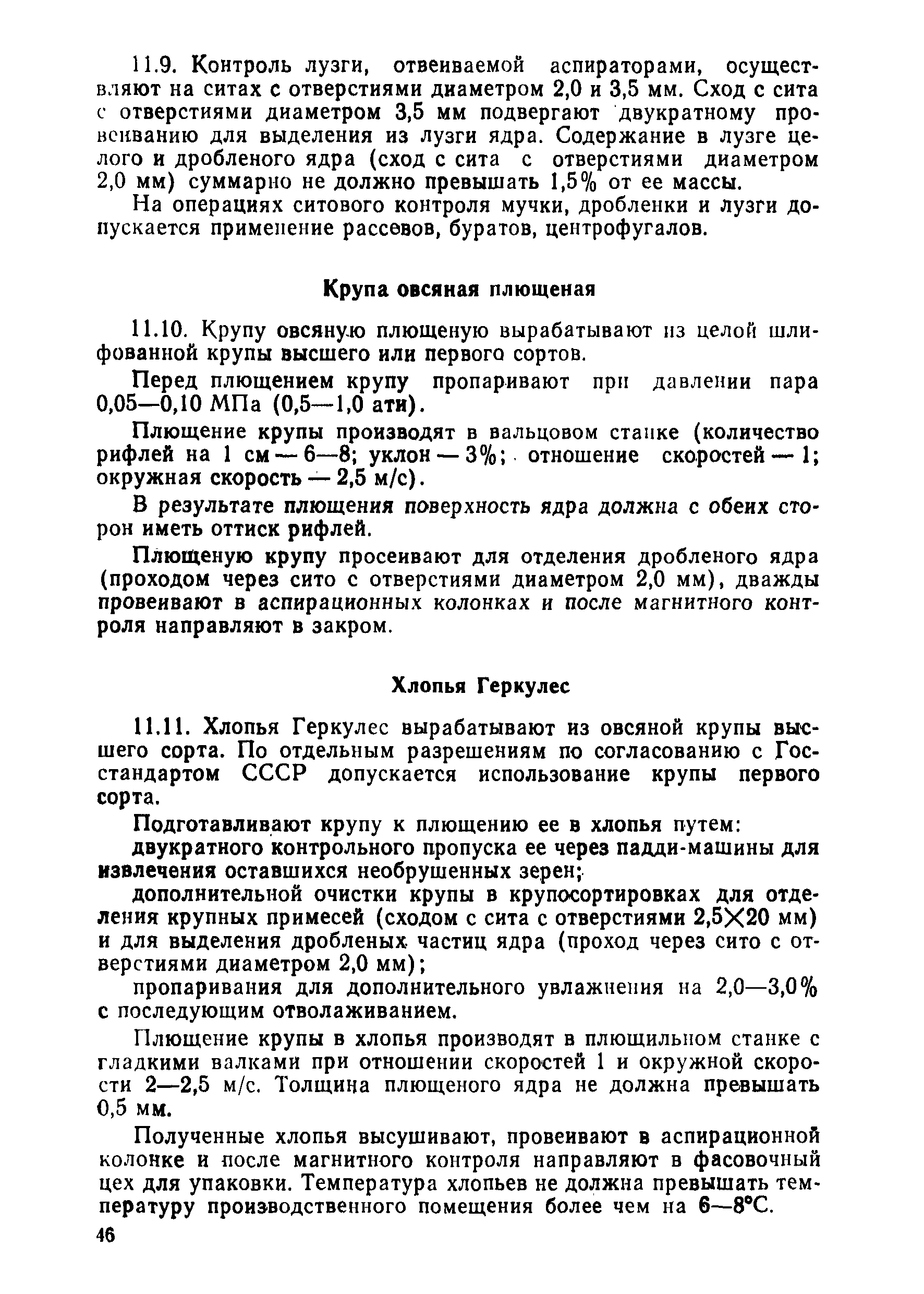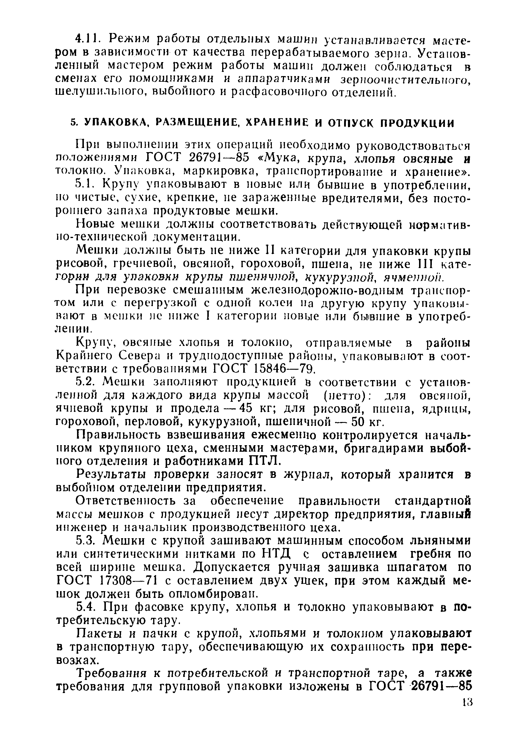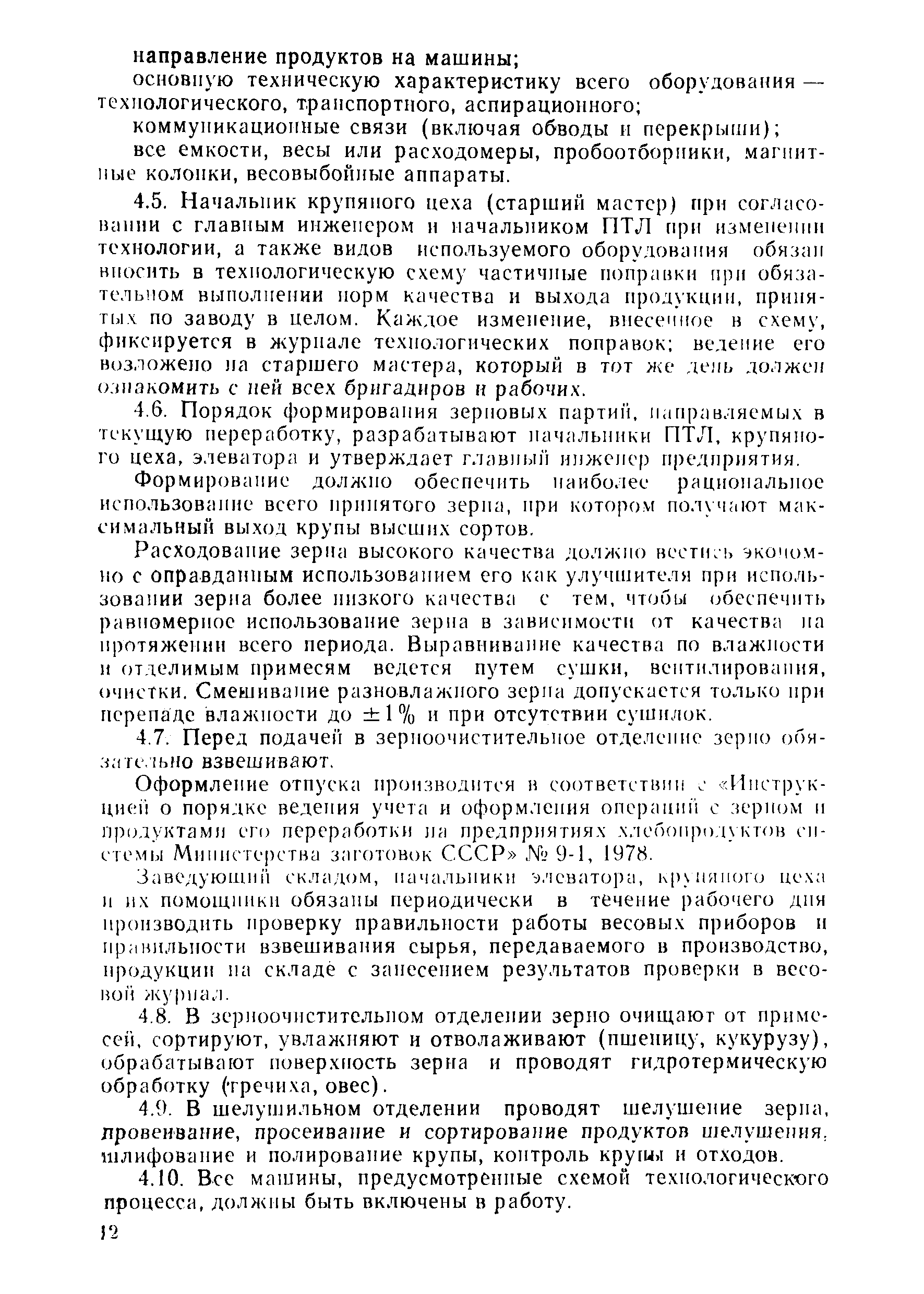| Оглавление: | Введение 1 Общие положения 2 Ассортимент продукции 3 Прием, размещение зерна и порядок передачи его в переработку 4 Организация и ведение технологического процесса 5 Упаковка, размещение, хранение и отпуск продукции 6 Контроль технологического процесса, качества сырья и готовой продукции 7 Учет зерна, продуктов переработки и тары 8 Требования к санитарии, охране труда и пожарной безопасности 9 Технология производства рисовой крупы 10 Технология производства гречневой крупы 11 Технология производства крупы и хлопьев из овса 12 Технология производства пшена 13 Технология производства крупы из ячменя 14 Технология производства пшеничной шлифованной крупы |