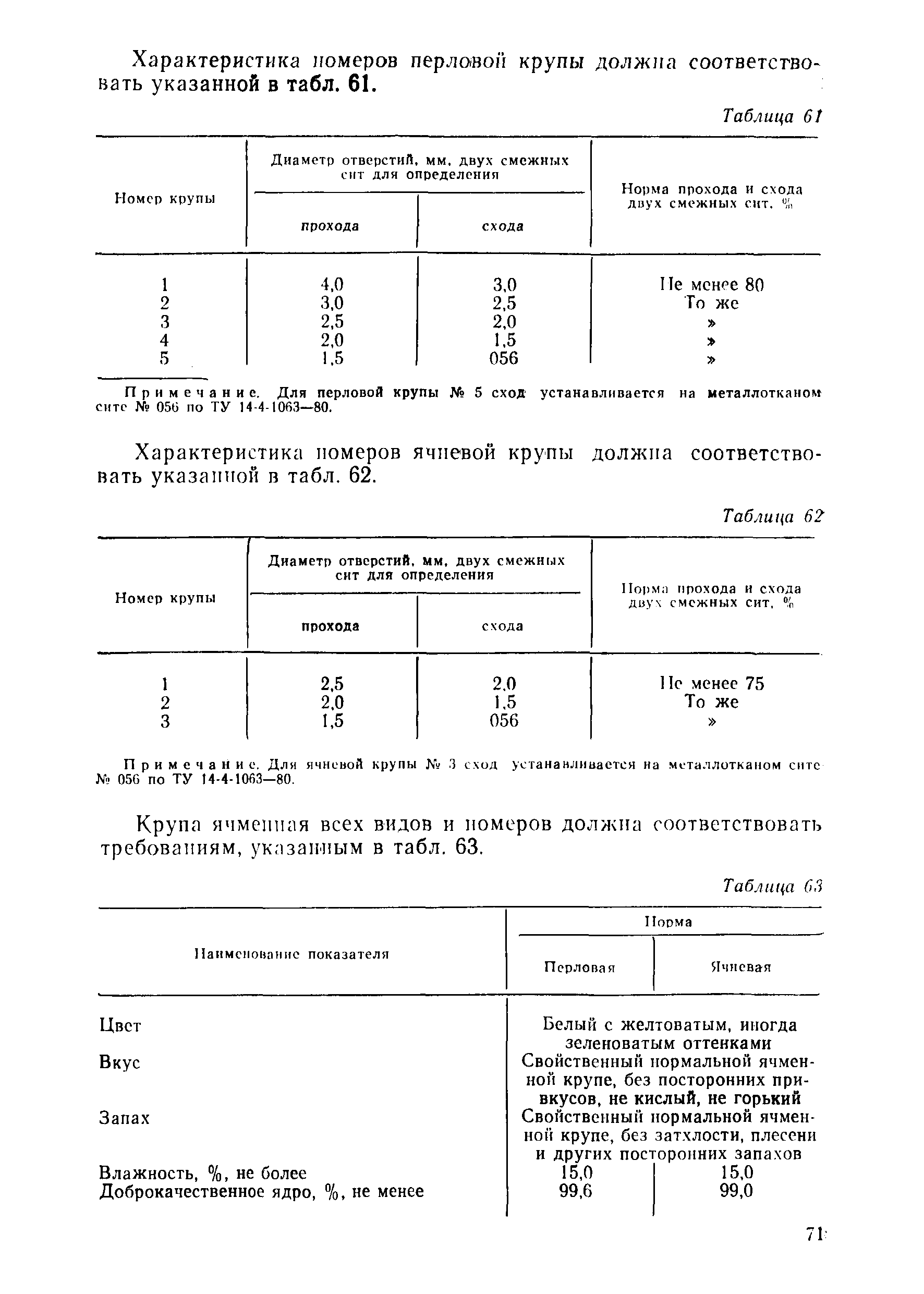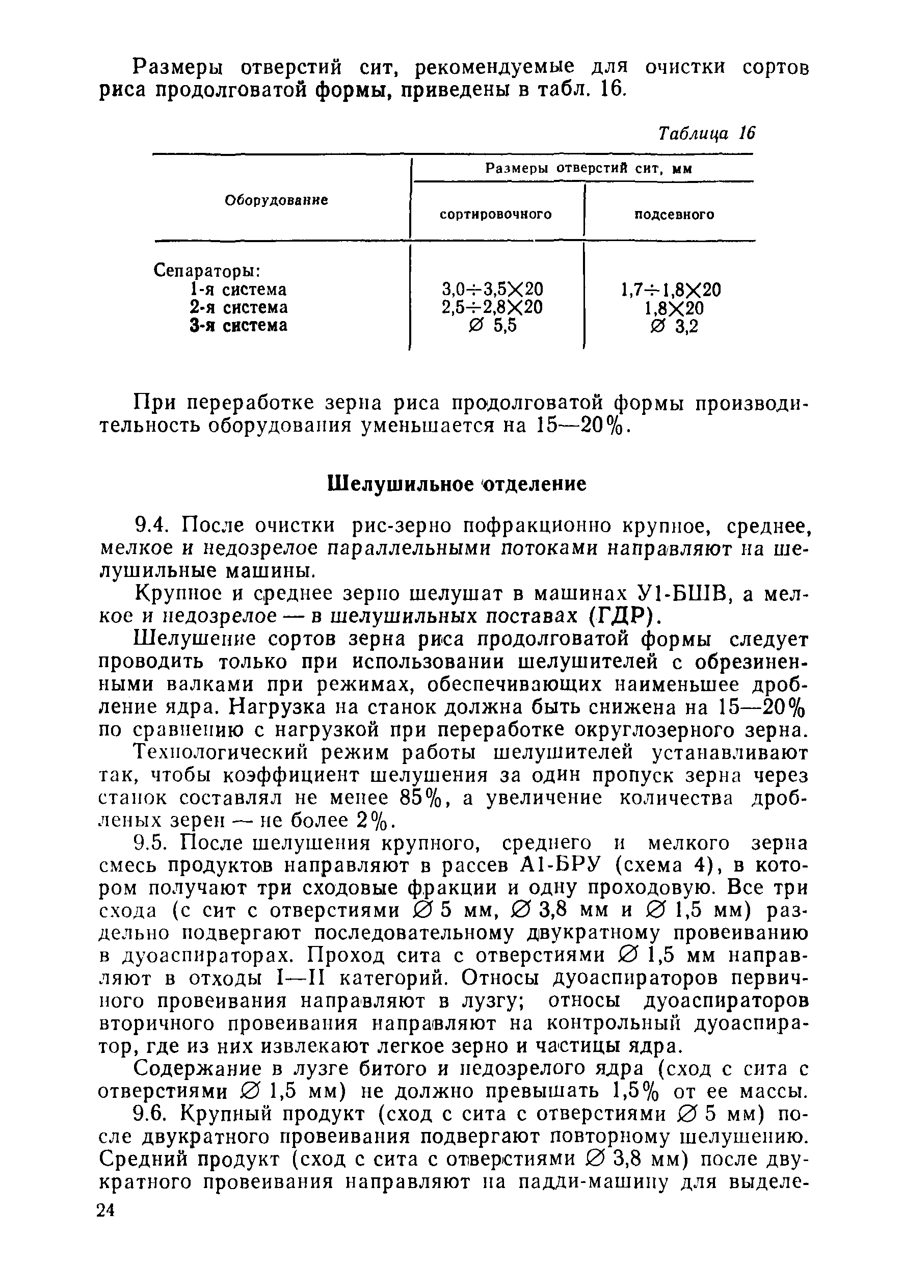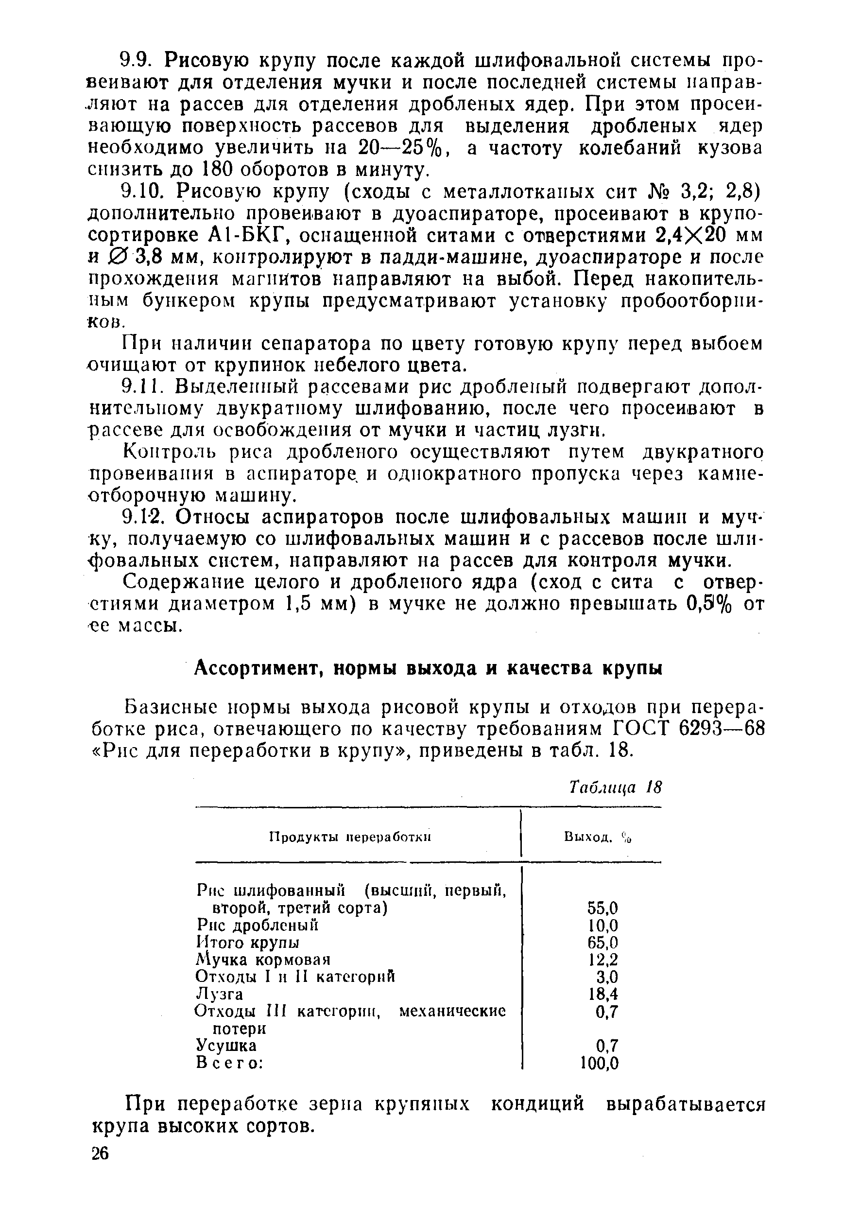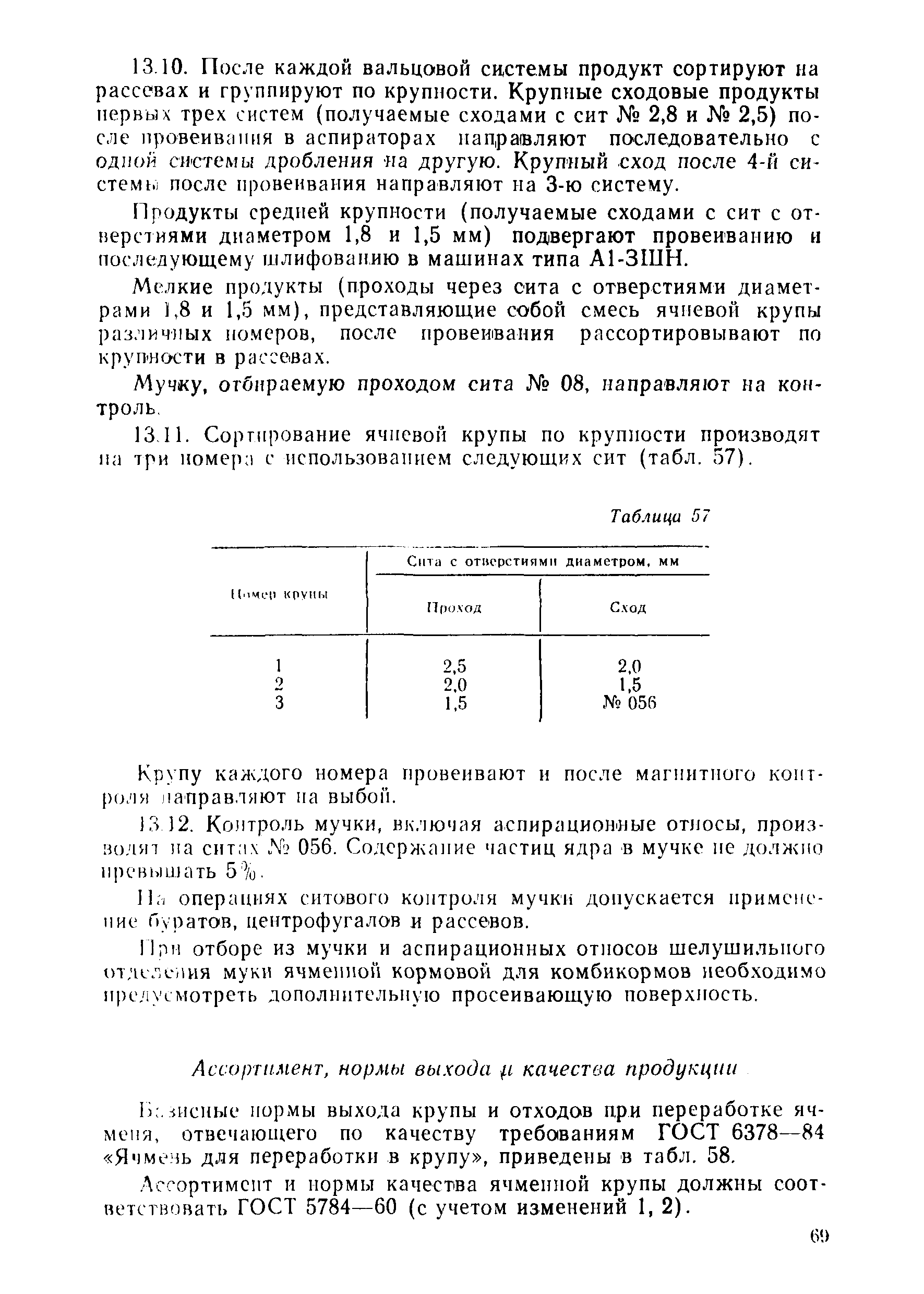 | Оглавление: | Введение 1 Общие положения 2 Ассортимент продукции 3 Прием, размещение зерна и порядок передачи его в переработку 4 Организация и ведение технологического процесса 5 Упаковка, размещение, хранение и отпуск продукции 6 Контроль технологического процесса, качества сырья и готовой продукции 7 Учет зерна, продуктов переработки и тары 8 Требования к санитарии, охране труда и пожарной безопасности 9 Технология производства рисовой крупы 10 Технология производства гречневой крупы 11 Технология производства крупы и хлопьев из овса 12 Технология производства пшена 13 Технология производства крупы из ячменя 14 Технология производства пшеничной шлифованной крупы |