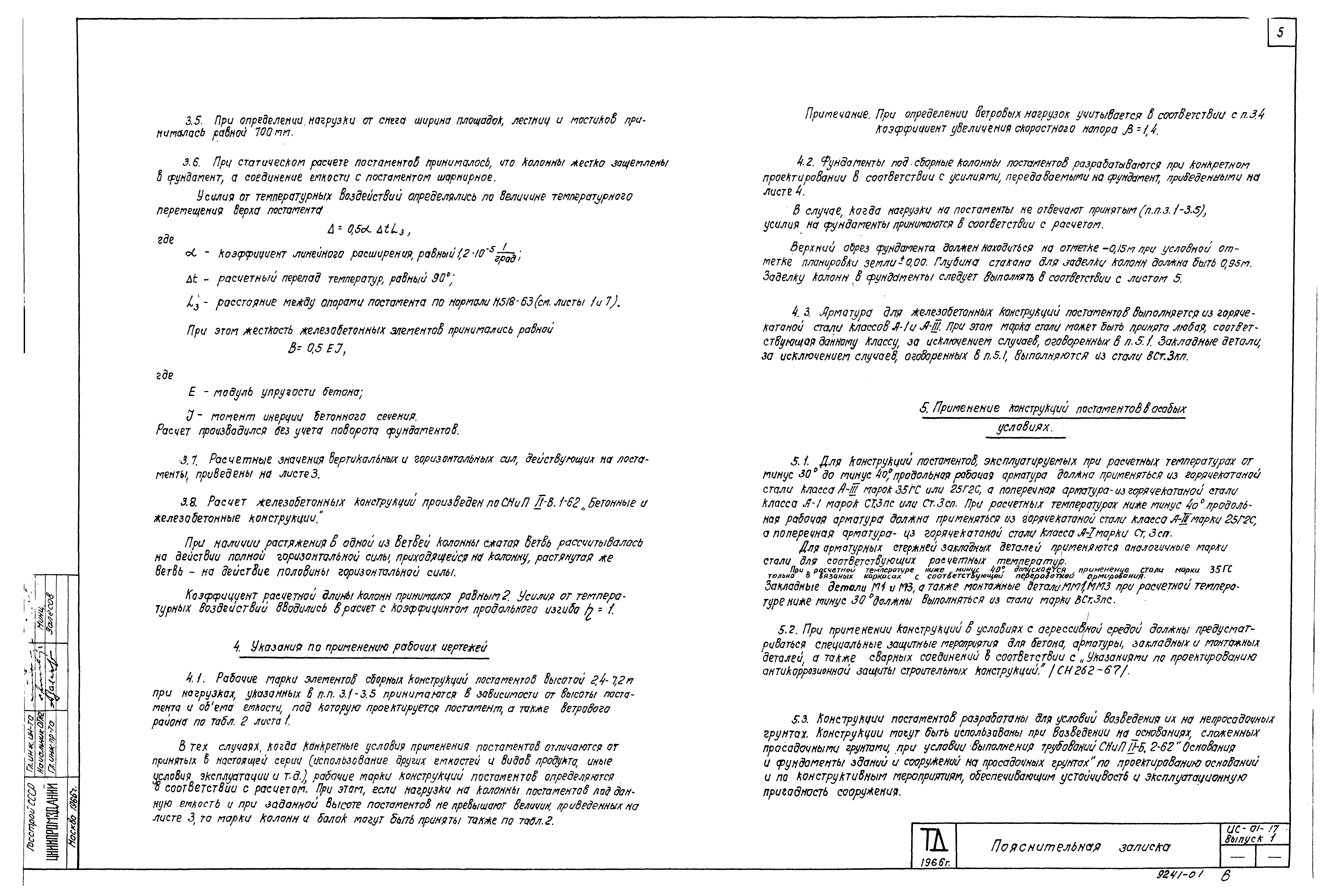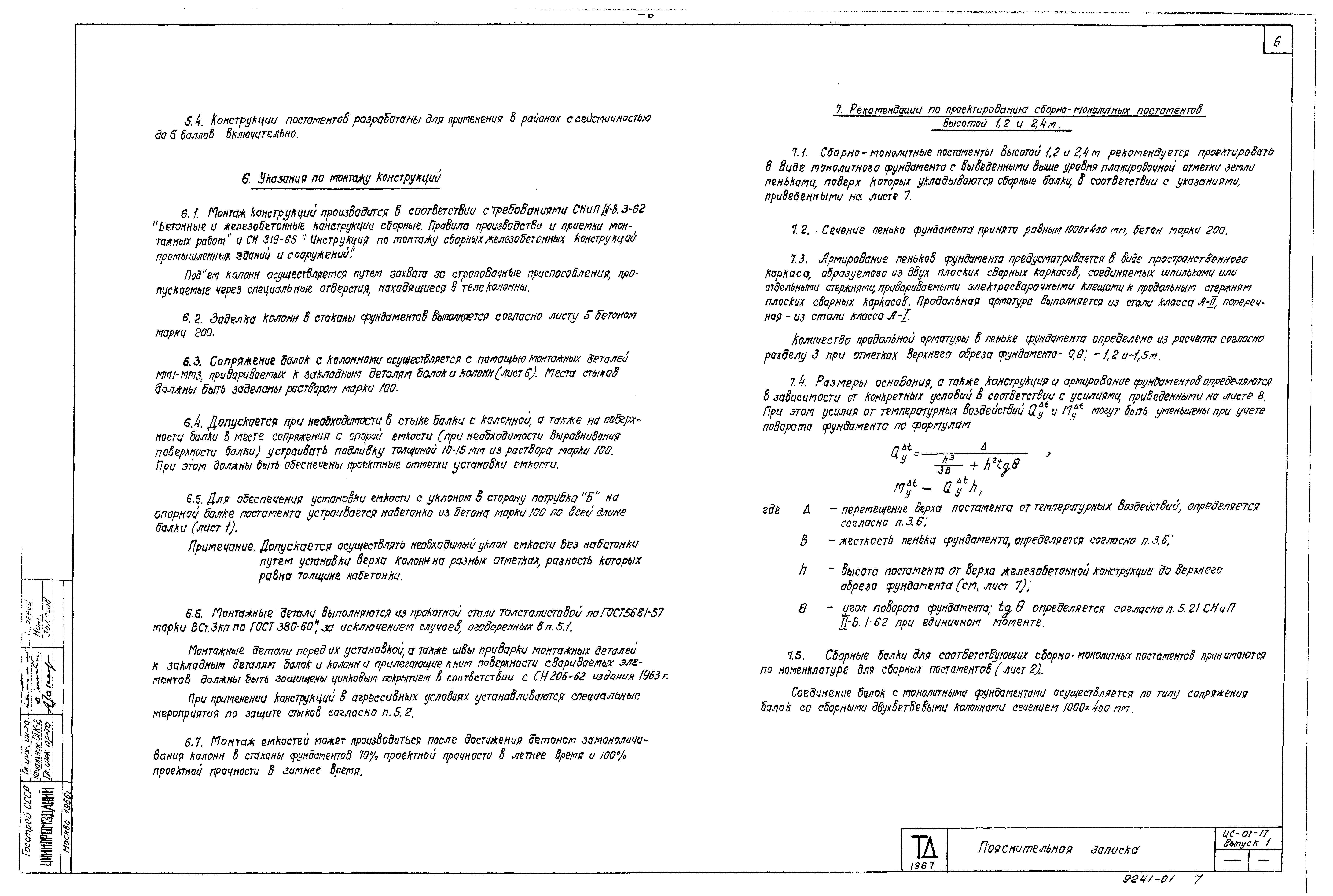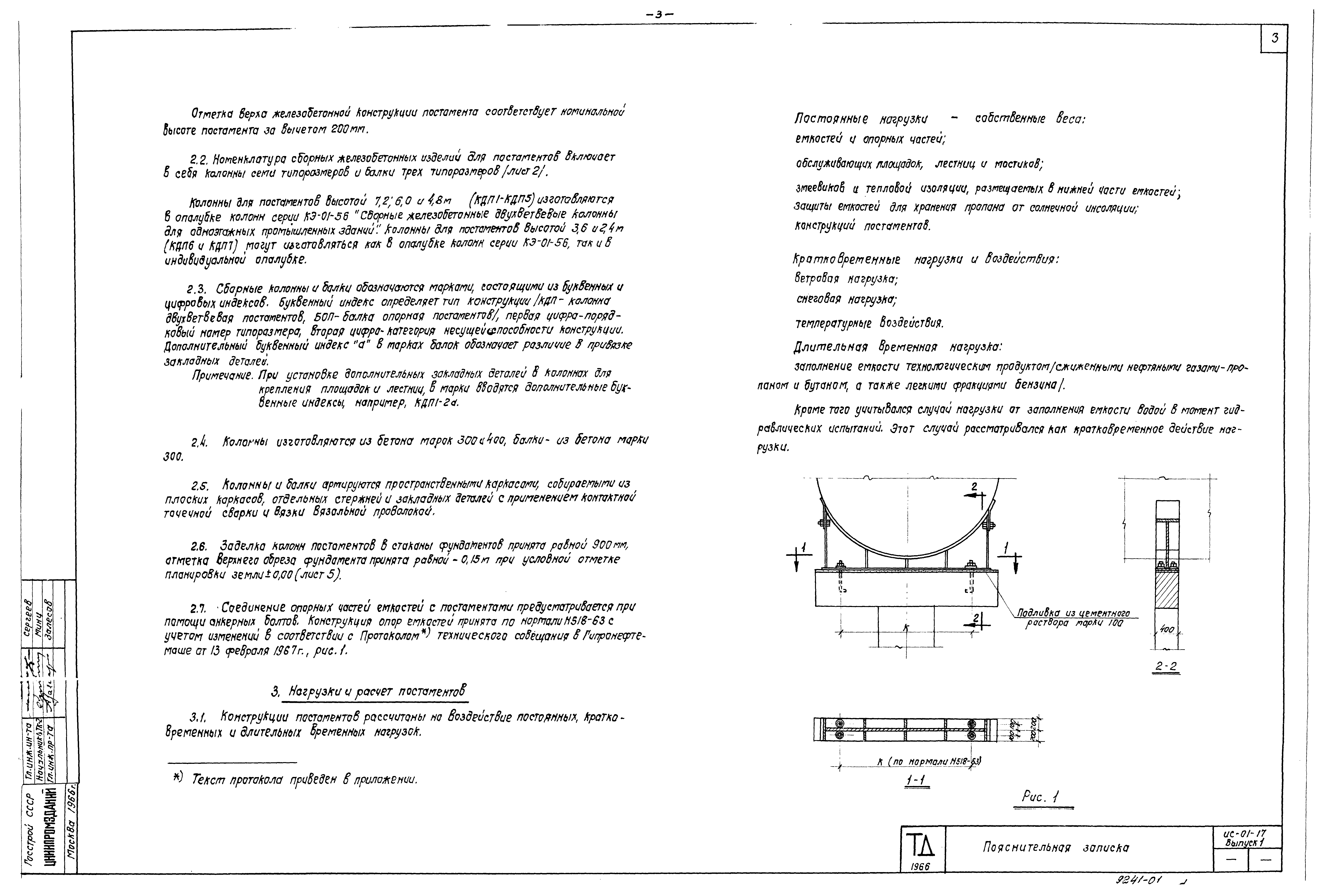 | Оглавление: | ИС-01-17 Пояснительная записка ИС-01-17 Общая часть ИС-01-17 Габаритные схемы и конструктивные решения постаментов ИС-01-17 Нагрузки и расчет постаментов ИС-01-17 Указания по применению рабочих чертежей ИС-01-17 Применение конструкций постаментов в особых условиях ИС-01-17 Указания по монтажу конструкций ИС-01-17 Рекомендации по проектированию сборно-монолитных постаментов высотой 1,2 и 2,4 м ИС-01-17 Приложение ИС-01-17 Чертежи ИС-01-17 Маркировочные схемы сборных железобетонных постаментов высотой 2,4-7,2 м и данные для подбора колонн и балок ИС-01-17 Номенклатура сборных железобетонных колонн и балок постаментов. Данные по расходу материалов ИС-01-17 Расчетные нагрузки на колонны постаментов высотой 2,4-7,2 м ИС-01-17 Расчетные нагрузки на фундаменты постаментов высотой 2,4-7,2 м ИС-01-17 Узлы сопряжения колонн с фундаментами для постаментов высотой 2,4-7,2 м ИС-01-17 Узлы сопряжения балок с колоннами. Монтажные марки ММ1-ММ3 ИС-01-17 Данные для проектирования сборно-монолитных постаментов высотой 1,2 и 2,4 м ИС-01-17 Расчетные нагрузки на фундаменты сборно-монолитных постаментов высотой 1,2 и 2,4 м |