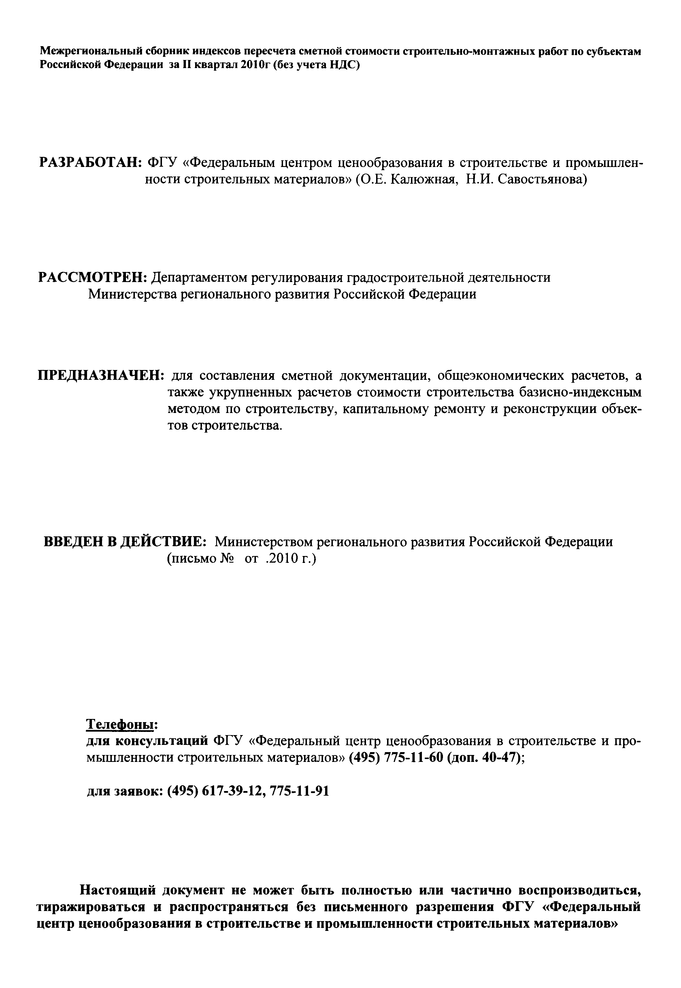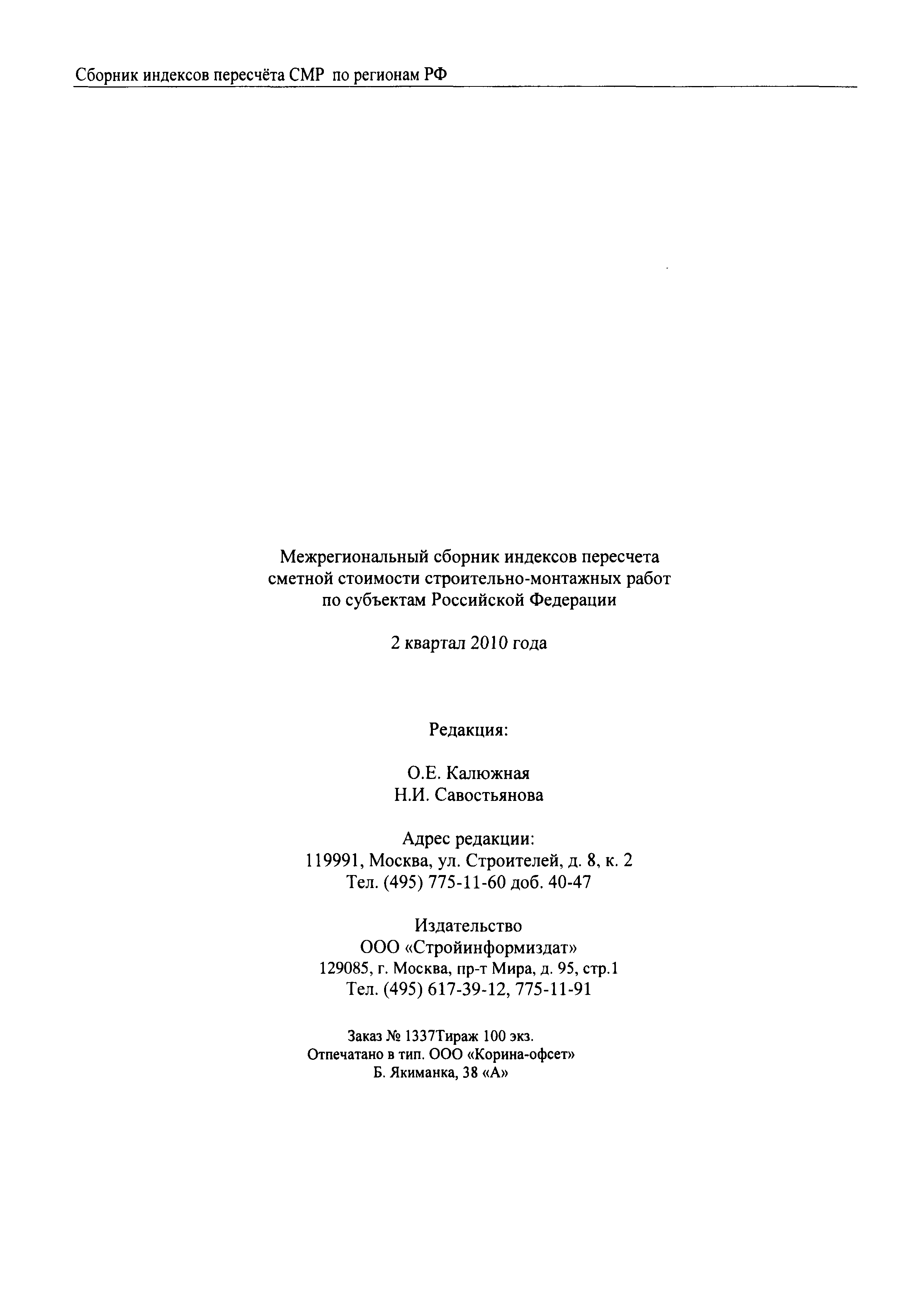 Скачать Межрегиональный сборник индексов пересчета сметной стоимости строительно-монтажных работ по субъектам Российской Федерации на II квартал 2010 г.Дата актуализации: 01.01.2021