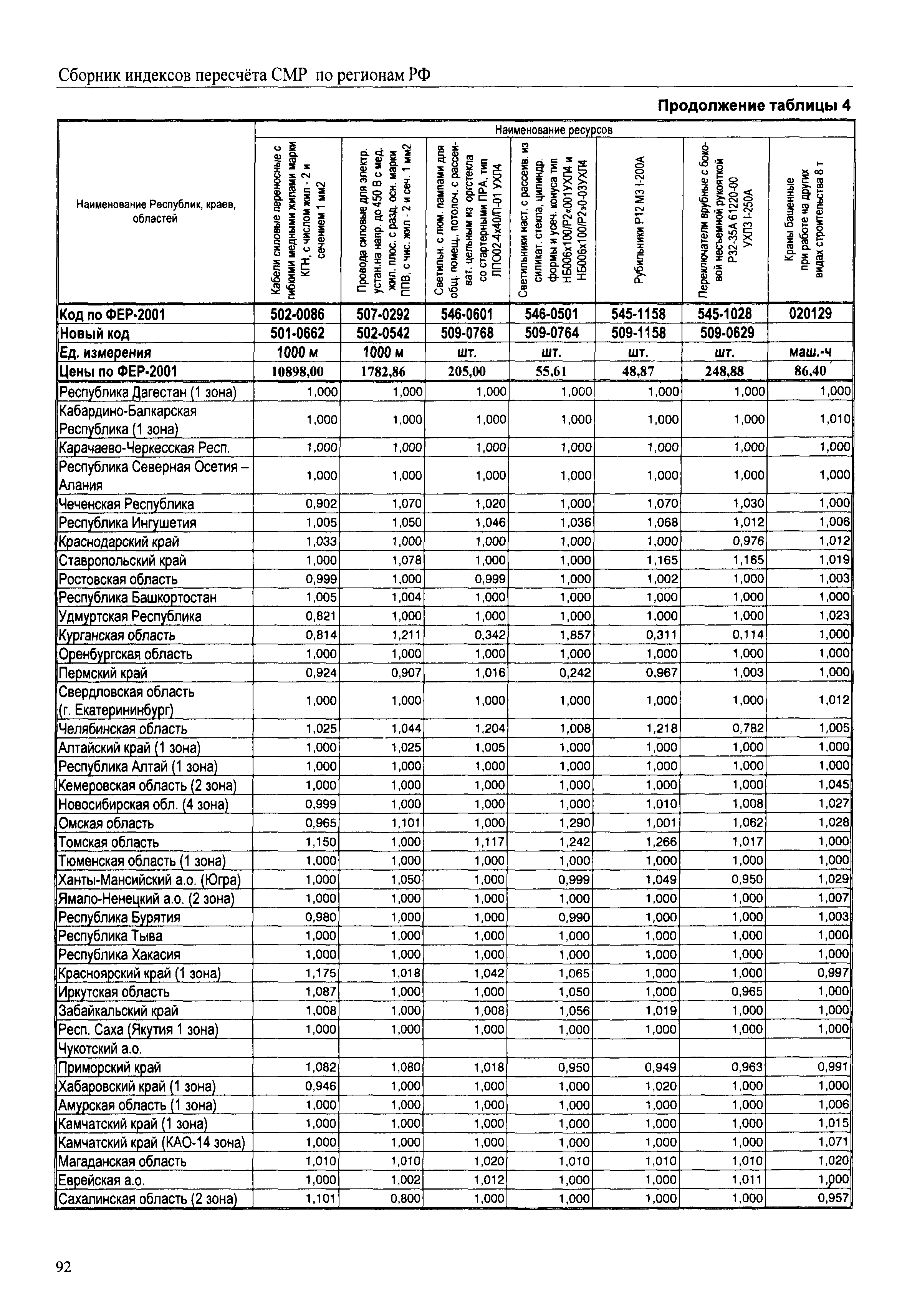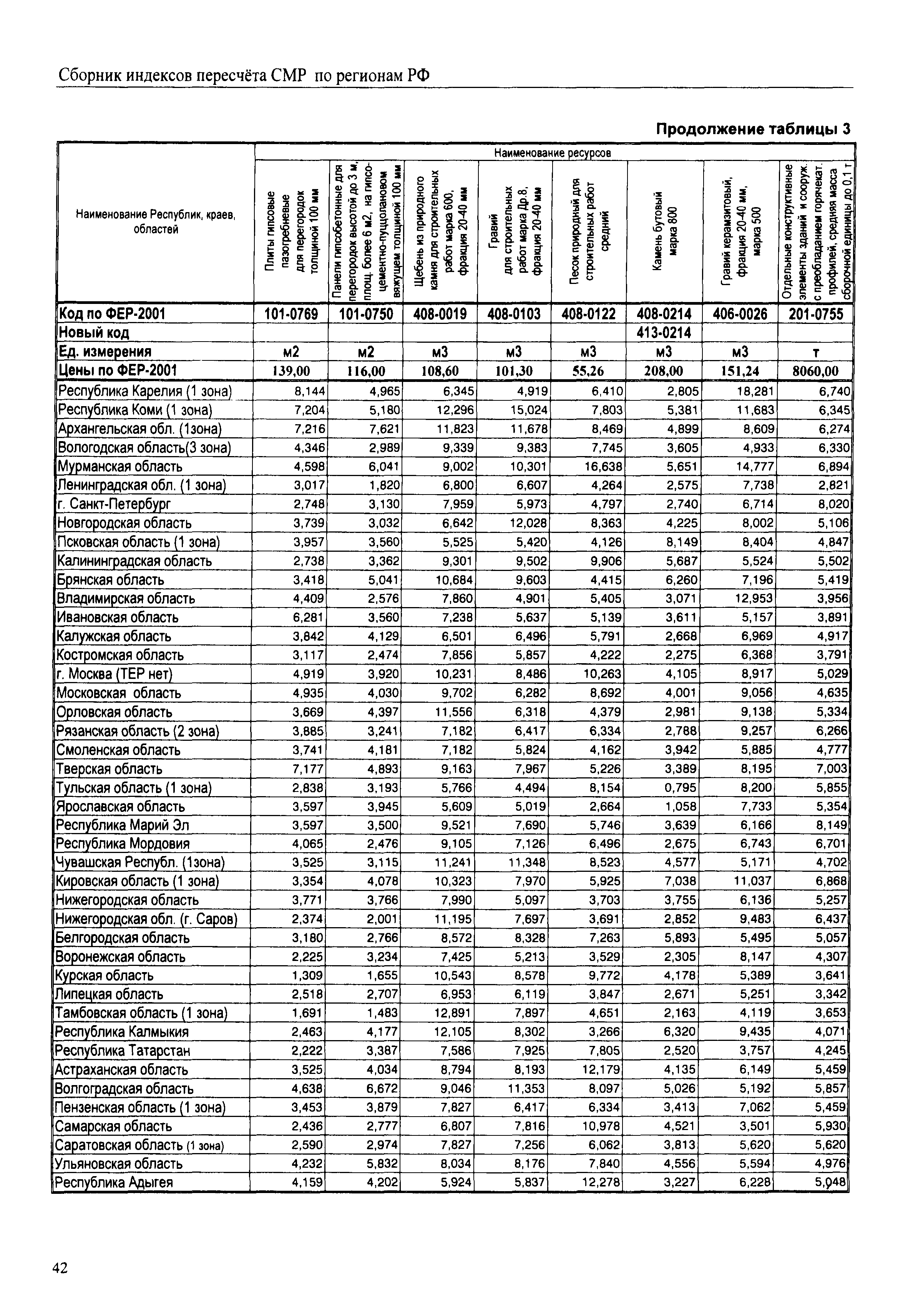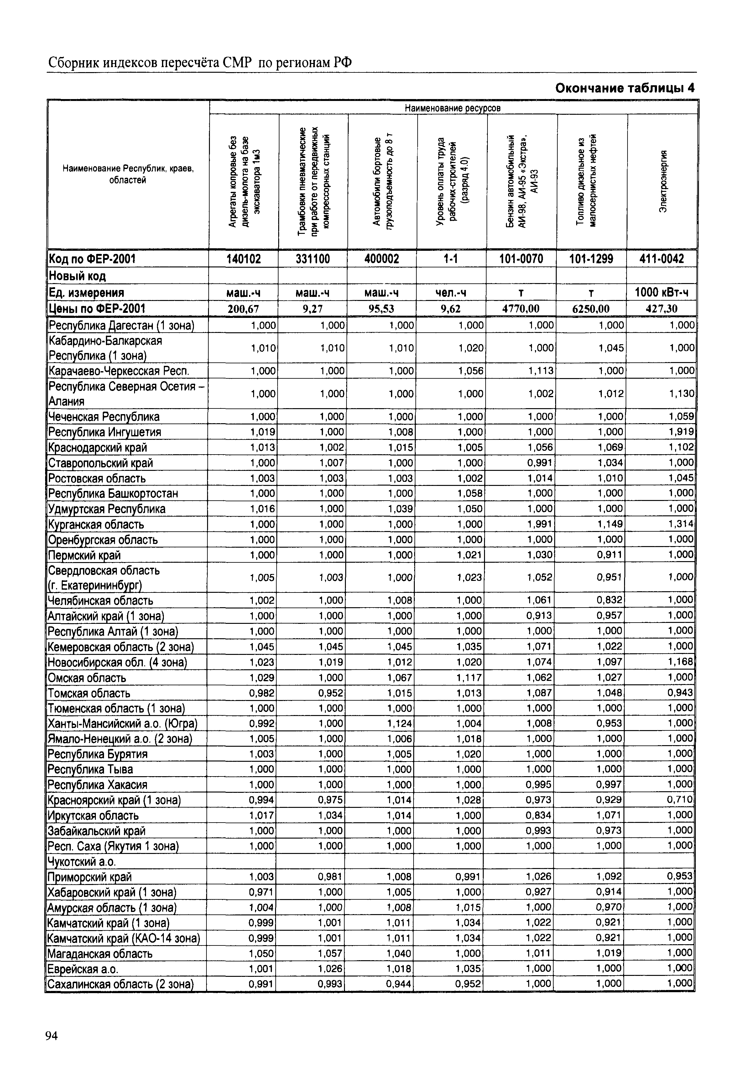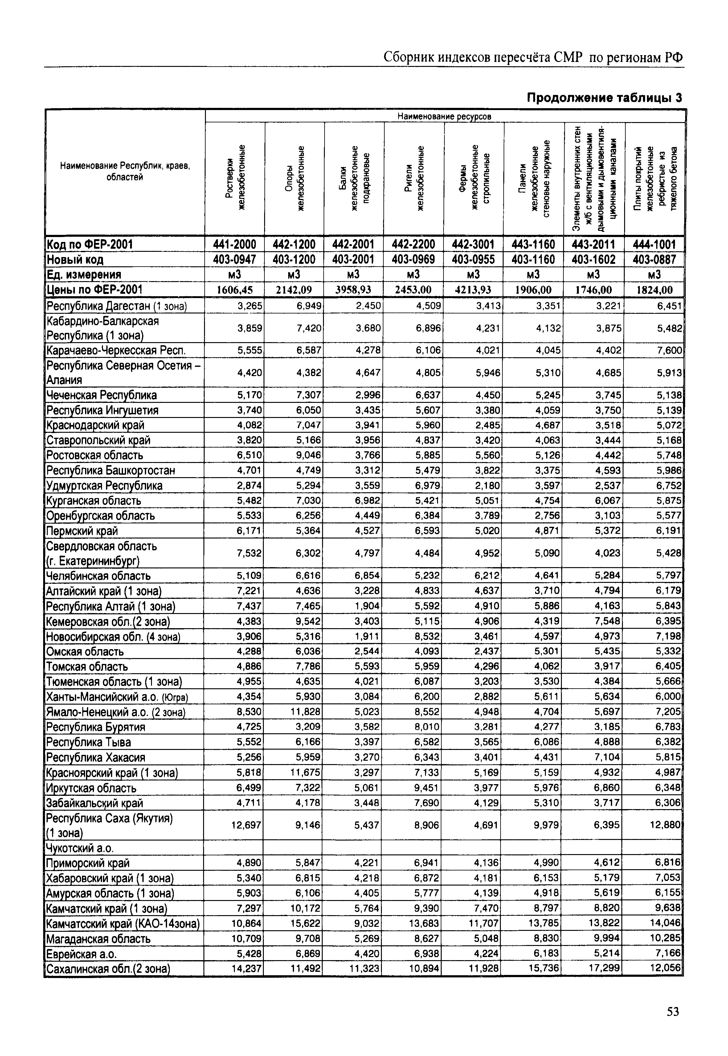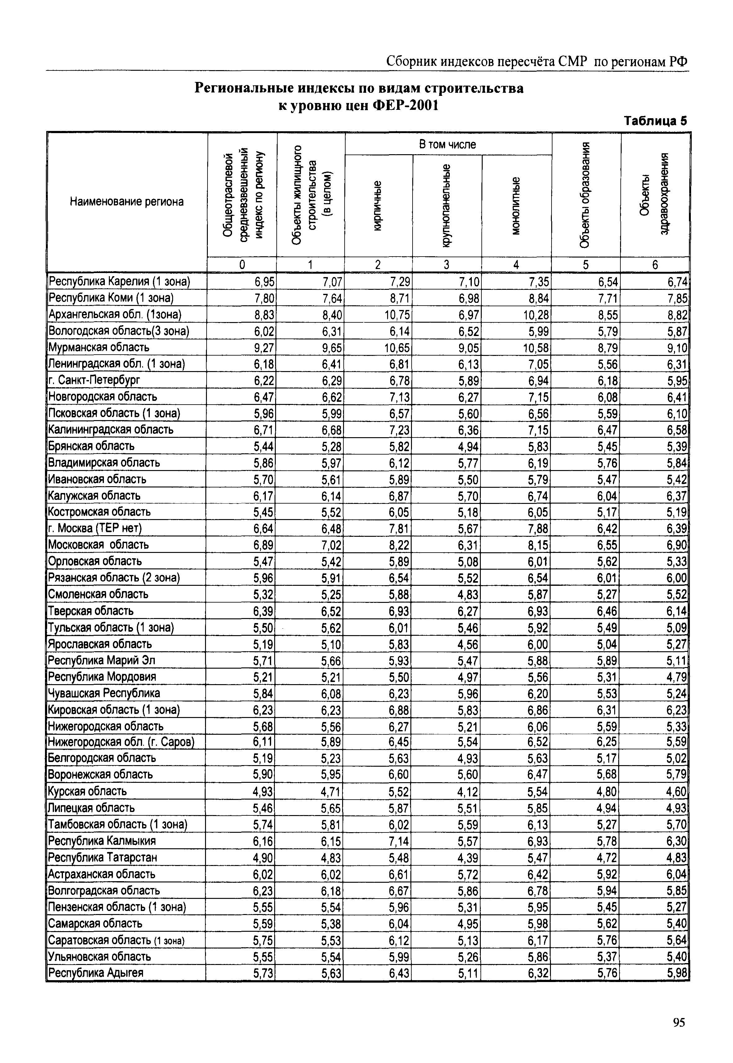 Межрегиональный сборник индексов пересчета сметной стоимости строительно-монтажных работ по субъектам Российской Федерации на II квартал 2010 г.| Статус: | не действует | | Название рус.: | Межрегиональный сборник индексов пересчета сметной стоимости строительно-монтажных работ по субъектам Российской Федерации на II квартал 2010 г. | | Дата добавления в базу: | 01.09.2013 | | Дата актуализации: | 01.09.2013 | | Область применения: | В сборнике приведены сводные таблицы текущих (II квартал 2010 г.) региональных цен на основные ресурсы, применяемые в строительстве, региональные индексы пересчета базисной стоимости строительно-монтажных работ, определяемой с использованием сборников новой сметно-нормативной базы (ФЕР-2001, ТЕР-2001), в территориальный текущий уровень. Индексы разработаны по единой методике, на основании отчетных данных региональных органов по ценообразованию в строительстве о стоимости строительных ресурсов, применяемых в регионе | | Оглавление: | Общая часть Техническая часть (к таблицам 1, 2, 3, 4) Цены на строительную продукцию во II квартале 2010 г. Анализ роста индексов и стоимости 1м2 по субъектам Российской Федерации во II кв. 2010 года. - таблица А Расчетная стоимость 1 м2 общей площади квартир и индексы изменения стоимости строительства по субъектам Российской Федерации за II квартал 2010 г. -Таблица 1 Сметная стоимость строительных ресурсов (без НДС) в руб. -Таблица 2 Индексы на отдельные виды ресурсов (к заложенным в ФЕР-2001) -Таблица 3 Индексы роста стоимости строительных ресурсов к предыдущему кварталу -Таблица 4 Региональные индексы к ФЕР-2001 по основным видам объектов строительства - Таблица 5 Индексы на оборудование за II квартал 2010 г Индексы на прочие работы и затраты за II квартал 2010 г |
