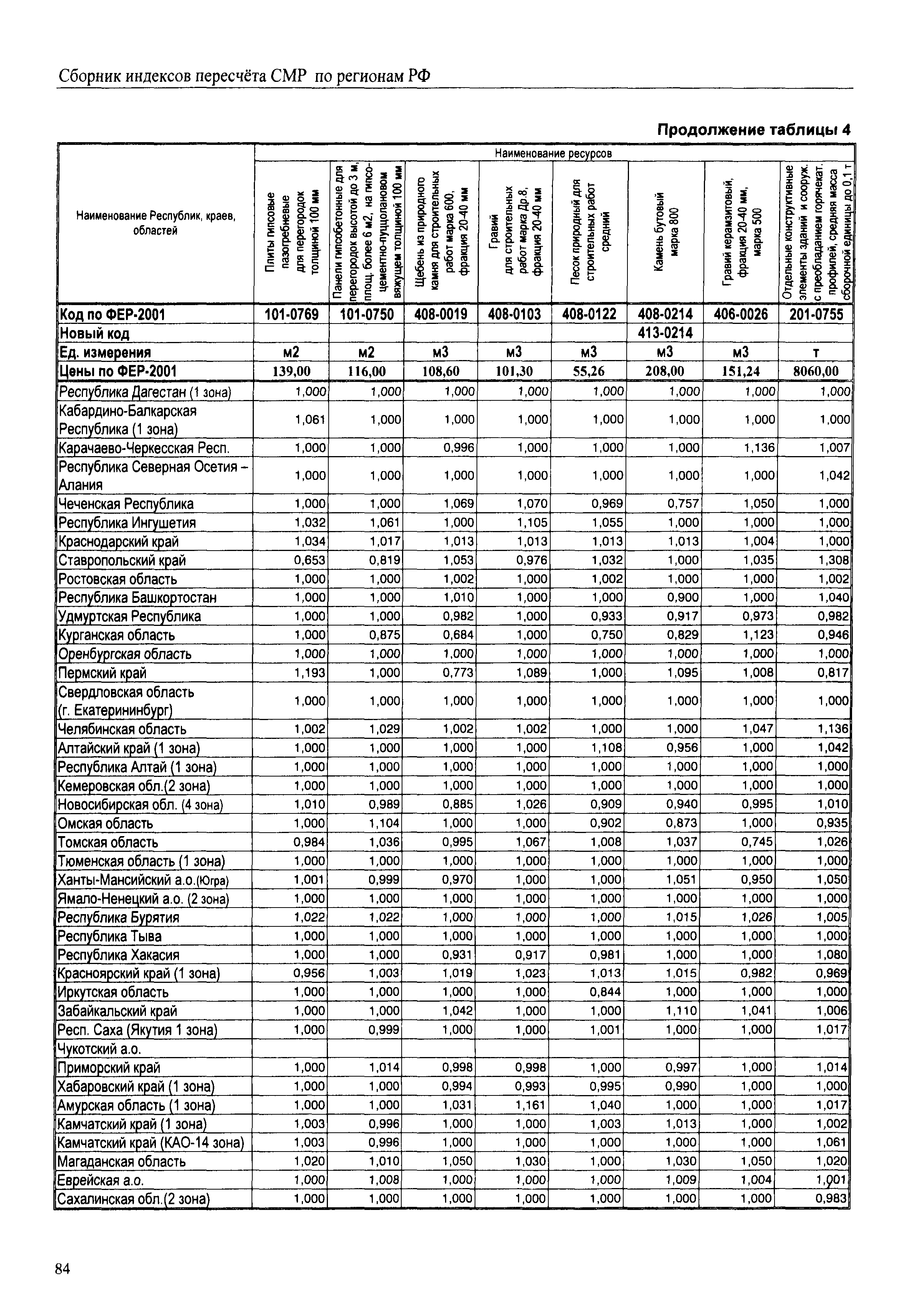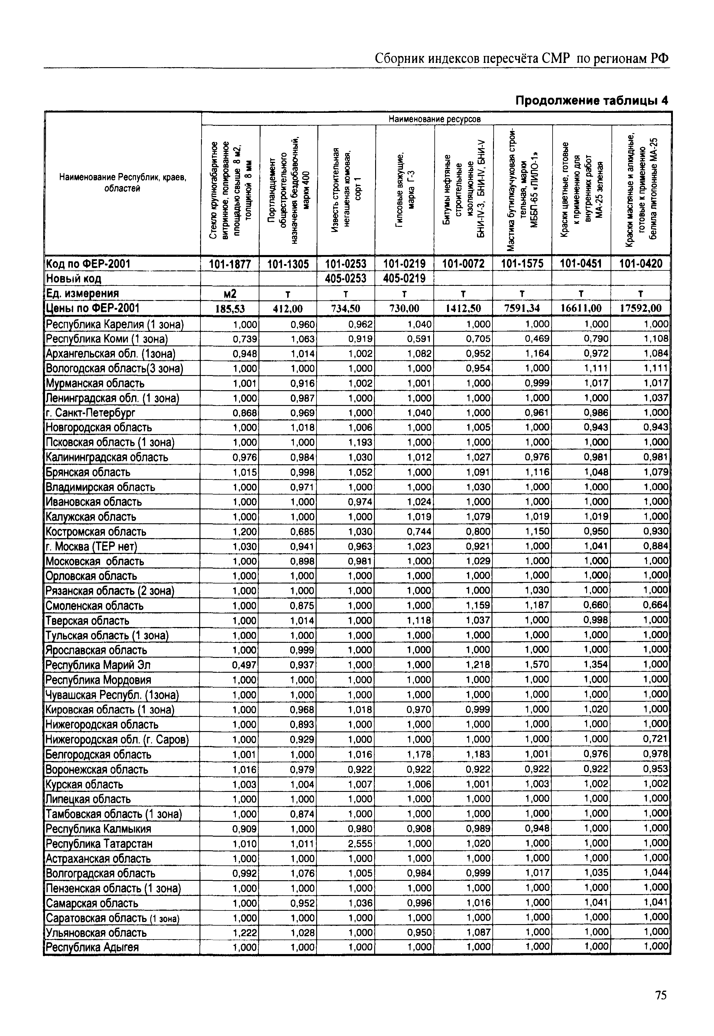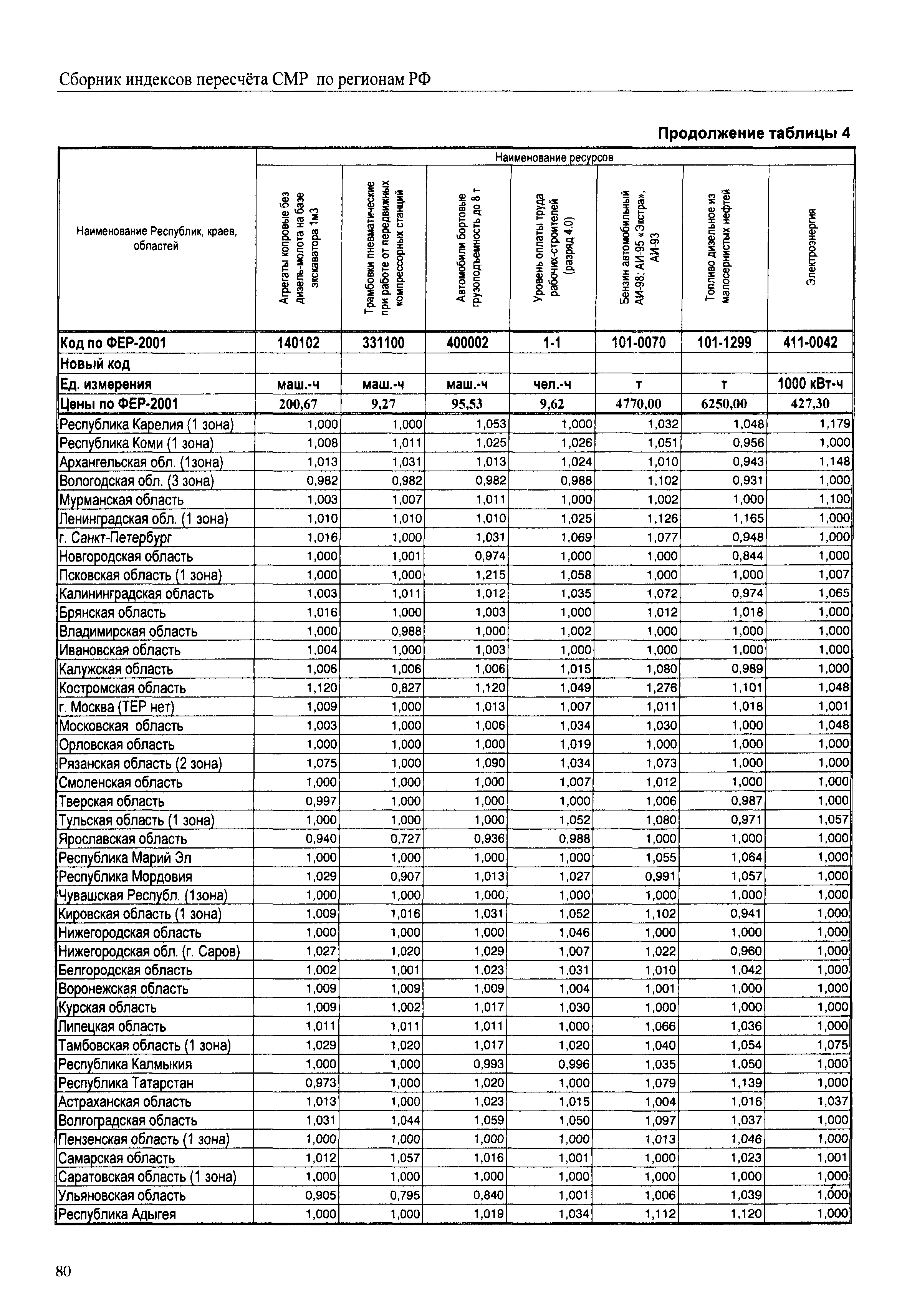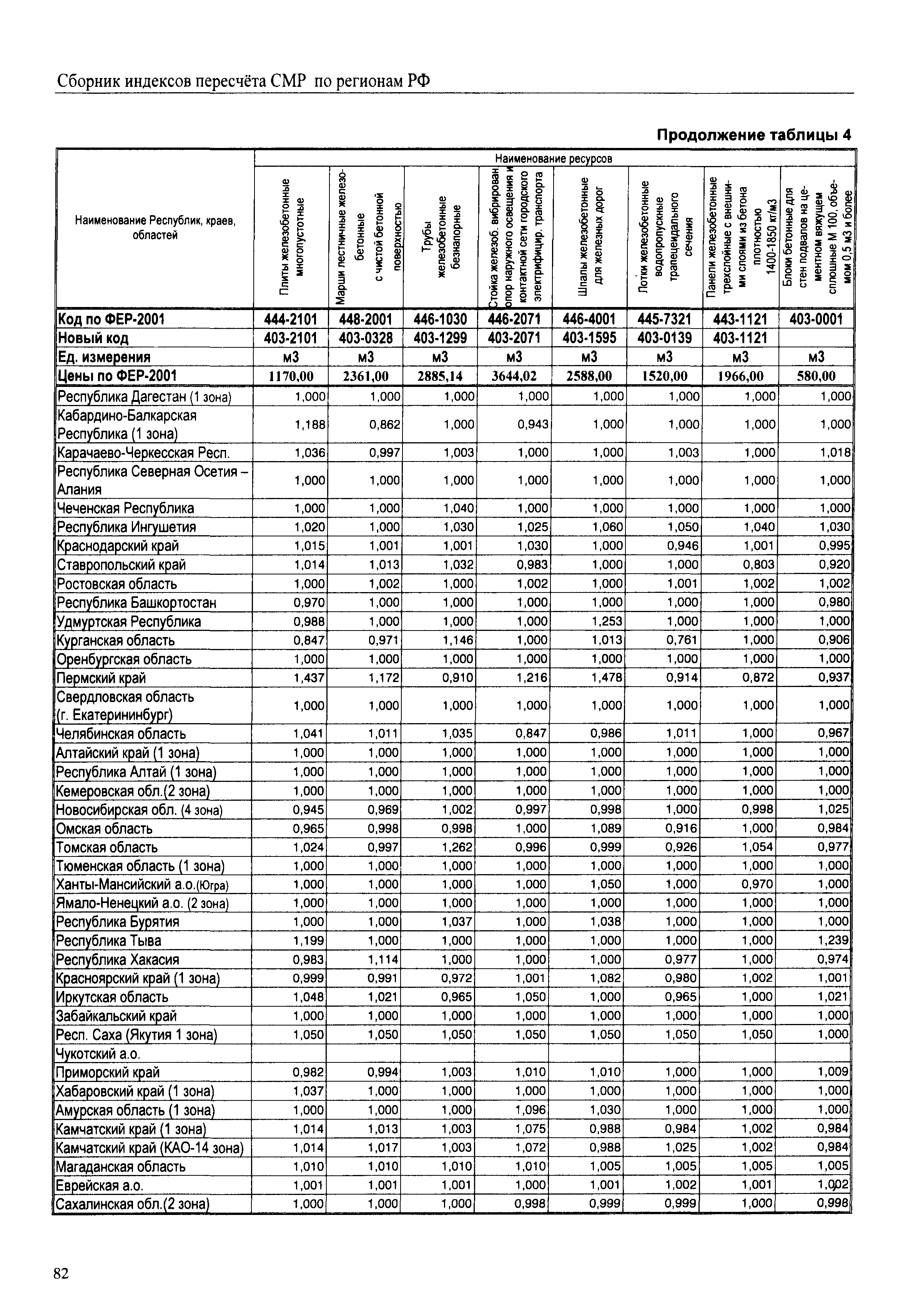 Межрегиональный сборник индексов пересчета сметной стоимости строительно-монтажных работ по субъектам Российской Федерации на II квартал 2010 г.| Статус: | не действует | | Название рус.: | Межрегиональный сборник индексов пересчета сметной стоимости строительно-монтажных работ по субъектам Российской Федерации на II квартал 2010 г. | | Дата добавления в базу: | 01.09.2013 | | Дата актуализации: | 01.09.2013 | | Область применения: | В сборнике приведены сводные таблицы текущих (II квартал 2010 г.) региональных цен на основные ресурсы, применяемые в строительстве, региональные индексы пересчета базисной стоимости строительно-монтажных работ, определяемой с использованием сборников новой сметно-нормативной базы (ФЕР-2001, ТЕР-2001), в территориальный текущий уровень. Индексы разработаны по единой методике, на основании отчетных данных региональных органов по ценообразованию в строительстве о стоимости строительных ресурсов, применяемых в регионе | | Оглавление: | Общая часть Техническая часть (к таблицам 1, 2, 3, 4) Цены на строительную продукцию во II квартале 2010 г. Анализ роста индексов и стоимости 1м2 по субъектам Российской Федерации во II кв. 2010 года. - таблица А Расчетная стоимость 1 м2 общей площади квартир и индексы изменения стоимости строительства по субъектам Российской Федерации за II квартал 2010 г. -Таблица 1 Сметная стоимость строительных ресурсов (без НДС) в руб. -Таблица 2 Индексы на отдельные виды ресурсов (к заложенным в ФЕР-2001) -Таблица 3 Индексы роста стоимости строительных ресурсов к предыдущему кварталу -Таблица 4 Региональные индексы к ФЕР-2001 по основным видам объектов строительства - Таблица 5 Индексы на оборудование за II квартал 2010 г Индексы на прочие работы и затраты за II квартал 2010 г |