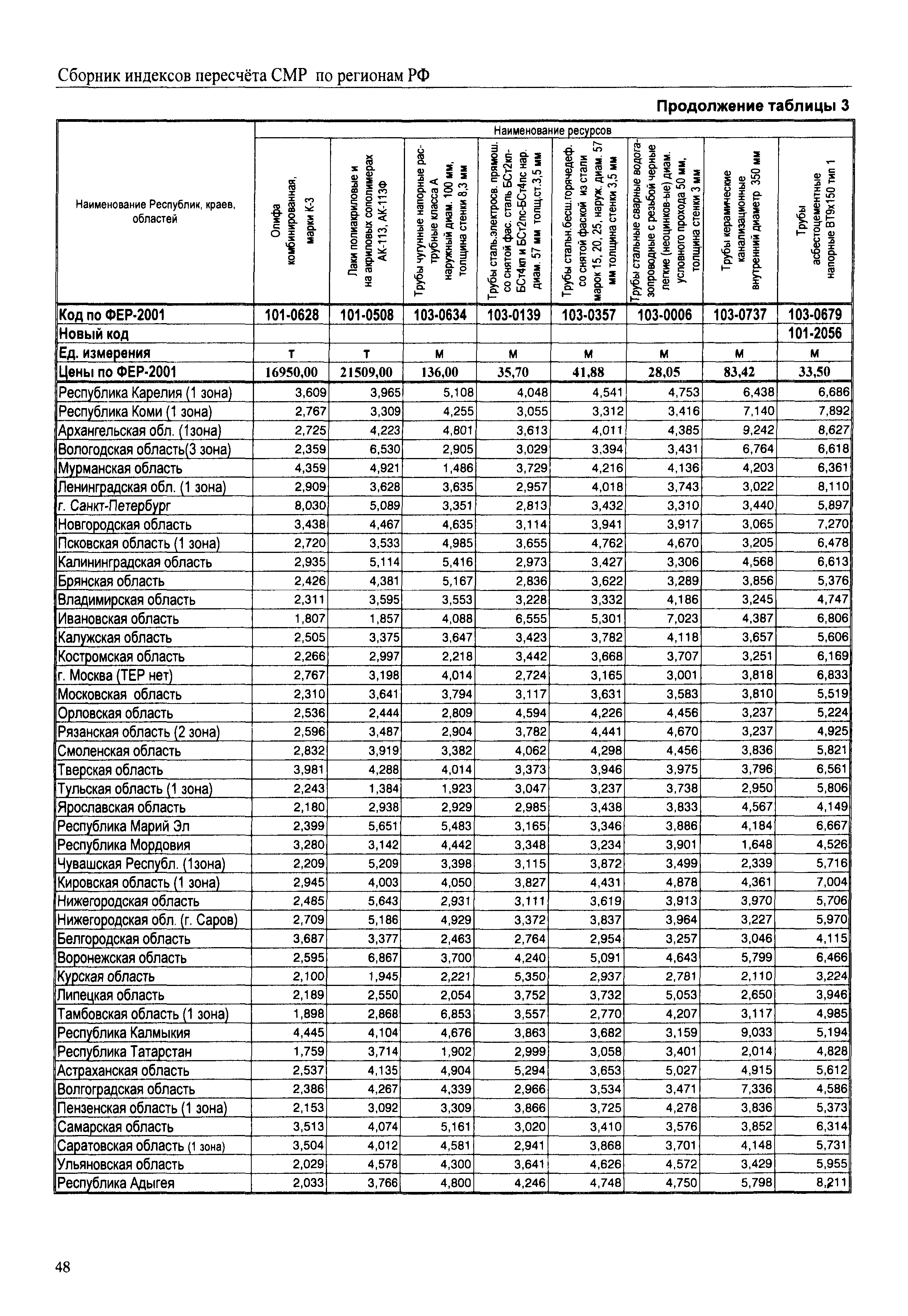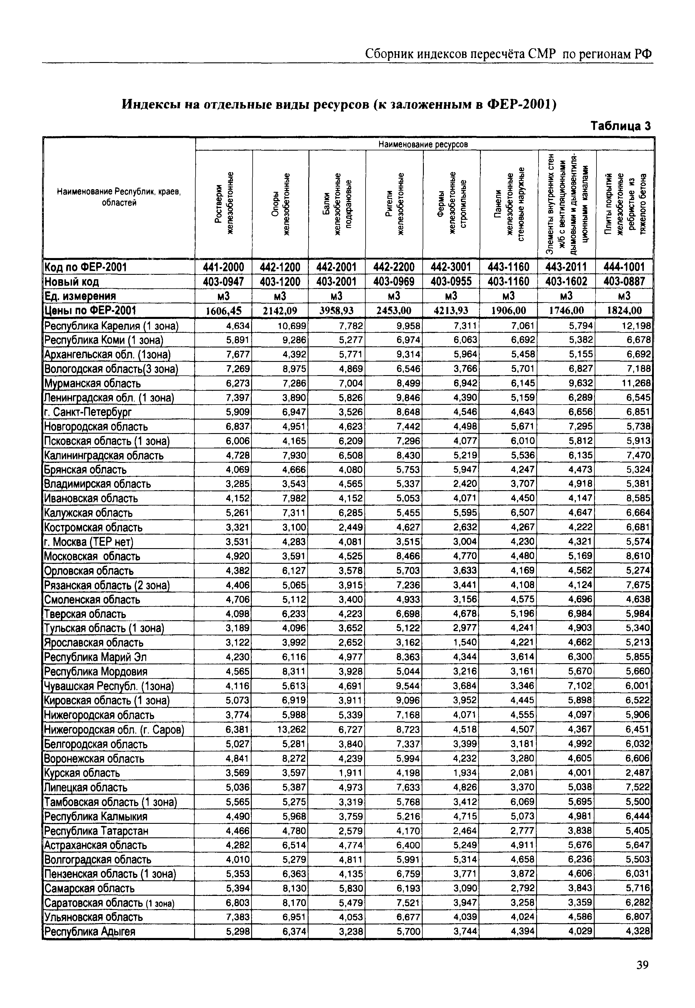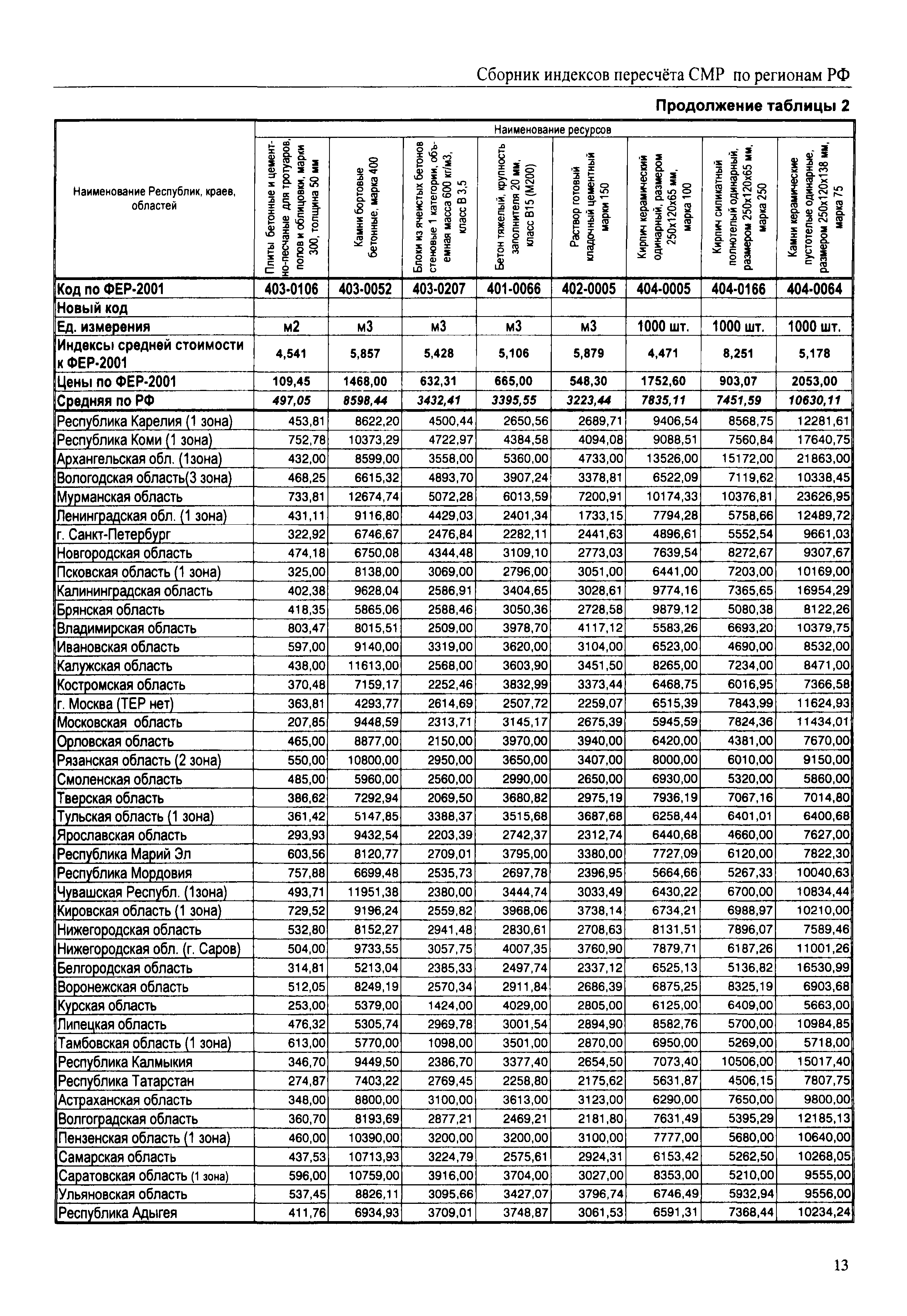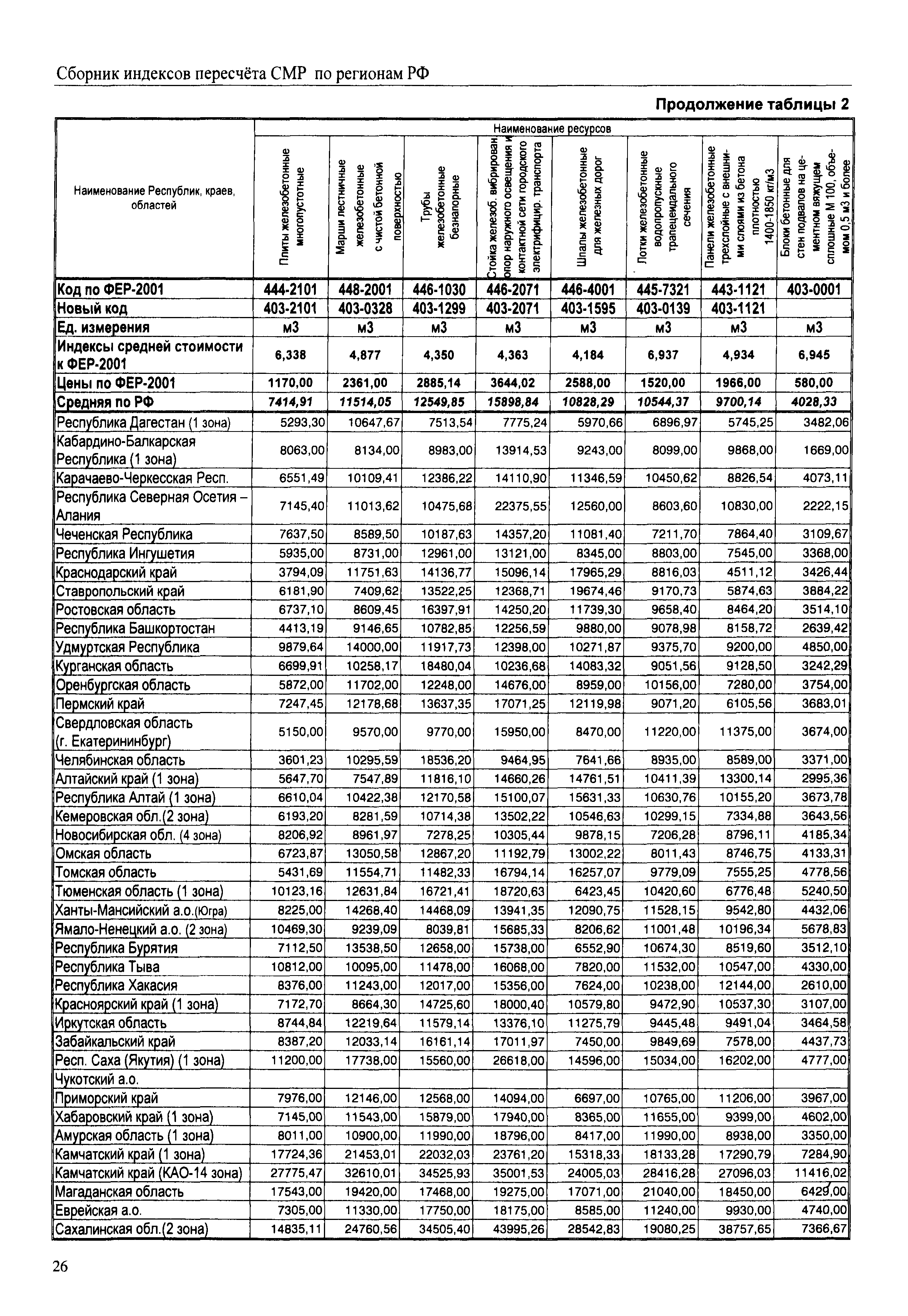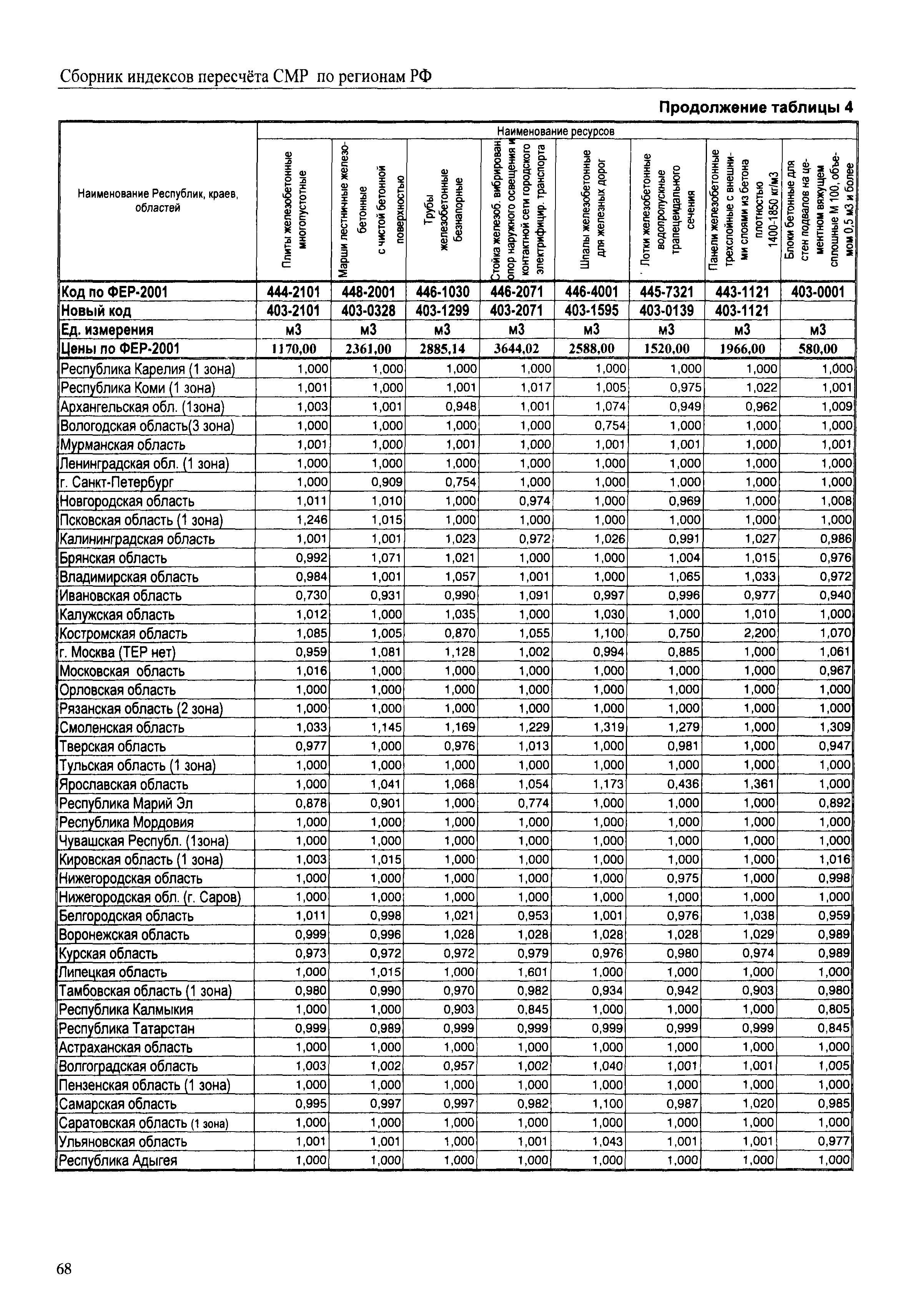 Межрегиональный сборник индексов пересчета сметной стоимости строительно-монтажных работ по субъектам Российской Федерации на II квартал 2010 г.| Статус: | не действует | | Название рус.: | Межрегиональный сборник индексов пересчета сметной стоимости строительно-монтажных работ по субъектам Российской Федерации на II квартал 2010 г. | | Дата добавления в базу: | 01.09.2013 | | Дата актуализации: | 01.09.2013 | | Область применения: | В сборнике приведены сводные таблицы текущих (II квартал 2010 г.) региональных цен на основные ресурсы, применяемые в строительстве, региональные индексы пересчета базисной стоимости строительно-монтажных работ, определяемой с использованием сборников новой сметно-нормативной базы (ФЕР-2001, ТЕР-2001), в территориальный текущий уровень. Индексы разработаны по единой методике, на основании отчетных данных региональных органов по ценообразованию в строительстве о стоимости строительных ресурсов, применяемых в регионе | | Оглавление: | Общая часть Техническая часть (к таблицам 1, 2, 3, 4) Цены на строительную продукцию во II квартале 2010 г. Анализ роста индексов и стоимости 1м2 по субъектам Российской Федерации во II кв. 2010 года. - таблица А Расчетная стоимость 1 м2 общей площади квартир и индексы изменения стоимости строительства по субъектам Российской Федерации за II квартал 2010 г. -Таблица 1 Сметная стоимость строительных ресурсов (без НДС) в руб. -Таблица 2 Индексы на отдельные виды ресурсов (к заложенным в ФЕР-2001) -Таблица 3 Индексы роста стоимости строительных ресурсов к предыдущему кварталу -Таблица 4 Региональные индексы к ФЕР-2001 по основным видам объектов строительства - Таблица 5 Индексы на оборудование за II квартал 2010 г Индексы на прочие работы и затраты за II квартал 2010 г |