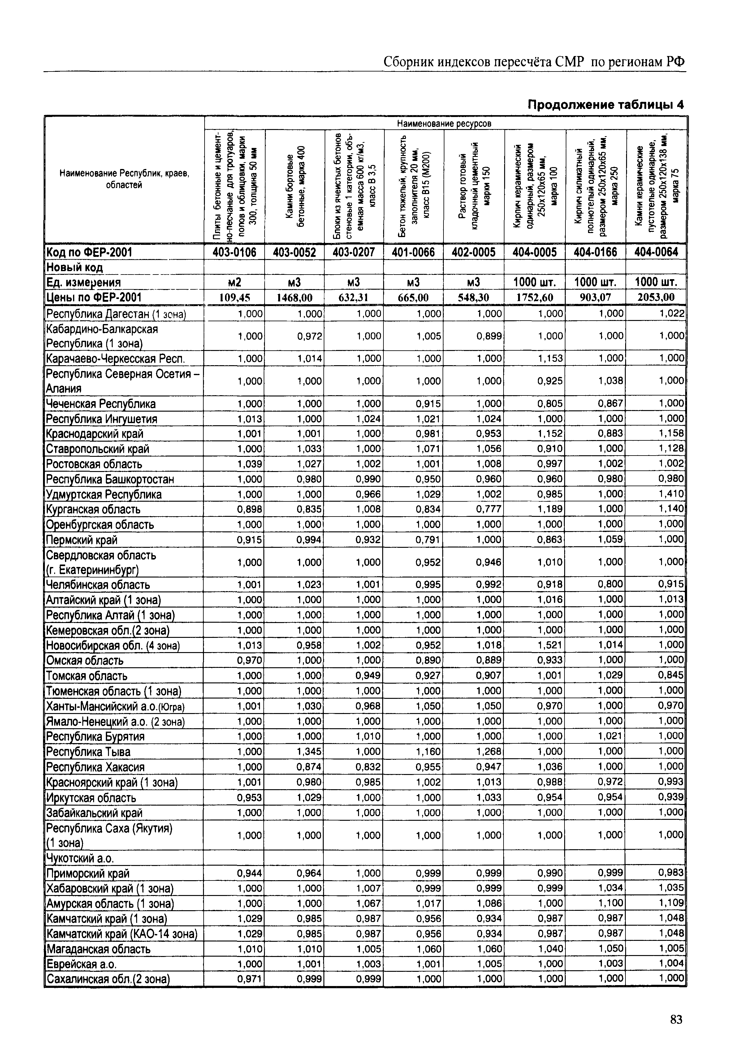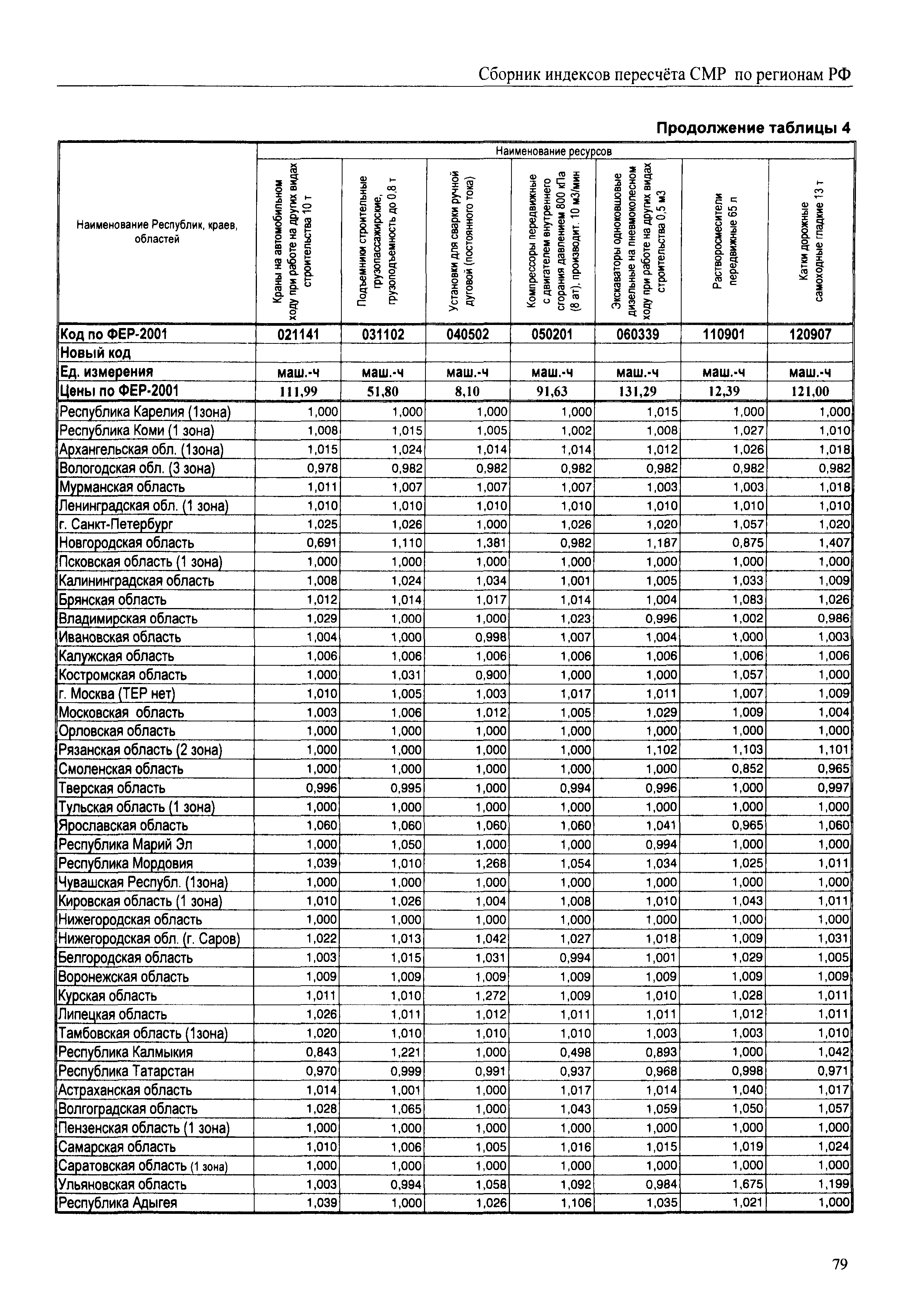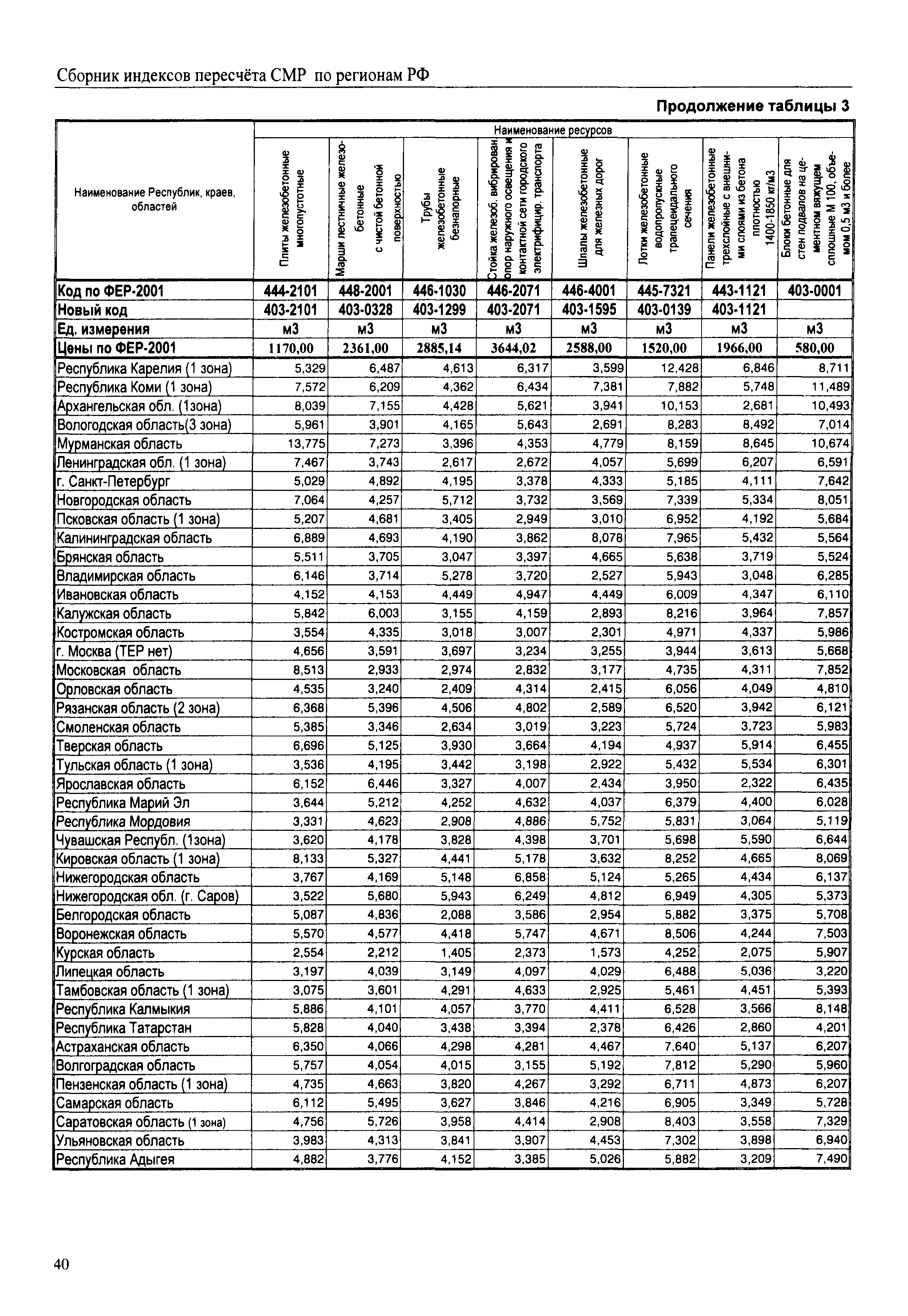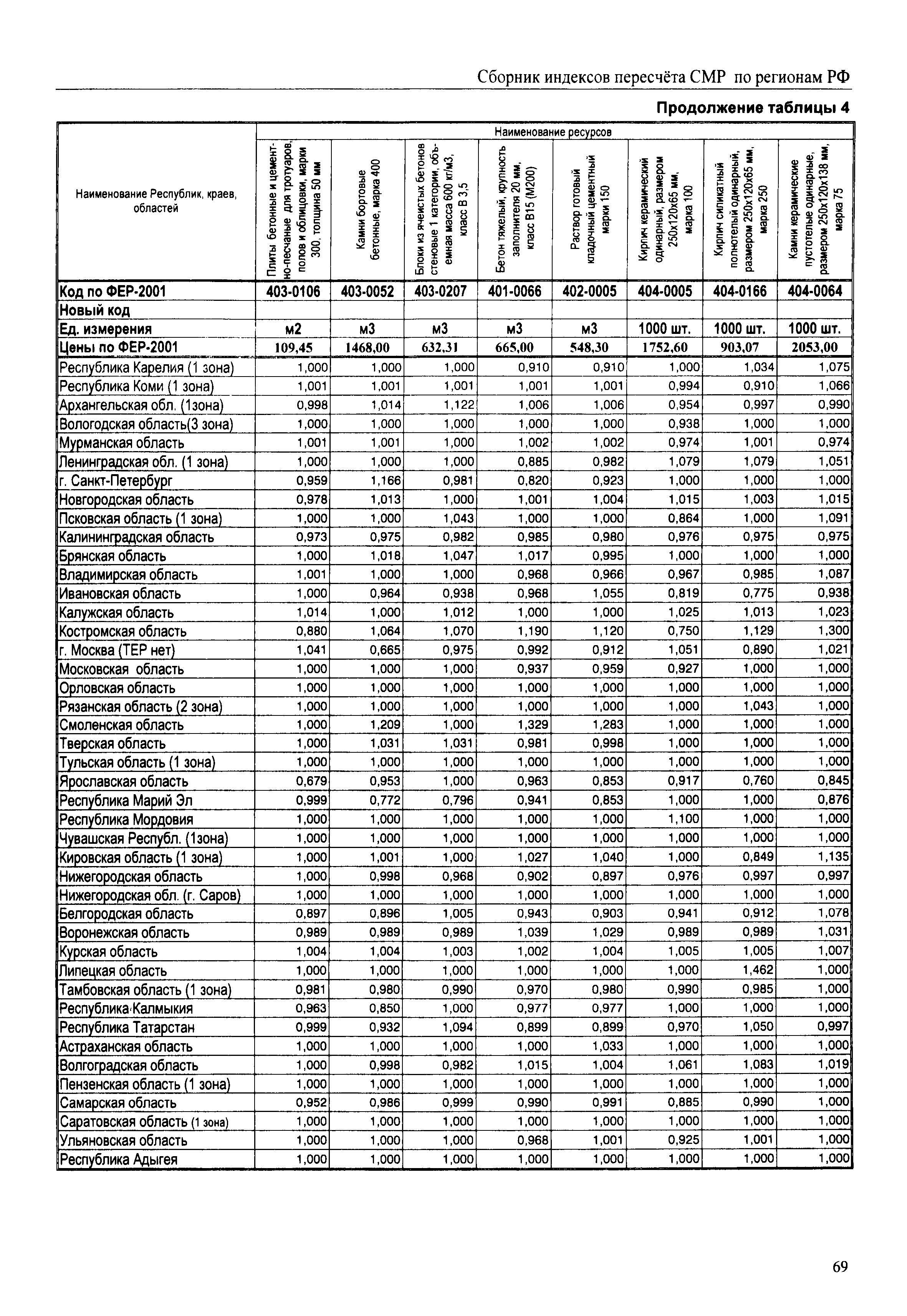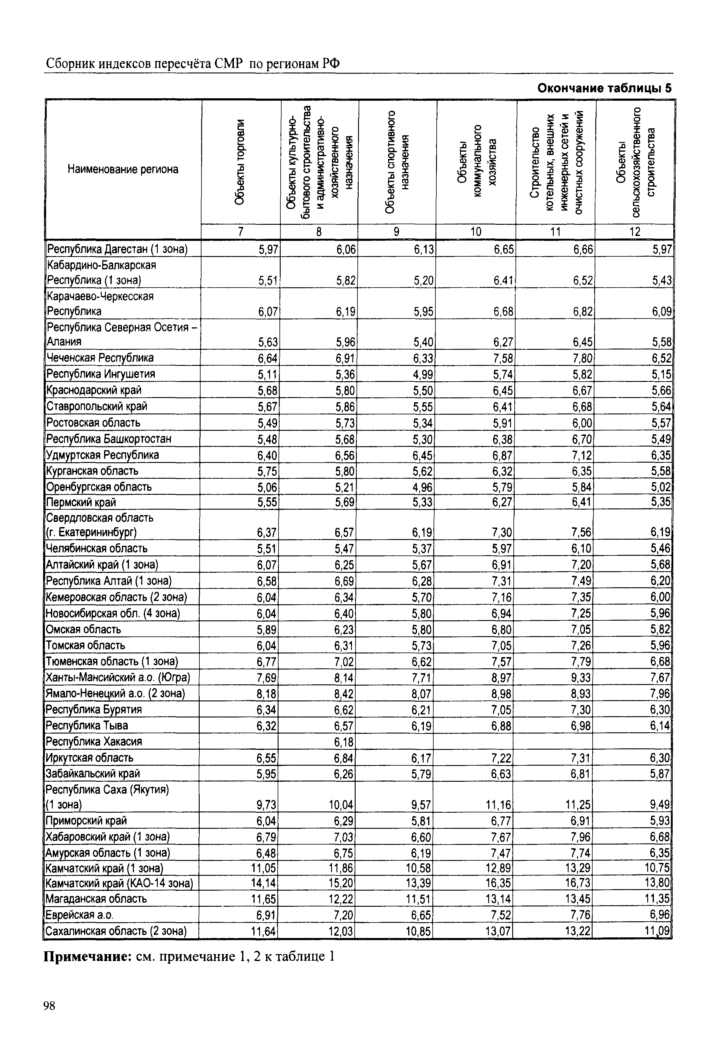 Межрегиональный сборник индексов пересчета сметной стоимости строительно-монтажных работ по субъектам Российской Федерации на II квартал 2010 г.| Статус: | не действует | | Название рус.: | Межрегиональный сборник индексов пересчета сметной стоимости строительно-монтажных работ по субъектам Российской Федерации на II квартал 2010 г. | | Дата добавления в базу: | 01.09.2013 | | Дата актуализации: | 01.09.2013 | | Область применения: | В сборнике приведены сводные таблицы текущих (II квартал 2010 г.) региональных цен на основные ресурсы, применяемые в строительстве, региональные индексы пересчета базисной стоимости строительно-монтажных работ, определяемой с использованием сборников новой сметно-нормативной базы (ФЕР-2001, ТЕР-2001), в территориальный текущий уровень. Индексы разработаны по единой методике, на основании отчетных данных региональных органов по ценообразованию в строительстве о стоимости строительных ресурсов, применяемых в регионе | | Оглавление: | Общая часть Техническая часть (к таблицам 1, 2, 3, 4) Цены на строительную продукцию во II квартале 2010 г. Анализ роста индексов и стоимости 1м2 по субъектам Российской Федерации во II кв. 2010 года. - таблица А Расчетная стоимость 1 м2 общей площади квартир и индексы изменения стоимости строительства по субъектам Российской Федерации за II квартал 2010 г. -Таблица 1 Сметная стоимость строительных ресурсов (без НДС) в руб. -Таблица 2 Индексы на отдельные виды ресурсов (к заложенным в ФЕР-2001) -Таблица 3 Индексы роста стоимости строительных ресурсов к предыдущему кварталу -Таблица 4 Региональные индексы к ФЕР-2001 по основным видам объектов строительства - Таблица 5 Индексы на оборудование за II квартал 2010 г Индексы на прочие работы и затраты за II квартал 2010 г |