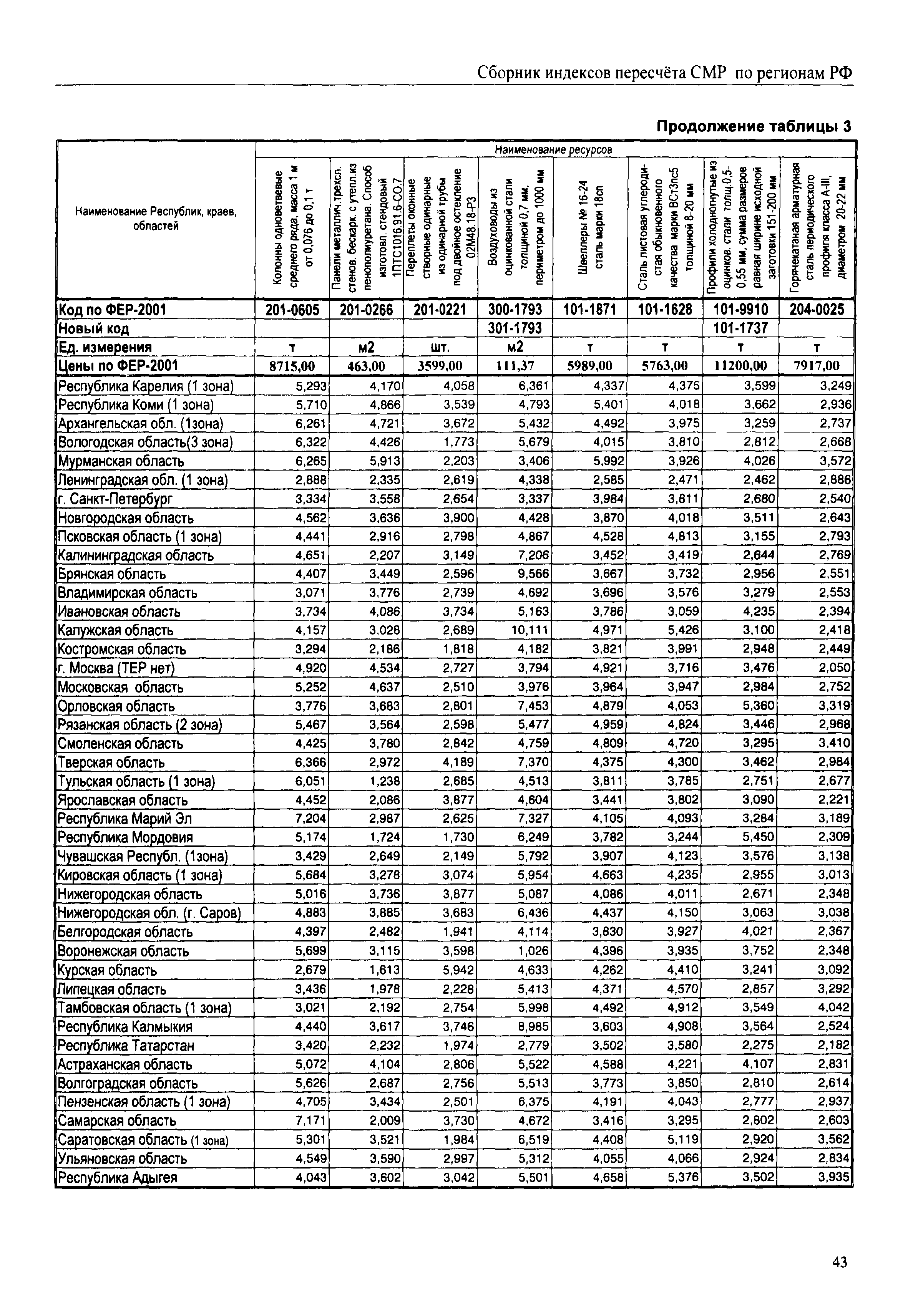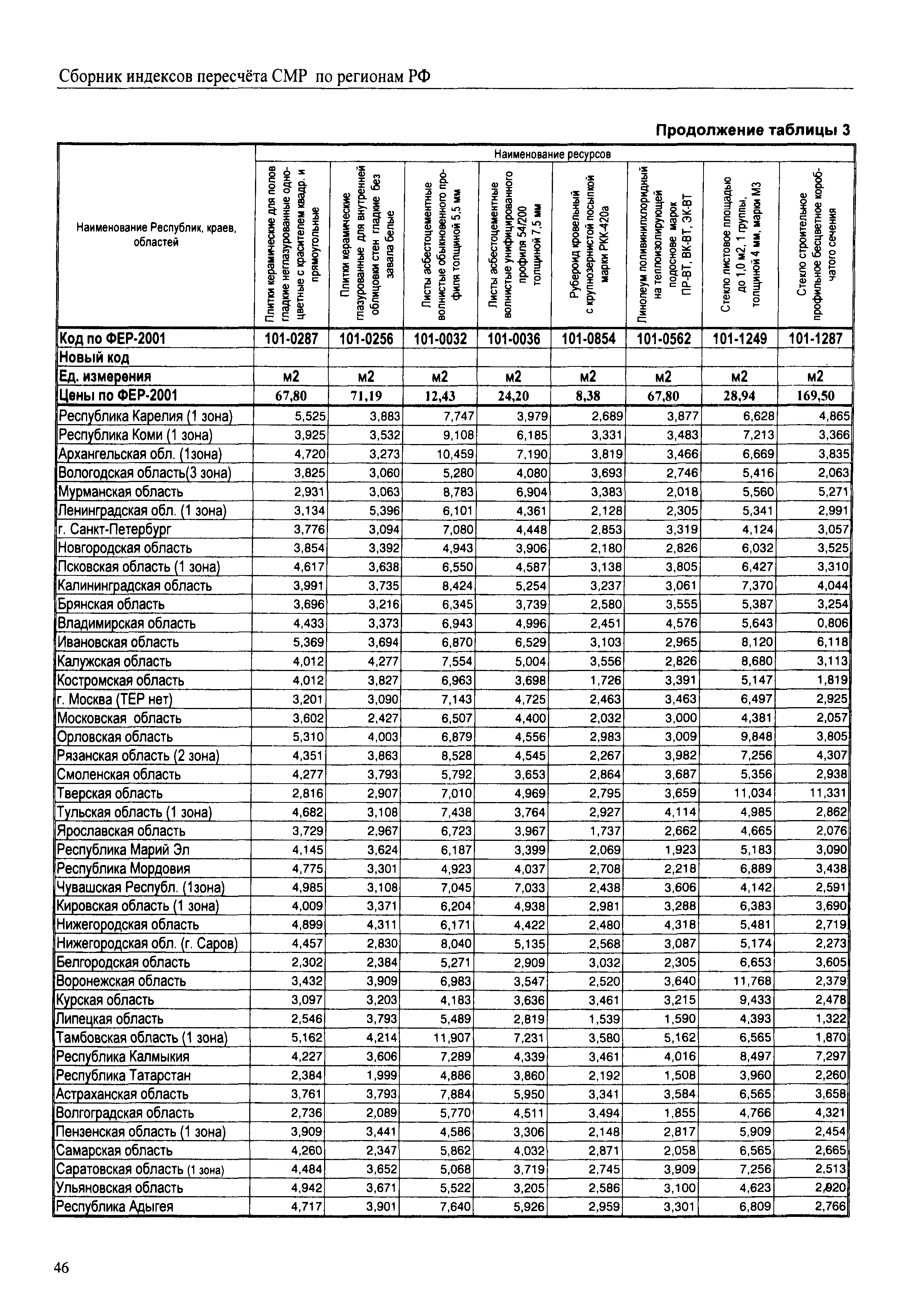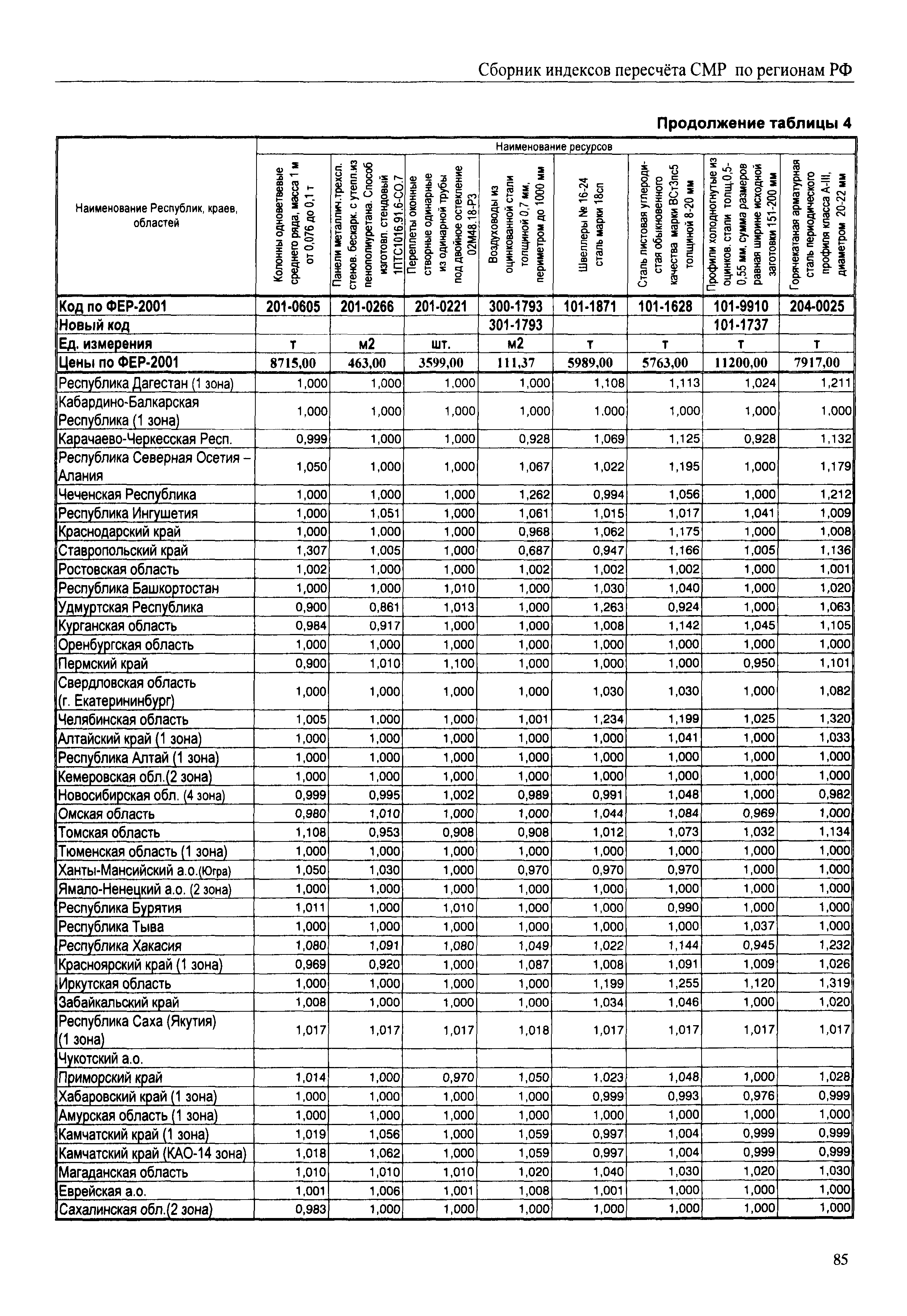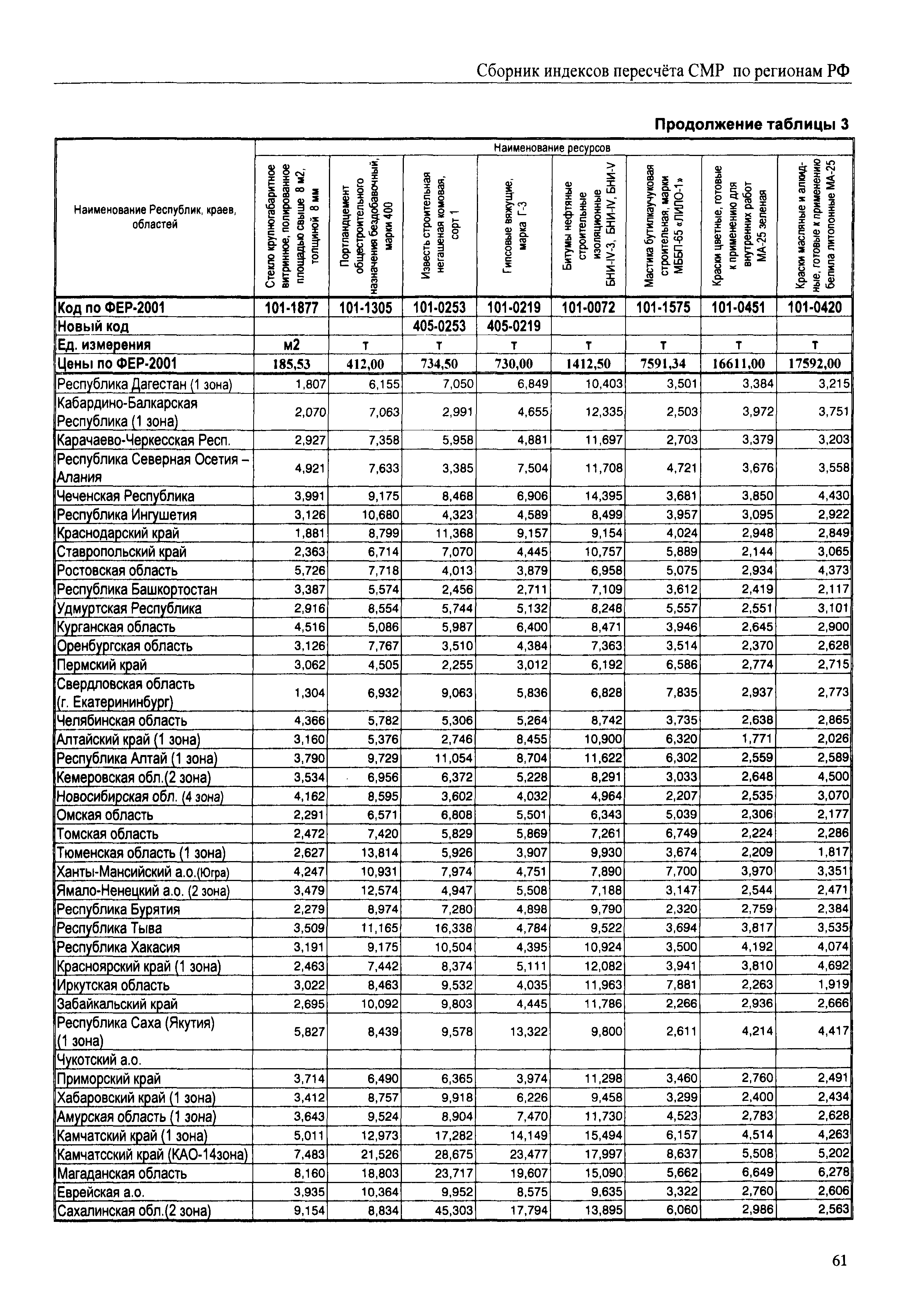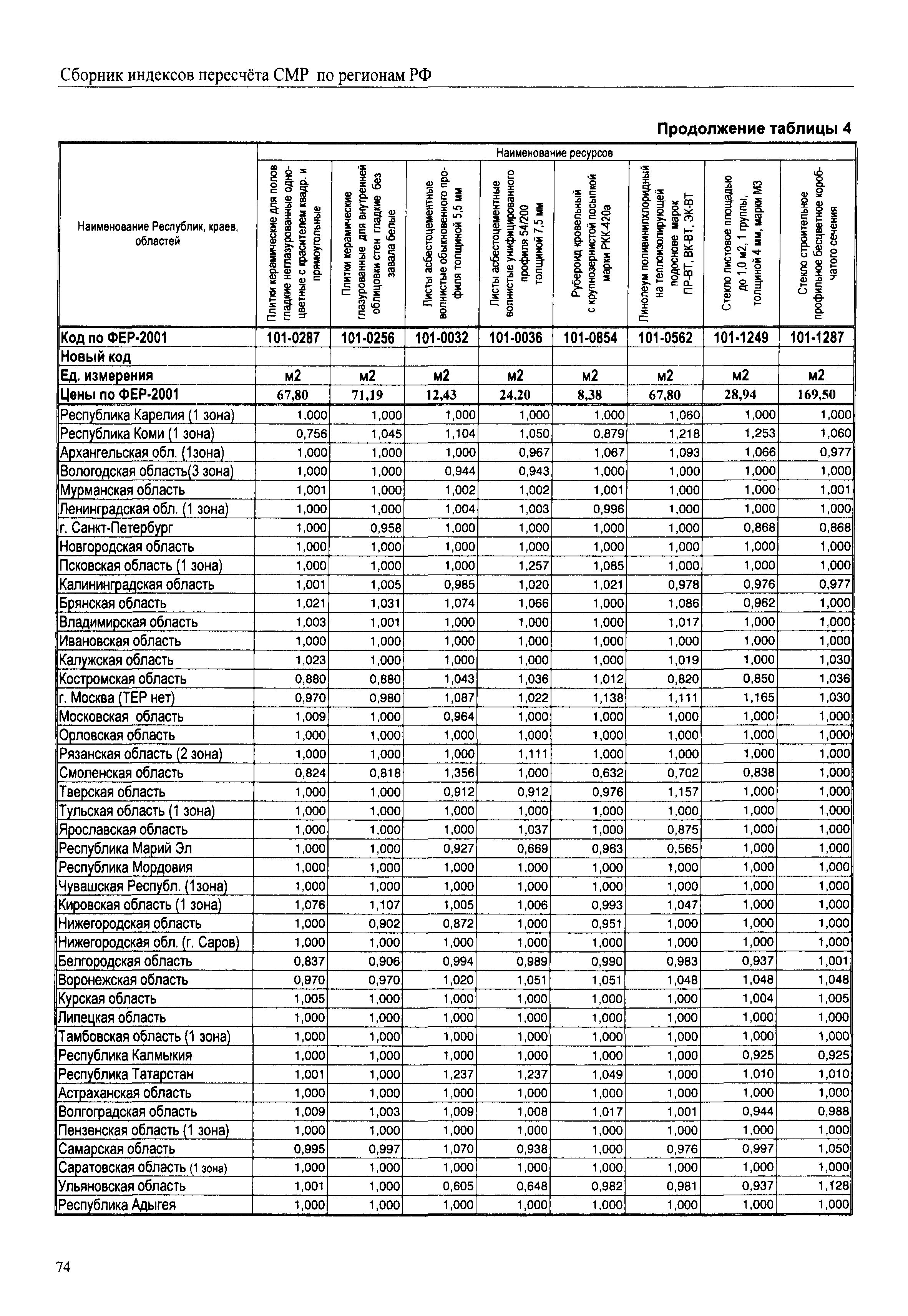 Межрегиональный сборник индексов пересчета сметной стоимости строительно-монтажных работ по субъектам Российской Федерации на II квартал 2010 г.| Статус: | не действует | | Название рус.: | Межрегиональный сборник индексов пересчета сметной стоимости строительно-монтажных работ по субъектам Российской Федерации на II квартал 2010 г. | | Дата добавления в базу: | 01.09.2013 | | Дата актуализации: | 01.09.2013 | | Область применения: | В сборнике приведены сводные таблицы текущих (II квартал 2010 г.) региональных цен на основные ресурсы, применяемые в строительстве, региональные индексы пересчета базисной стоимости строительно-монтажных работ, определяемой с использованием сборников новой сметно-нормативной базы (ФЕР-2001, ТЕР-2001), в территориальный текущий уровень. Индексы разработаны по единой методике, на основании отчетных данных региональных органов по ценообразованию в строительстве о стоимости строительных ресурсов, применяемых в регионе | | Оглавление: | Общая часть Техническая часть (к таблицам 1, 2, 3, 4) Цены на строительную продукцию во II квартале 2010 г. Анализ роста индексов и стоимости 1м2 по субъектам Российской Федерации во II кв. 2010 года. - таблица А Расчетная стоимость 1 м2 общей площади квартир и индексы изменения стоимости строительства по субъектам Российской Федерации за II квартал 2010 г. -Таблица 1 Сметная стоимость строительных ресурсов (без НДС) в руб. -Таблица 2 Индексы на отдельные виды ресурсов (к заложенным в ФЕР-2001) -Таблица 3 Индексы роста стоимости строительных ресурсов к предыдущему кварталу -Таблица 4 Региональные индексы к ФЕР-2001 по основным видам объектов строительства - Таблица 5 Индексы на оборудование за II квартал 2010 г Индексы на прочие работы и затраты за II квартал 2010 г |