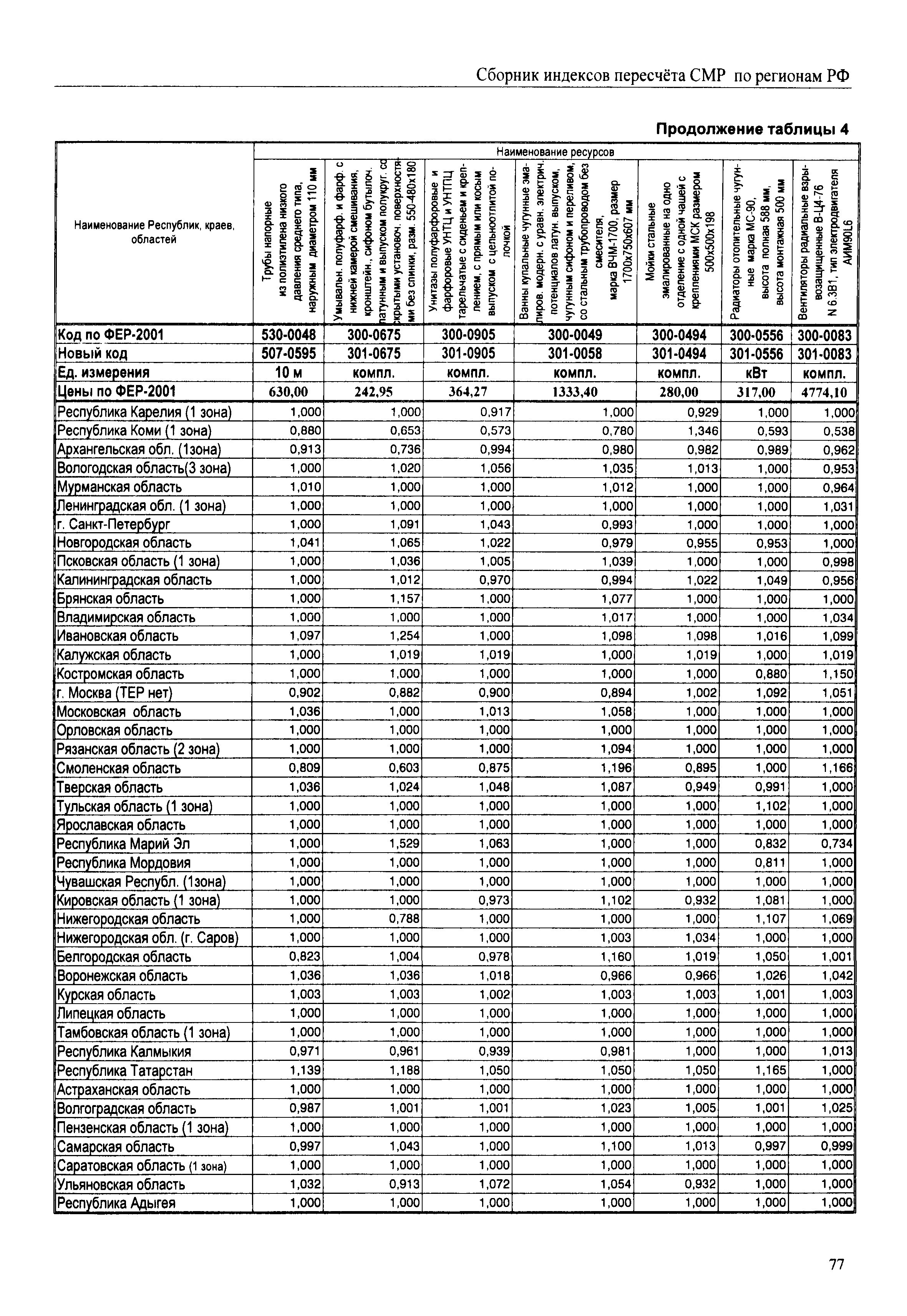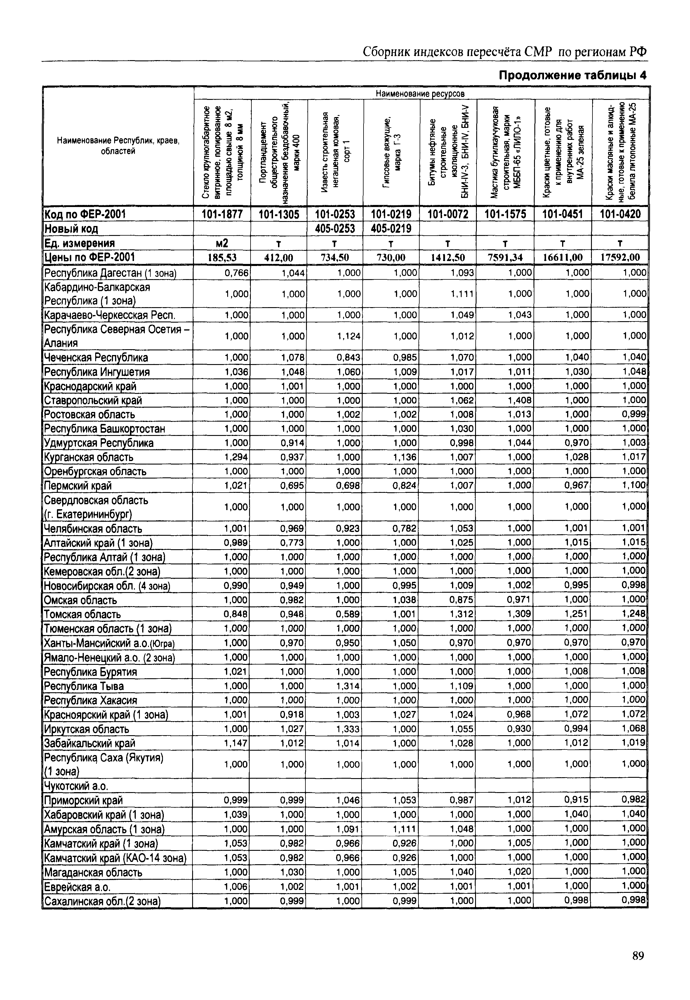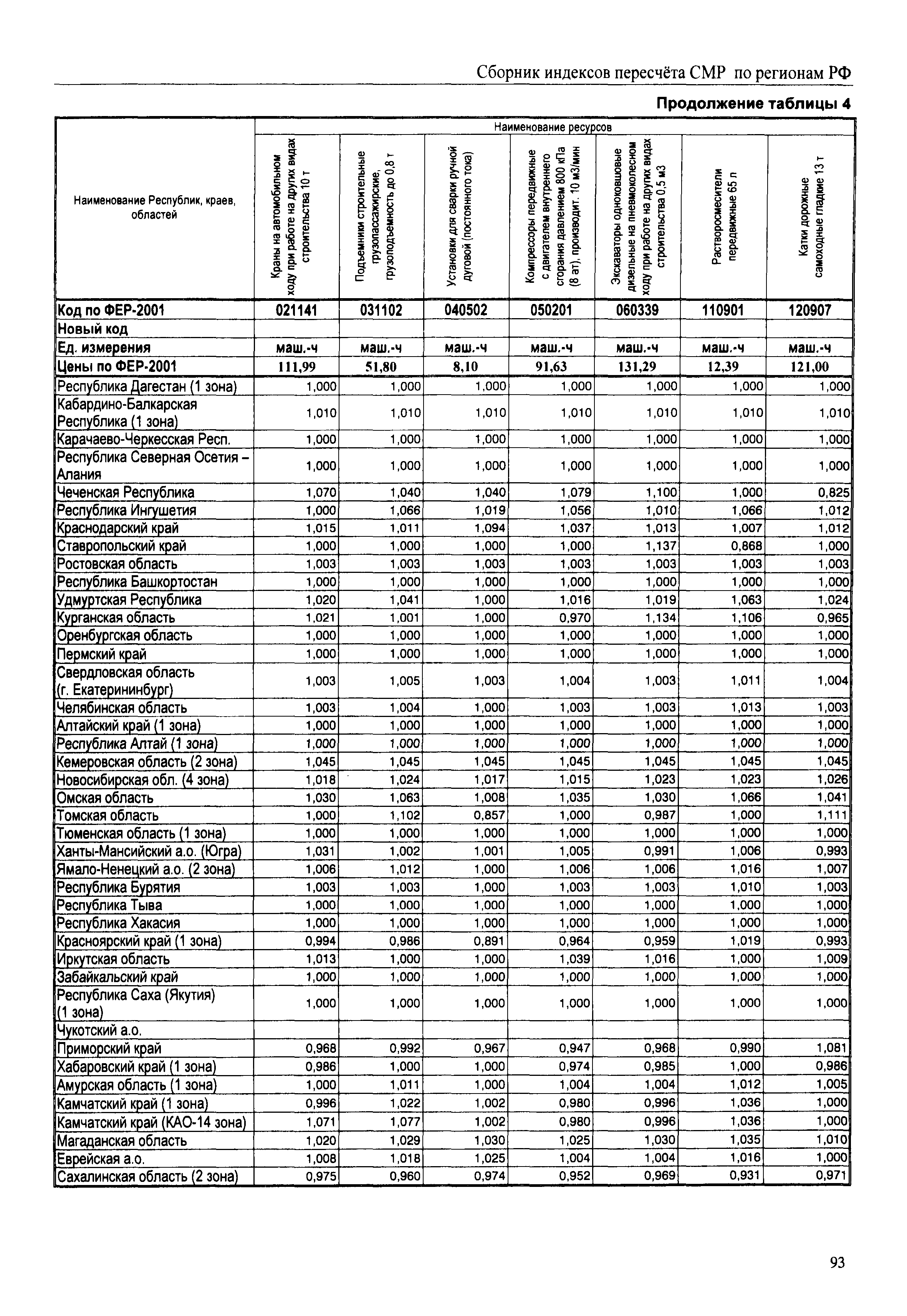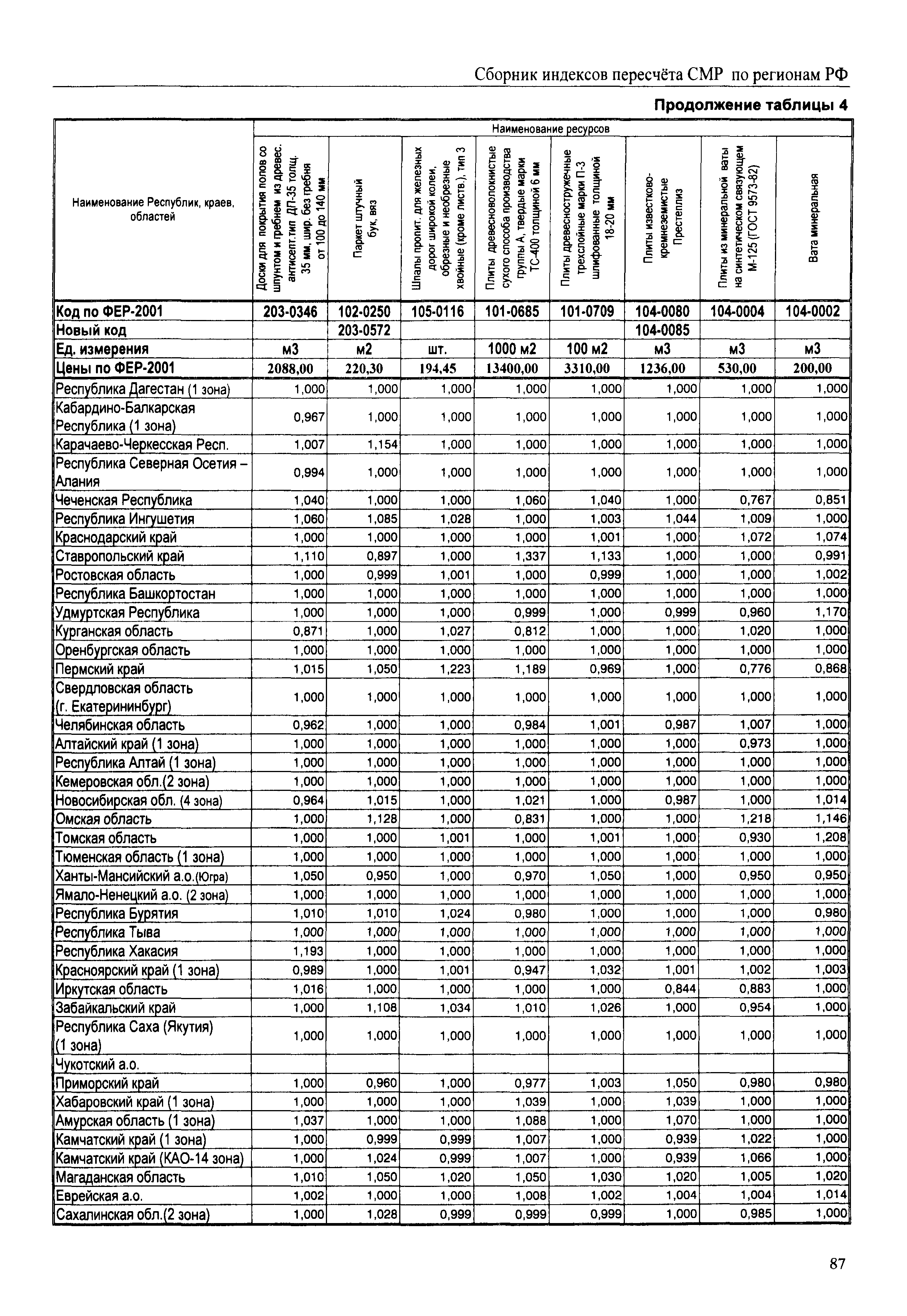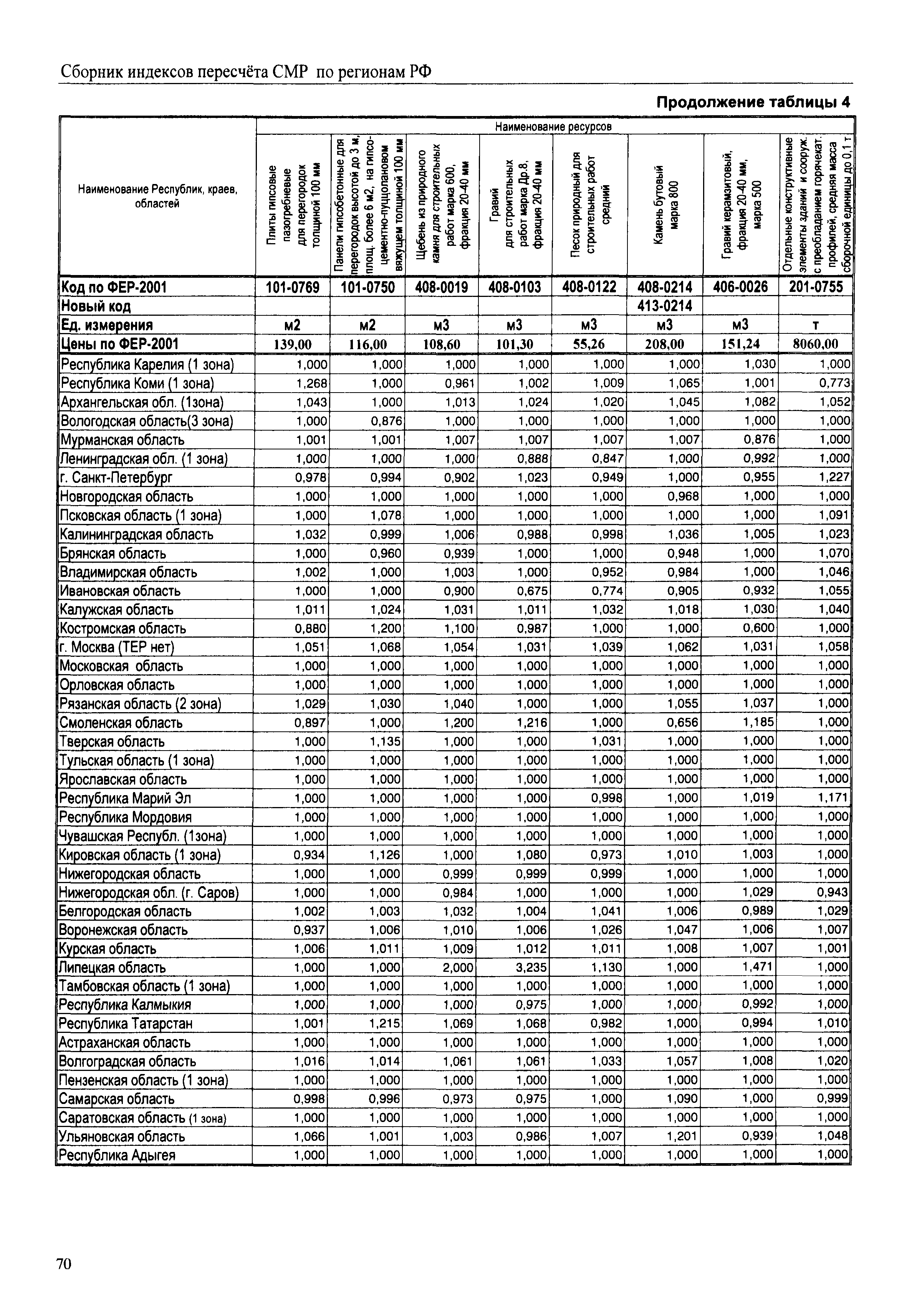 Межрегиональный сборник индексов пересчета сметной стоимости строительно-монтажных работ по субъектам Российской Федерации на II квартал 2010 г.| Статус: | не действует | | Название рус.: | Межрегиональный сборник индексов пересчета сметной стоимости строительно-монтажных работ по субъектам Российской Федерации на II квартал 2010 г. | | Дата добавления в базу: | 01.09.2013 | | Дата актуализации: | 01.09.2013 | | Область применения: | В сборнике приведены сводные таблицы текущих (II квартал 2010 г.) региональных цен на основные ресурсы, применяемые в строительстве, региональные индексы пересчета базисной стоимости строительно-монтажных работ, определяемой с использованием сборников новой сметно-нормативной базы (ФЕР-2001, ТЕР-2001), в территориальный текущий уровень. Индексы разработаны по единой методике, на основании отчетных данных региональных органов по ценообразованию в строительстве о стоимости строительных ресурсов, применяемых в регионе | | Оглавление: | Общая часть Техническая часть (к таблицам 1, 2, 3, 4) Цены на строительную продукцию во II квартале 2010 г. Анализ роста индексов и стоимости 1м2 по субъектам Российской Федерации во II кв. 2010 года. - таблица А Расчетная стоимость 1 м2 общей площади квартир и индексы изменения стоимости строительства по субъектам Российской Федерации за II квартал 2010 г. -Таблица 1 Сметная стоимость строительных ресурсов (без НДС) в руб. -Таблица 2 Индексы на отдельные виды ресурсов (к заложенным в ФЕР-2001) -Таблица 3 Индексы роста стоимости строительных ресурсов к предыдущему кварталу -Таблица 4 Региональные индексы к ФЕР-2001 по основным видам объектов строительства - Таблица 5 Индексы на оборудование за II квартал 2010 г Индексы на прочие работы и затраты за II квартал 2010 г |