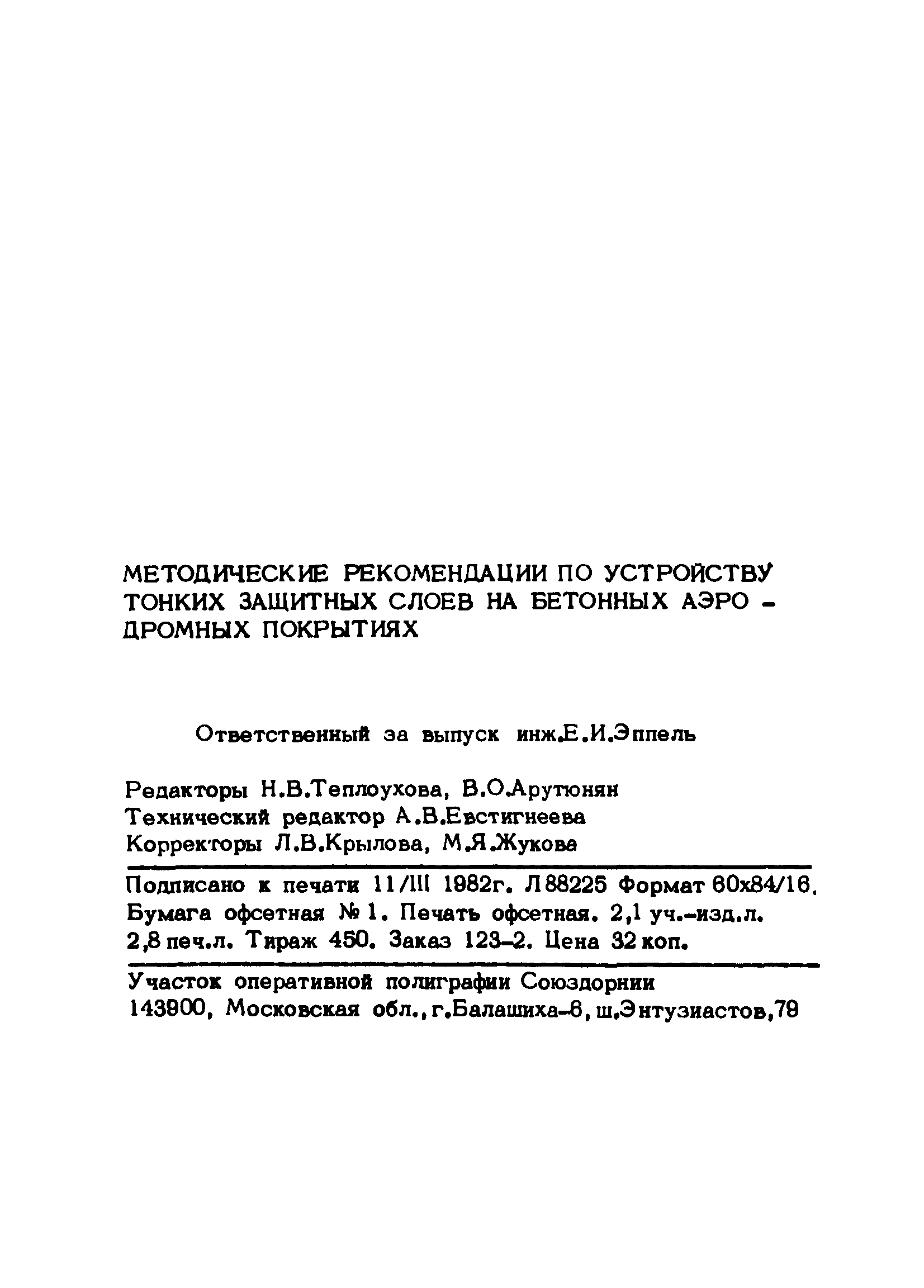 | Название рус.: | Методические рекомендации по устройству тонких защитных слоев на бетонных аэродромных покрытиях |