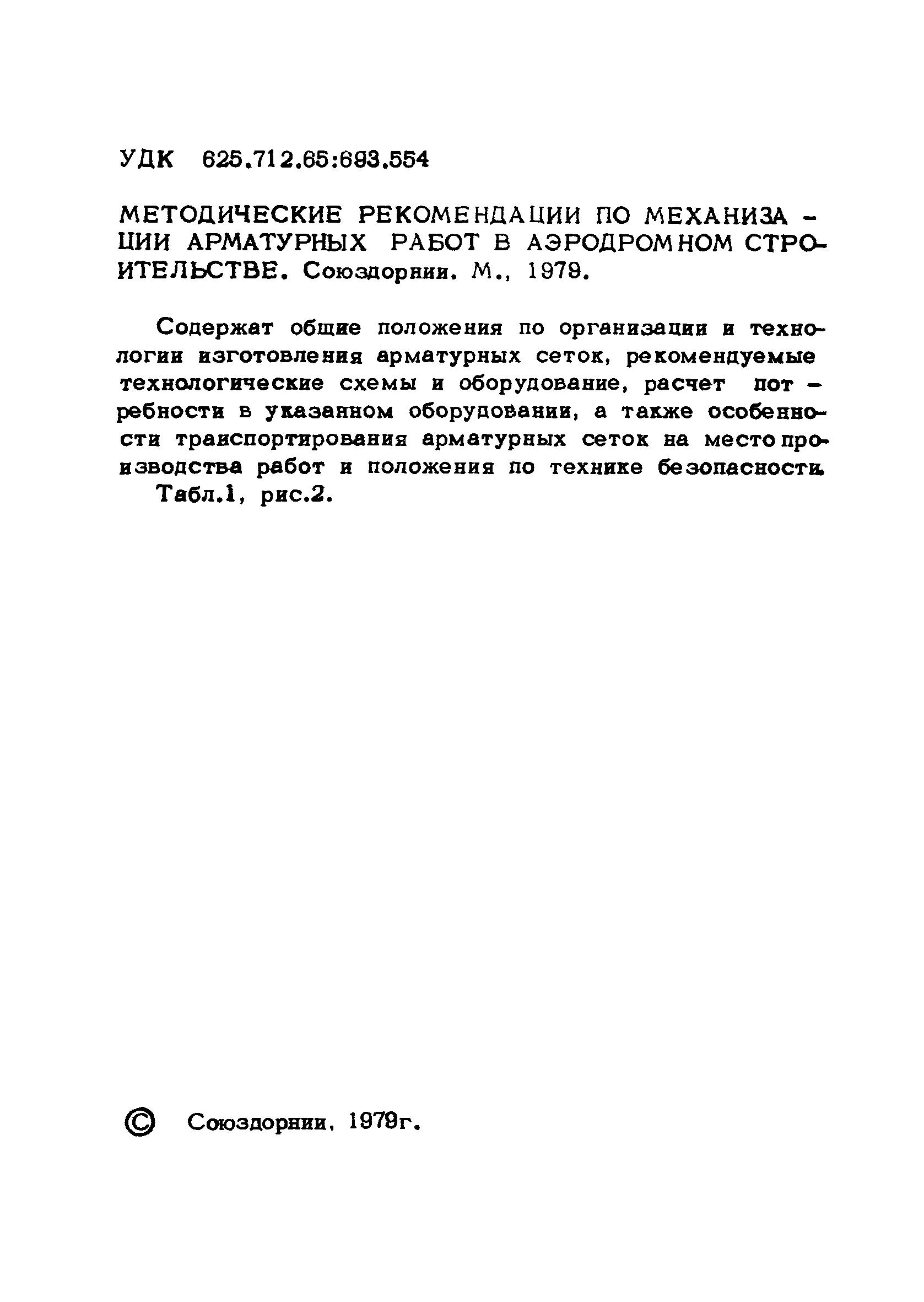 | Название рус.: | Методические рекомендации по механизации арматурных работ в аэродромном строительстве |
