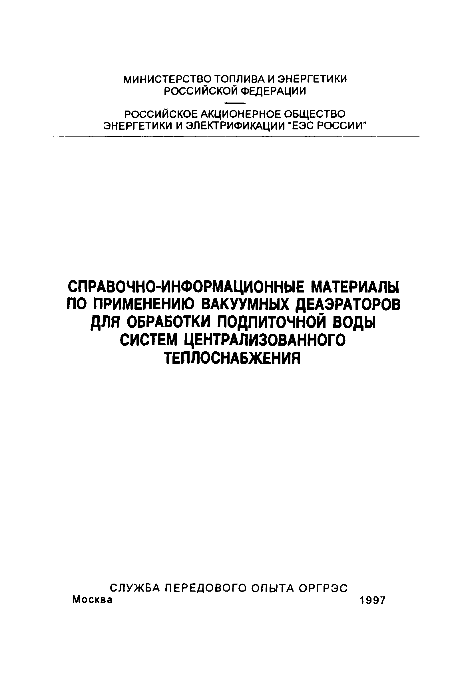 | Название рус.: | Справочно-информационные материалы по применению вакуумных деаэраторов для обработки подпиточной воды систем централизованного теплоснабжения |