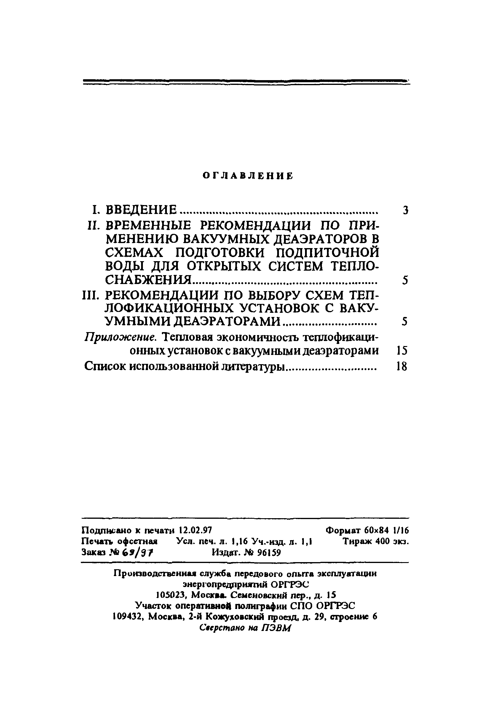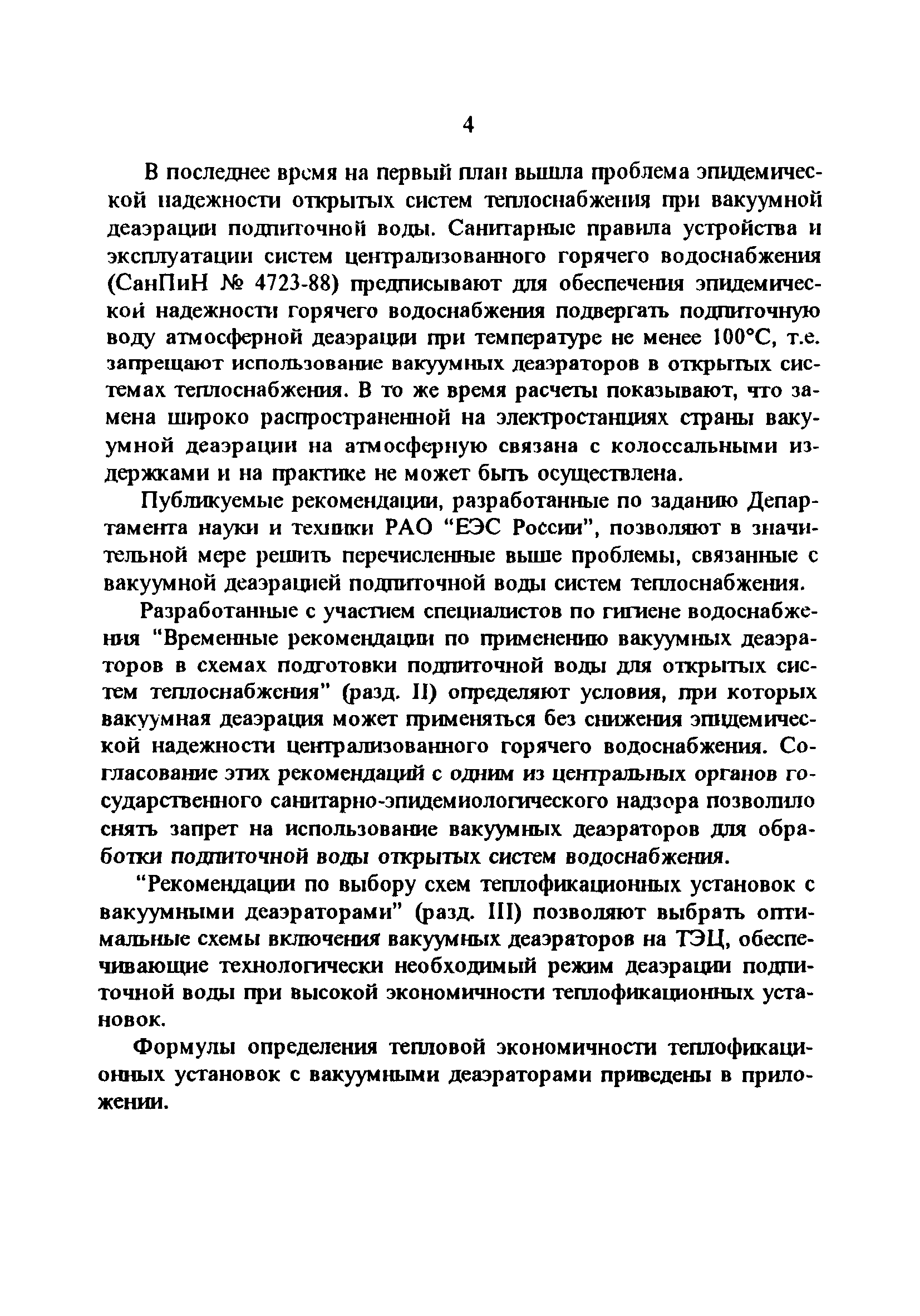 | Оглавление: | I. Введение II. Временные рекомендации по применению вакуумных деаэраторов в схемах подготовки подпиточной воды для открытых систем теплоснабжения III. Рекомендации по выбору схем теплофикационных установок с вакуумными деаэраторами Приложение. Тепловая экономичность теплофикационных установок с вакуумными деаэраторами Список использованной литературы |