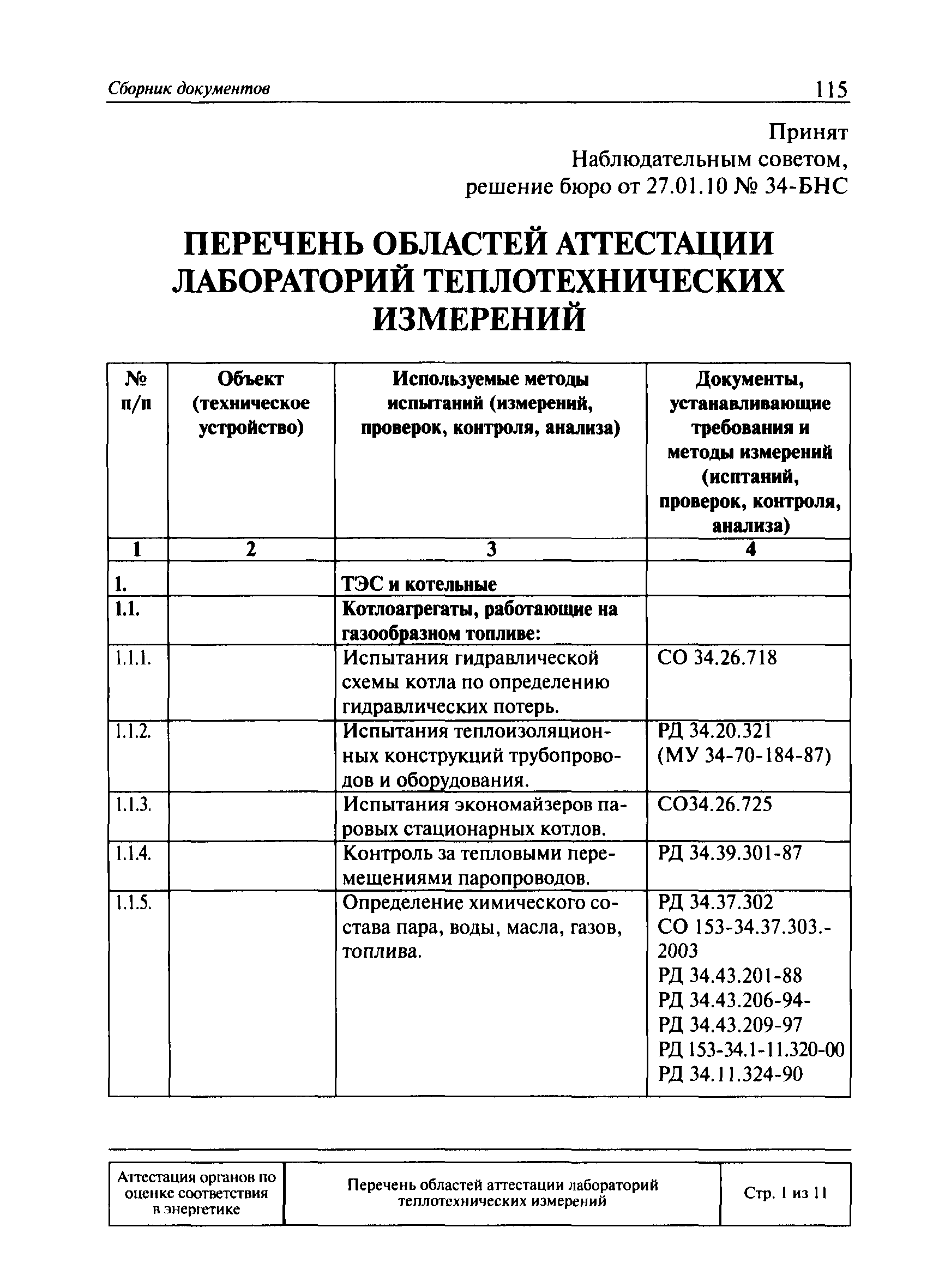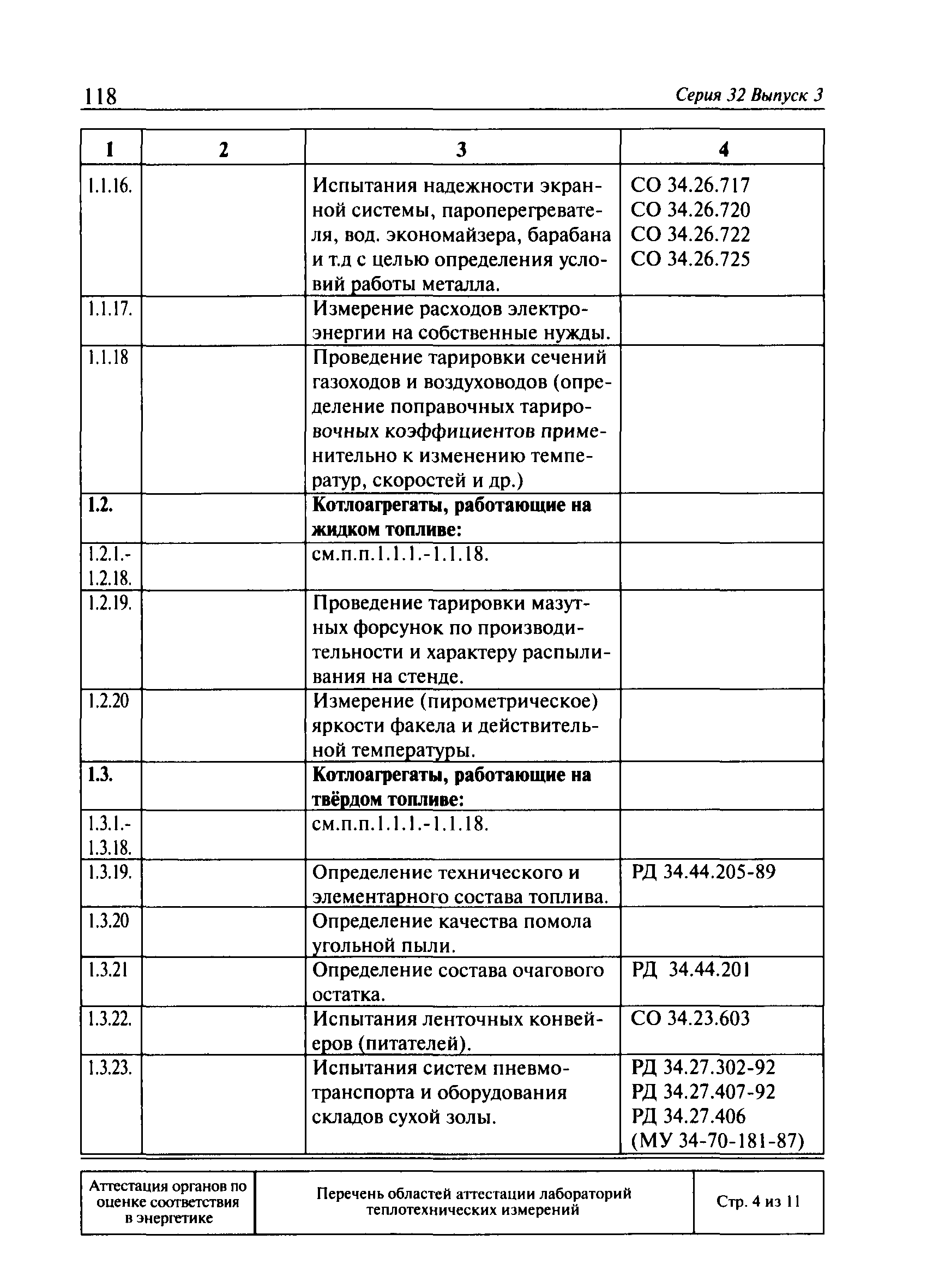 Перечень областей аттестации лабораторий теплотехнических измерений