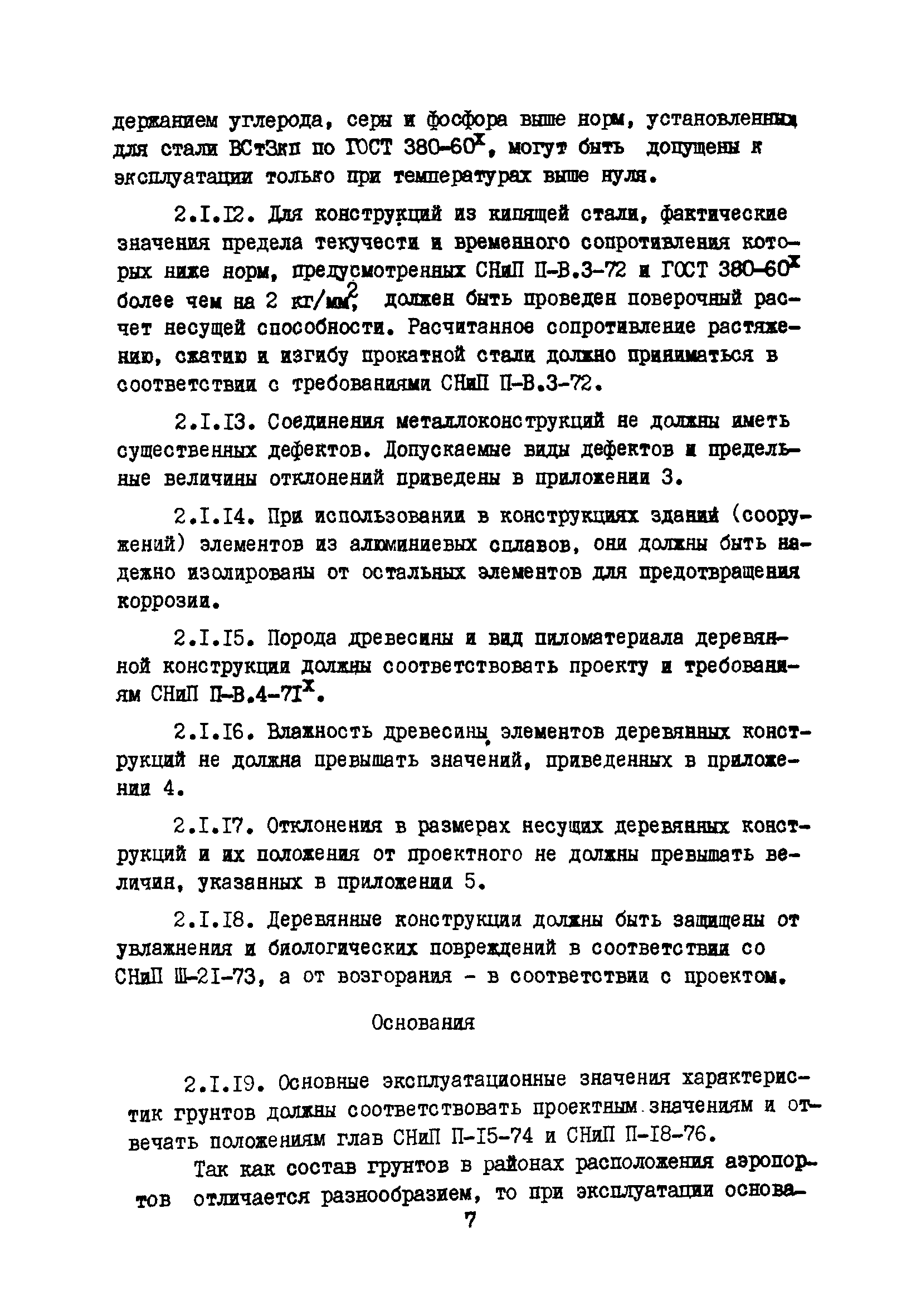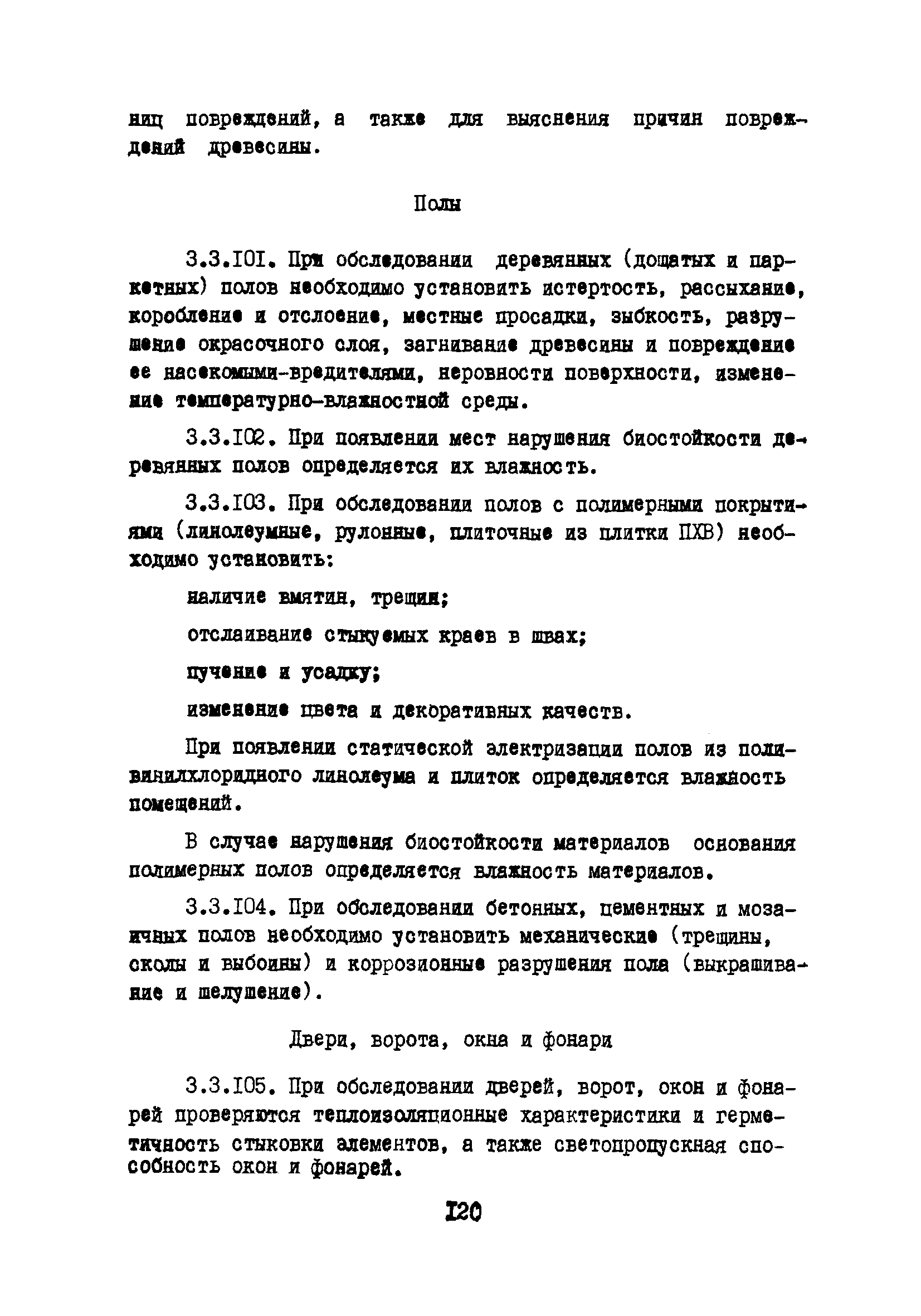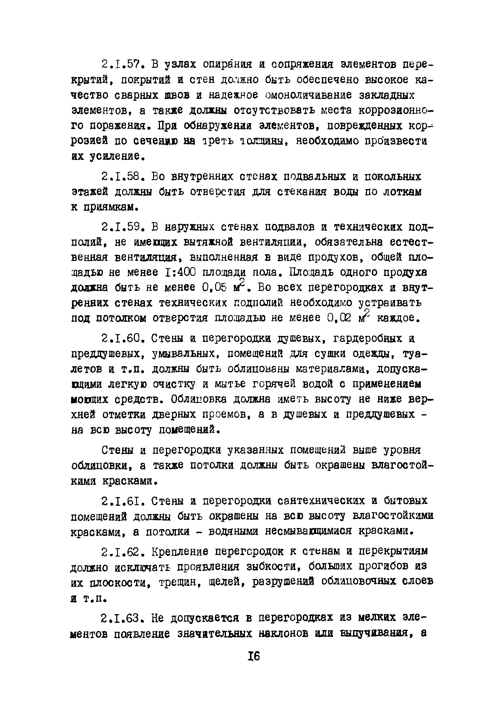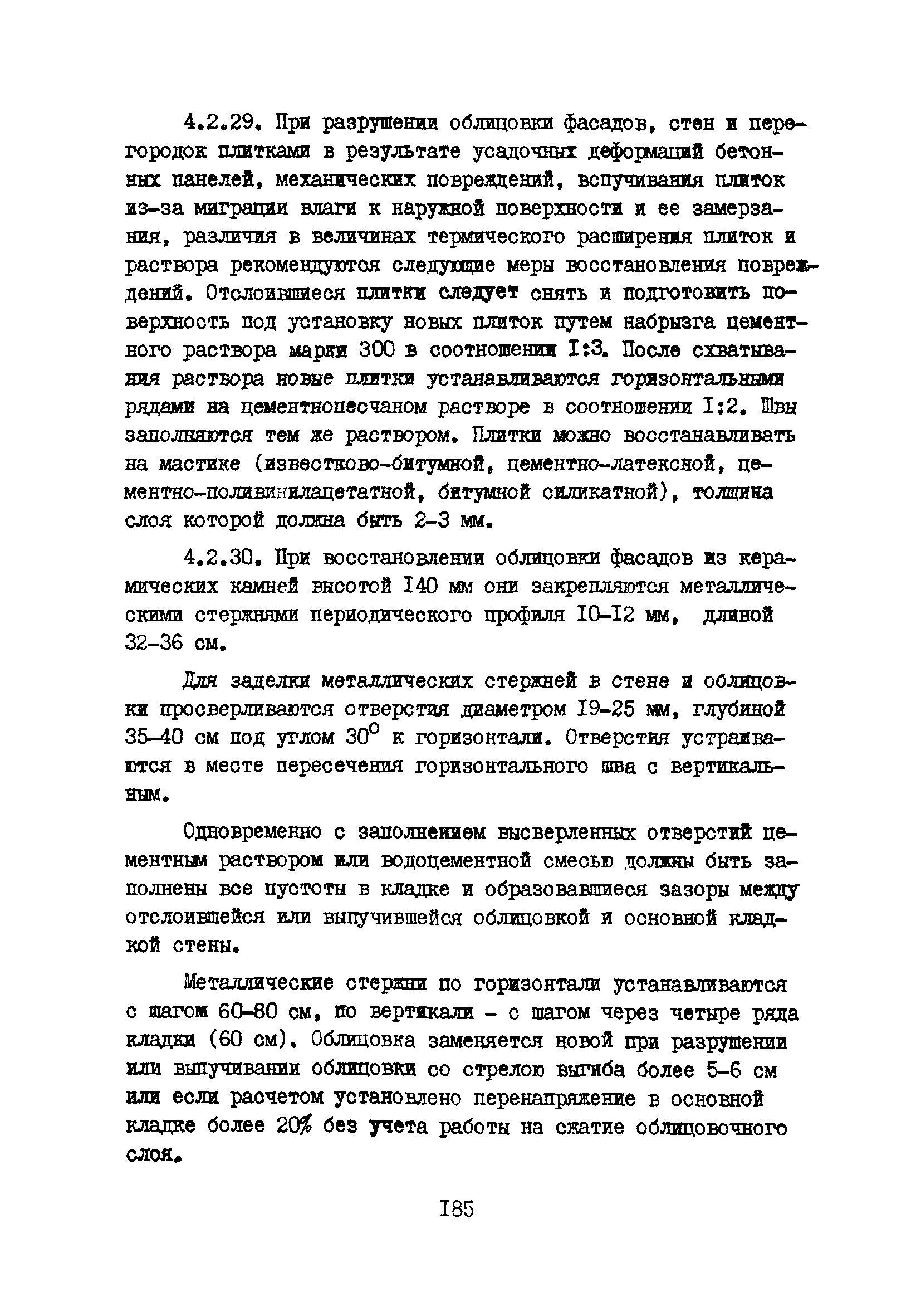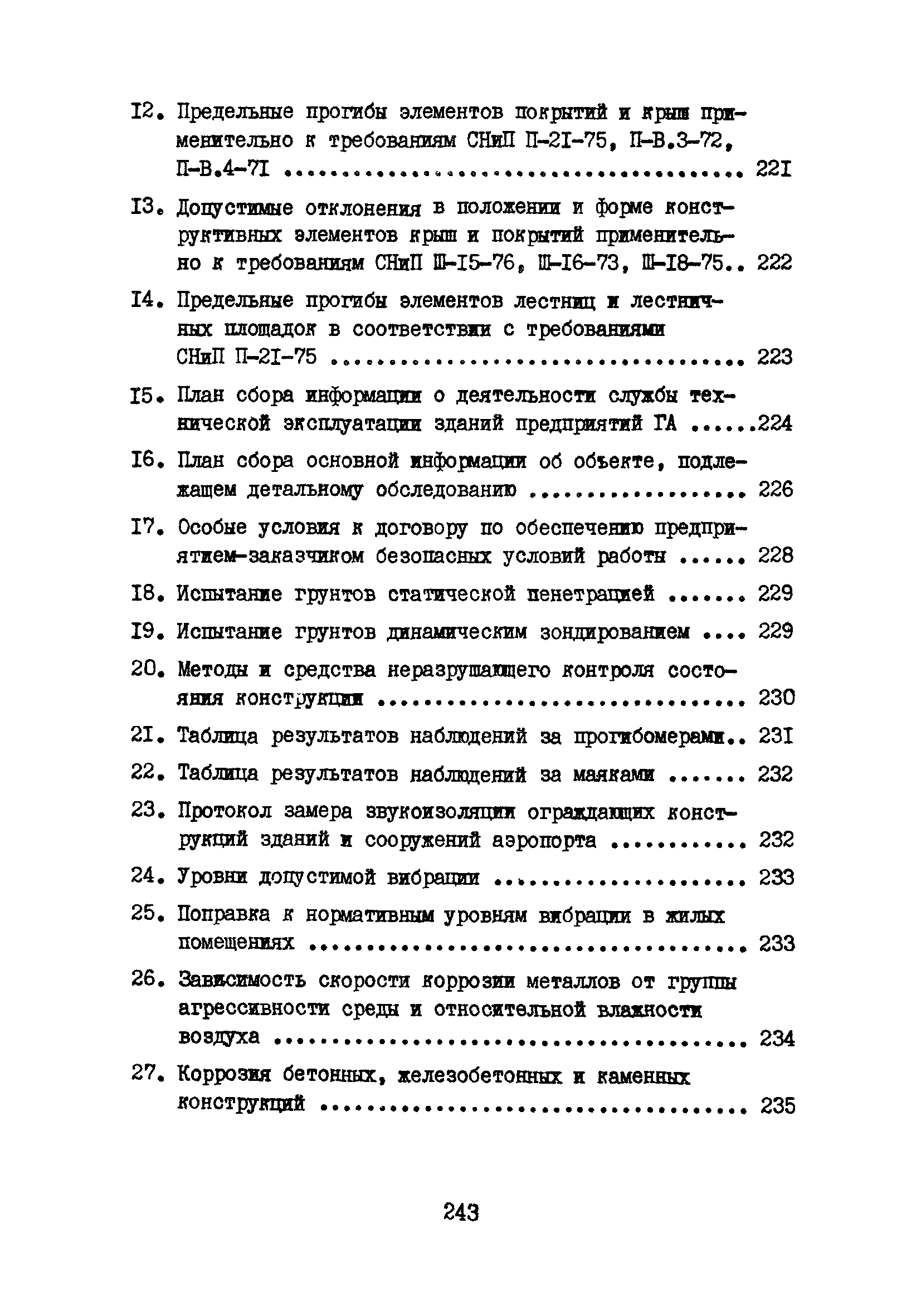 | Оглавление: | 1. Общие положения 2. Технические требования к эксплуатационным качествам зданий и сооружений 2.1 Требования к основаниям и элементам зданий и сооружений Общие положения Основания Фундаменты Стены и перегородки Колонны Перекрытия Покрытия, крыши и кровли Лестницы Полы Двери, ворота, окна и фонари 2.2 Требования к эксплуатационным и физическим качествам зданий, сооружений и их конструктивных элементов Теплотехнические качества Звукоизоляционные качества, освещенность 2.3 Требования к антикоррозионной защите конструкций 3. Методика обследования зданий и сооружений по эксплуатационной пригодности 3.1 Порядок проведения обследования технического состояния зданий и сооружений 3.2 Методы и средства контроля эксплуатационной пригодности зданий и сооружений Исследование грунтов оснований Контроль прочностных и деформационных характеристик бетонов и каменных материалов Контроль прочностных и деформационных характеристик металлов Контроль перемещений конструкций Контроль армирования, наличия закладных элементов и толщины защитного слоя в железобетонных и армокаменных конструкциях Контроль дефектов и повреждений Контроль уровня шума Контроль уровня вибрации Контроль теплозащитных качеств ограждающих конструкций Контроль герметичности ограждающих конструкций Контроль агрессивности среды и степени коррозии конструкций 3.3 Обследование оснований и конструктивных элементов зданий и сооружений Основания Фундаменты Каркасы зданий Стены и перегородки Колонны Перекрытия Покрытия, крыши и кровли Лестницы Полы Двери, ворота, окна и фонари 3.4 Определение фактических нагрузок и воздействий 3.5 Проведение поверочных расчетов 3.6 Составление заключения и состоянии обследованного здания (сооружения) 4. Рекомендации по совершенствованию эксплуатационных качеств зданий и сооружений 4.1 Восстановление и улучшение эксплуатационных качеств оснований и конструктивных элементов зданий и сооружений Основания Фундаменты Стены и перегородки Колонны Перекрытия и полы Покрытия, крыши и кровли Лестницы 4.2 Улучшение физических качеств зданий и сооружений Защита наружных конструкций от увлажнения Гидроизоляция фундаментов и подвалов Герметизация ограждающих конструкций Снижение теплопотерь Звукоизоляция и виброизоляция Освещенность 4.3 Повышение коррозионной стойкости строительных конструкций Металлические конструкции Бетонные, железобетонные и каменные конструкции Приложения |