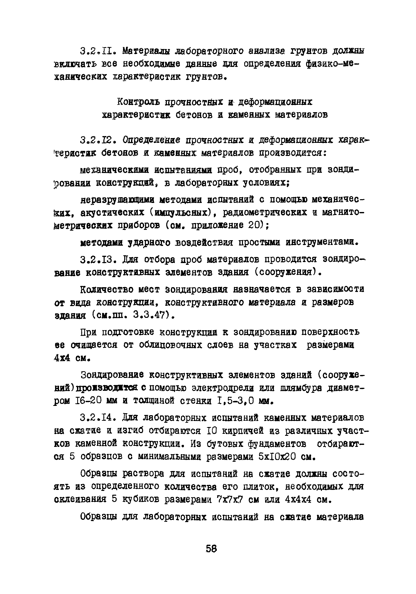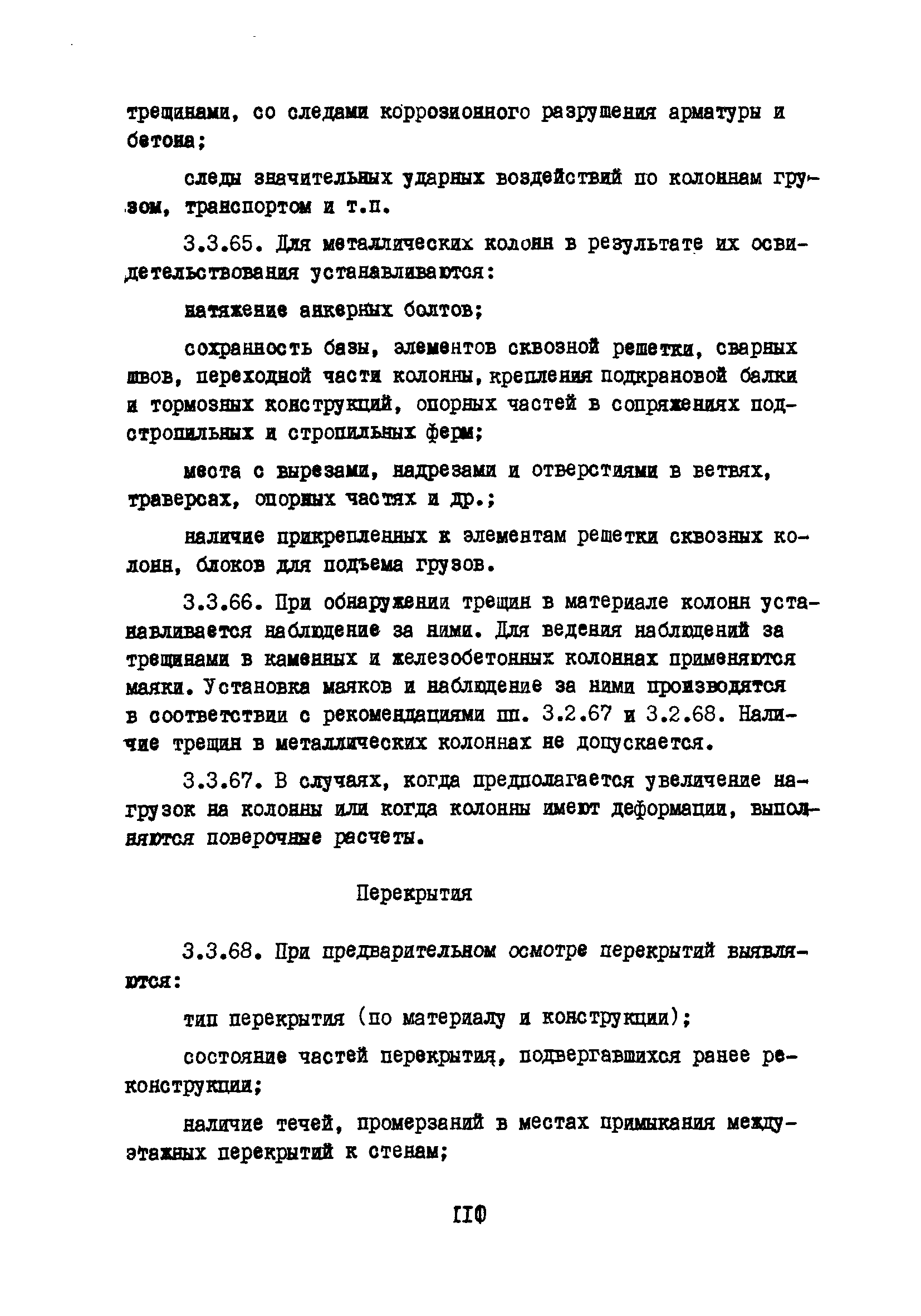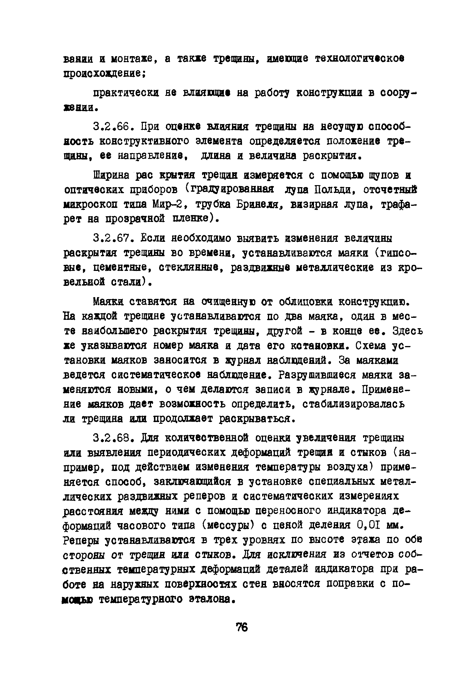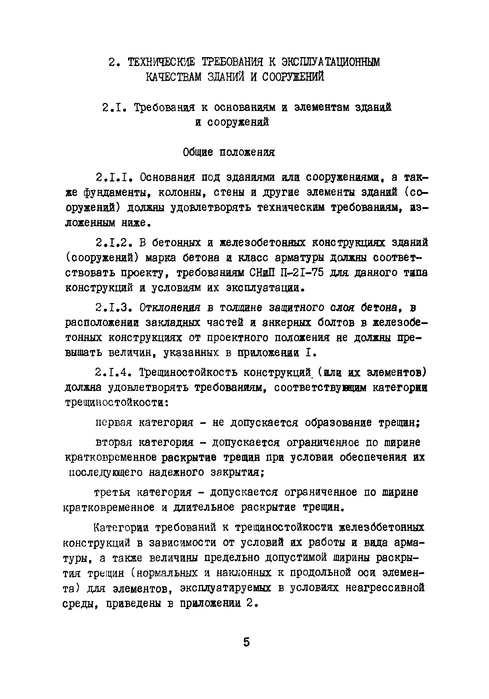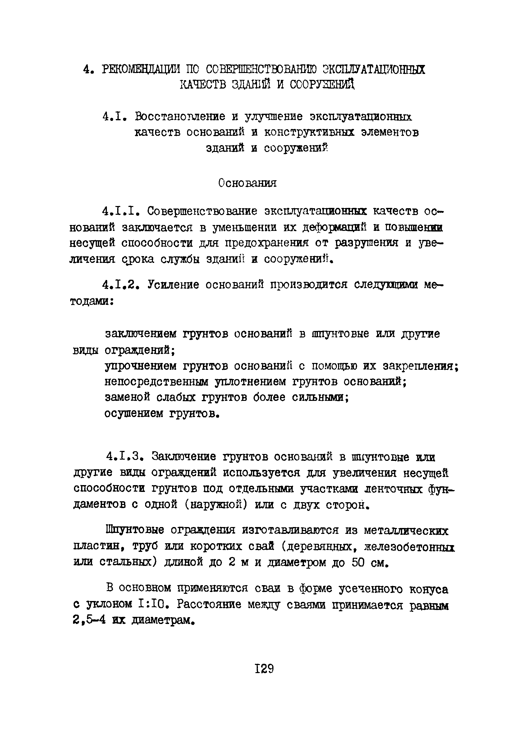 | Оглавление: | 1. Общие положения 2. Технические требования к эксплуатационным качествам зданий и сооружений 2.1 Требования к основаниям и элементам зданий и сооружений Общие положения Основания Фундаменты Стены и перегородки Колонны Перекрытия Покрытия, крыши и кровли Лестницы Полы Двери, ворота, окна и фонари 2.2 Требования к эксплуатационным и физическим качествам зданий, сооружений и их конструктивных элементов Теплотехнические качества Звукоизоляционные качества, освещенность 2.3 Требования к антикоррозионной защите конструкций 3. Методика обследования зданий и сооружений по эксплуатационной пригодности 3.1 Порядок проведения обследования технического состояния зданий и сооружений 3.2 Методы и средства контроля эксплуатационной пригодности зданий и сооружений Исследование грунтов оснований Контроль прочностных и деформационных характеристик бетонов и каменных материалов Контроль прочностных и деформационных характеристик металлов Контроль перемещений конструкций Контроль армирования, наличия закладных элементов и толщины защитного слоя в железобетонных и армокаменных конструкциях Контроль дефектов и повреждений Контроль уровня шума Контроль уровня вибрации Контроль теплозащитных качеств ограждающих конструкций Контроль герметичности ограждающих конструкций Контроль агрессивности среды и степени коррозии конструкций 3.3 Обследование оснований и конструктивных элементов зданий и сооружений Основания Фундаменты Каркасы зданий Стены и перегородки Колонны Перекрытия Покрытия, крыши и кровли Лестницы Полы Двери, ворота, окна и фонари 3.4 Определение фактических нагрузок и воздействий 3.5 Проведение поверочных расчетов 3.6 Составление заключения и состоянии обследованного здания (сооружения) 4. Рекомендации по совершенствованию эксплуатационных качеств зданий и сооружений 4.1 Восстановление и улучшение эксплуатационных качеств оснований и конструктивных элементов зданий и сооружений Основания Фундаменты Стены и перегородки Колонны Перекрытия и полы Покрытия, крыши и кровли Лестницы 4.2 Улучшение физических качеств зданий и сооружений Защита наружных конструкций от увлажнения Гидроизоляция фундаментов и подвалов Герметизация ограждающих конструкций Снижение теплопотерь Звукоизоляция и виброизоляция Освещенность 4.3 Повышение коррозионной стойкости строительных конструкций Металлические конструкции Бетонные, железобетонные и каменные конструкции Приложения |