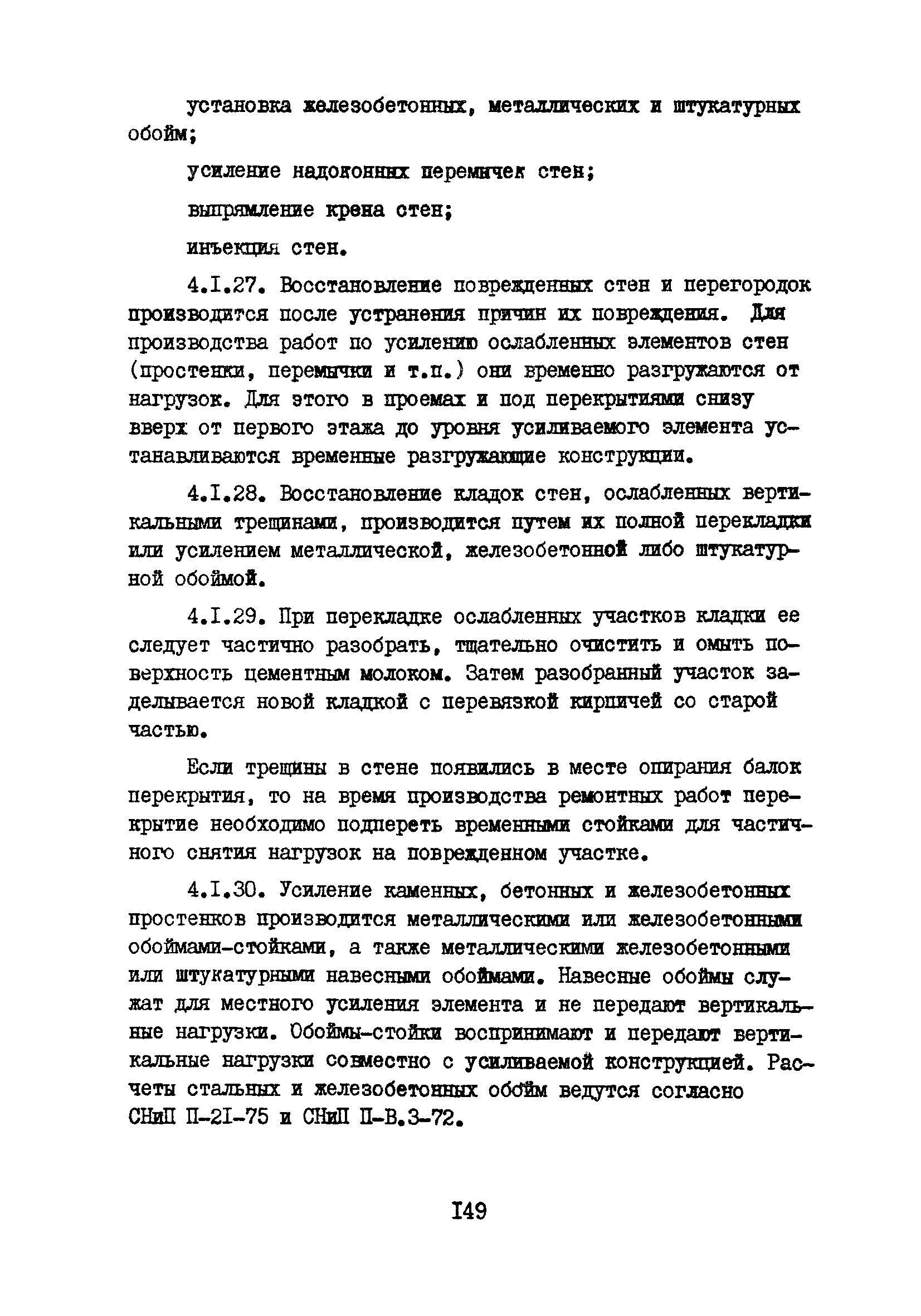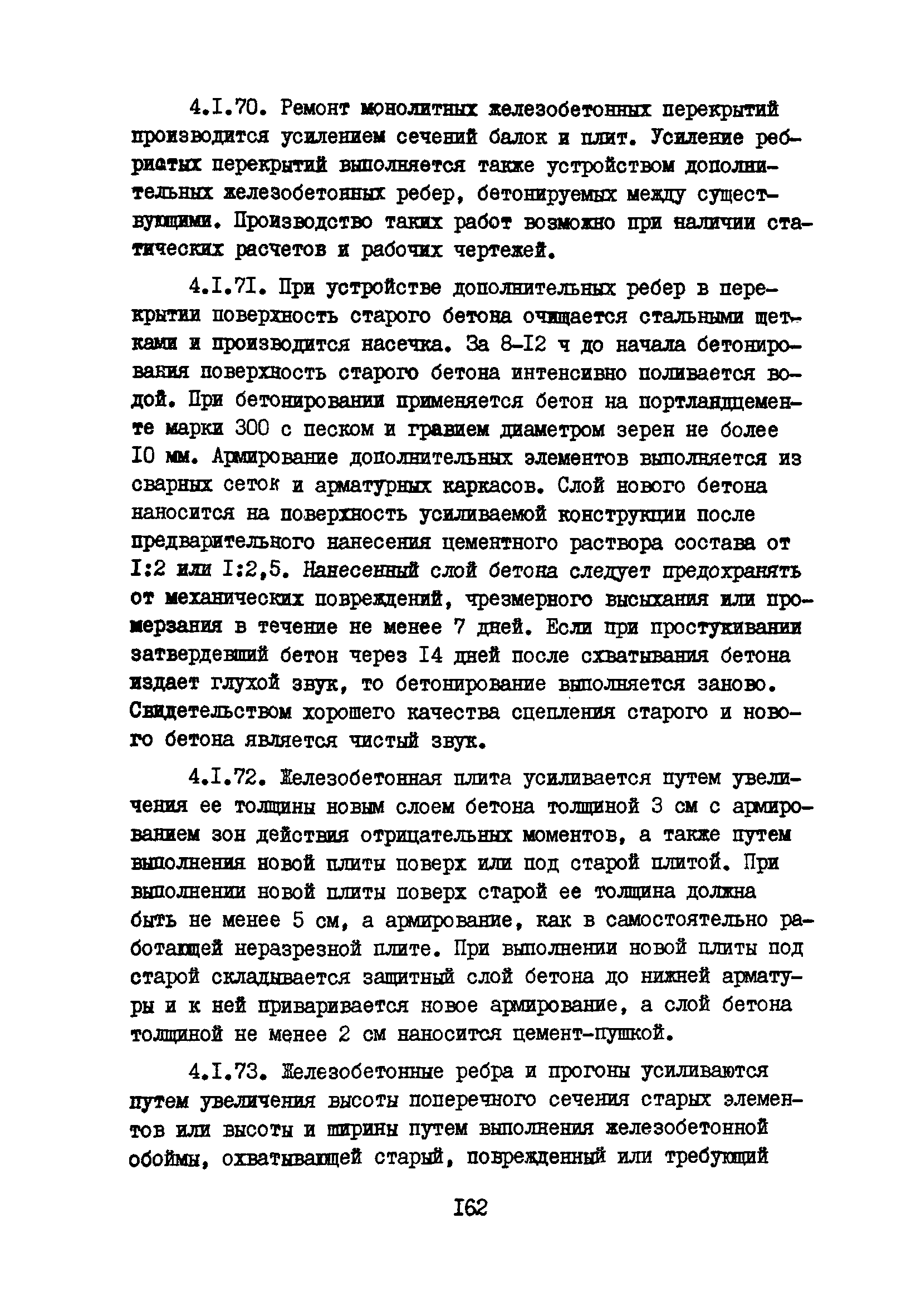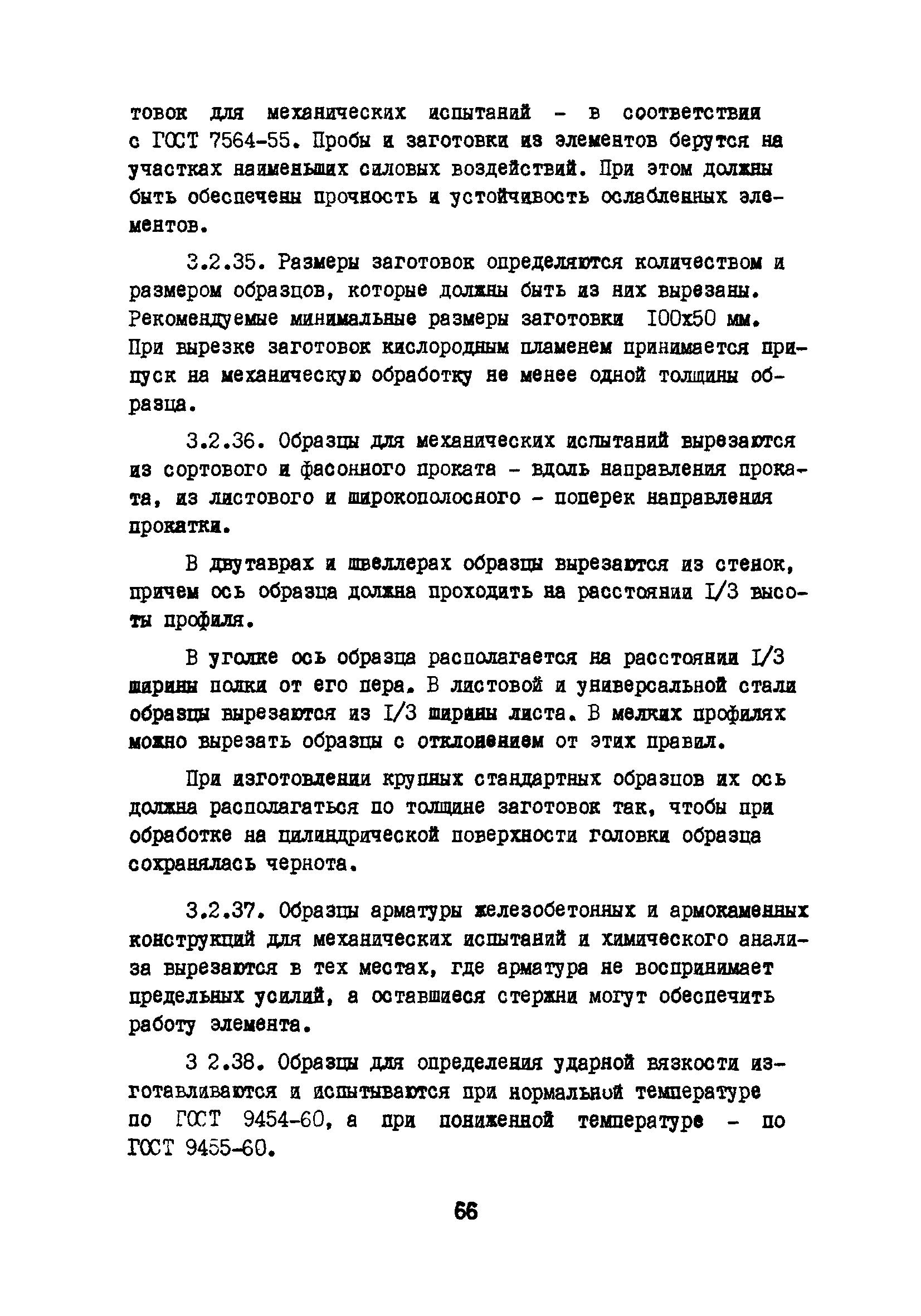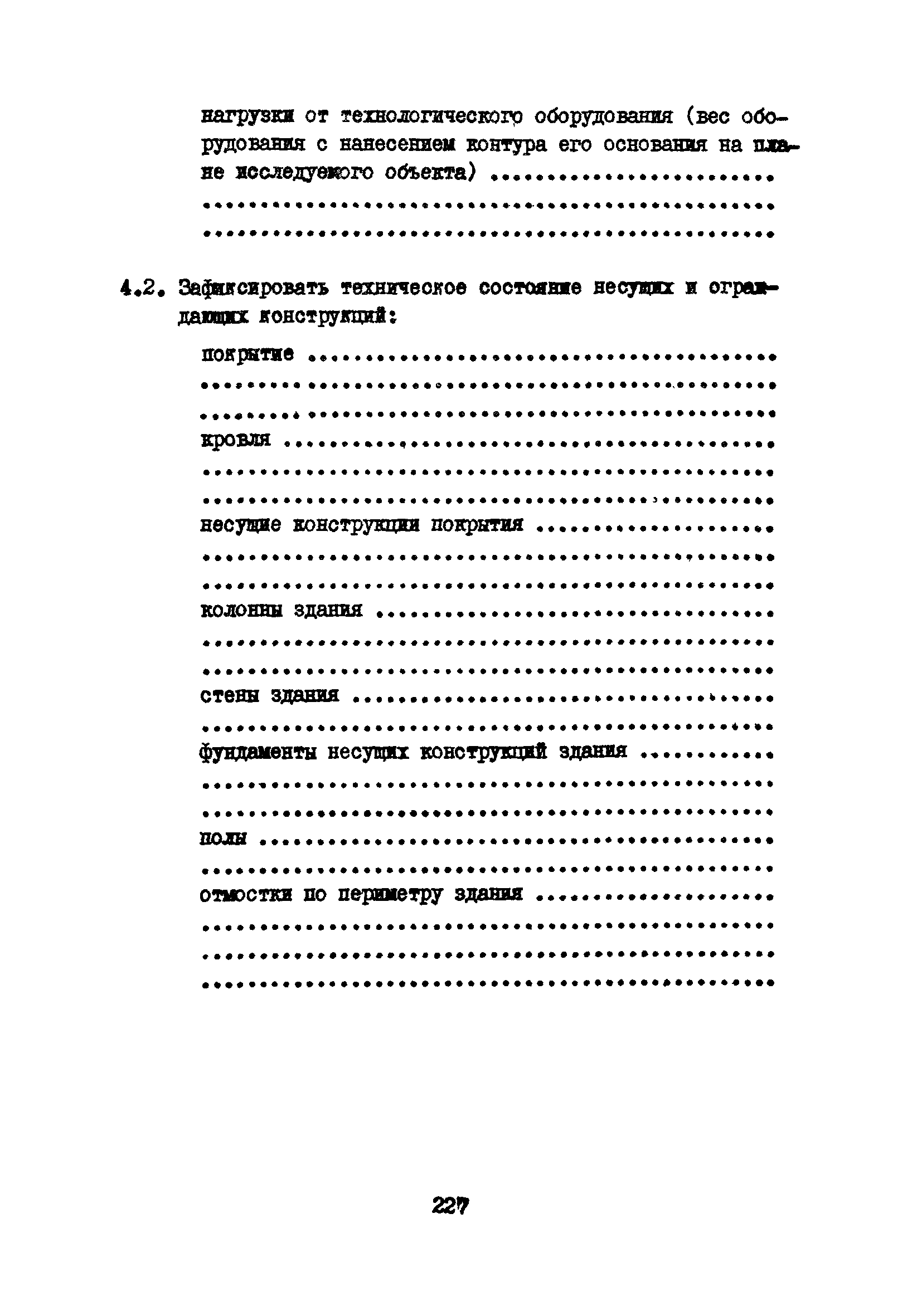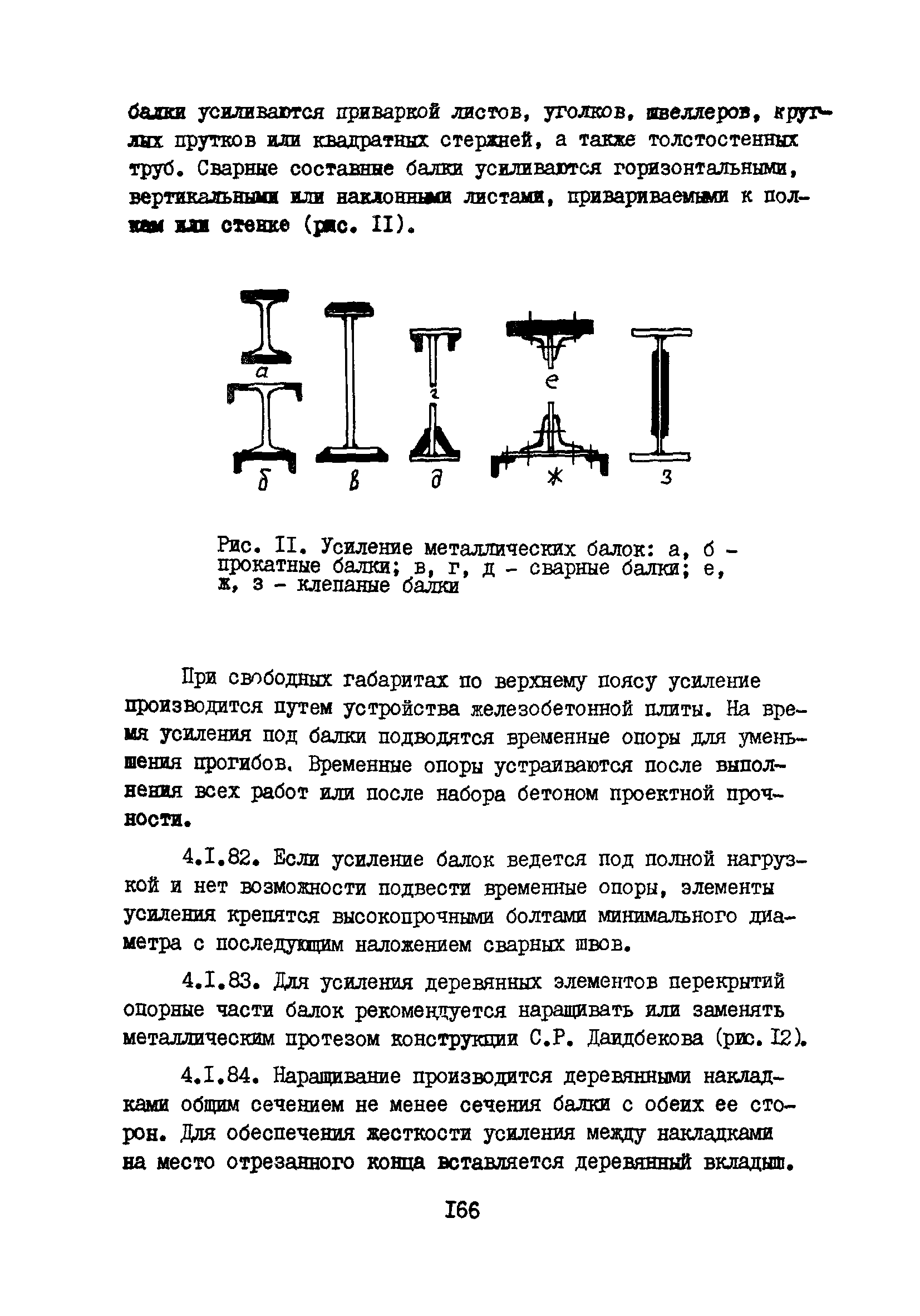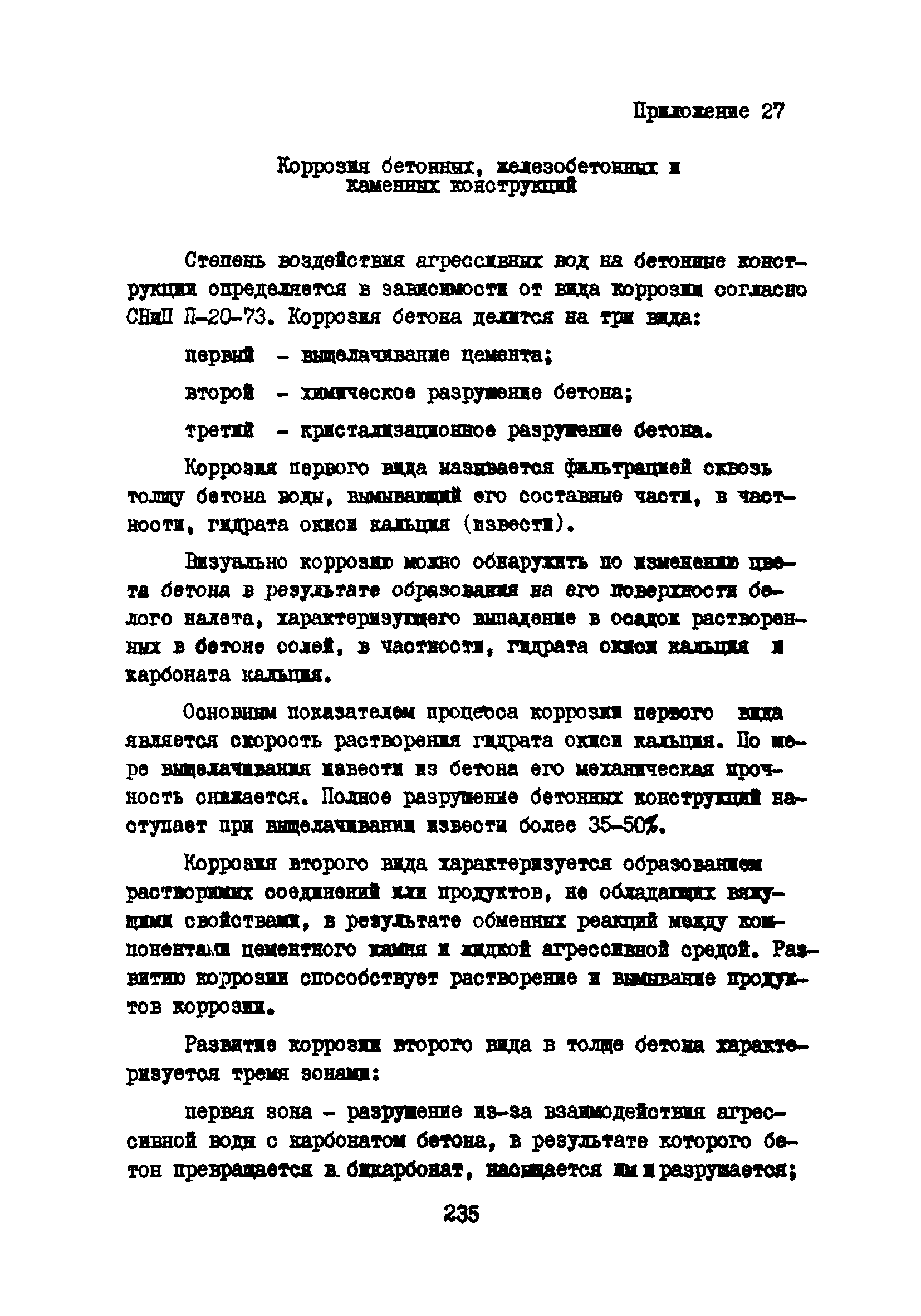 | Оглавление: | 1. Общие положения 2. Технические требования к эксплуатационным качествам зданий и сооружений 2.1 Требования к основаниям и элементам зданий и сооружений Общие положения Основания Фундаменты Стены и перегородки Колонны Перекрытия Покрытия, крыши и кровли Лестницы Полы Двери, ворота, окна и фонари 2.2 Требования к эксплуатационным и физическим качествам зданий, сооружений и их конструктивных элементов Теплотехнические качества Звукоизоляционные качества, освещенность 2.3 Требования к антикоррозионной защите конструкций 3. Методика обследования зданий и сооружений по эксплуатационной пригодности 3.1 Порядок проведения обследования технического состояния зданий и сооружений 3.2 Методы и средства контроля эксплуатационной пригодности зданий и сооружений Исследование грунтов оснований Контроль прочностных и деформационных характеристик бетонов и каменных материалов Контроль прочностных и деформационных характеристик металлов Контроль перемещений конструкций Контроль армирования, наличия закладных элементов и толщины защитного слоя в железобетонных и армокаменных конструкциях Контроль дефектов и повреждений Контроль уровня шума Контроль уровня вибрации Контроль теплозащитных качеств ограждающих конструкций Контроль герметичности ограждающих конструкций Контроль агрессивности среды и степени коррозии конструкций 3.3 Обследование оснований и конструктивных элементов зданий и сооружений Основания Фундаменты Каркасы зданий Стены и перегородки Колонны Перекрытия Покрытия, крыши и кровли Лестницы Полы Двери, ворота, окна и фонари 3.4 Определение фактических нагрузок и воздействий 3.5 Проведение поверочных расчетов 3.6 Составление заключения и состоянии обследованного здания (сооружения) 4. Рекомендации по совершенствованию эксплуатационных качеств зданий и сооружений 4.1 Восстановление и улучшение эксплуатационных качеств оснований и конструктивных элементов зданий и сооружений Основания Фундаменты Стены и перегородки Колонны Перекрытия и полы Покрытия, крыши и кровли Лестницы 4.2 Улучшение физических качеств зданий и сооружений Защита наружных конструкций от увлажнения Гидроизоляция фундаментов и подвалов Герметизация ограждающих конструкций Снижение теплопотерь Звукоизоляция и виброизоляция Освещенность 4.3 Повышение коррозионной стойкости строительных конструкций Металлические конструкции Бетонные, железобетонные и каменные конструкции Приложения |