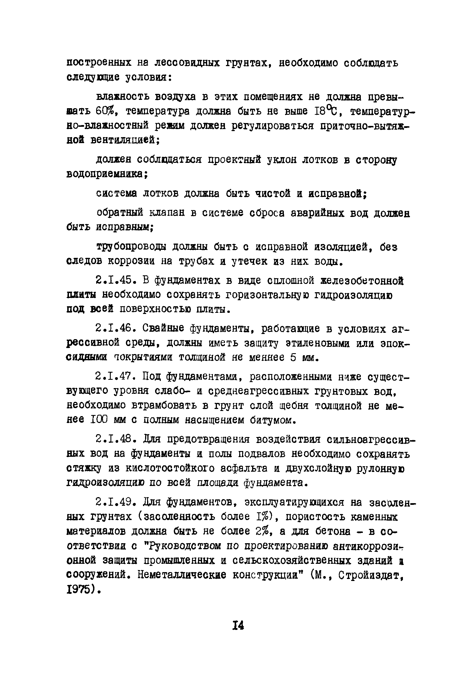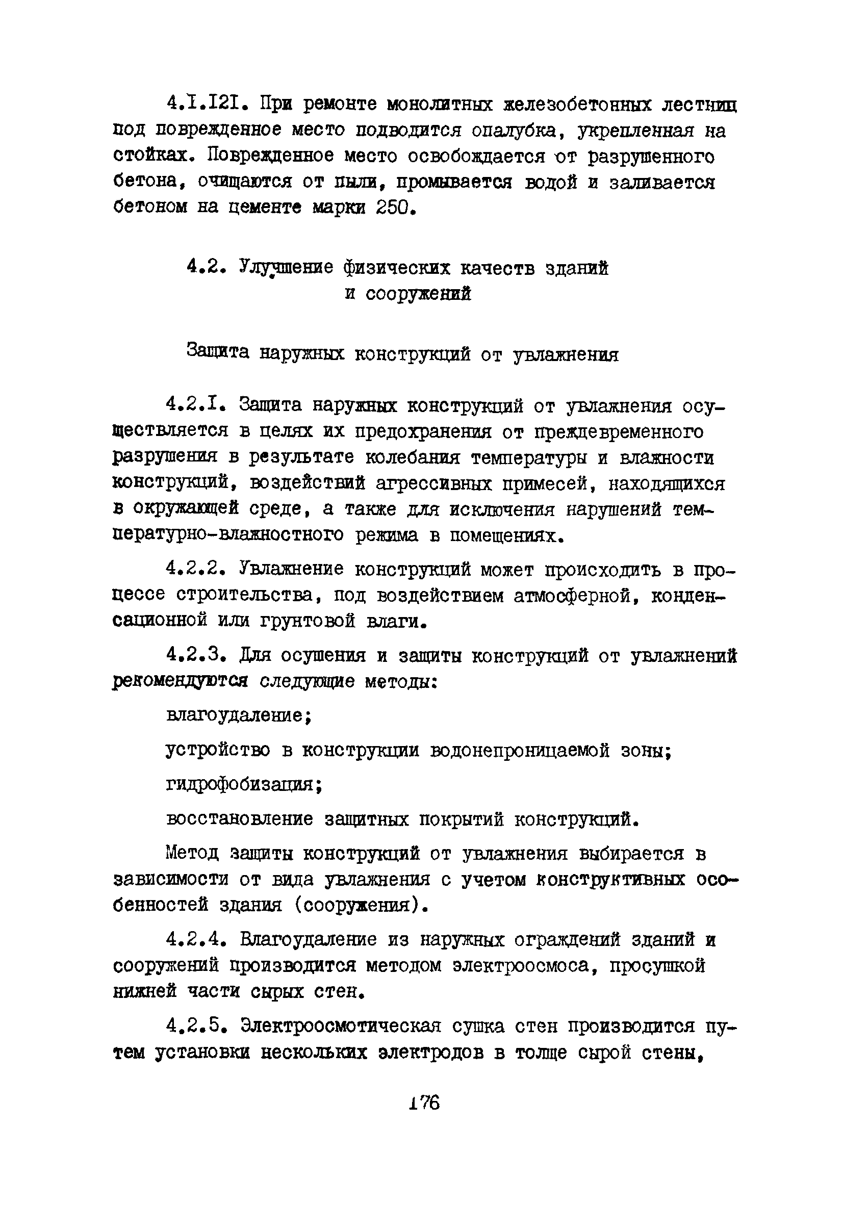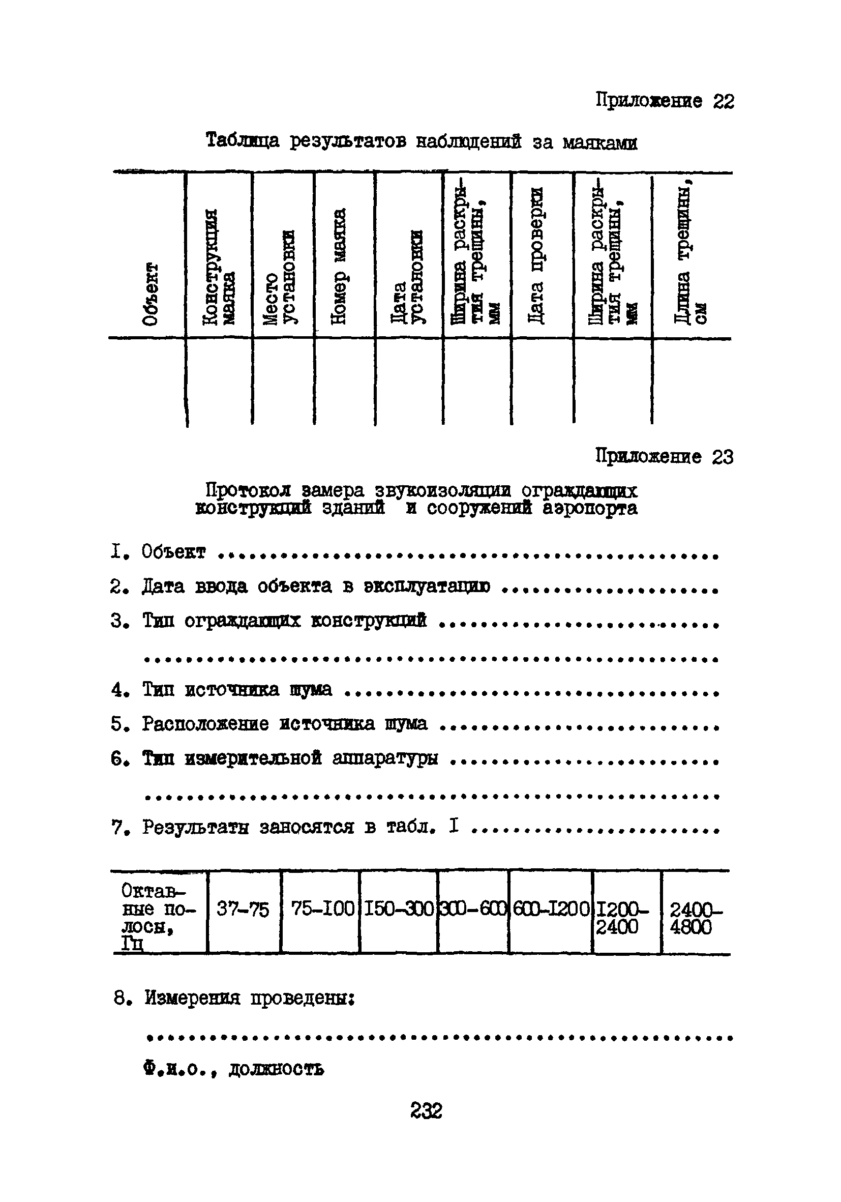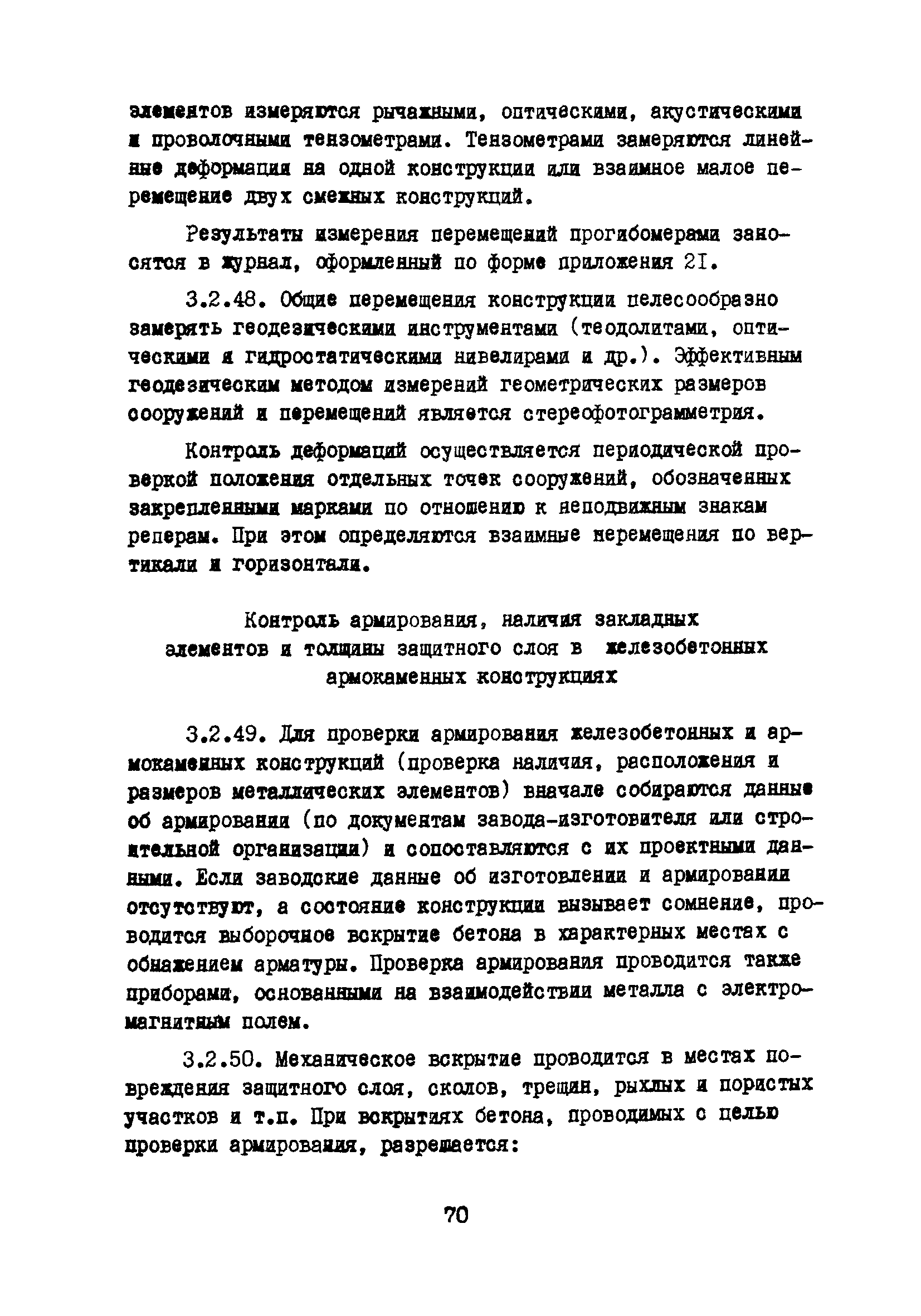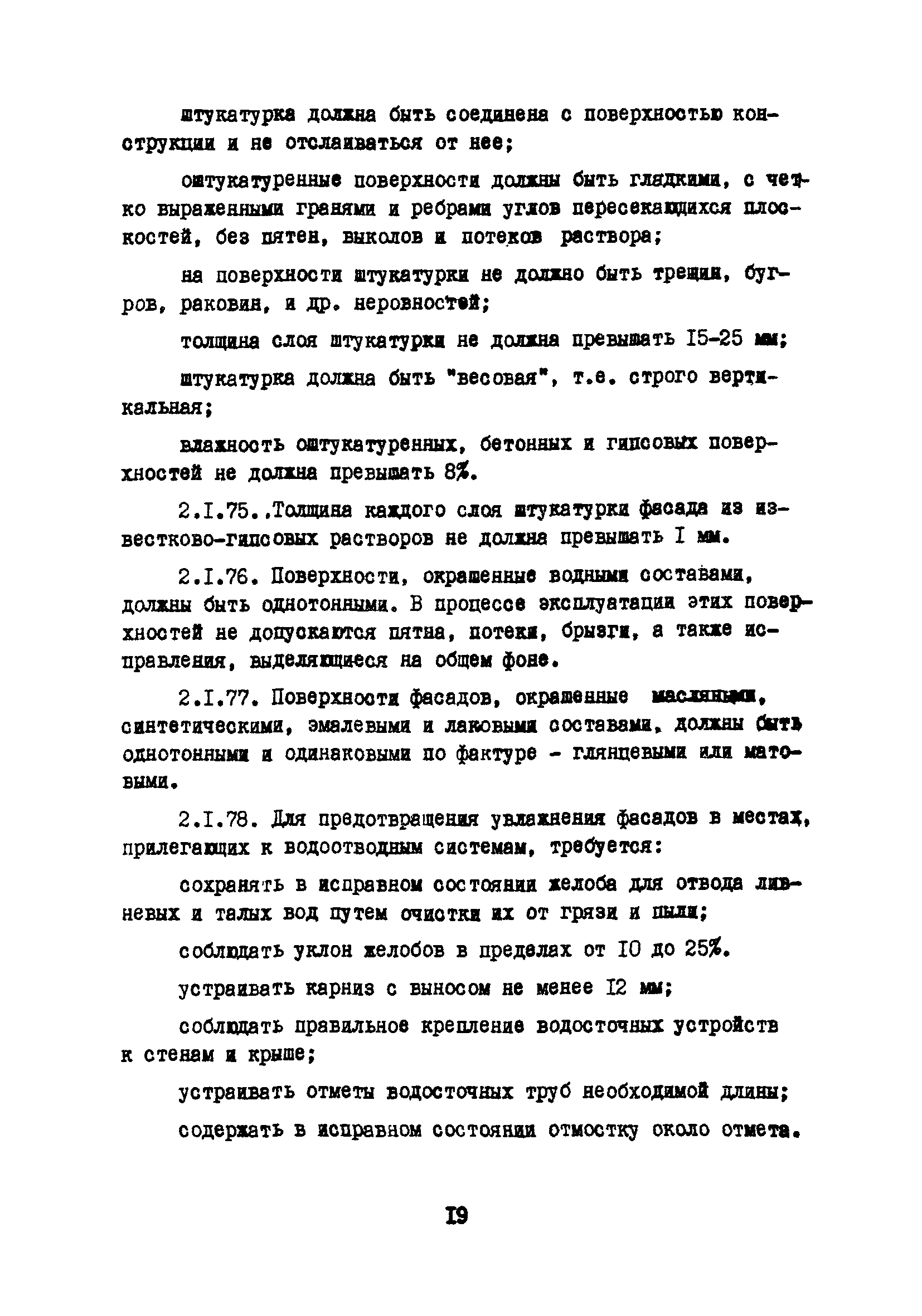 | Оглавление: | 1. Общие положения 2. Технические требования к эксплуатационным качествам зданий и сооружений 2.1 Требования к основаниям и элементам зданий и сооружений Общие положения Основания Фундаменты Стены и перегородки Колонны Перекрытия Покрытия, крыши и кровли Лестницы Полы Двери, ворота, окна и фонари 2.2 Требования к эксплуатационным и физическим качествам зданий, сооружений и их конструктивных элементов Теплотехнические качества Звукоизоляционные качества, освещенность 2.3 Требования к антикоррозионной защите конструкций 3. Методика обследования зданий и сооружений по эксплуатационной пригодности 3.1 Порядок проведения обследования технического состояния зданий и сооружений 3.2 Методы и средства контроля эксплуатационной пригодности зданий и сооружений Исследование грунтов оснований Контроль прочностных и деформационных характеристик бетонов и каменных материалов Контроль прочностных и деформационных характеристик металлов Контроль перемещений конструкций Контроль армирования, наличия закладных элементов и толщины защитного слоя в железобетонных и армокаменных конструкциях Контроль дефектов и повреждений Контроль уровня шума Контроль уровня вибрации Контроль теплозащитных качеств ограждающих конструкций Контроль герметичности ограждающих конструкций Контроль агрессивности среды и степени коррозии конструкций 3.3 Обследование оснований и конструктивных элементов зданий и сооружений Основания Фундаменты Каркасы зданий Стены и перегородки Колонны Перекрытия Покрытия, крыши и кровли Лестницы Полы Двери, ворота, окна и фонари 3.4 Определение фактических нагрузок и воздействий 3.5 Проведение поверочных расчетов 3.6 Составление заключения и состоянии обследованного здания (сооружения) 4. Рекомендации по совершенствованию эксплуатационных качеств зданий и сооружений 4.1 Восстановление и улучшение эксплуатационных качеств оснований и конструктивных элементов зданий и сооружений Основания Фундаменты Стены и перегородки Колонны Перекрытия и полы Покрытия, крыши и кровли Лестницы 4.2 Улучшение физических качеств зданий и сооружений Защита наружных конструкций от увлажнения Гидроизоляция фундаментов и подвалов Герметизация ограждающих конструкций Снижение теплопотерь Звукоизоляция и виброизоляция Освещенность 4.3 Повышение коррозионной стойкости строительных конструкций Металлические конструкции Бетонные, железобетонные и каменные конструкции Приложения |