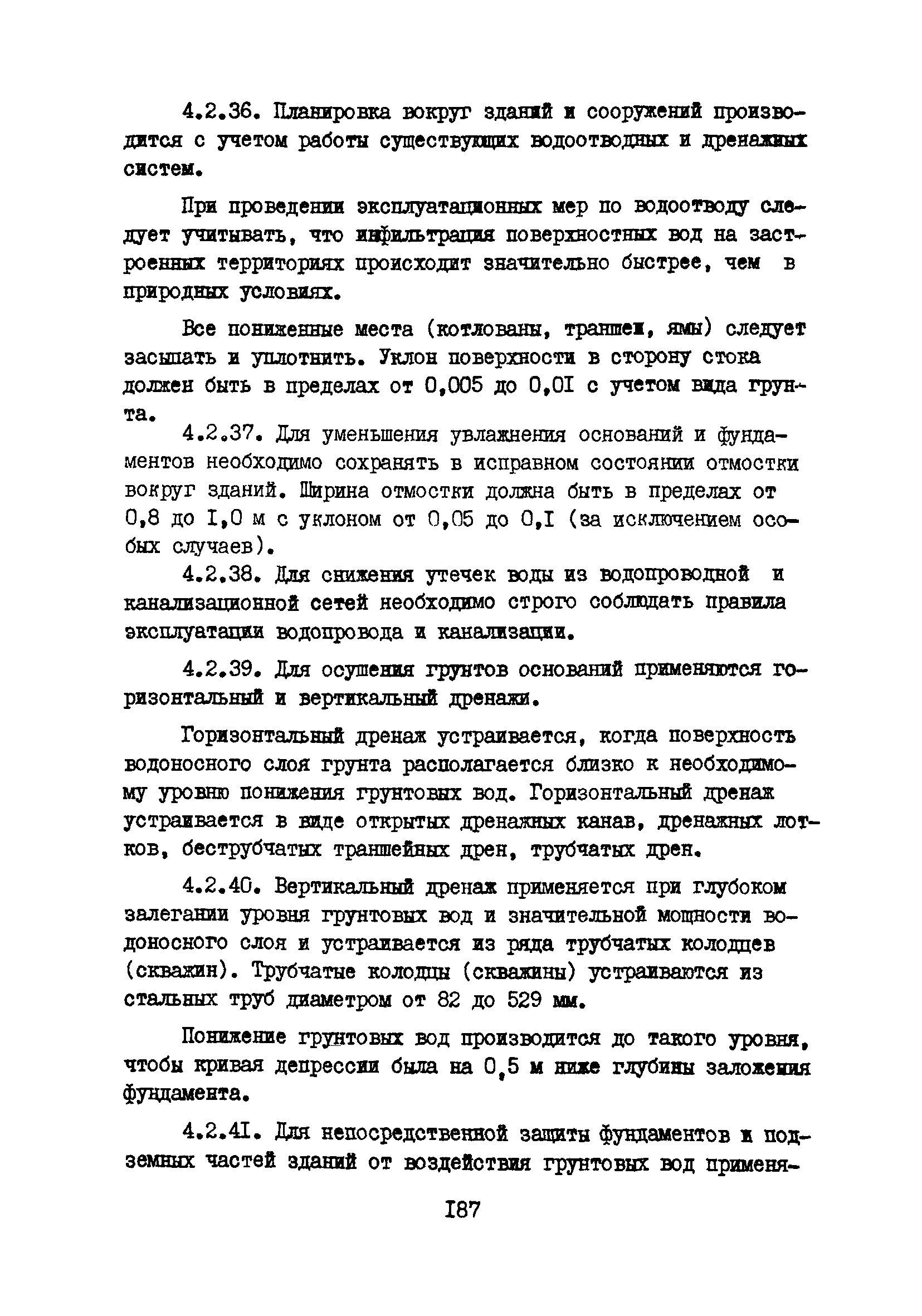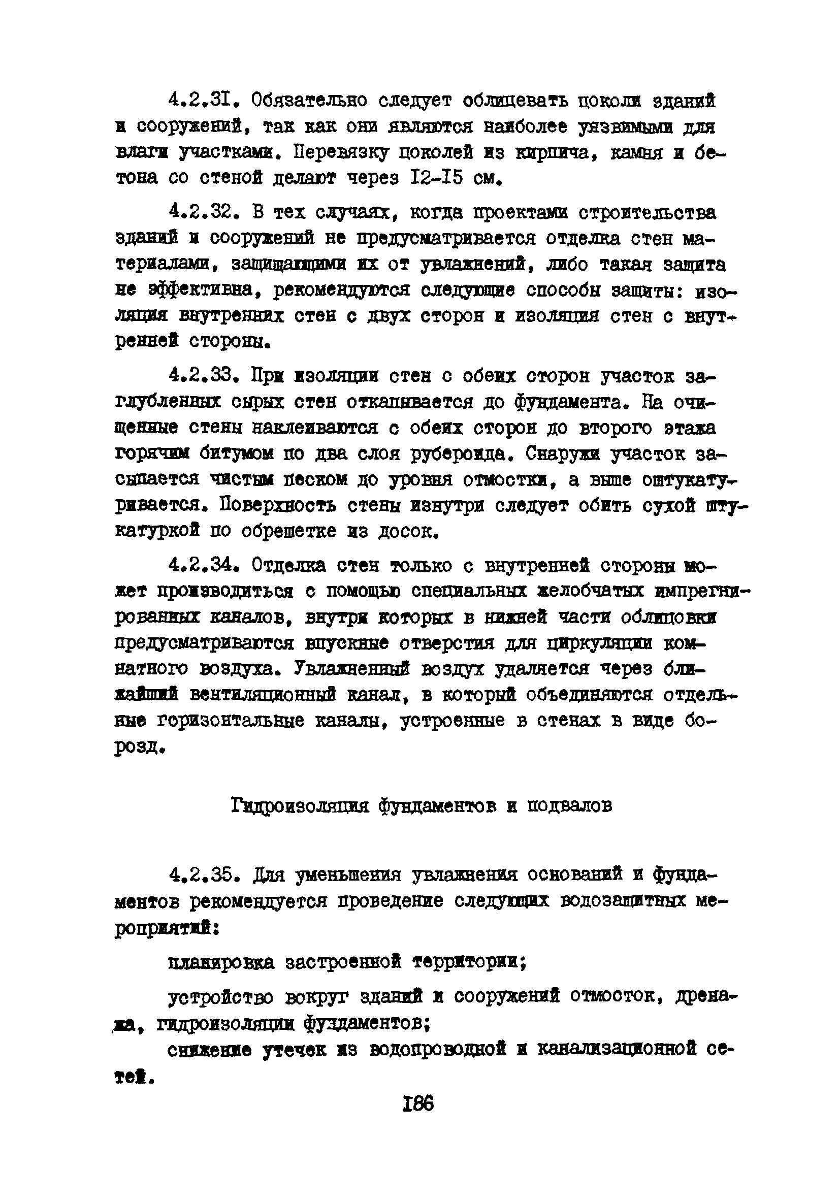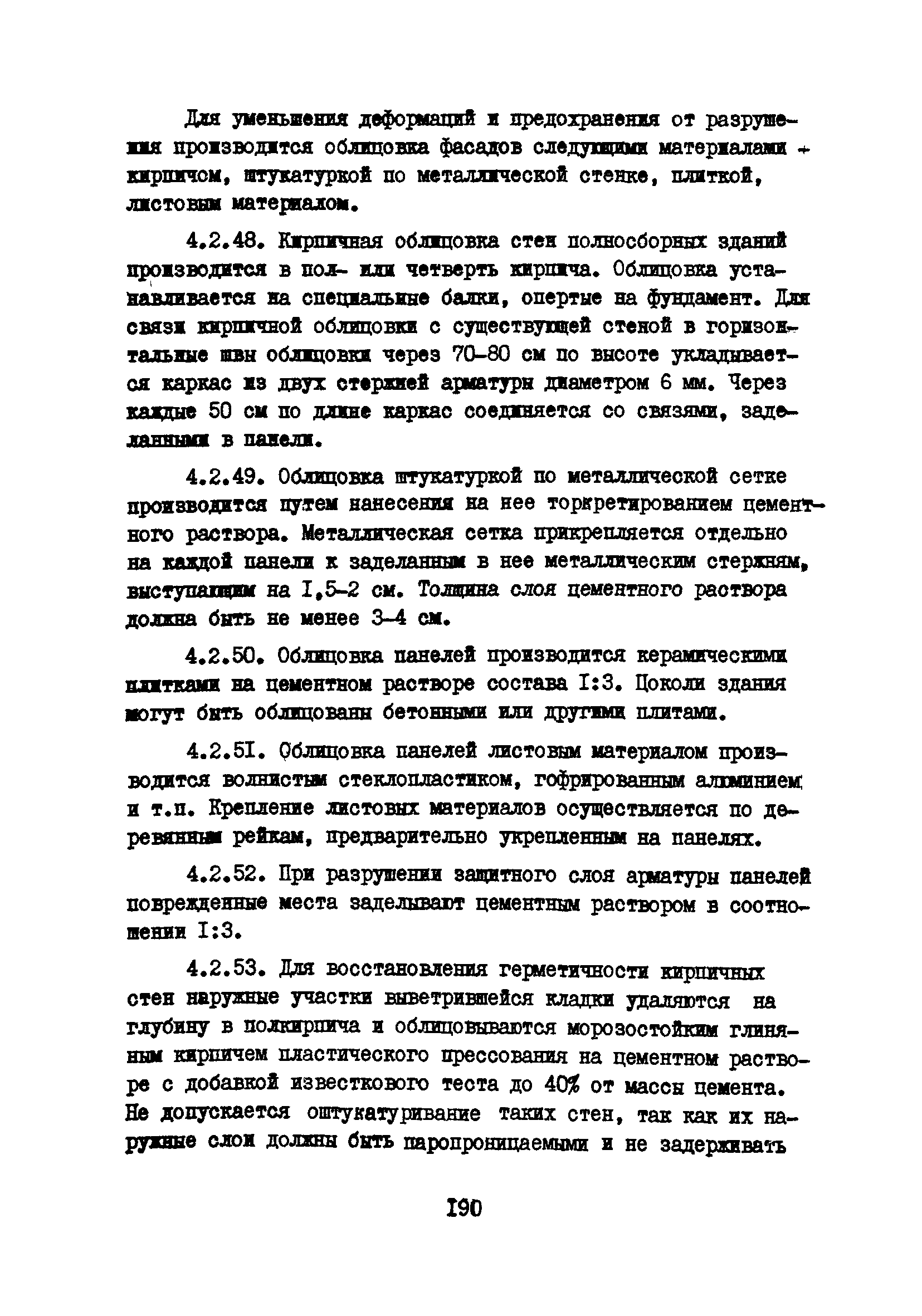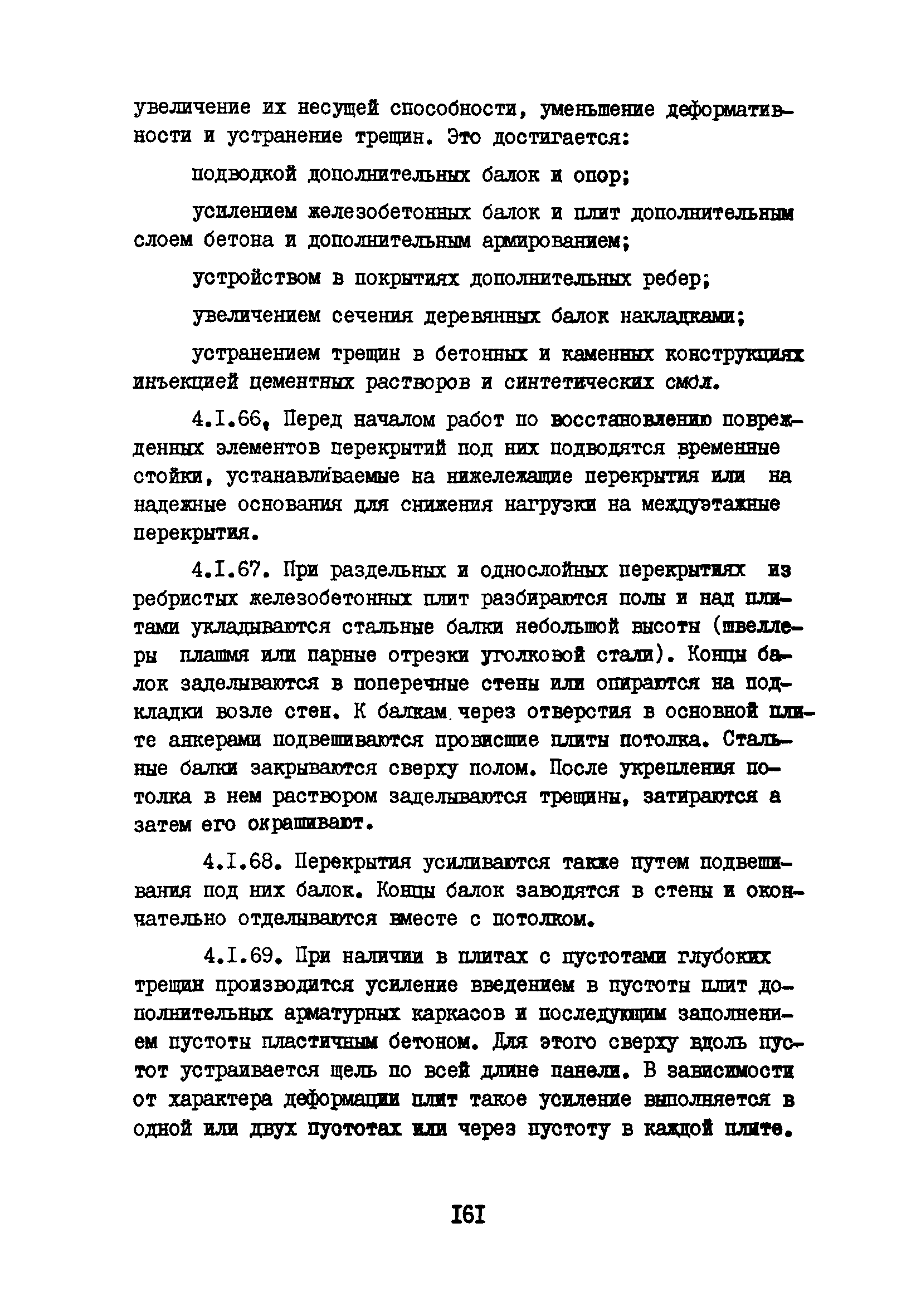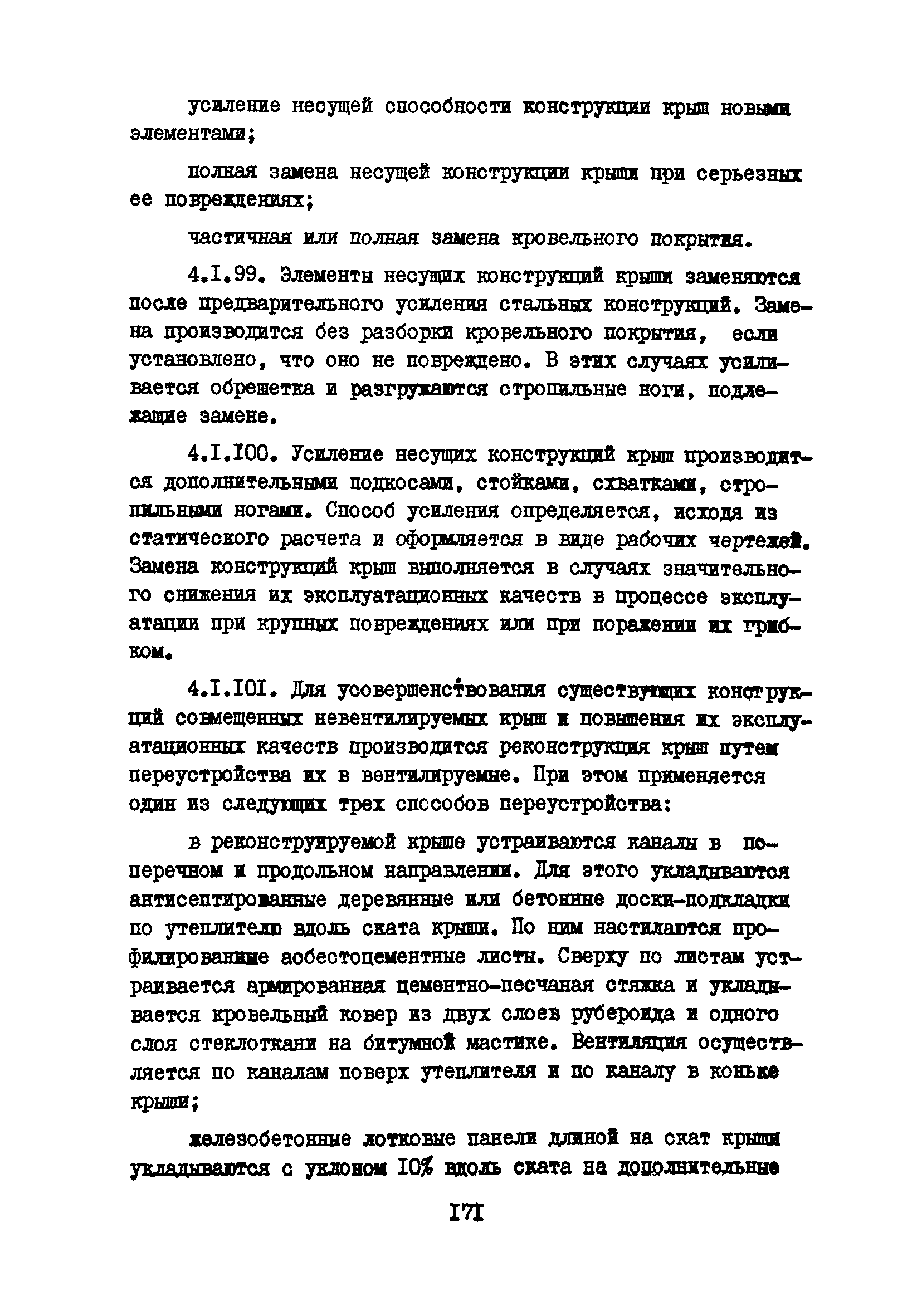 | Оглавление: | 1. Общие положения 2. Технические требования к эксплуатационным качествам зданий и сооружений 2.1 Требования к основаниям и элементам зданий и сооружений Общие положения Основания Фундаменты Стены и перегородки Колонны Перекрытия Покрытия, крыши и кровли Лестницы Полы Двери, ворота, окна и фонари 2.2 Требования к эксплуатационным и физическим качествам зданий, сооружений и их конструктивных элементов Теплотехнические качества Звукоизоляционные качества, освещенность 2.3 Требования к антикоррозионной защите конструкций 3. Методика обследования зданий и сооружений по эксплуатационной пригодности 3.1 Порядок проведения обследования технического состояния зданий и сооружений 3.2 Методы и средства контроля эксплуатационной пригодности зданий и сооружений Исследование грунтов оснований Контроль прочностных и деформационных характеристик бетонов и каменных материалов Контроль прочностных и деформационных характеристик металлов Контроль перемещений конструкций Контроль армирования, наличия закладных элементов и толщины защитного слоя в железобетонных и армокаменных конструкциях Контроль дефектов и повреждений Контроль уровня шума Контроль уровня вибрации Контроль теплозащитных качеств ограждающих конструкций Контроль герметичности ограждающих конструкций Контроль агрессивности среды и степени коррозии конструкций 3.3 Обследование оснований и конструктивных элементов зданий и сооружений Основания Фундаменты Каркасы зданий Стены и перегородки Колонны Перекрытия Покрытия, крыши и кровли Лестницы Полы Двери, ворота, окна и фонари 3.4 Определение фактических нагрузок и воздействий 3.5 Проведение поверочных расчетов 3.6 Составление заключения и состоянии обследованного здания (сооружения) 4. Рекомендации по совершенствованию эксплуатационных качеств зданий и сооружений 4.1 Восстановление и улучшение эксплуатационных качеств оснований и конструктивных элементов зданий и сооружений Основания Фундаменты Стены и перегородки Колонны Перекрытия и полы Покрытия, крыши и кровли Лестницы 4.2 Улучшение физических качеств зданий и сооружений Защита наружных конструкций от увлажнения Гидроизоляция фундаментов и подвалов Герметизация ограждающих конструкций Снижение теплопотерь Звукоизоляция и виброизоляция Освещенность 4.3 Повышение коррозионной стойкости строительных конструкций Металлические конструкции Бетонные, железобетонные и каменные конструкции Приложения |