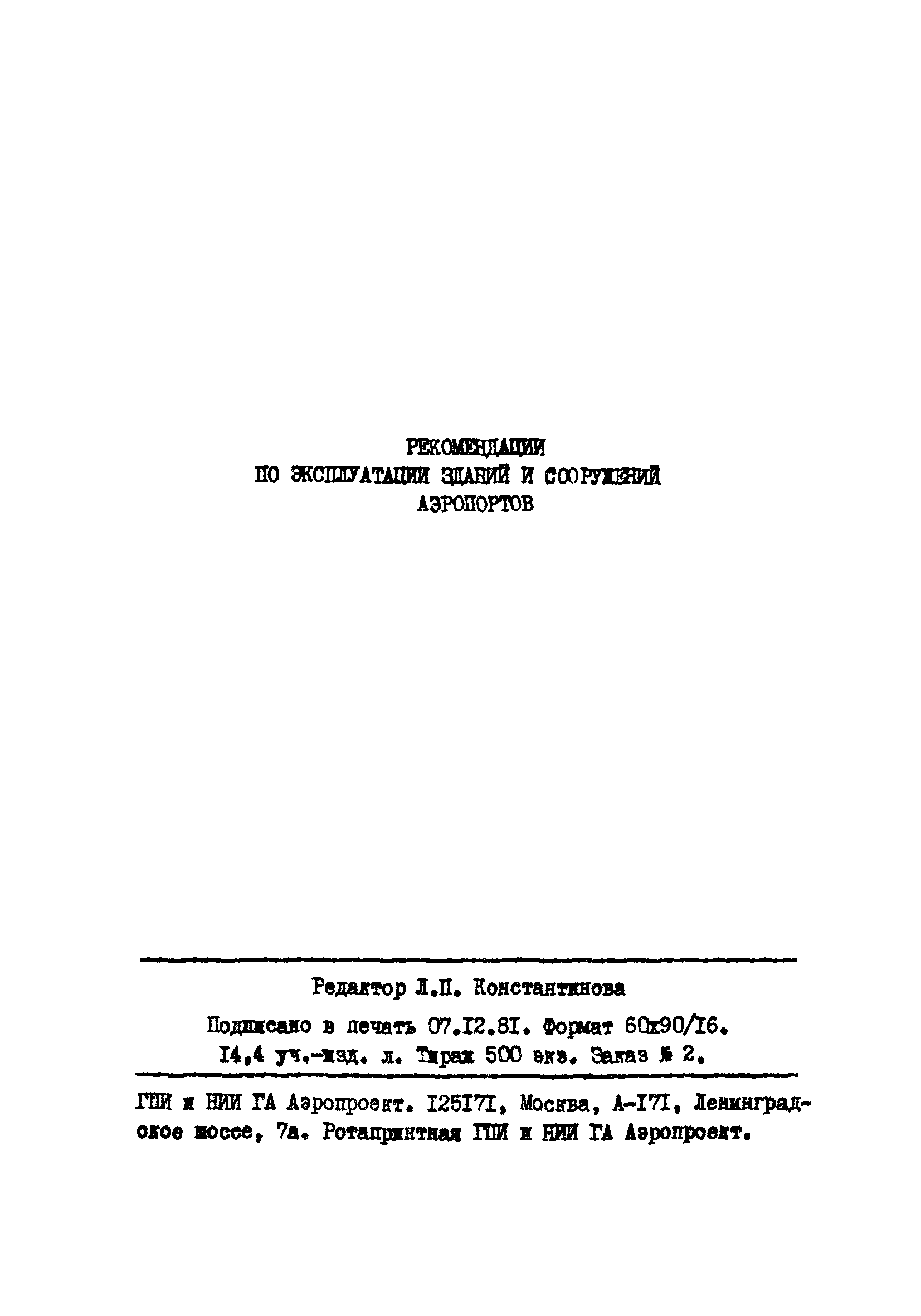 | Название рус.: | Рекомендации по эксплуатации зданий и сооружений аэропортов |