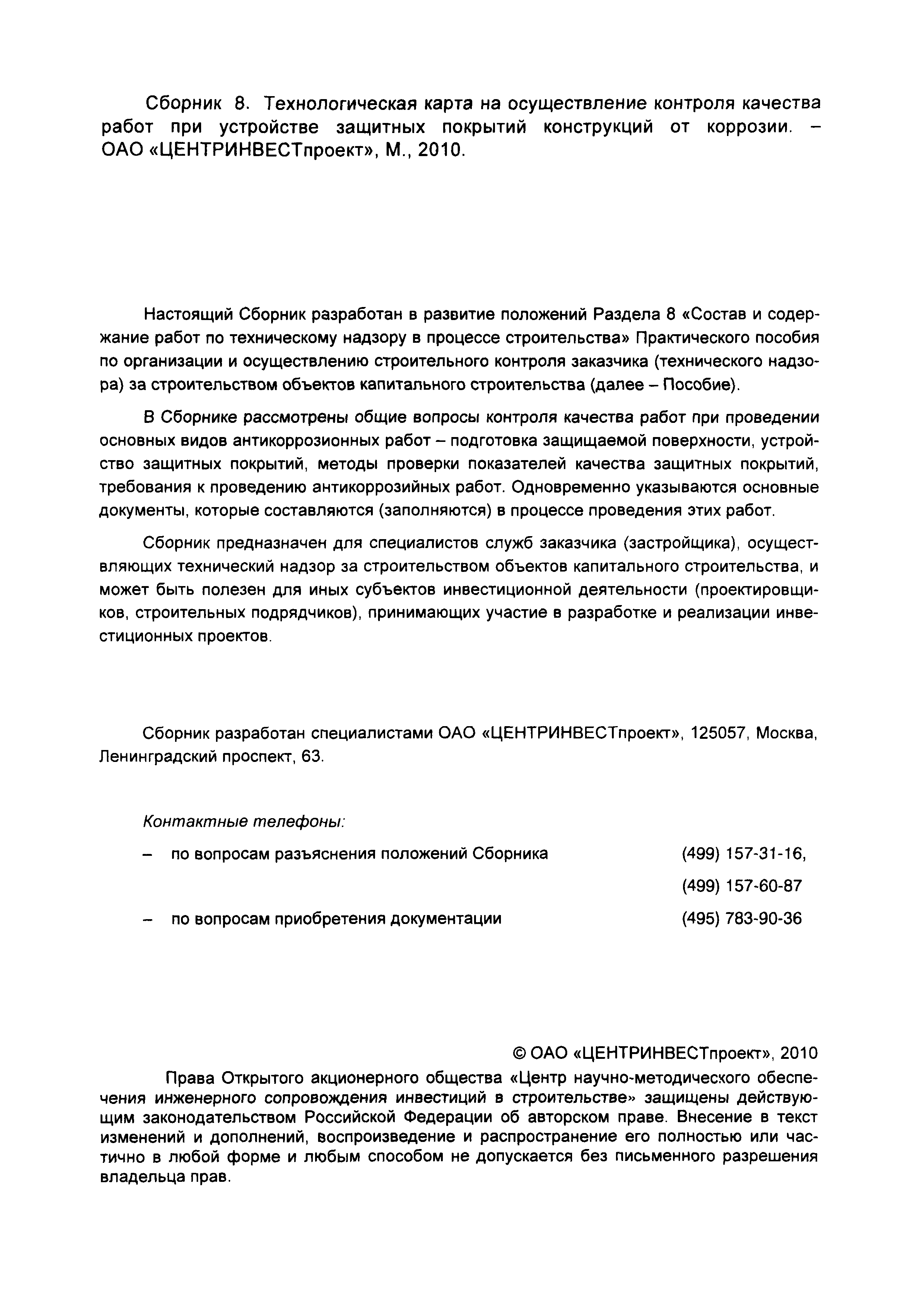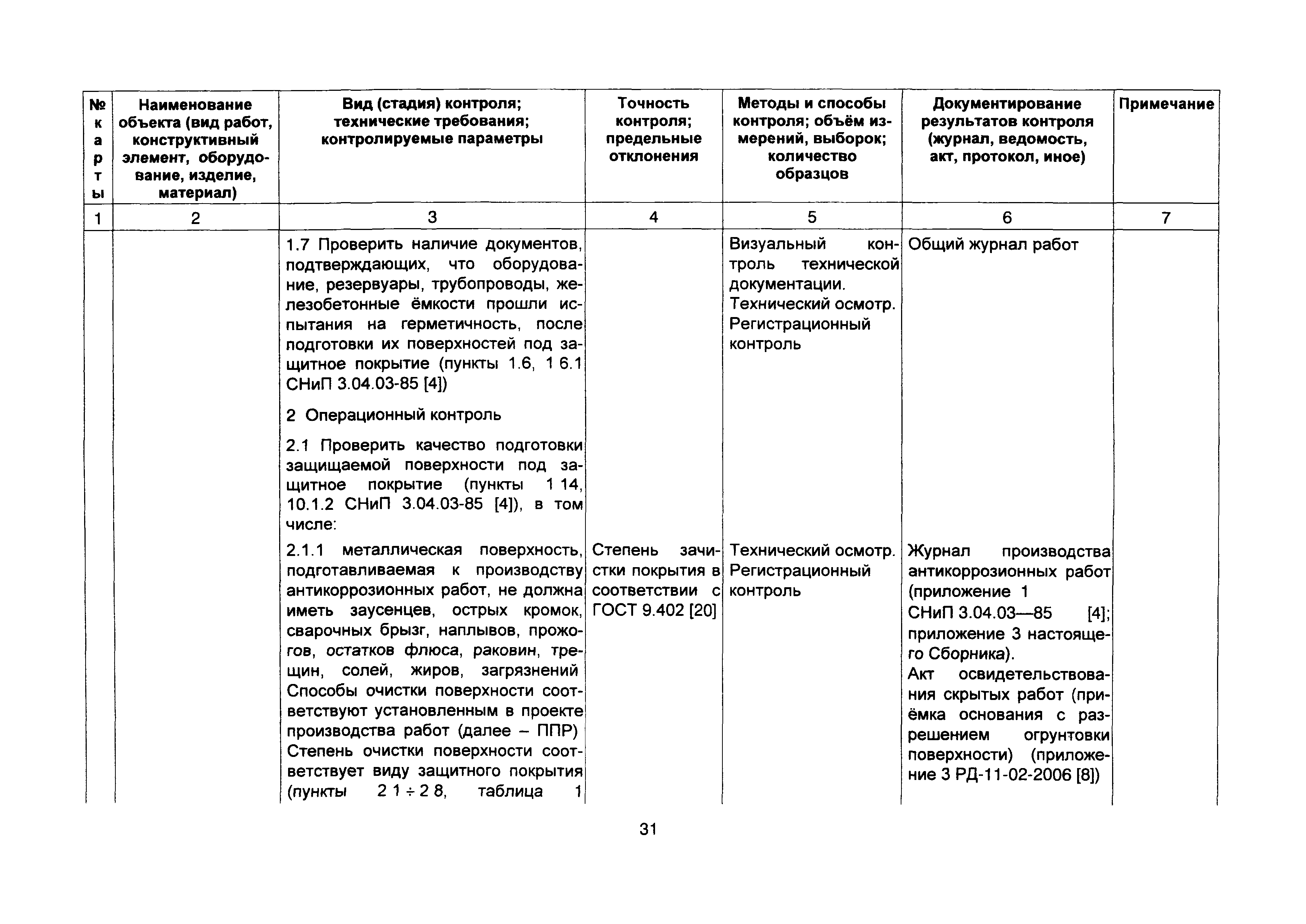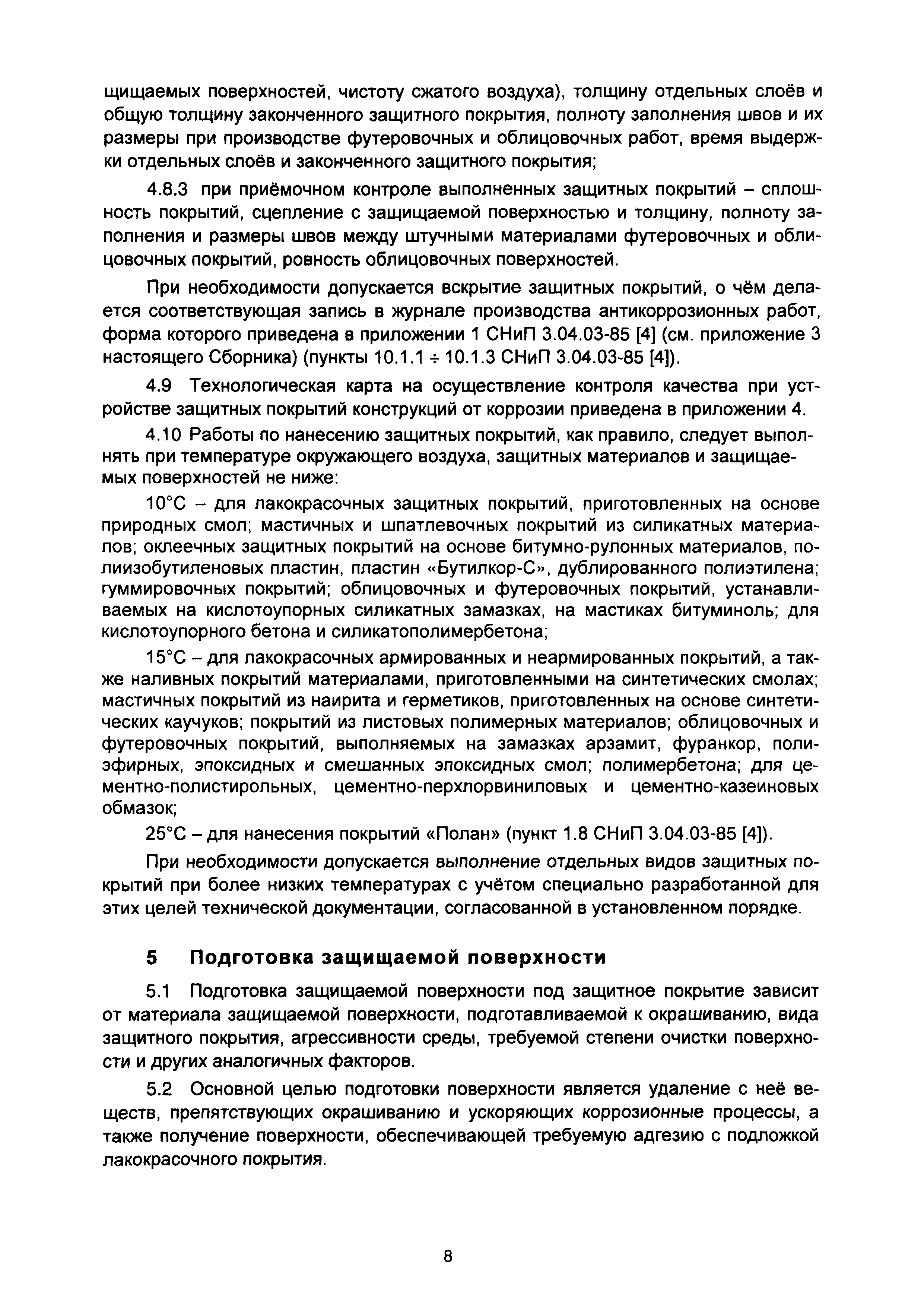 | Область применения: | Документ содержит общие вопросы контроля качества работ при проведении основных видов антикоррозионных работ - подготовка защищаемой поверхности, устройство защитных покрытий, методы проверки показателей качества защитных покрытий, требования к проведению антикоррозийных работ. Одновременно указываются основные документы, которые составляются (заполняются) в процессе этих работ. |