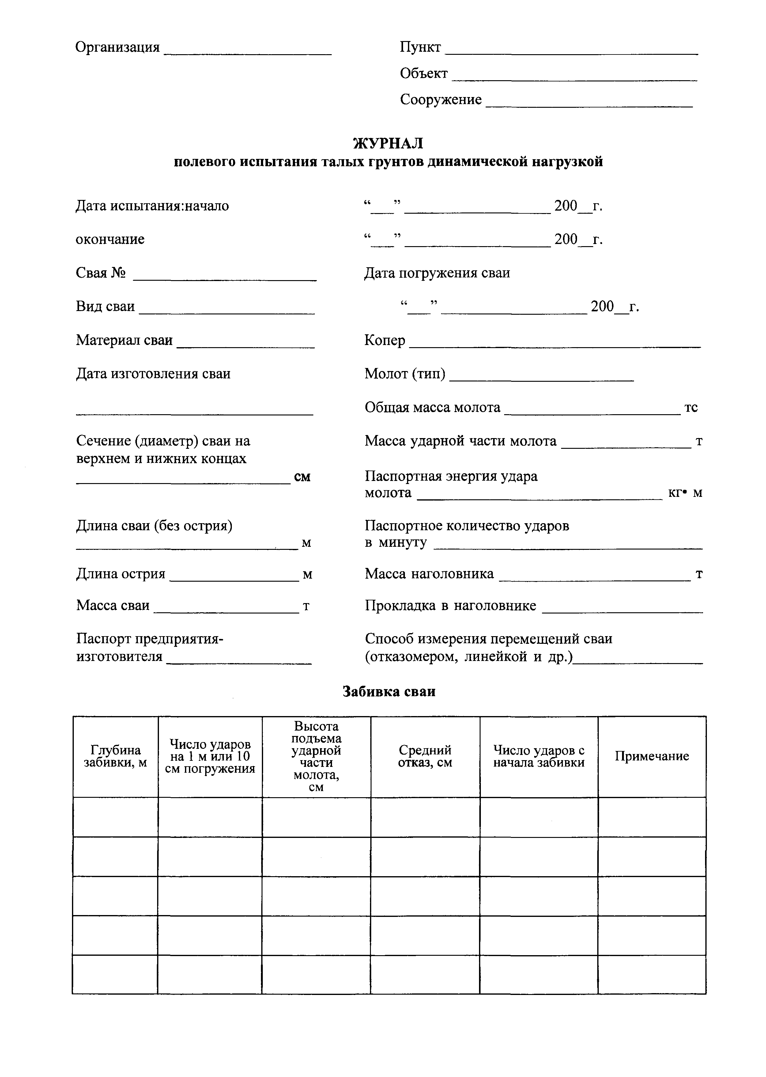 Скачать Журнал полевого испытания талых грунтов динамической нагрузкойДата актуализации: 01.01.2021