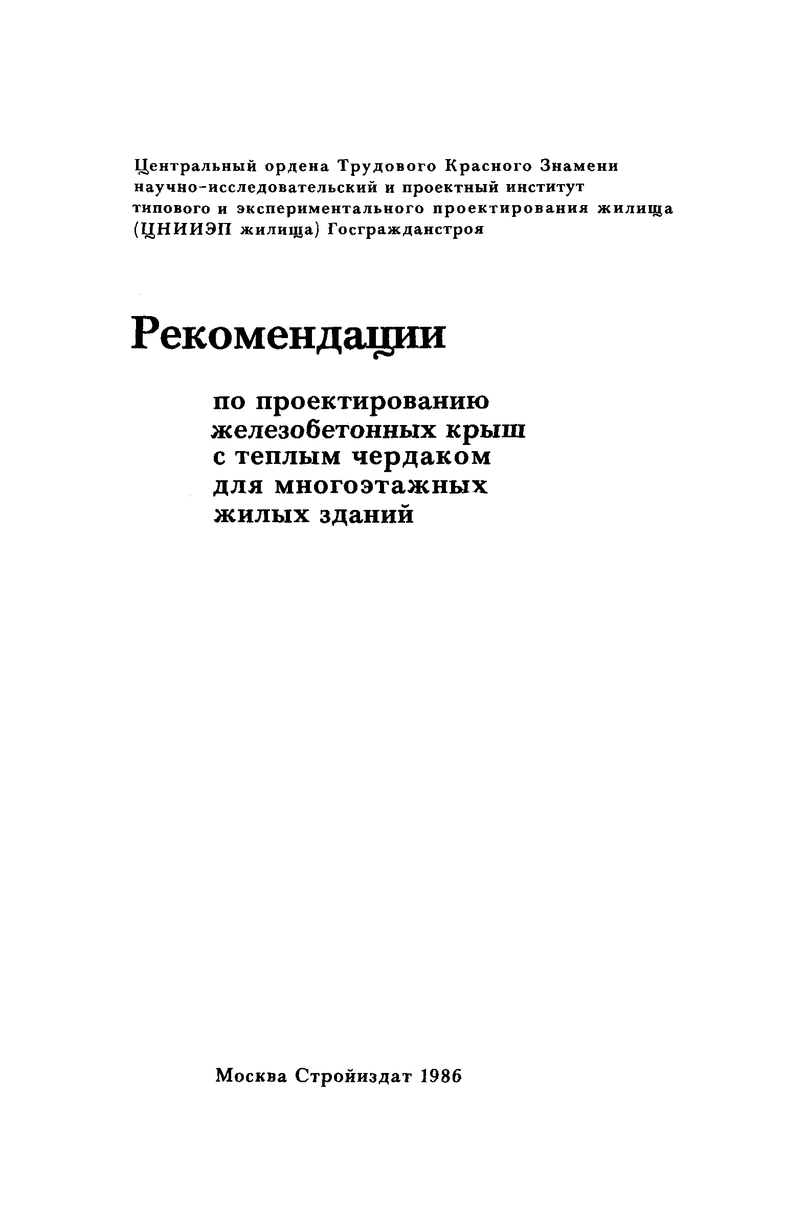 | Название рус.: | Рекомендации по проектированию железобетонных крыш с теплым чердаком для многоэтажных жилых зданий |