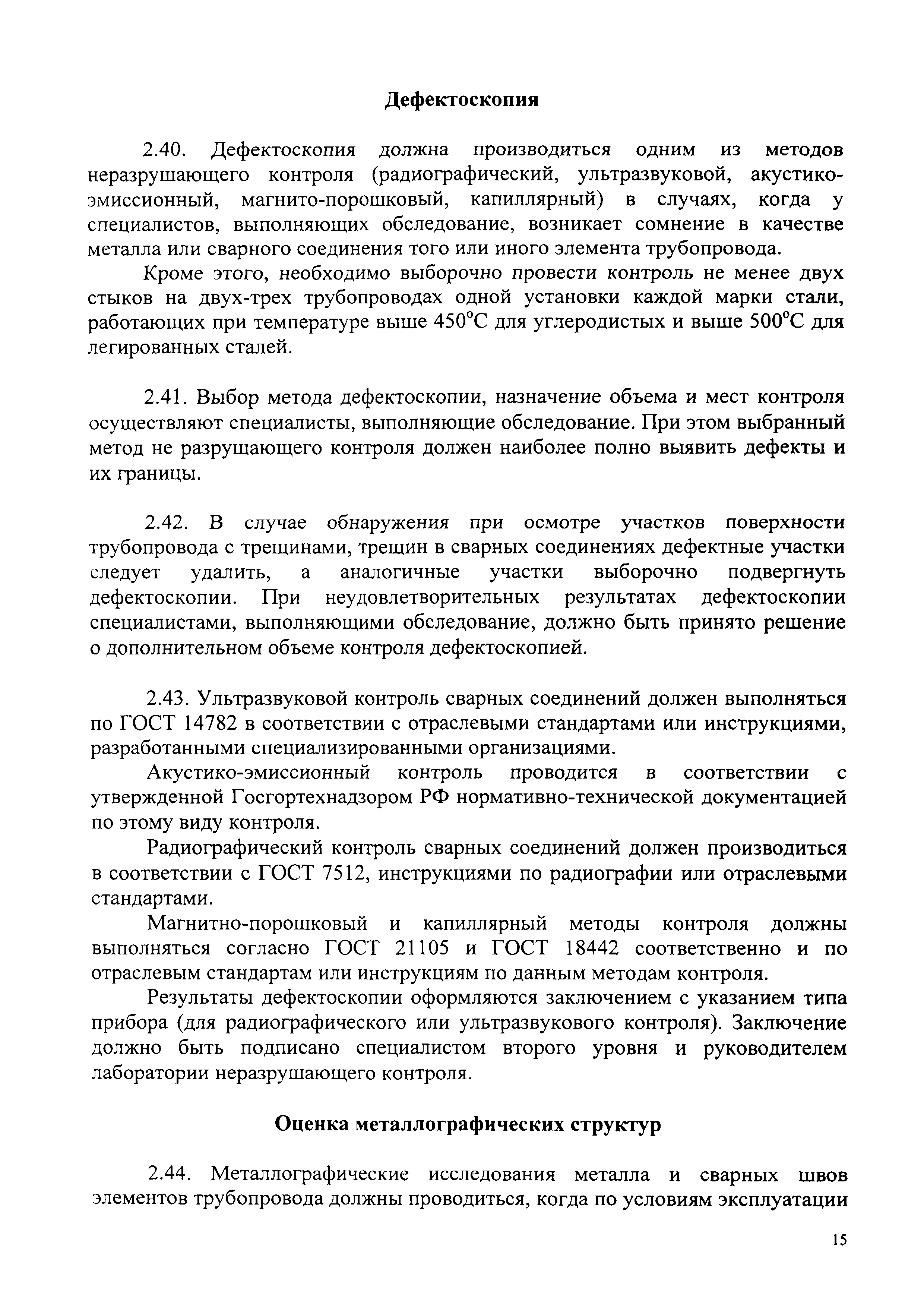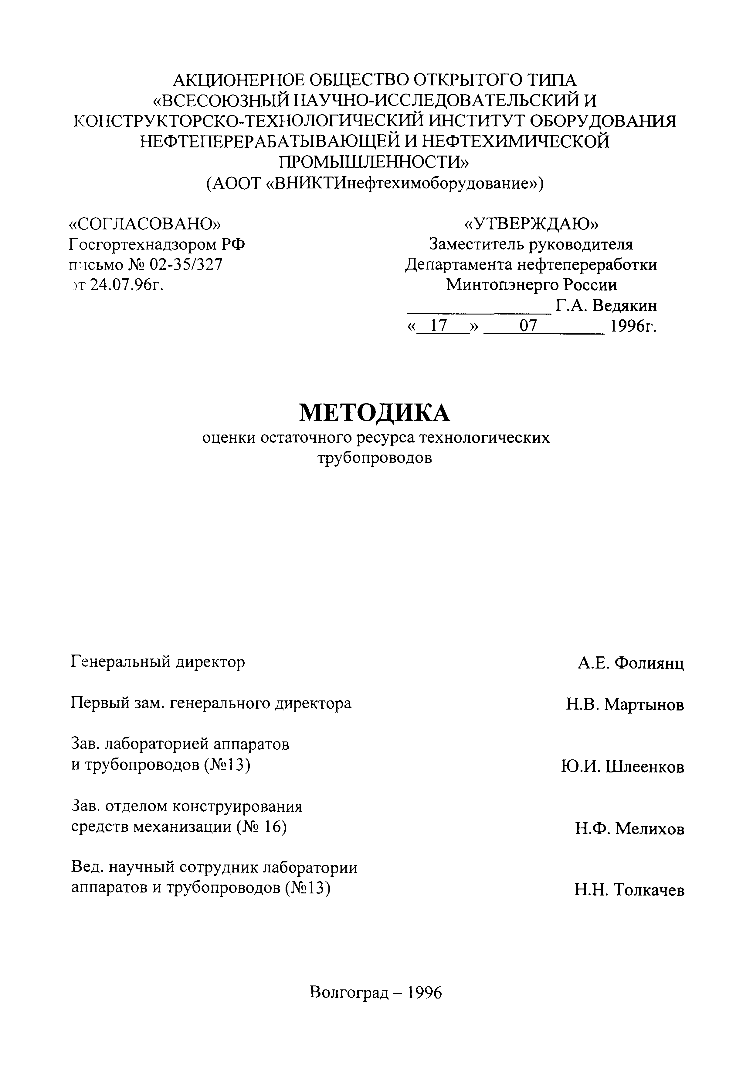 | Область применения: | Документ регламентирует необходимый объем работ и порядок их проведения, критерии оценки работоспособности при определении остаточного ресурса стальных технологических трубопроводов, применяемых для транспортировки жидких и газообразных веществ с различными физико-химическими свойствами в пределах от остаточного давления (вакуум) от 0,001 МПа (0,01 кгс/см2) до условного давления 10 МПа (100 кгс/см2) и рабочих температур от минус 196 градусов Цельсия до плюс 700 градусов Цельсия, эксплуатация и ремонт которых осуществляются в соответствии с требованиями РД 38.13.004-85. |