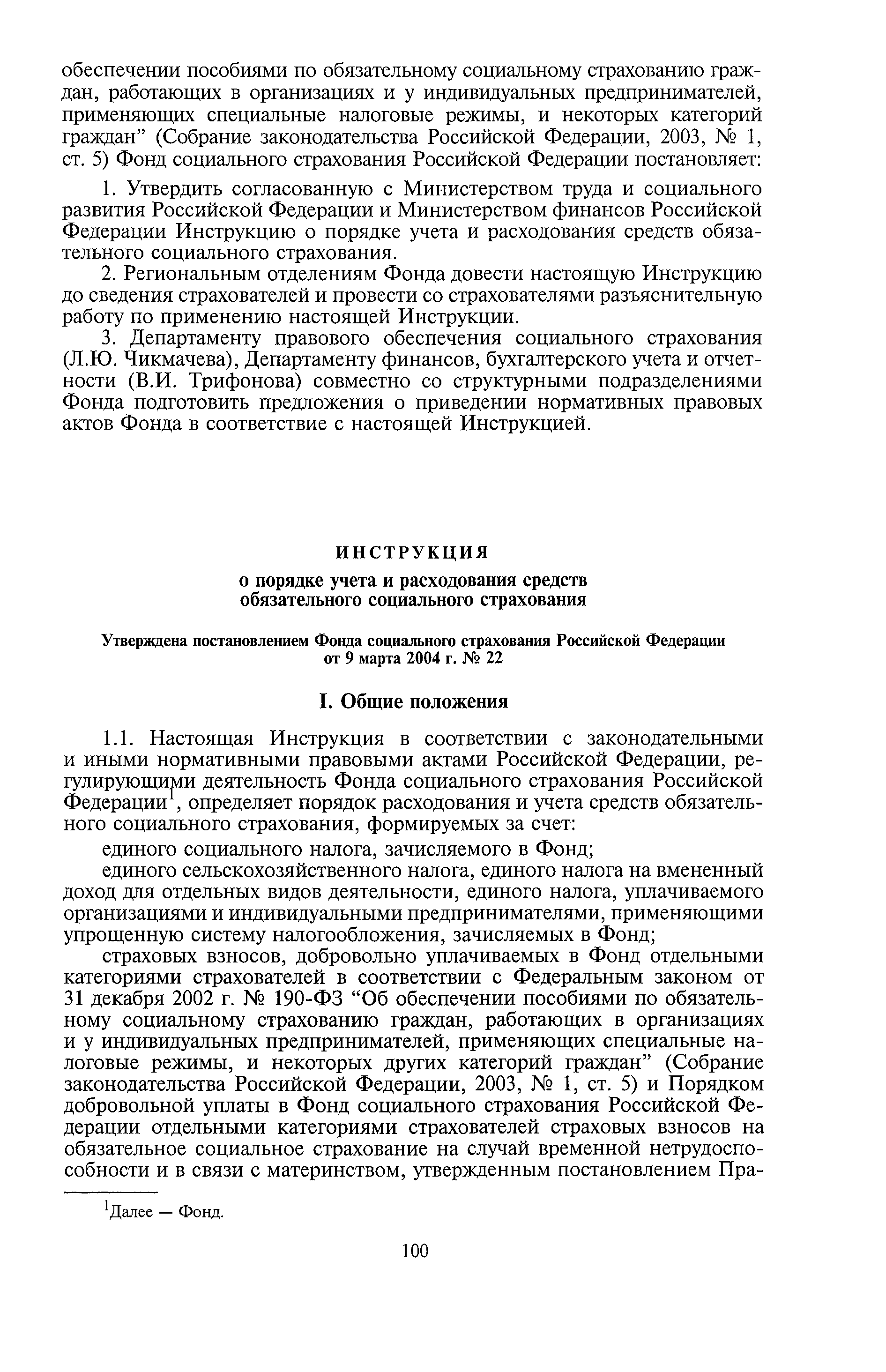 | Утверждён: | 09.03.2004 Фонд социального страхования Российской Федерации (22)