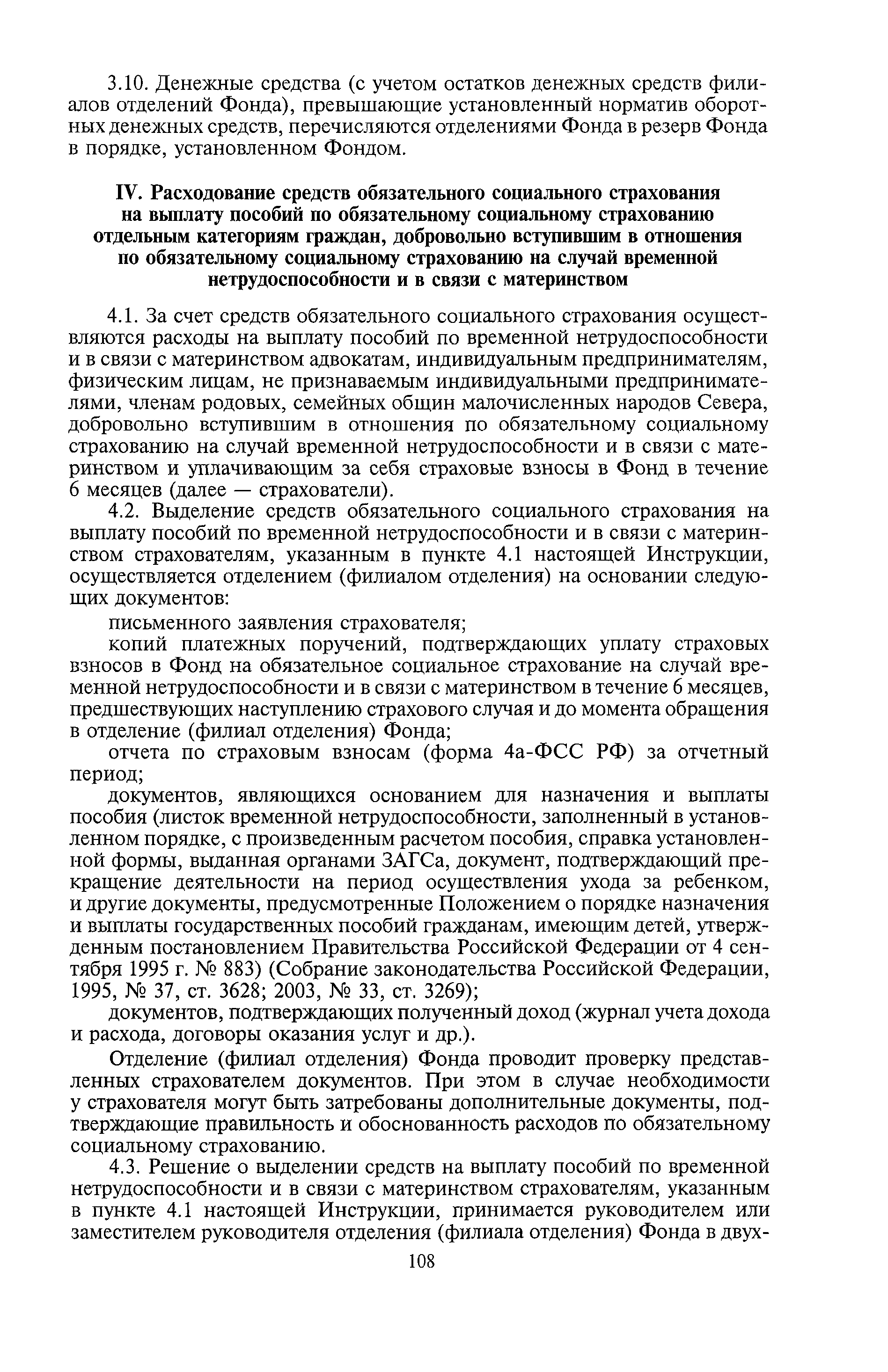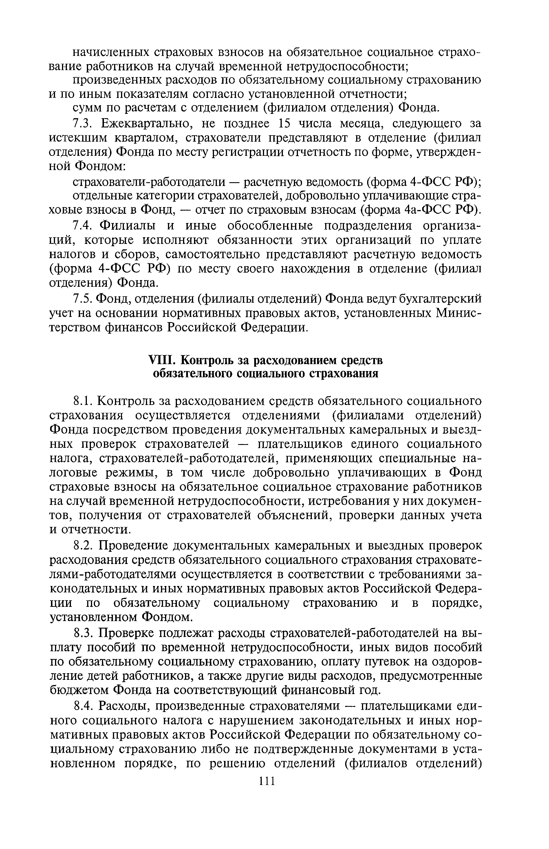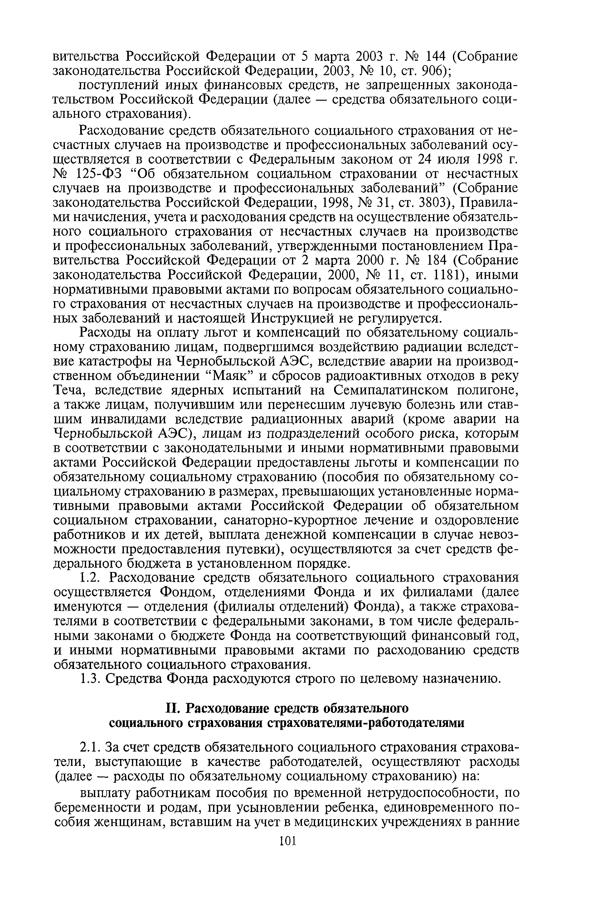 | Оглавление: | I. Общие положения II. Расходование средств обязательного социального страхования страхователями-работодателями III. Расходование средств обязательного социального страхования отделениями (филиалами отделений) Фонда IV. Расходование средств обязательного социального страхования на выплату пособий по обязательному социальному страхованию отдельным категориям граждан, добровольно вступившим в отношения по обязательному социальному страхованию на случай временной нетрудоспособности и в связи с материнством V. Расходование средств резерва Фонда VI. Счета Фонда, отделений (филиалов отделений) Фонда VII. Учет и отчетность по средствам обязательного социального страхования VIII. Контроль за расходованием средств обязательного социального страхования |