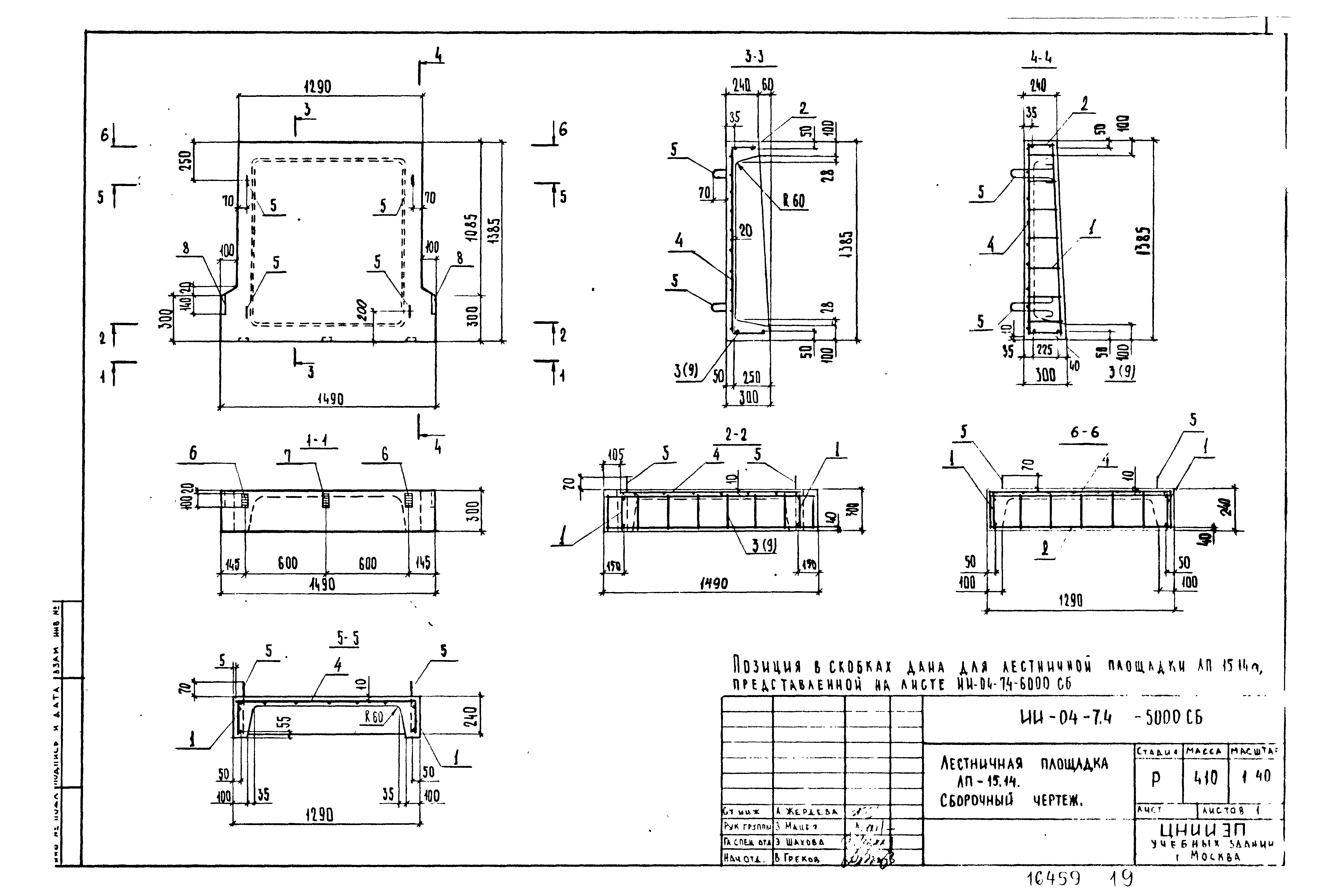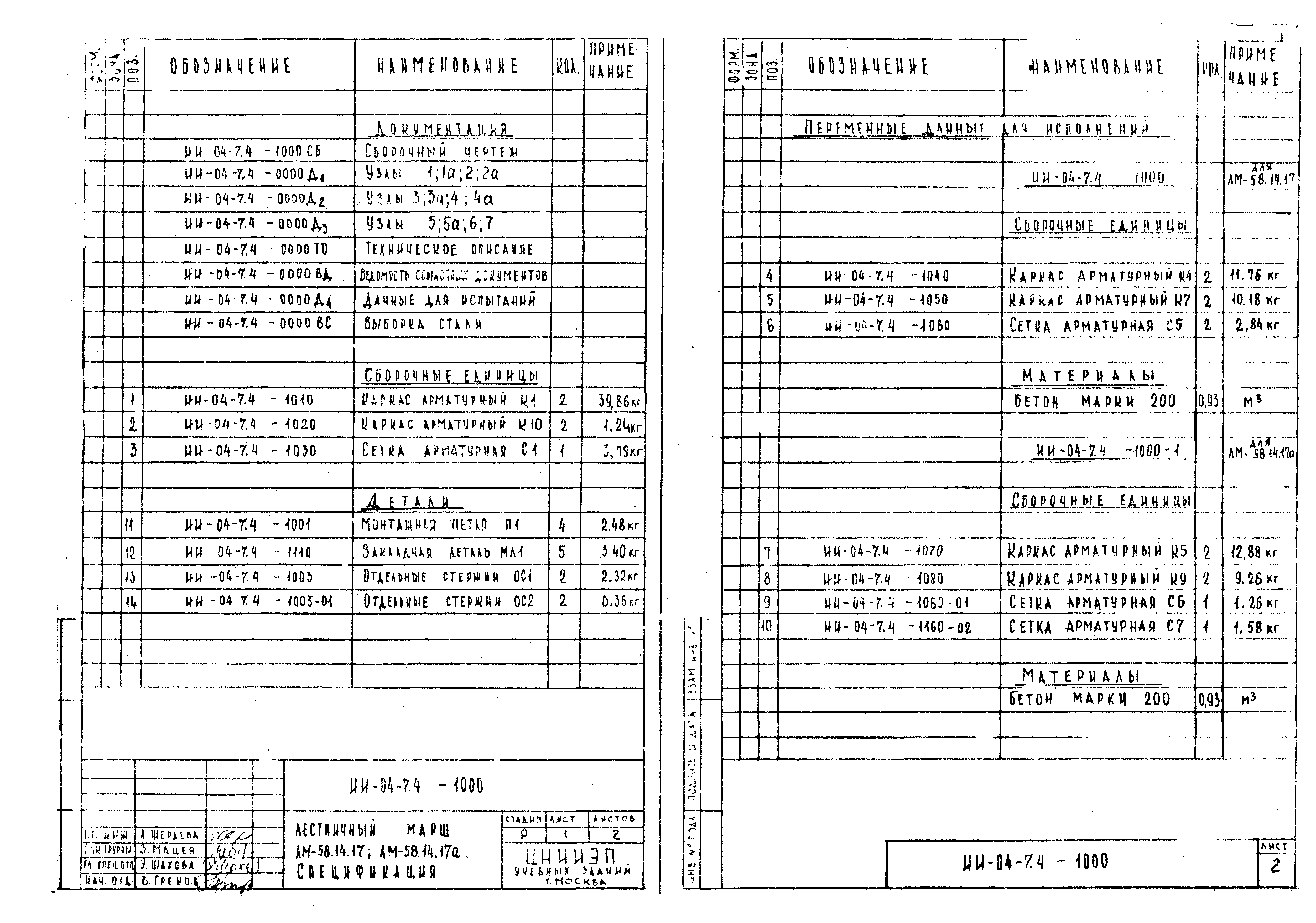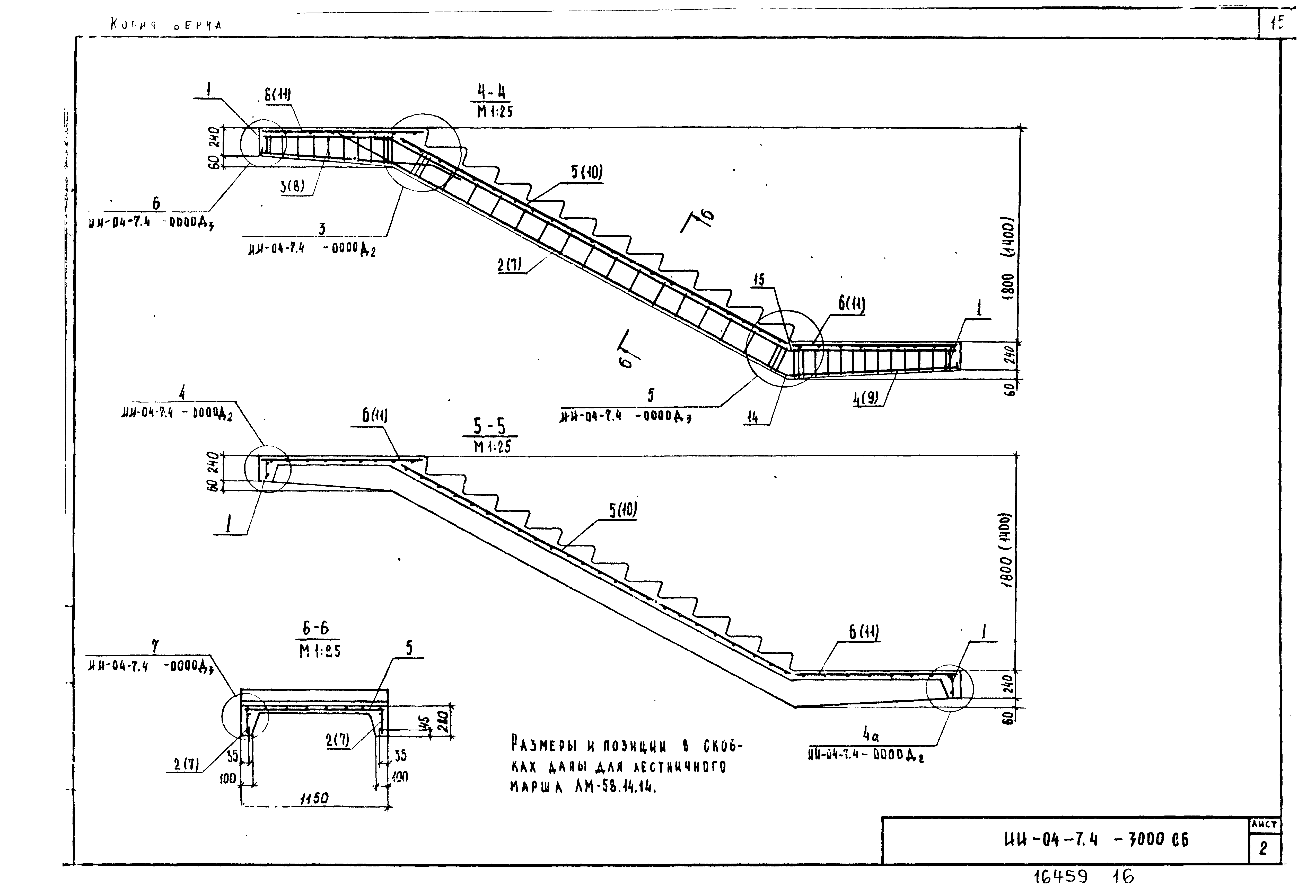| Оглавление: | ИИ-04-7.4 Содержание ИИ-04-7.4-0000ТО Техническое описание ИИ-04-7.4-0000ВД Ведомость ссылочных документов ИИ-04-7.4-1000 Лестничный марш ЛМ-58.14.17; ЛМ-58.14.17а. Спецификация ИИ-04-7.4-1000 СБ Лестничный марш ЛМ-58.14.17; ЛМ-58.14.17а. Сборочный чертеж ИИ-04-7.4-2000 Лестничный марш ЛМ-58.14.17б. Спецификация ИИ-04-7.4-2000 СБ Лестничный марш ЛМ-58.14.17б. Сборочный чертеж ИИ-04-7.4-3000 Лестничный марш ЛМ-58.14.18; ЛМ-58.14.14. Спецификация ИИ-04-7.4-3000 СБ Лестничный марш ЛМ-58.14.18; ЛМ-58.14.14. Сборочный чертеж ИИ-04-7.4-4000 ИИ-04-7.4-5000 Лестничный марш ЛМ-29.14.9; Лестничная площадка ЛП-15,14. Спецификация ИИ-04-7.4-4000 СБ Лестничный марш ЛМ-29.14.9. Сборочный чертеж ИИ-04-7.4-5000 СБ Лестничная площадка ЛП-15.14. Сборочный чертеж ИИ-04-7.4-6000 Лестничная площадка ЛП-15.14а Спецификация ИИ-04-7.4-6000 СБ Лестничная площадка ЛП-15Л4а Сборочный чертеж ИИ-04-7.4-000Д1 Узлы 1,1а,2,2а ИИ-04-7.4-000Д2 Узлы 3;3а,4,4а ИИ-04-7.4-000Д3 Узлы 5;5a;6;7 ИИ-04-7.4-1010 Каркасы К1,К2 ИИ-04-7.4-3040 Каркас К3 ИИ-04-7.4-1040 Каркас К4 ИИ-04-7.4-1070 Каркас К5 ИИ-04-7.4-2010 Каркас К6 ИИ-04-7.4-1050 Каркас К7 ИИ-04-7.4-2020 Каркас К8 ИИ-04-7.4-1080 Каркас К9 ИИ-04-7.4-1020 Каркас К10 ИИ-04-7.4-4010 Каркас К11 ИИ-04-7.4-4020 Каркас К12 ИИ-04-7.4-5010 Каркас К13 ИИ-04-7.4-5020 Каркасы К14, К15 ИИ-04-7.4-6010 Каркас К16 ИИ-04-7.4-1003 Отдельные стержни ОС1, ОС2 ИИ-04-7.4-1030 Сетка арматурная С1, C2 ИИ-04-7.4-3060 Сетка арматурная С3, С4 ИИ-04-7.4-1060 Сетка арматурная С5, С6 и С7 ИИ-04-7.4-5040 Сетка арматурная С8 ИИ-04-7.4-1110 Закладная деталь МЛ1 ИИ-04-7.4-1120 Закладная деталь МЛ2 ИИ-04-7.4-1130 Закладная деталь МЛ3 ИИ-04-7.4-1000 Монтажная петля П1 ИИ-04-7.4-0000ВС Выборка стали ИИ-04-7.4-0000Д4 Данные для испытаний |