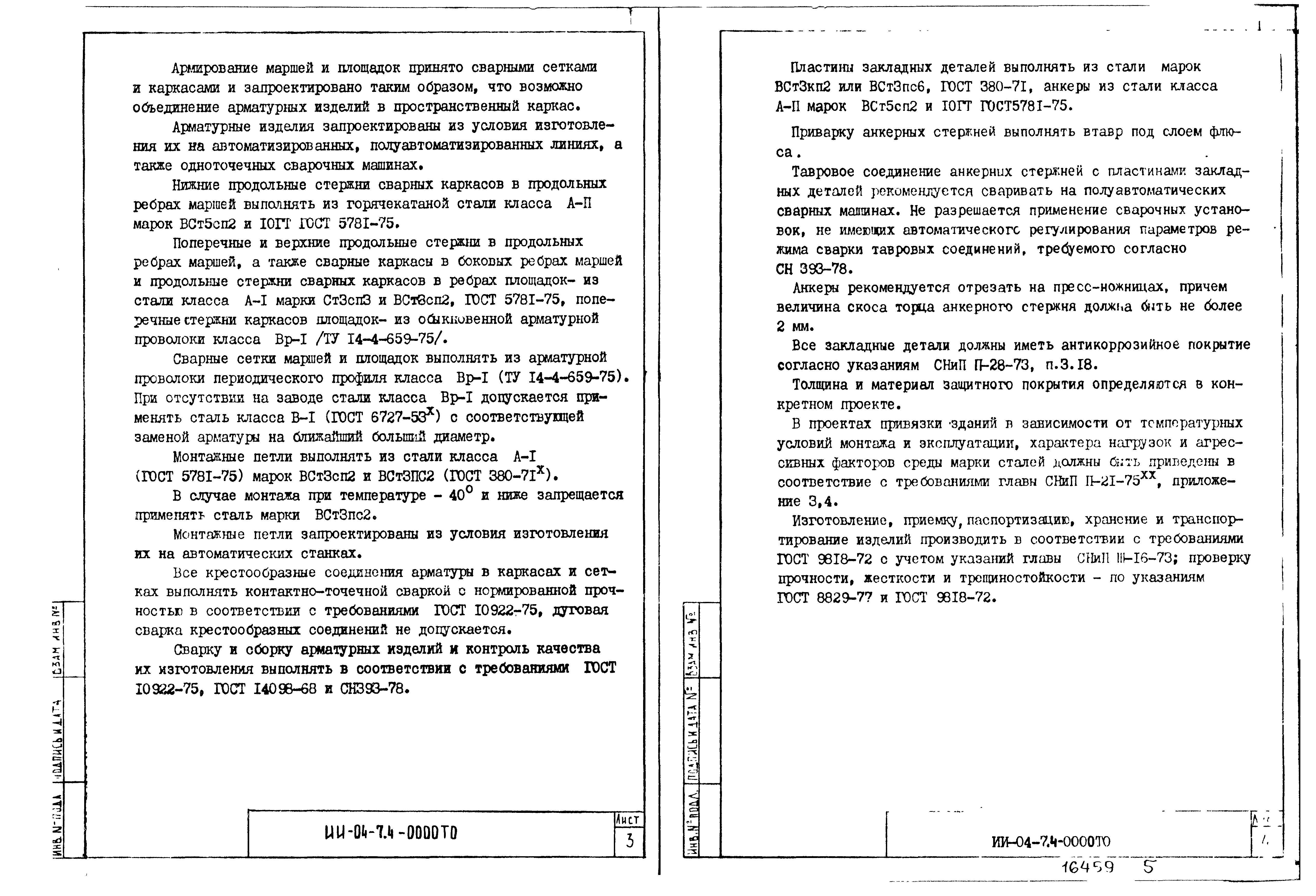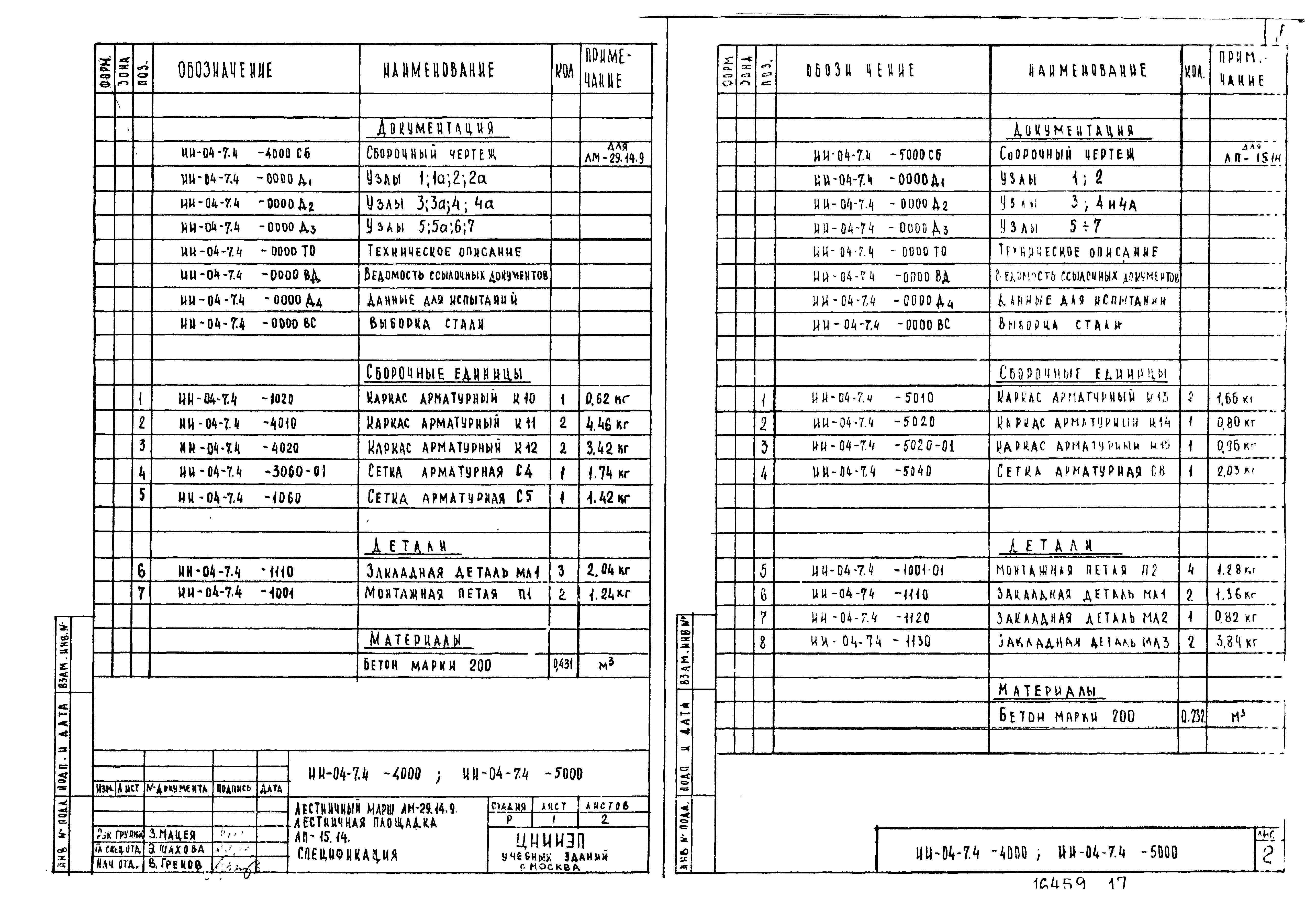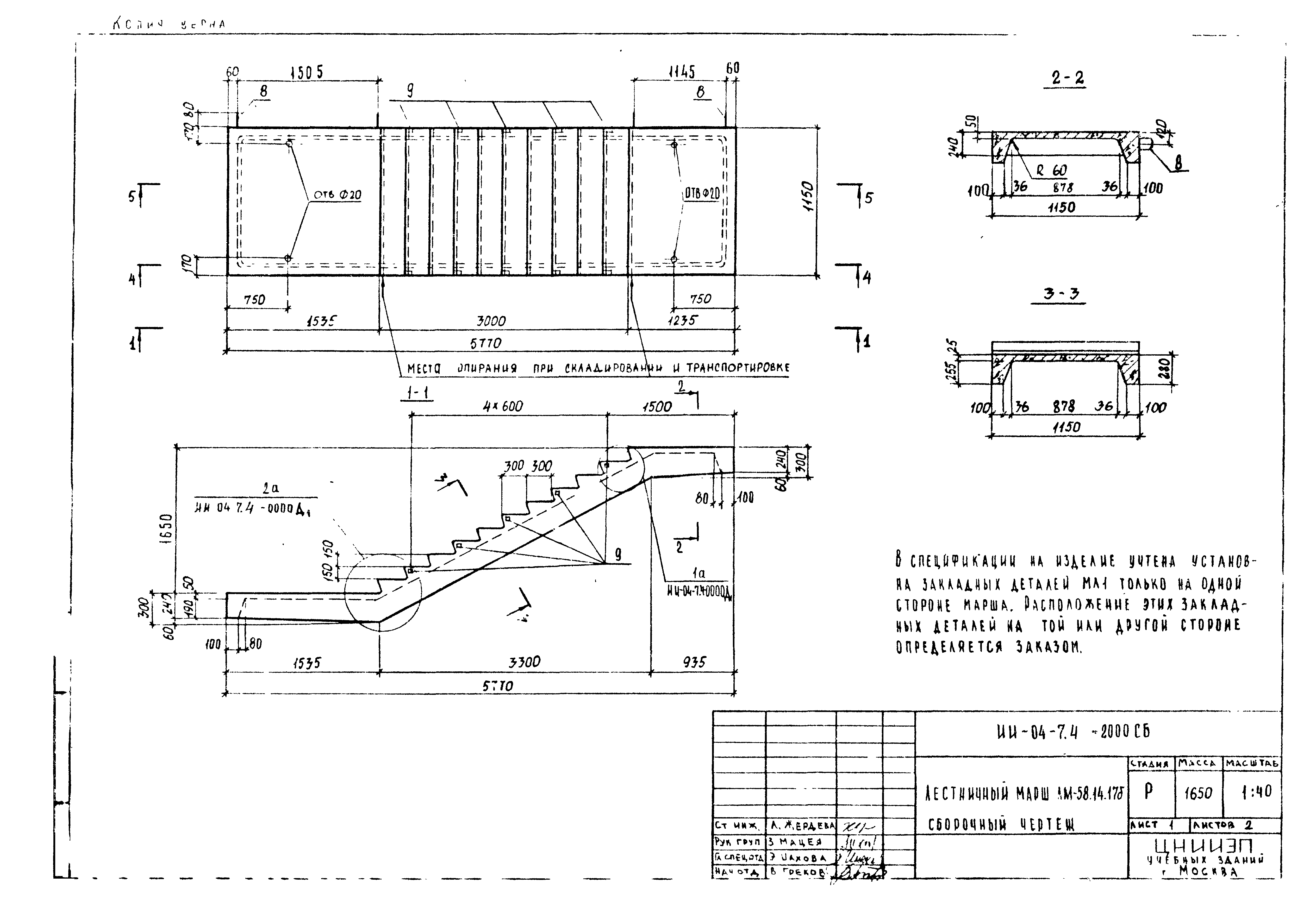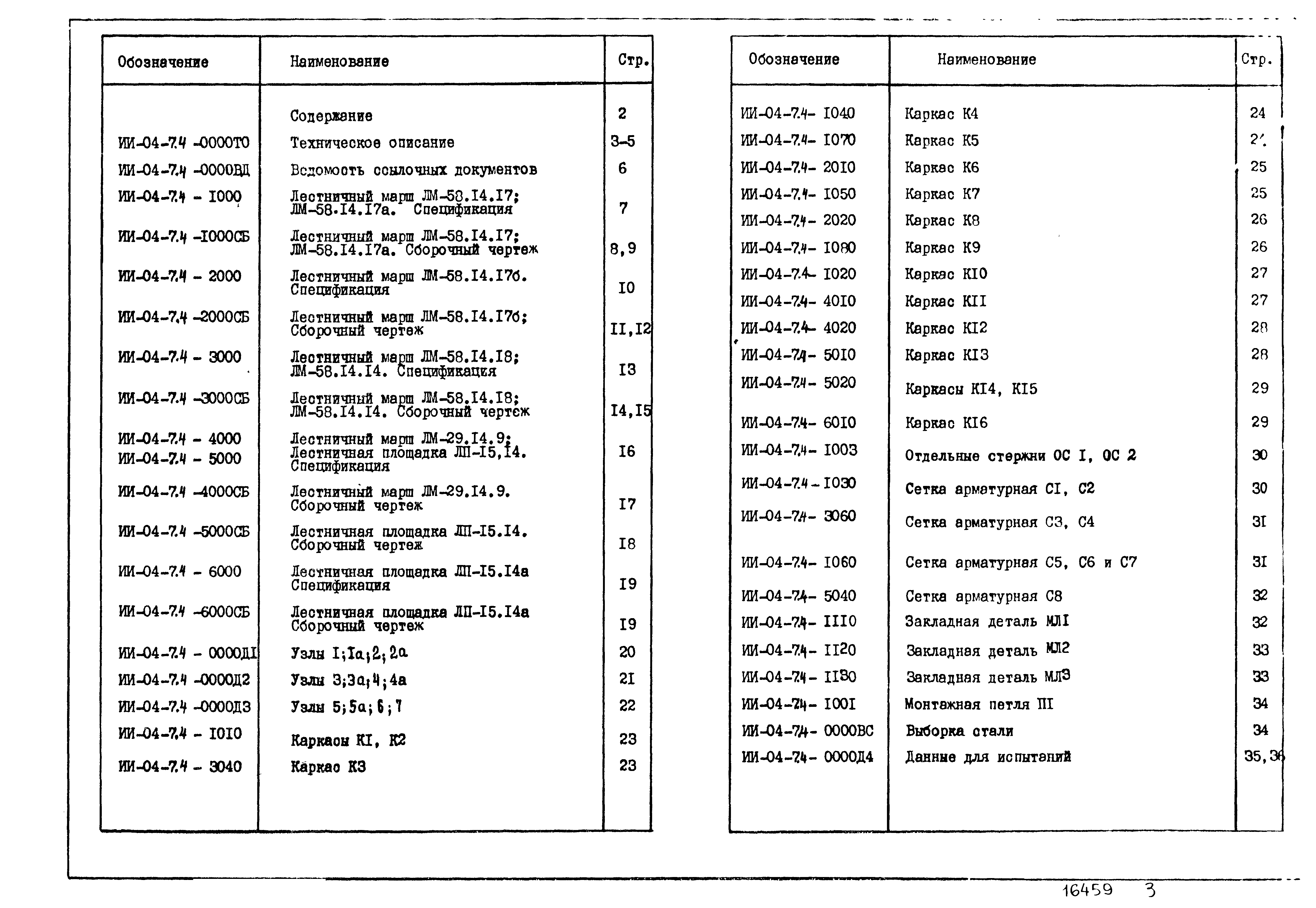 | Оглавление: | ИИ-04-7.4 Содержание ИИ-04-7.4-0000ТО Техническое описание ИИ-04-7.4-0000ВД Ведомость ссылочных документов ИИ-04-7.4-1000 Лестничный марш ЛМ-58.14.17; ЛМ-58.14.17а. Спецификация ИИ-04-7.4-1000 СБ Лестничный марш ЛМ-58.14.17; ЛМ-58.14.17а. Сборочный чертеж ИИ-04-7.4-2000 Лестничный марш ЛМ-58.14.17б. Спецификация ИИ-04-7.4-2000 СБ Лестничный марш ЛМ-58.14.17б. Сборочный чертеж ИИ-04-7.4-3000 Лестничный марш ЛМ-58.14.18; ЛМ-58.14.14. Спецификация ИИ-04-7.4-3000 СБ Лестничный марш ЛМ-58.14.18; ЛМ-58.14.14. Сборочный чертеж ИИ-04-7.4-4000 ИИ-04-7.4-5000 Лестничный марш ЛМ-29.14.9; Лестничная площадка ЛП-15,14. Спецификация ИИ-04-7.4-4000 СБ Лестничный марш ЛМ-29.14.9. Сборочный чертеж ИИ-04-7.4-5000 СБ Лестничная площадка ЛП-15.14. Сборочный чертеж ИИ-04-7.4-6000 Лестничная площадка ЛП-15.14а Спецификация ИИ-04-7.4-6000 СБ Лестничная площадка ЛП-15Л4а Сборочный чертеж ИИ-04-7.4-000Д1 Узлы 1,1а,2,2а ИИ-04-7.4-000Д2 Узлы 3;3а,4,4а ИИ-04-7.4-000Д3 Узлы 5;5a;6;7 ИИ-04-7.4-1010 Каркасы К1,К2 ИИ-04-7.4-3040 Каркас К3 ИИ-04-7.4-1040 Каркас К4 ИИ-04-7.4-1070 Каркас К5 ИИ-04-7.4-2010 Каркас К6 ИИ-04-7.4-1050 Каркас К7 ИИ-04-7.4-2020 Каркас К8 ИИ-04-7.4-1080 Каркас К9 ИИ-04-7.4-1020 Каркас К10 ИИ-04-7.4-4010 Каркас К11 ИИ-04-7.4-4020 Каркас К12 ИИ-04-7.4-5010 Каркас К13 ИИ-04-7.4-5020 Каркасы К14, К15 ИИ-04-7.4-6010 Каркас К16 ИИ-04-7.4-1003 Отдельные стержни ОС1, ОС2 ИИ-04-7.4-1030 Сетка арматурная С1, C2 ИИ-04-7.4-3060 Сетка арматурная С3, С4 ИИ-04-7.4-1060 Сетка арматурная С5, С6 и С7 ИИ-04-7.4-5040 Сетка арматурная С8 ИИ-04-7.4-1110 Закладная деталь МЛ1 ИИ-04-7.4-1120 Закладная деталь МЛ2 ИИ-04-7.4-1130 Закладная деталь МЛ3 ИИ-04-7.4-1000 Монтажная петля П1 ИИ-04-7.4-0000ВС Выборка стали ИИ-04-7.4-0000Д4 Данные для испытаний |