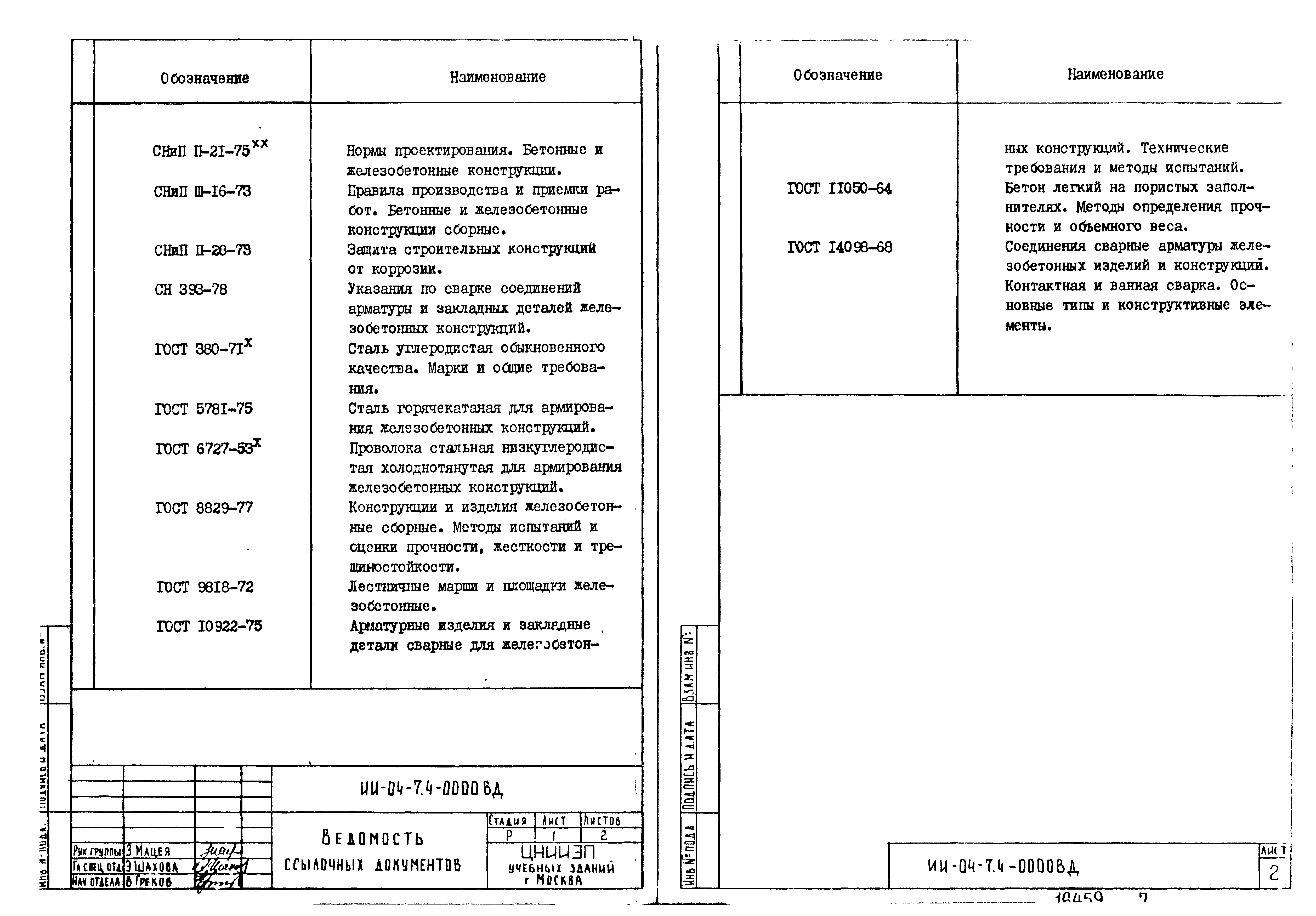 | Разработан: | НИИЖБ ЦНИИЭП учебных зданий Госгражданстроя |