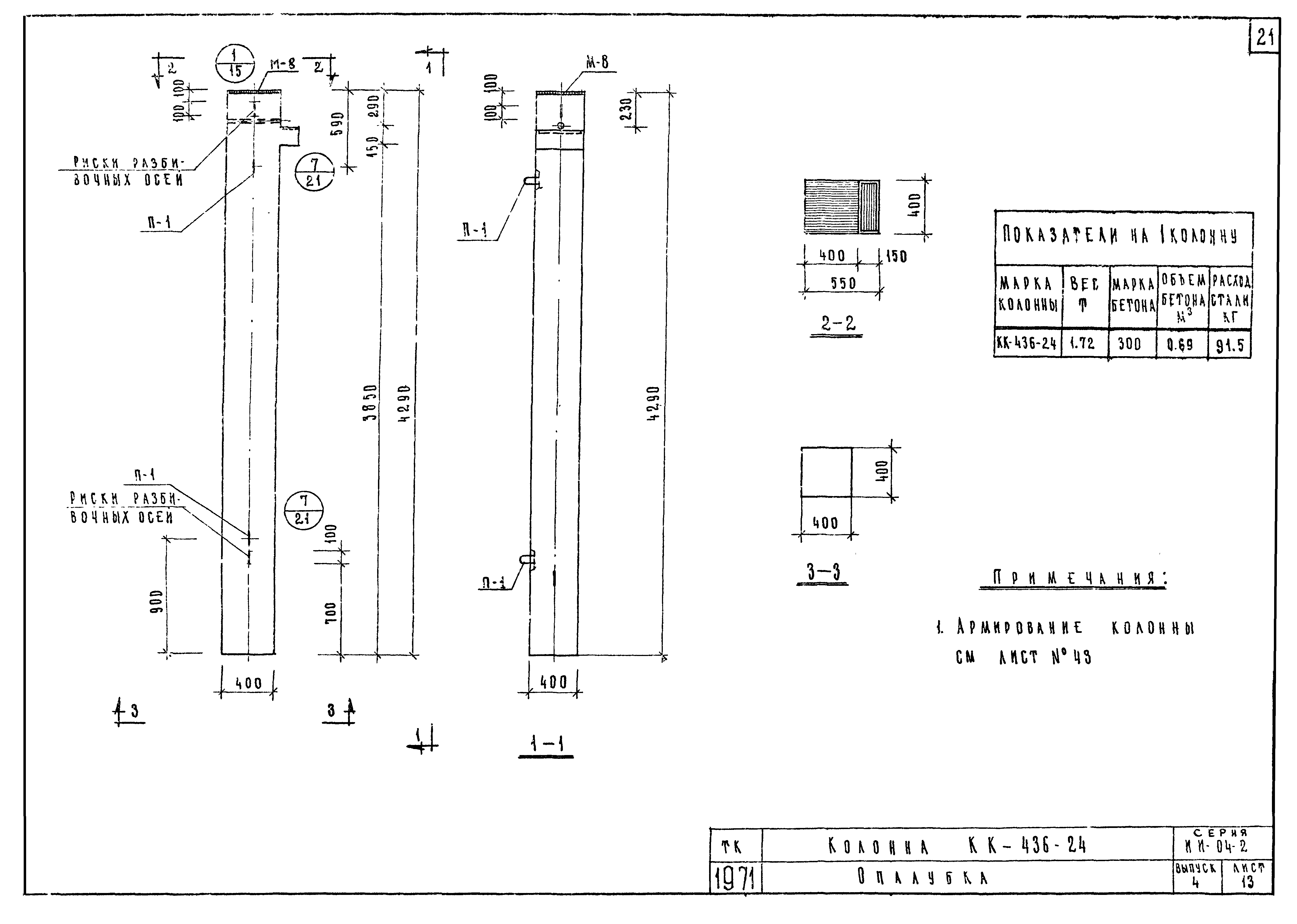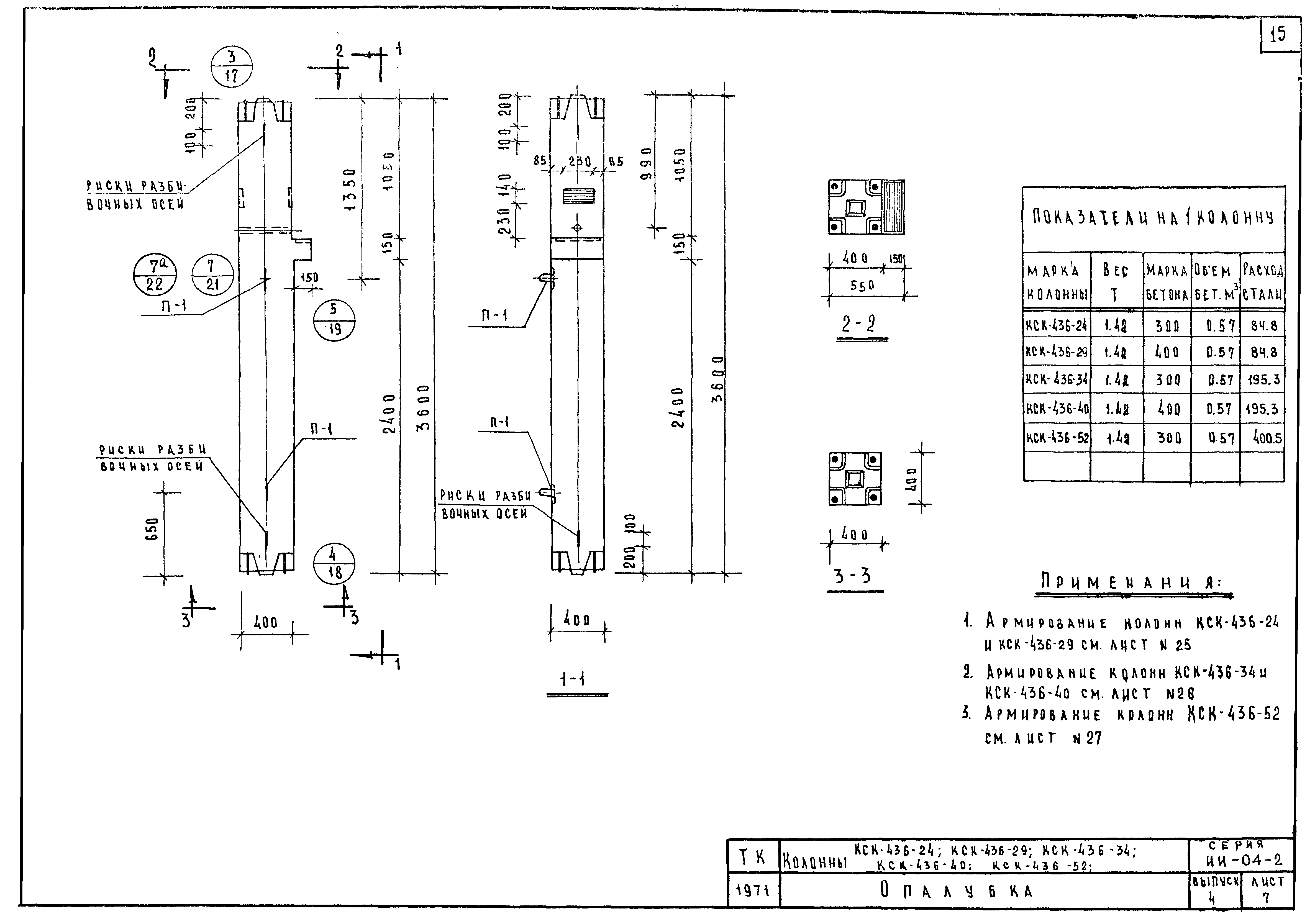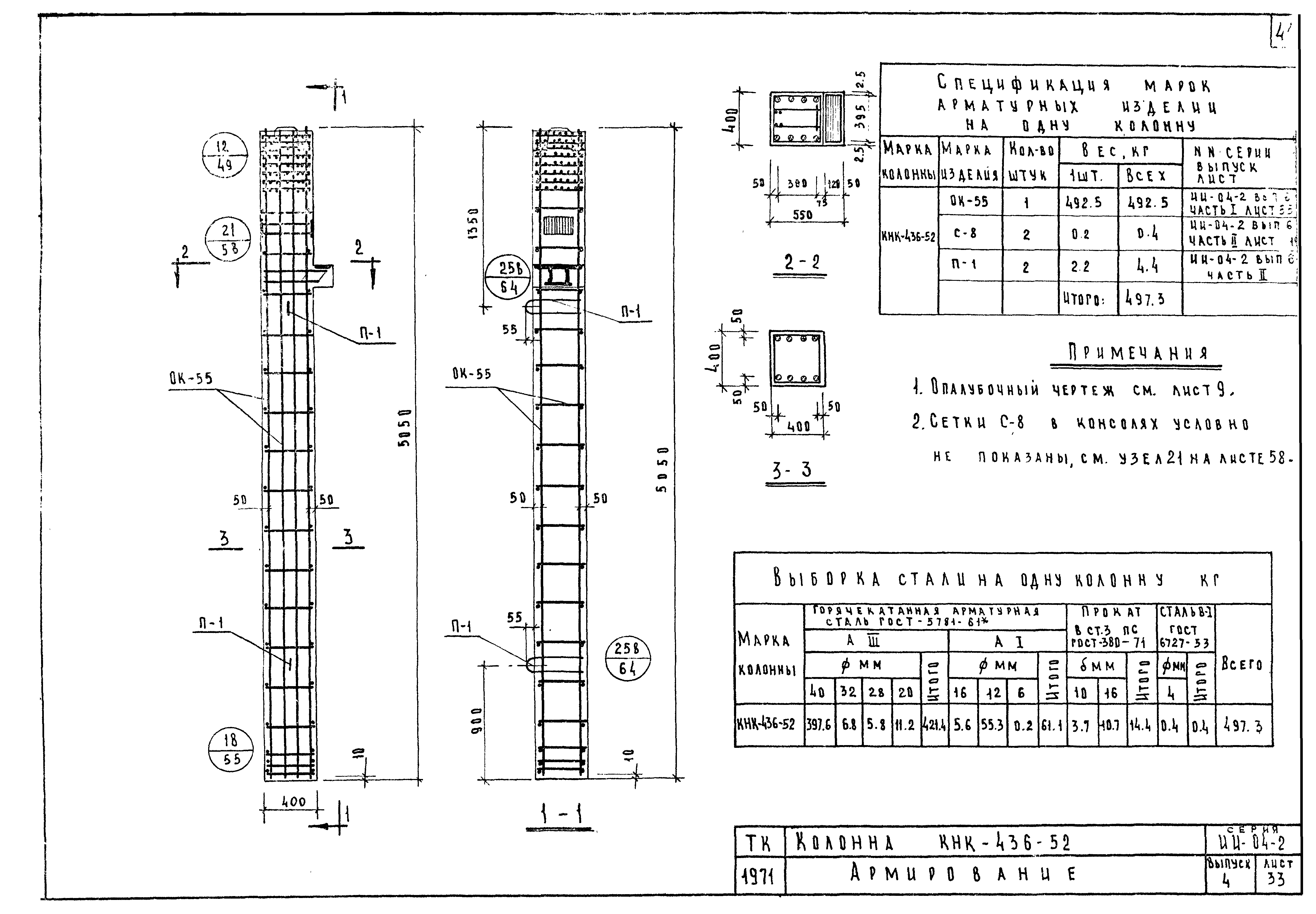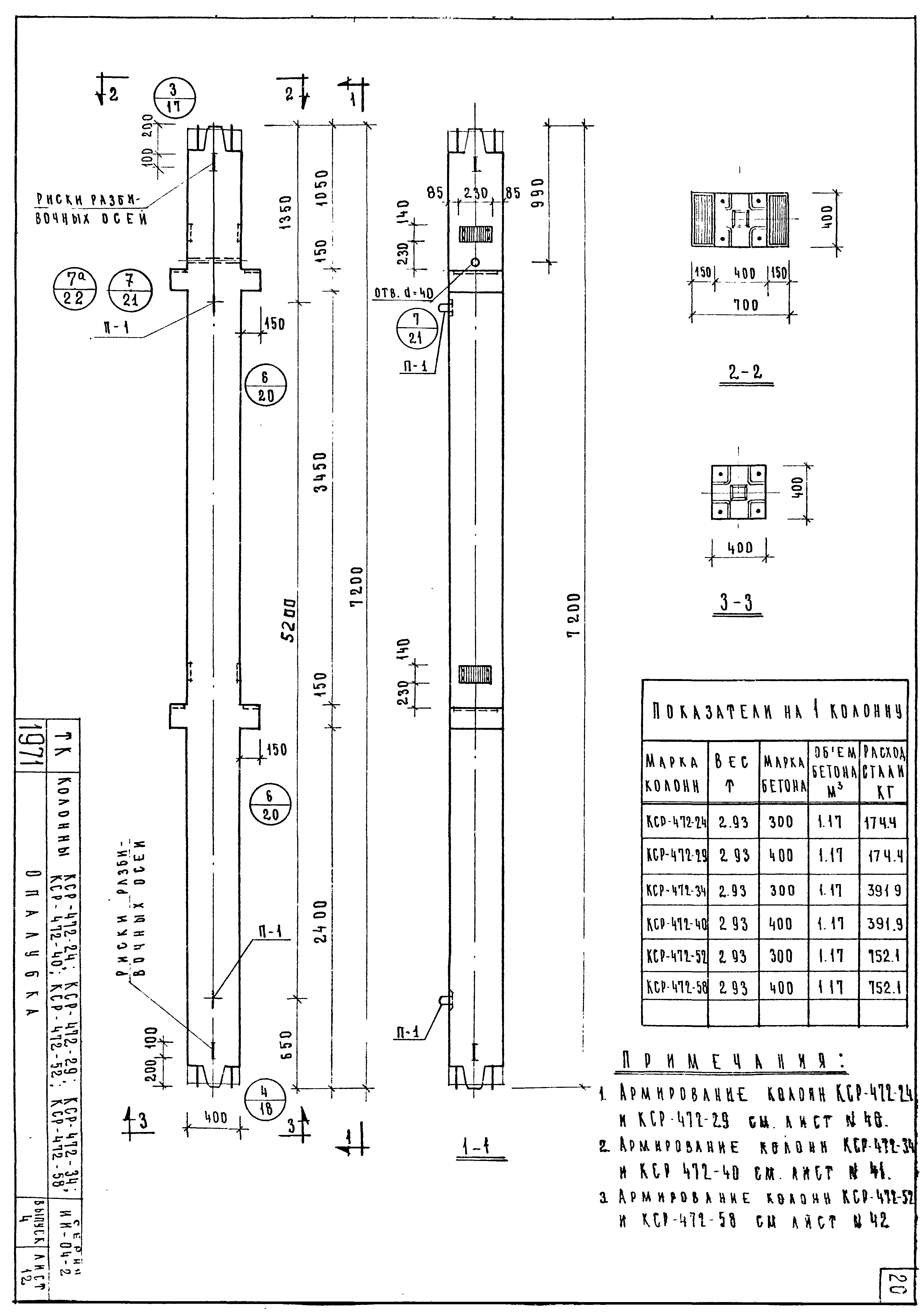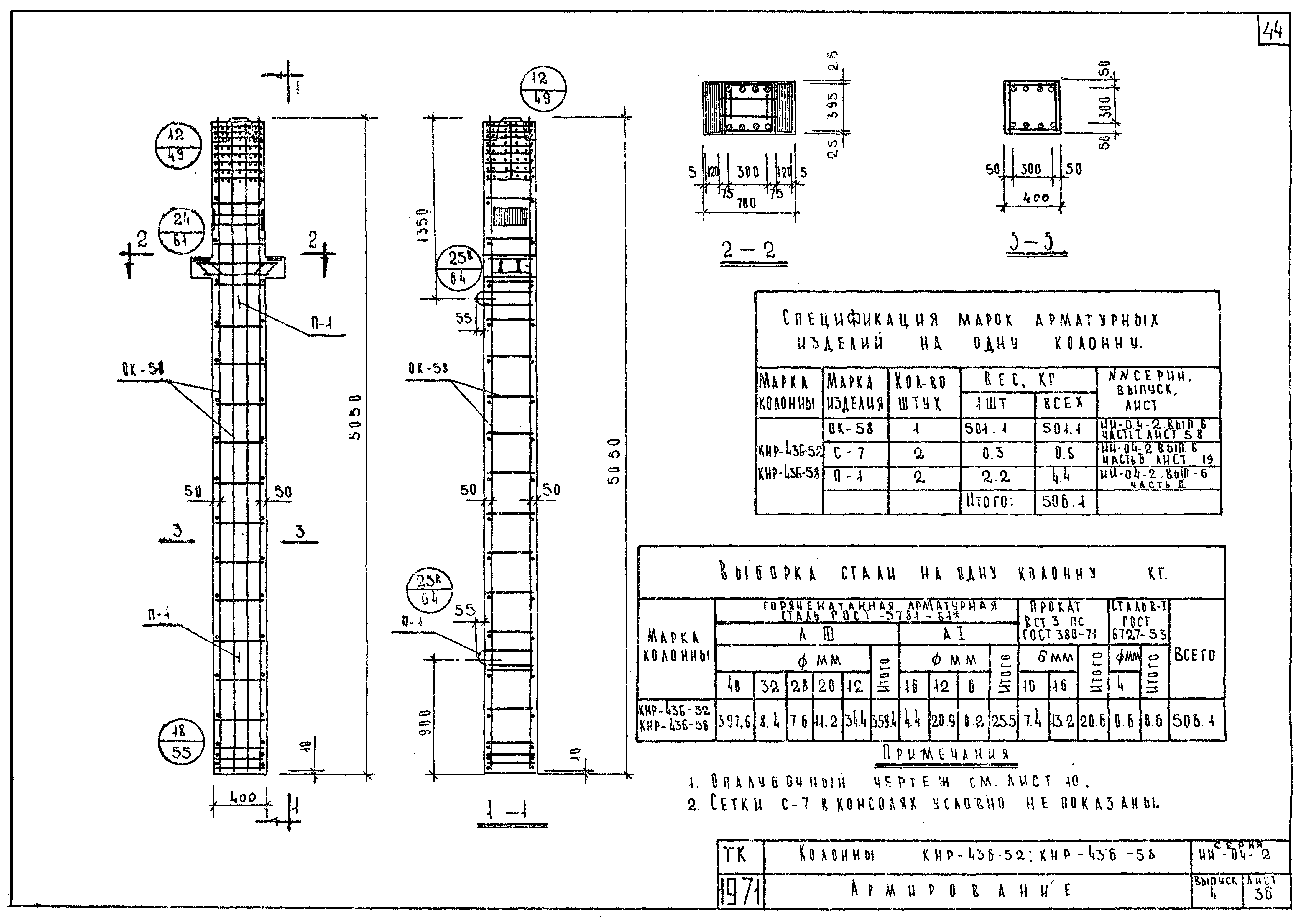 | Оглавление: | ИИ-04-2 Перечень серии и выпусков ИИ-04-2 Содержание выпуска ИИ-04-2 Пояснительная записка ИИ-04-2 Лист 1. Номенклатура ИИ-04-2 Лист 2. Номенклатура ИИ-04-2 Лист 3. Номенклатура ИИ-04-2 Лист 4. Номенклатура ИИ-04-2 Лист 5. Колонна КВК-436-24. Опалубка ИИ-04-2 Лист 6. Колонна КВР-436-24. Опалубка ИИ-04-2 Лист 7. Колонны КСК-436-24,КСК-436-29,КСК-436-34,КСК-436-40,КСК-436-52. Опалубка ИИ-04-2 Лист 8. Колонны КСР-436-24,КСР-436-29,КСР-436-34,КСР-436-40,КСР-436-52,КСР-436-58. Опалубка ИИ-04-2 Лист 9. Колонны КНК-436-24,КНК-436-29,КНК-436-34,КНК-436-40,КНК-436-52. Опалубка ИИ-04-2 Лист 10. Колонны КНР-436-24,КНР-436-29,КНР-436-34,КНР-436-40,КНР-436-52,КНР-436-58. Опалубка ИИ-04-2 Лист 11. Колонны КСК-472-24,КСК-472-29,КСК-472-34,КСК-472-40,КСК-472-52. Опалубка ИИ-04-2 Лист 12. Колонны КСР-472-24,КСР-472-29,КСР-472-34,КСР-472-40,КСР-472-52,КСР-472-58. Опалубка ИИ-04-2 Лист 13. Колонна КК-436-24. Опалубка ИИ-04-2 Лист 14. Колонна КР-436-24. Опалубка ИИ-04-2 Лист 15. Колонны. Опалубка. Узел 1 ИИ-04-2 Лист 16. Колонны. Опалубка. Узел 2 ИИ-04-2 Лист 17. Колонны. Опалубка. Узел 3 ИИ-04-2 Лист 18. Колонны. Опалубка. Узел 4 ИИ-04-2 Лист 19. Колонны. Опалубка. Узел 5 ИИ-04-2 Лист 20. Колонны. Опалубка. Узел 6 ИИ-04-2 Лист 21. Колонны. Опалубка. Узел 7 ИИ-04-2 Лист 22. Колонны. Опалубка. Узел 7а ИИ-04-2 Лист 23. Колонна КВК-436-24. Армирование ИИ-04-2 Лист 24. Колонна КВР-436-24. Армирование ИИ-04-2 Лист 25. Колонны КСК-436-24,КСК-436-29. Армирование ИИ-04-2 Лист 26. Колонны КСК-436-34,КСК-436-40. Армирование ИИ-04-2 Лист 27. Колонна КСК-436-52. Армирование ИИ-04-2 Лист 28. Колонны КСР-436-24,КСР-436-29. Армирование ИИ-04-2 Лист 29. Колонны КСР-436-34,КСР-436-40. Армирование ИИ-04-2 Лист 30. Колонны КСР-436-52,КСР-436-58. Армирование ИИ-04-2 Лист 31. Колонны КНК-436-24,КНК-436-29. Армирование ИИ-04-2 Лист 32. Колонны КНК-436-34,КНК-436-40. Армирование ИИ-04-2 Лист 33. Колонка КНК-436-52. Армирование ИИ-04-2 Лист 34. Колонны КНР-436-24,КНР-436-29. Армирование ИИ-04-2 Лист 35. Колонны КНР-436-34,КНР-436-40. Армирование ИИ-04-2 Лист 36. Колонны КНР-436-52,КНР-436-58. Армирование ИИ-04-2 Лист 37. Колонны КСК-472-24,КСК-472-29. Армирование ИИ-04-2 Лист 38. Колонны КСК-472-34,КСК-472-40. Армирование ИИ-04-2 Лист 39. Колонна КСК-472-52. Армирование ИИ-04-2 Лист 40. Колонны КСР-472-24,КСР-472-29. Армирование ИИ-04-2 Лист 41. Колонны КСР-472-34,КСР-472-40. Армирование ИИ-04-2 Лист 42. Колонны КСР-472-52,КСР-472-58. Армирование ИИ-04-2 Лист 43. Колонна КК-436-24. Армирование ИИ-04-2 Лист 44. Колонна КР-436-24. Армирование ИИ-04-2 Лист 45. Колонны. Армирование. Узел 8 ИИ-04-2 Лист 46. Колонны. Армирование. Узел 9 ИИ-04-2 Лист 47. Колонны. Армирование. Узел 10 ИИ-04-2 Лист 48. Колонны. Армирование. Узел 11 ИИ-04-2 Лист 49. Колонны. Армирование. Узел 12 ИИ-04-2 Лист 50. Колонны. Армирование. Узел 13 ИИ-04-2 Лист 51. Колонны. Армирование. Узел 14 ИИ-04-2 Лист 52. Колонны. Армирование. Узел 15 ИИ-04-2 Лист 53,54. Колонны. Армирование. Узел 16,17 ИИ-04-2 Лист 55. Колонны. Армирование. Узел 18 ИИ-04-2 Лист 56. Колонны. Армирование. Узел 19 ИИ-04-2 Лист 57. Колонны. Армирование. Узел 20 ИИ-04-2 Лист 58. Колонны. Армирование. Узел 21 ИИ-04-2 Лист 59. Колонны. Армирование. Узел 22 ИИ-04-2 Лист 60. Колонны. Армирование. Узел 23 ИИ-04-2 Лист 61. Колонны. Армирование. Узел 24 ИИ-04-2 Лист 62-64. Колонны. Армирование. Узел 25а,25б,25в ИИ-04-2 Лист 65. Колонны. Пример расположения дополнительных закладных деталей для крепления лестниц ИИ-04-2 Лист 66. Колонны. Пример расположения дополнительных закладных деталей для крепления лестниц ИИ-04-2 Лист 67. Колонны. Пример расположения дополнительных закладных деталей для крепления лестниц ИИ-04-2 Лист 68. Колонны. Пример расположения дополнительных закладных деталей для крепления лестниц ИИ-04-2 Лист 69. Колонны. Пример расположения дополнительных заклад