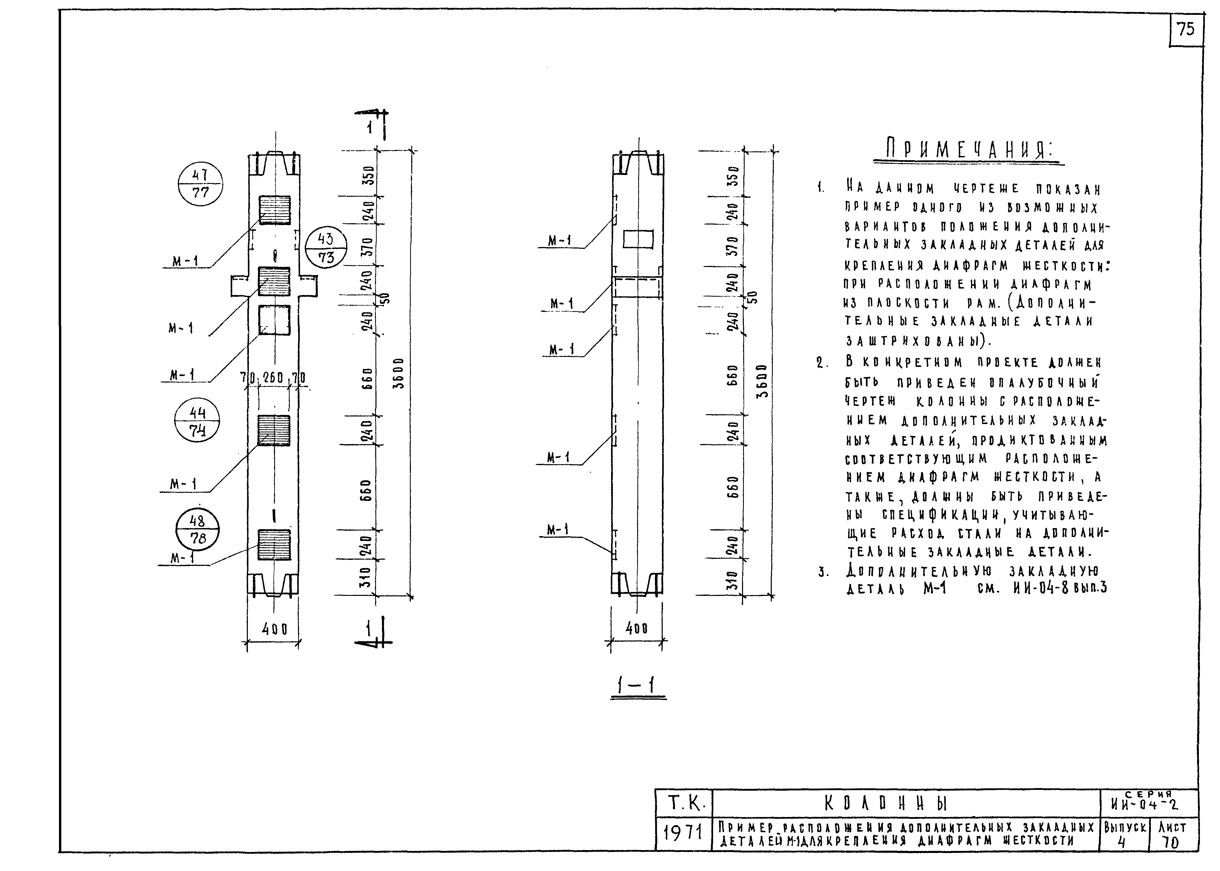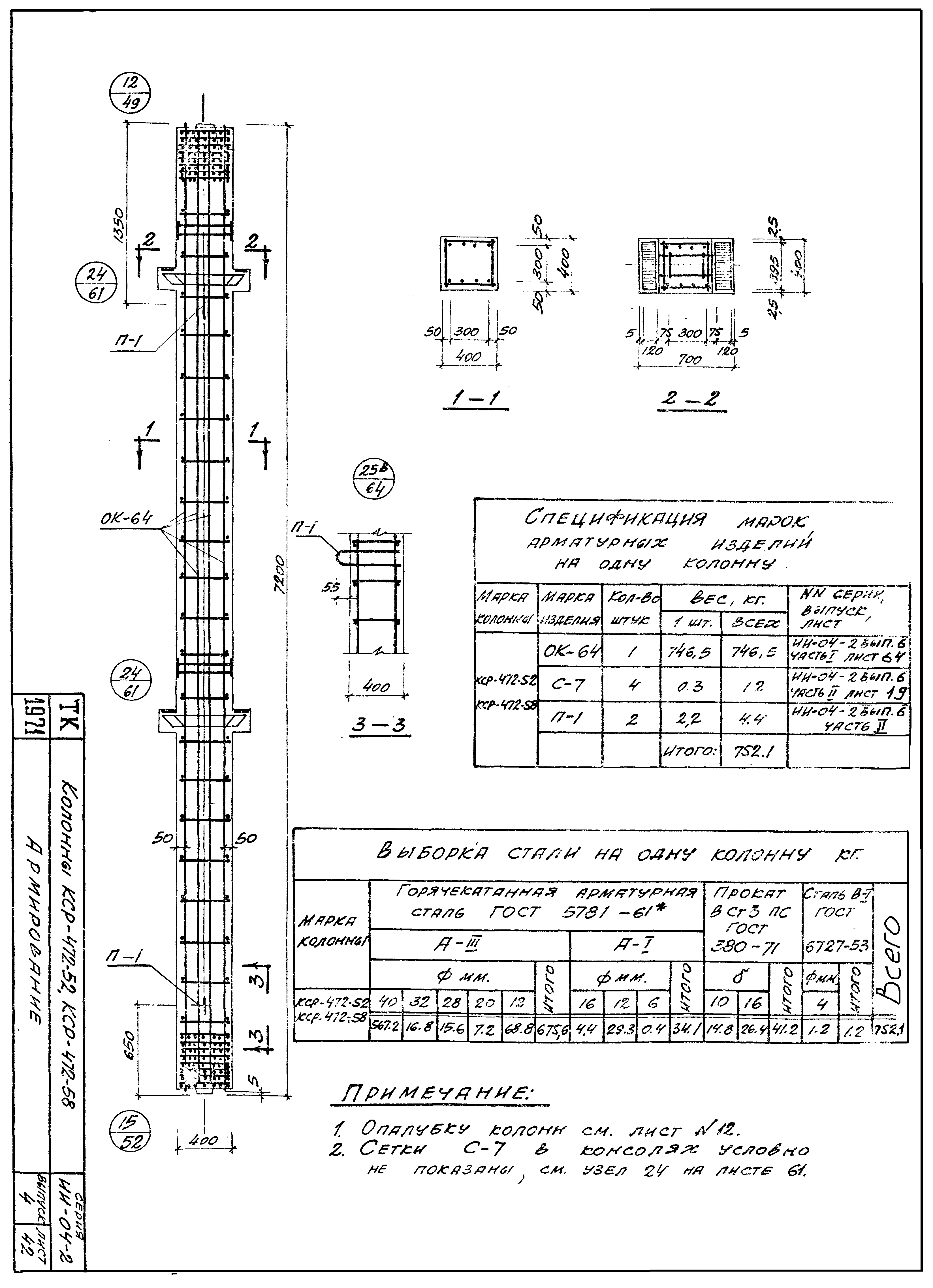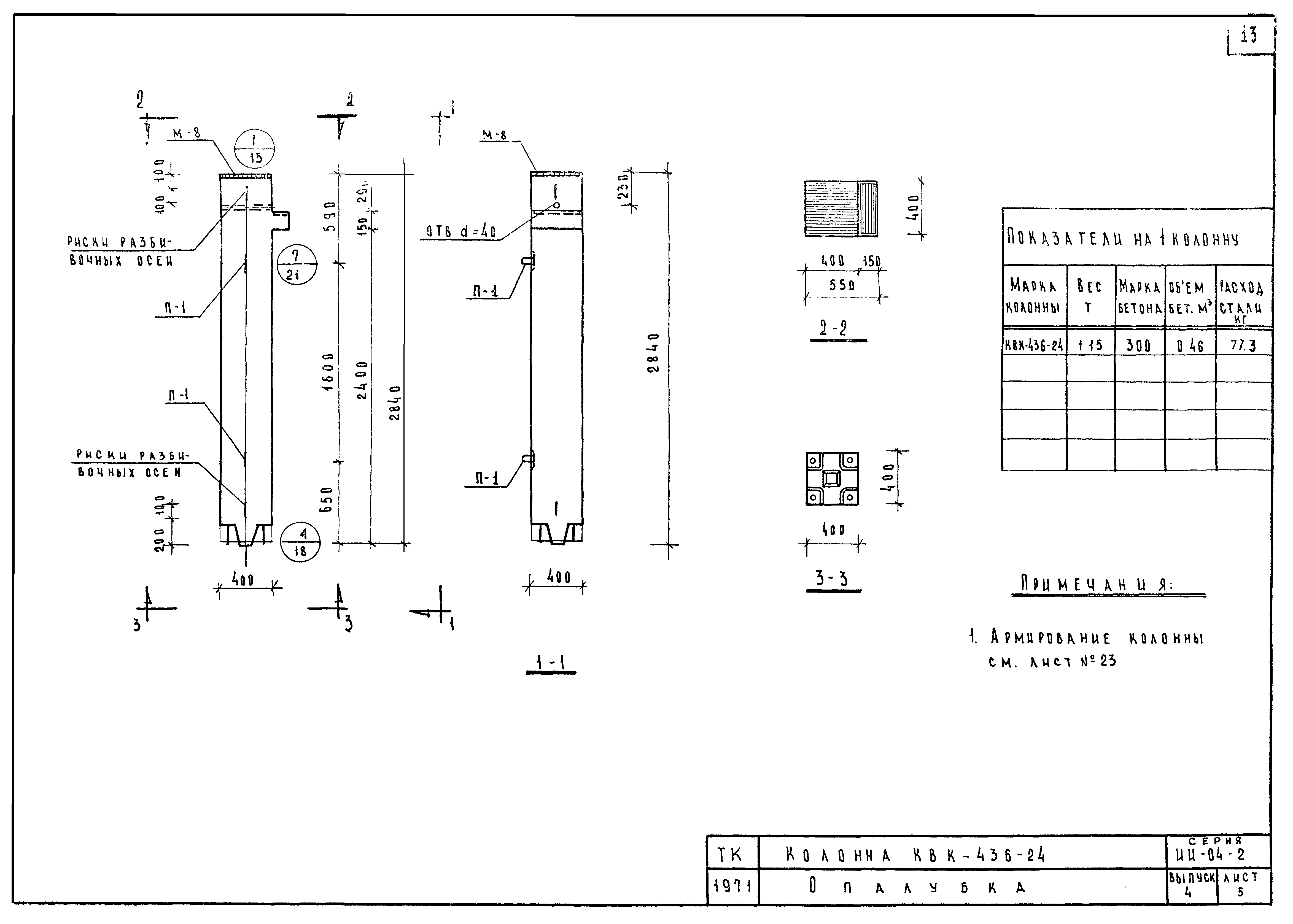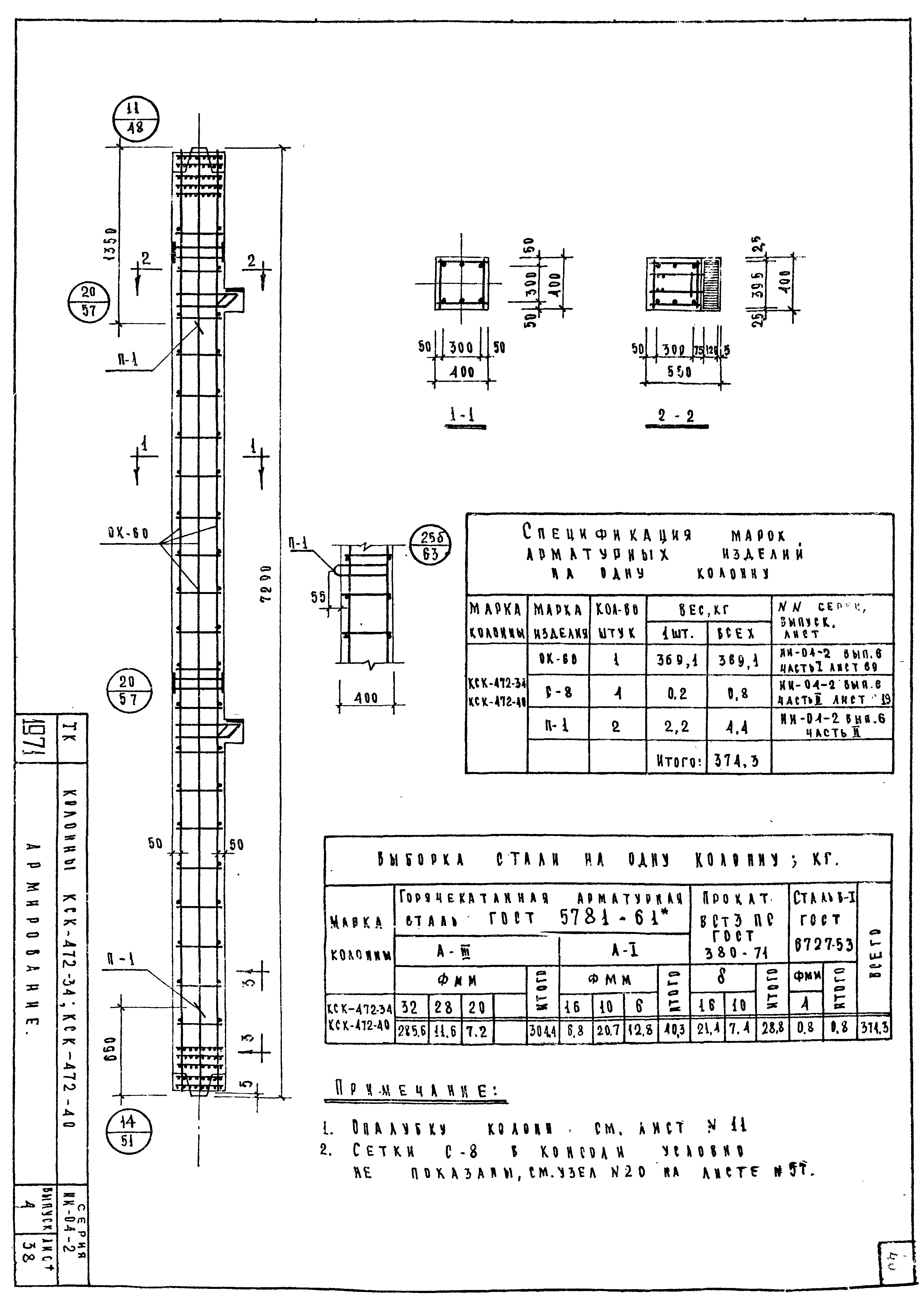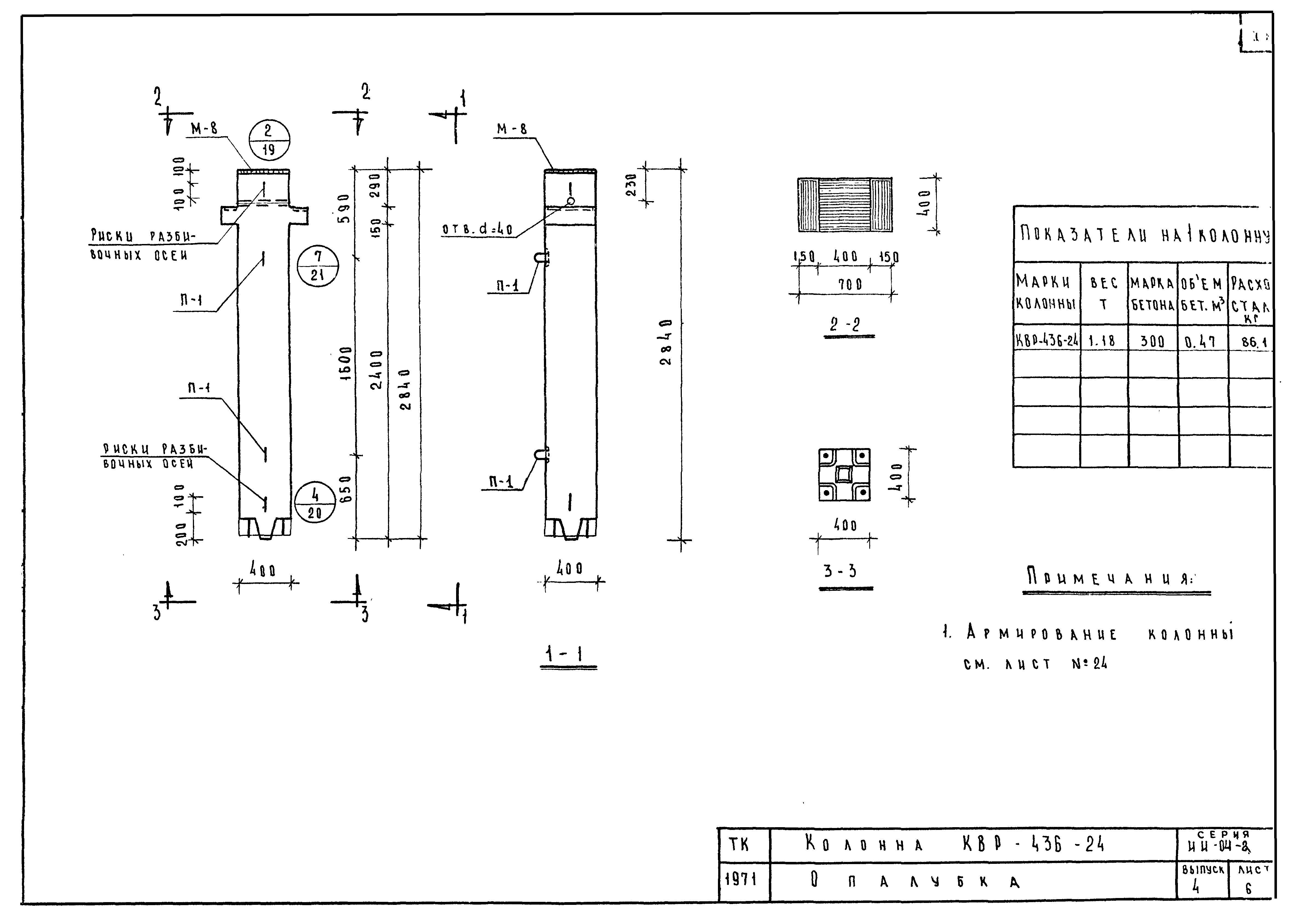 | Оглавление: | ИИ-04-2 Перечень серии и выпусков ИИ-04-2 Содержание выпуска ИИ-04-2 Пояснительная записка ИИ-04-2 Лист 1. Номенклатура ИИ-04-2 Лист 2. Номенклатура ИИ-04-2 Лист 3. Номенклатура ИИ-04-2 Лист 4. Номенклатура ИИ-04-2 Лист 5. Колонна КВК-436-24. Опалубка ИИ-04-2 Лист 6. Колонна КВР-436-24. Опалубка ИИ-04-2 Лист 7. Колонны КСК-436-24,КСК-436-29,КСК-436-34,КСК-436-40,КСК-436-52. Опалубка ИИ-04-2 Лист 8. Колонны КСР-436-24,КСР-436-29,КСР-436-34,КСР-436-40,КСР-436-52,КСР-436-58. Опалубка ИИ-04-2 Лист 9. Колонны КНК-436-24,КНК-436-29,КНК-436-34,КНК-436-40,КНК-436-52. Опалубка ИИ-04-2 Лист 10. Колонны КНР-436-24,КНР-436-29,КНР-436-34,КНР-436-40,КНР-436-52,КНР-436-58. Опалубка ИИ-04-2 Лист 11. Колонны КСК-472-24,КСК-472-29,КСК-472-34,КСК-472-40,КСК-472-52. Опалубка ИИ-04-2 Лист 12. Колонны КСР-472-24,КСР-472-29,КСР-472-34,КСР-472-40,КСР-472-52,КСР-472-58. Опалубка ИИ-04-2 Лист 13. Колонна КК-436-24. Опалубка ИИ-04-2 Лист 14. Колонна КР-436-24. Опалубка ИИ-04-2 Лист 15. Колонны. Опалубка. Узел 1 ИИ-04-2 Лист 16. Колонны. Опалубка. Узел 2 ИИ-04-2 Лист 17. Колонны. Опалубка. Узел 3 ИИ-04-2 Лист 18. Колонны. Опалубка. Узел 4 ИИ-04-2 Лист 19. Колонны. Опалубка. Узел 5 ИИ-04-2 Лист 20. Колонны. Опалубка. Узел 6 ИИ-04-2 Лист 21. Колонны. Опалубка. Узел 7 ИИ-04-2 Лист 22. Колонны. Опалубка. Узел 7а ИИ-04-2 Лист 23. Колонна КВК-436-24. Армирование ИИ-04-2 Лист 24. Колонна КВР-436-24. Армирование ИИ-04-2 Лист 25. Колонны КСК-436-24,КСК-436-29. Армирование ИИ-04-2 Лист 26. Колонны КСК-436-34,КСК-436-40. Армирование ИИ-04-2 Лист 27. Колонна КСК-436-52. Армирование ИИ-04-2 Лист 28. Колонны КСР-436-24,КСР-436-29. Армирование ИИ-04-2 Лист 29. Колонны КСР-436-34,КСР-436-40. Армирование ИИ-04-2 Лист 30. Колонны КСР-436-52,КСР-436-58. Армирование ИИ-04-2 Лист 31. Колонны КНК-436-24,КНК-436-29. Армирование ИИ-04-2 Лист 32. Колонны КНК-436-34,КНК-436-40. Армирование ИИ-04-2 Лист 33. Колонка КНК-436-52. Армирование ИИ-04-2 Лист 34. Колонны КНР-436-24,КНР-436-29. Армирование ИИ-04-2 Лист 35. Колонны КНР-436-34,КНР-436-40. Армирование ИИ-04-2 Лист 36. Колонны КНР-436-52,КНР-436-58. Армирование ИИ-04-2 Лист 37. Колонны КСК-472-24,КСК-472-29. Армирование ИИ-04-2 Лист 38. Колонны КСК-472-34,КСК-472-40. Армирование ИИ-04-2 Лист 39. Колонна КСК-472-52. Армирование ИИ-04-2 Лист 40. Колонны КСР-472-24,КСР-472-29. Армирование ИИ-04-2 Лист 41. Колонны КСР-472-34,КСР-472-40. Армирование ИИ-04-2 Лист 42. Колонны КСР-472-52,КСР-472-58. Армирование ИИ-04-2 Лист 43. Колонна КК-436-24. Армирование ИИ-04-2 Лист 44. Колонна КР-436-24. Армирование ИИ-04-2 Лист 45. Колонны. Армирование. Узел 8 ИИ-04-2 Лист 46. Колонны. Армирование. Узел 9 ИИ-04-2 Лист 47. Колонны. Армирование. Узел 10 ИИ-04-2 Лист 48. Колонны. Армирование. Узел 11 ИИ-04-2 Лист 49. Колонны. Армирование. Узел 12 ИИ-04-2 Лист 50. Колонны. Армирование. Узел 13 ИИ-04-2 Лист 51. Колонны. Армирование. Узел 14 ИИ-04-2 Лист 52. Колонны. Армирование. Узел 15 ИИ-04-2 Лист 53,54. Колонны. Армирование. Узел 16,17 ИИ-04-2 Лист 55. Колонны. Армирование. Узел 18 ИИ-04-2 Лист 56. Колонны. Армирование. Узел 19 ИИ-04-2 Лист 57. Колонны. Армирование. Узел 20 ИИ-04-2 Лист 58. Колонны. Армирование. Узел 21 ИИ-04-2 Лист 59. Колонны. Армирование. Узел 22 ИИ-04-2 Лист 60. Колонны. Армирование. Узел 23 ИИ-04-2 Лист 61. Колонны. Армирование. Узел 24 ИИ-04-2 Лист 62-64. Колонны. Армирование. Узел 25а,25б,25в ИИ-04-2 Лист 65. Колонны. Пример расположения дополнительных закладных деталей для крепления лестниц ИИ-04-2 Лист 66. Колонны. Пример расположения дополнительных закладных деталей для крепления лестниц ИИ-04-2 Лист 67. Колонны. Пример расположения дополнительных закладных деталей для крепления лестниц ИИ-04-2 Лист 68. Колонны. Пример расположения дополнительных закладных деталей для крепления лестниц ИИ-04-2 Лист 69. Колонны. Пример расположения дополнительных заклад