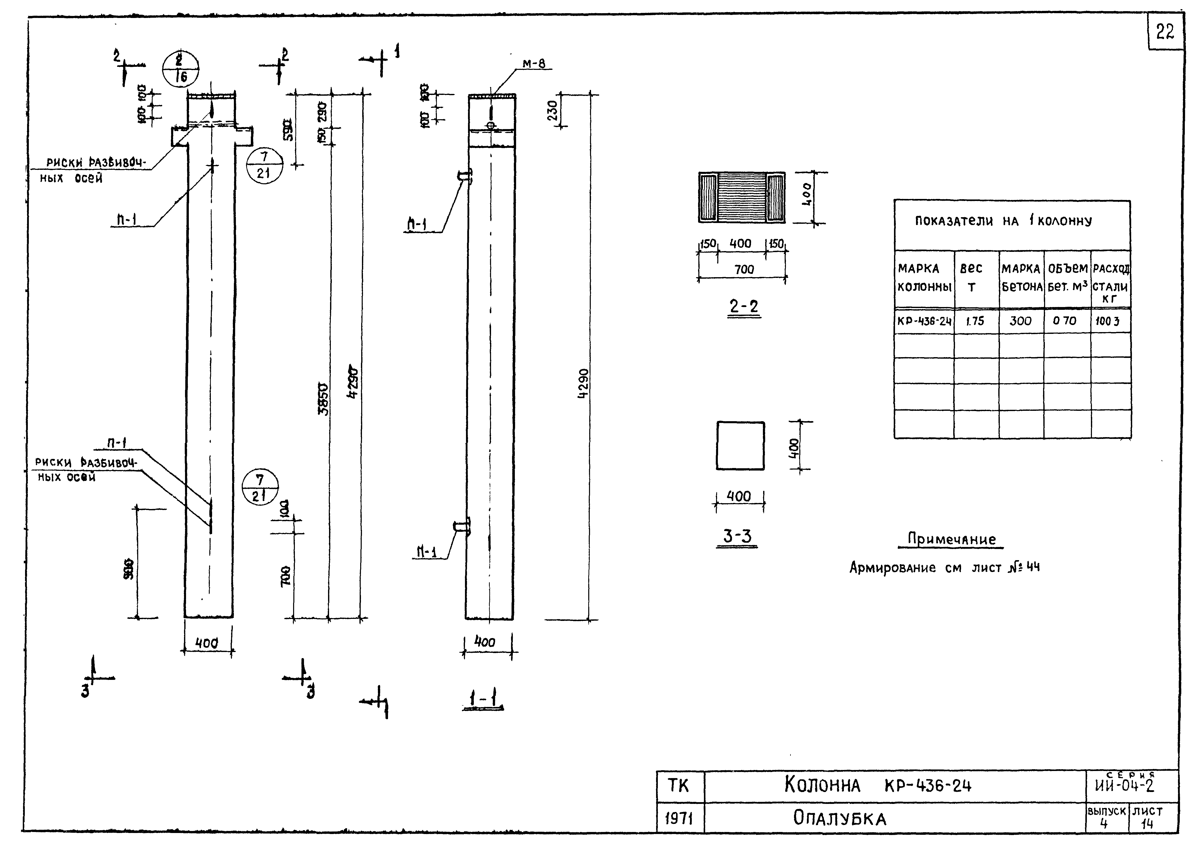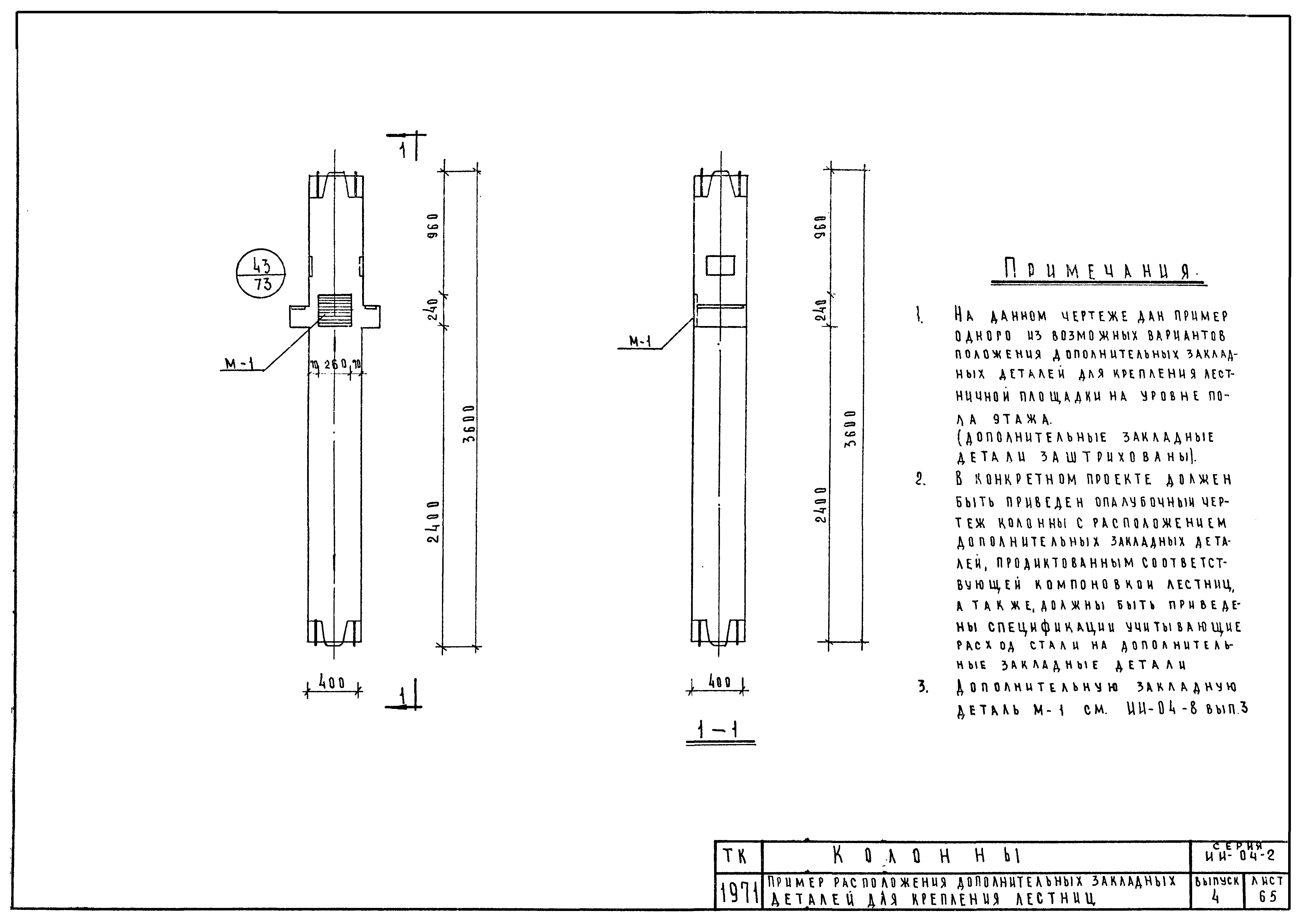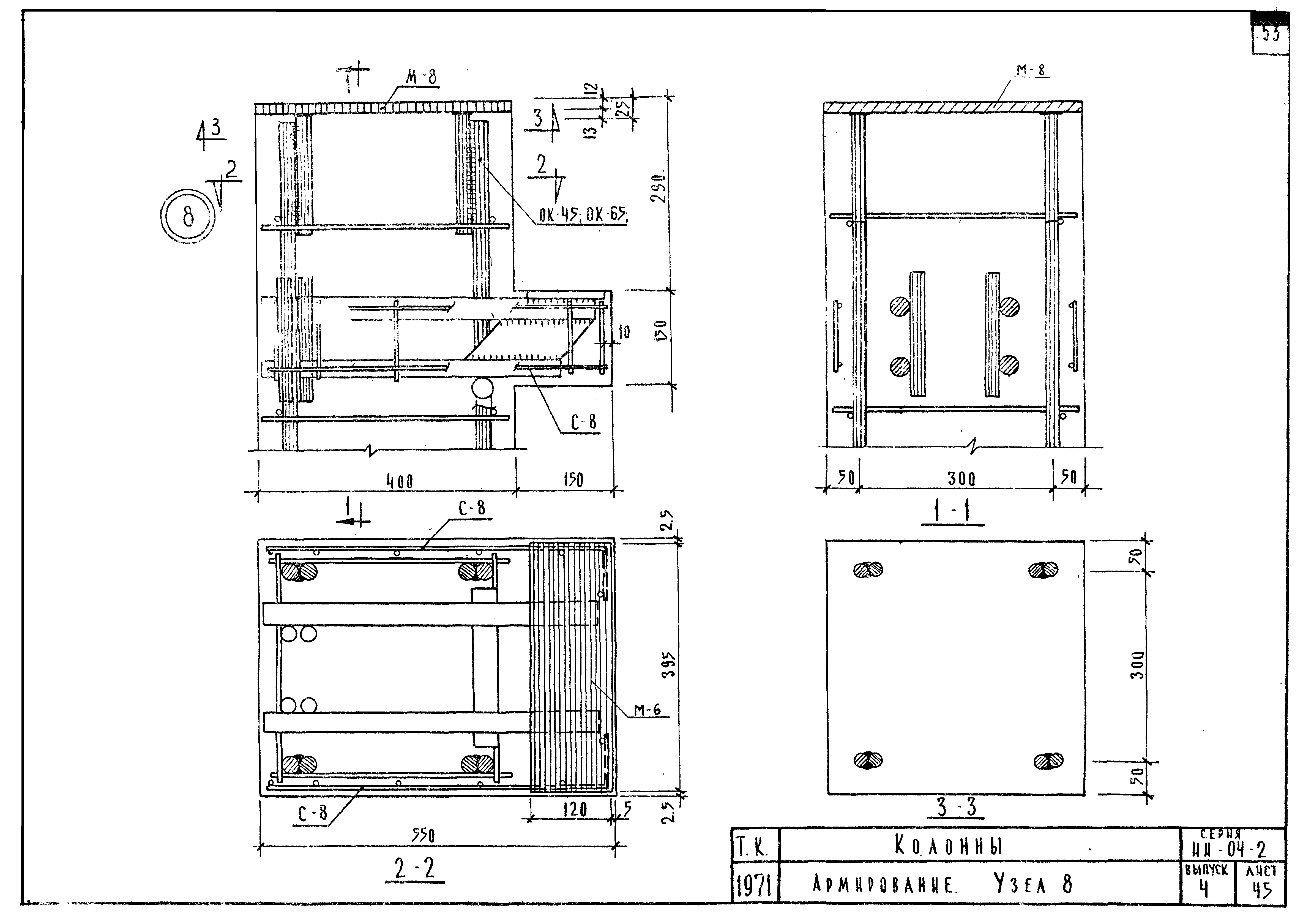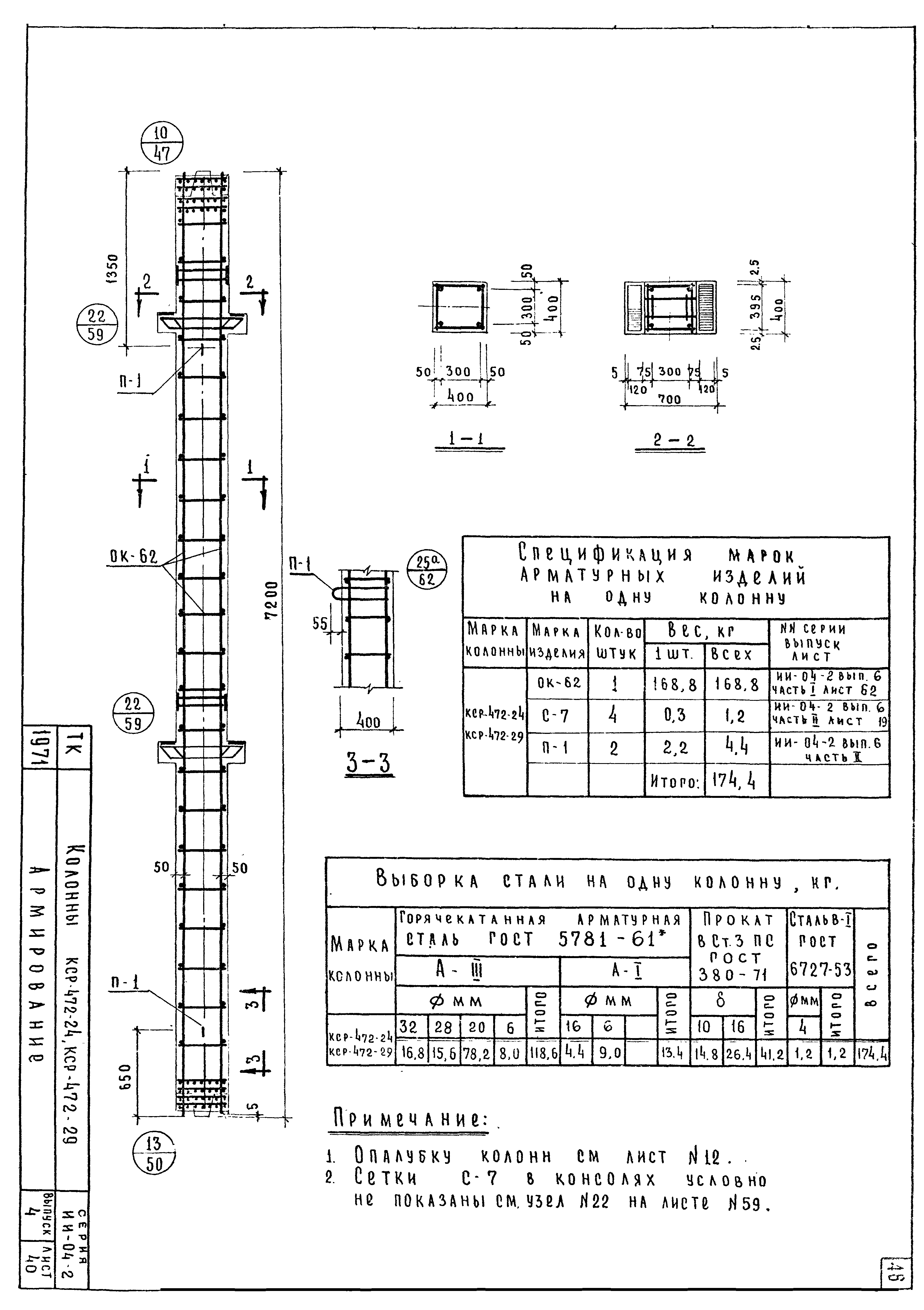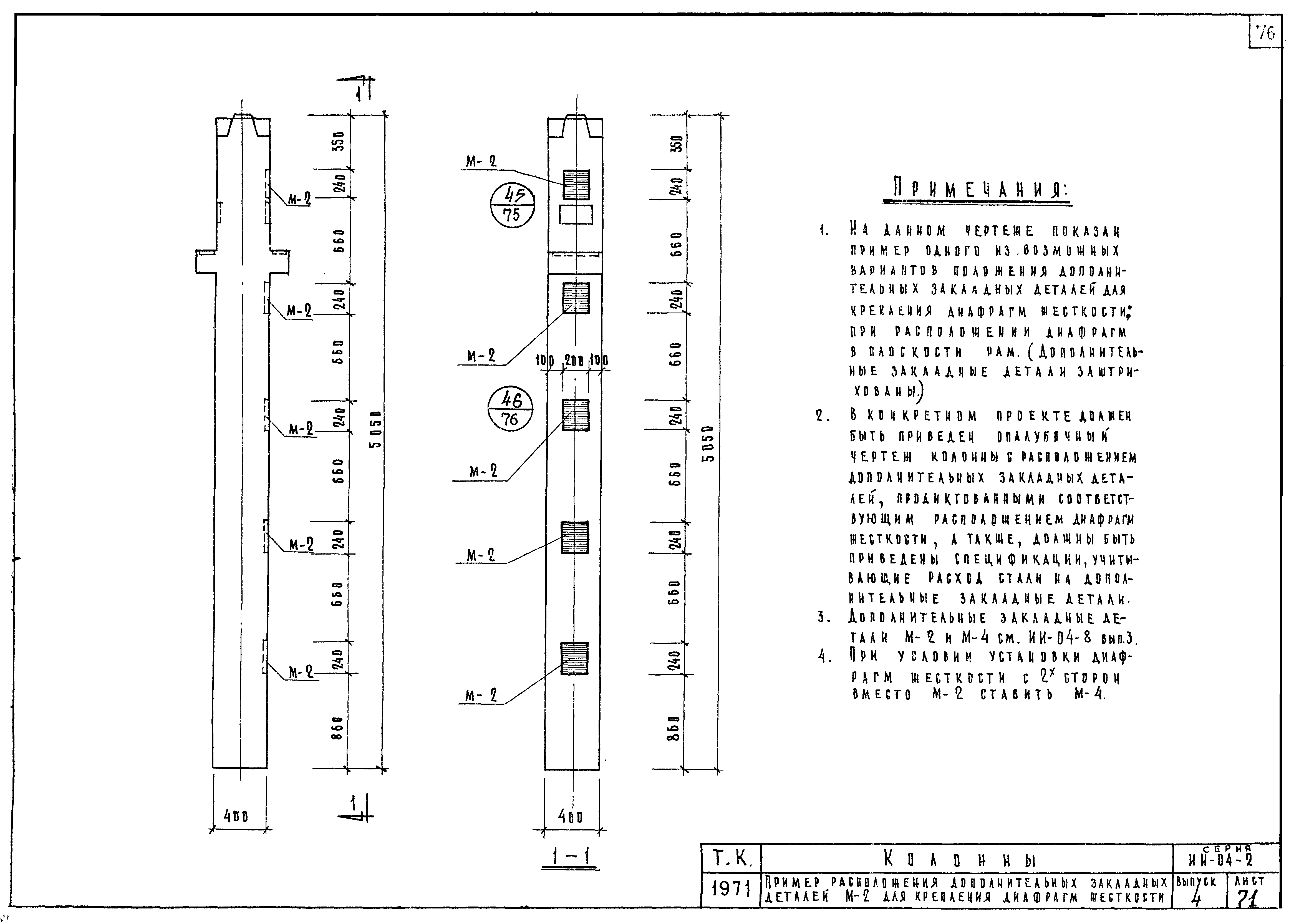 | Оглавление: | ИИ-04-2 Перечень серии и выпусков ИИ-04-2 Содержание выпуска ИИ-04-2 Пояснительная записка ИИ-04-2 Лист 1. Номенклатура ИИ-04-2 Лист 2. Номенклатура ИИ-04-2 Лист 3. Номенклатура ИИ-04-2 Лист 4. Номенклатура ИИ-04-2 Лист 5. Колонна КВК-436-24. Опалубка ИИ-04-2 Лист 6. Колонна КВР-436-24. Опалубка ИИ-04-2 Лист 7. Колонны КСК-436-24,КСК-436-29,КСК-436-34,КСК-436-40,КСК-436-52. Опалубка ИИ-04-2 Лист 8. Колонны КСР-436-24,КСР-436-29,КСР-436-34,КСР-436-40,КСР-436-52,КСР-436-58. Опалубка ИИ-04-2 Лист 9. Колонны КНК-436-24,КНК-436-29,КНК-436-34,КНК-436-40,КНК-436-52. Опалубка ИИ-04-2 Лист 10. Колонны КНР-436-24,КНР-436-29,КНР-436-34,КНР-436-40,КНР-436-52,КНР-436-58. Опалубка ИИ-04-2 Лист 11. Колонны КСК-472-24,КСК-472-29,КСК-472-34,КСК-472-40,КСК-472-52. Опалубка ИИ-04-2 Лист 12. Колонны КСР-472-24,КСР-472-29,КСР-472-34,КСР-472-40,КСР-472-52,КСР-472-58. Опалубка ИИ-04-2 Лист 13. Колонна КК-436-24. Опалубка ИИ-04-2 Лист 14. Колонна КР-436-24. Опалубка ИИ-04-2 Лист 15. Колонны. Опалубка. Узел 1 ИИ-04-2 Лист 16. Колонны. Опалубка. Узел 2 ИИ-04-2 Лист 17. Колонны. Опалубка. Узел 3 ИИ-04-2 Лист 18. Колонны. Опалубка. Узел 4 ИИ-04-2 Лист 19. Колонны. Опалубка. Узел 5 ИИ-04-2 Лист 20. Колонны. Опалубка. Узел 6 ИИ-04-2 Лист 21. Колонны. Опалубка. Узел 7 ИИ-04-2 Лист 22. Колонны. Опалубка. Узел 7а ИИ-04-2 Лист 23. Колонна КВК-436-24. Армирование ИИ-04-2 Лист 24. Колонна КВР-436-24. Армирование ИИ-04-2 Лист 25. Колонны КСК-436-24,КСК-436-29. Армирование ИИ-04-2 Лист 26. Колонны КСК-436-34,КСК-436-40. Армирование ИИ-04-2 Лист 27. Колонна КСК-436-52. Армирование ИИ-04-2 Лист 28. Колонны КСР-436-24,КСР-436-29. Армирование ИИ-04-2 Лист 29. Колонны КСР-436-34,КСР-436-40. Армирование ИИ-04-2 Лист 30. Колонны КСР-436-52,КСР-436-58. Армирование ИИ-04-2 Лист 31. Колонны КНК-436-24,КНК-436-29. Армирование ИИ-04-2 Лист 32. Колонны КНК-436-34,КНК-436-40. Армирование ИИ-04-2 Лист 33. Колонка КНК-436-52. Армирование ИИ-04-2 Лист 34. Колонны КНР-436-24,КНР-436-29. Армирование ИИ-04-2 Лист 35. Колонны КНР-436-34,КНР-436-40. Армирование ИИ-04-2 Лист 36. Колонны КНР-436-52,КНР-436-58. Армирование ИИ-04-2 Лист 37. Колонны КСК-472-24,КСК-472-29. Армирование ИИ-04-2 Лист 38. Колонны КСК-472-34,КСК-472-40. Армирование ИИ-04-2 Лист 39. Колонна КСК-472-52. Армирование ИИ-04-2 Лист 40. Колонны КСР-472-24,КСР-472-29. Армирование ИИ-04-2 Лист 41. Колонны КСР-472-34,КСР-472-40. Армирование ИИ-04-2 Лист 42. Колонны КСР-472-52,КСР-472-58. Армирование ИИ-04-2 Лист 43. Колонна КК-436-24. Армирование ИИ-04-2 Лист 44. Колонна КР-436-24. Армирование ИИ-04-2 Лист 45. Колонны. Армирование. Узел 8 ИИ-04-2 Лист 46. Колонны. Армирование. Узел 9 ИИ-04-2 Лист 47. Колонны. Армирование. Узел 10 ИИ-04-2 Лист 48. Колонны. Армирование. Узел 11 ИИ-04-2 Лист 49. Колонны. Армирование. Узел 12 ИИ-04-2 Лист 50. Колонны. Армирование. Узел 13 ИИ-04-2 Лист 51. Колонны. Армирование. Узел 14 ИИ-04-2 Лист 52. Колонны. Армирование. Узел 15 ИИ-04-2 Лист 53,54. Колонны. Армирование. Узел 16,17 ИИ-04-2 Лист 55. Колонны. Армирование. Узел 18 ИИ-04-2 Лист 56. Колонны. Армирование. Узел 19 ИИ-04-2 Лист 57. Колонны. Армирование. Узел 20 ИИ-04-2 Лист 58. Колонны. Армирование. Узел 21 ИИ-04-2 Лист 59. Колонны. Армирование. Узел 22 ИИ-04-2 Лист 60. Колонны. Армирование. Узел 23 ИИ-04-2 Лист 61. Колонны. Армирование. Узел 24 ИИ-04-2 Лист 62-64. Колонны. Армирование. Узел 25а,25б,25в ИИ-04-2 Лист 65. Колонны. Пример расположения дополнительных закладных деталей для крепления лестниц ИИ-04-2 Лист 66. Колонны. Пример расположения дополнительных закладных деталей для крепления лестниц ИИ-04-2 Лист 67. Колонны. Пример расположения дополнительных закладных деталей для крепления лестниц ИИ-04-2 Лист 68. Колонны. Пример расположения дополнительных закладных деталей для крепления лестниц ИИ-04-2 Лист 69. Колонны. Пример расположения дополнительных заклад