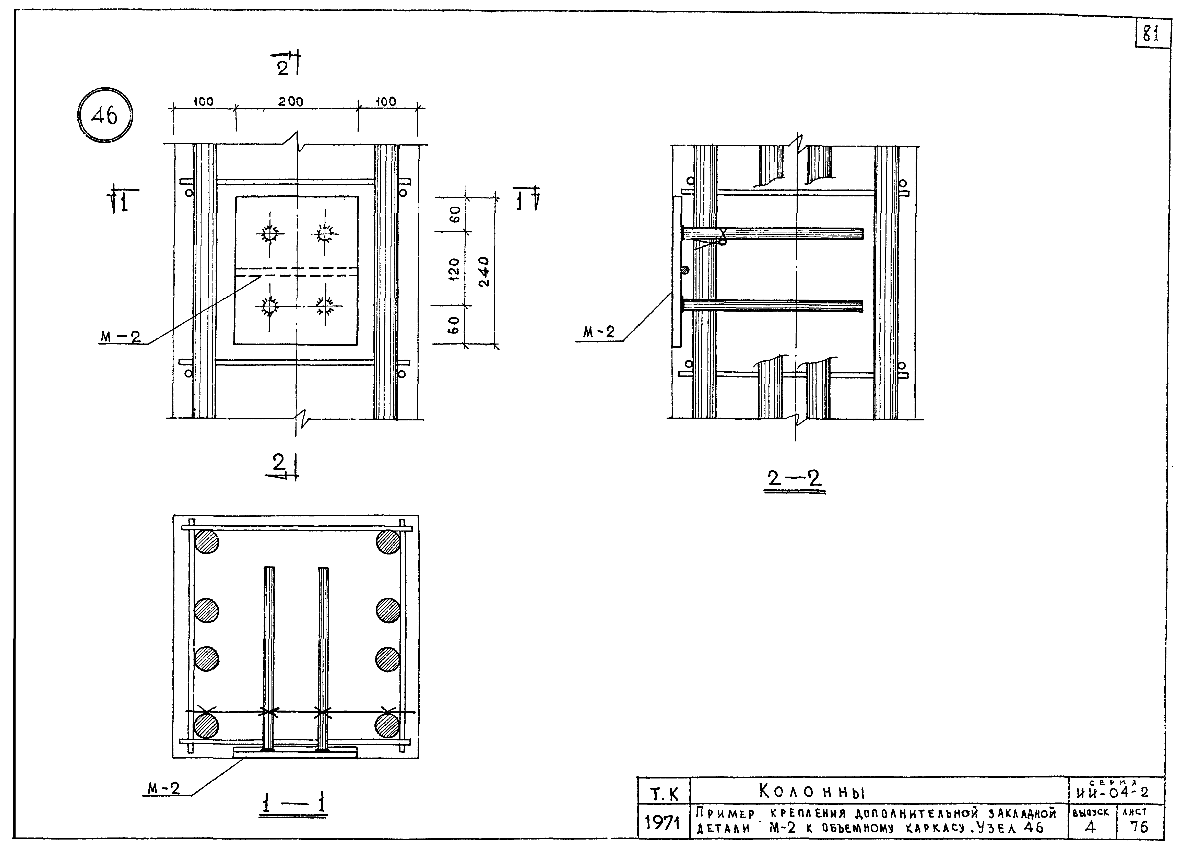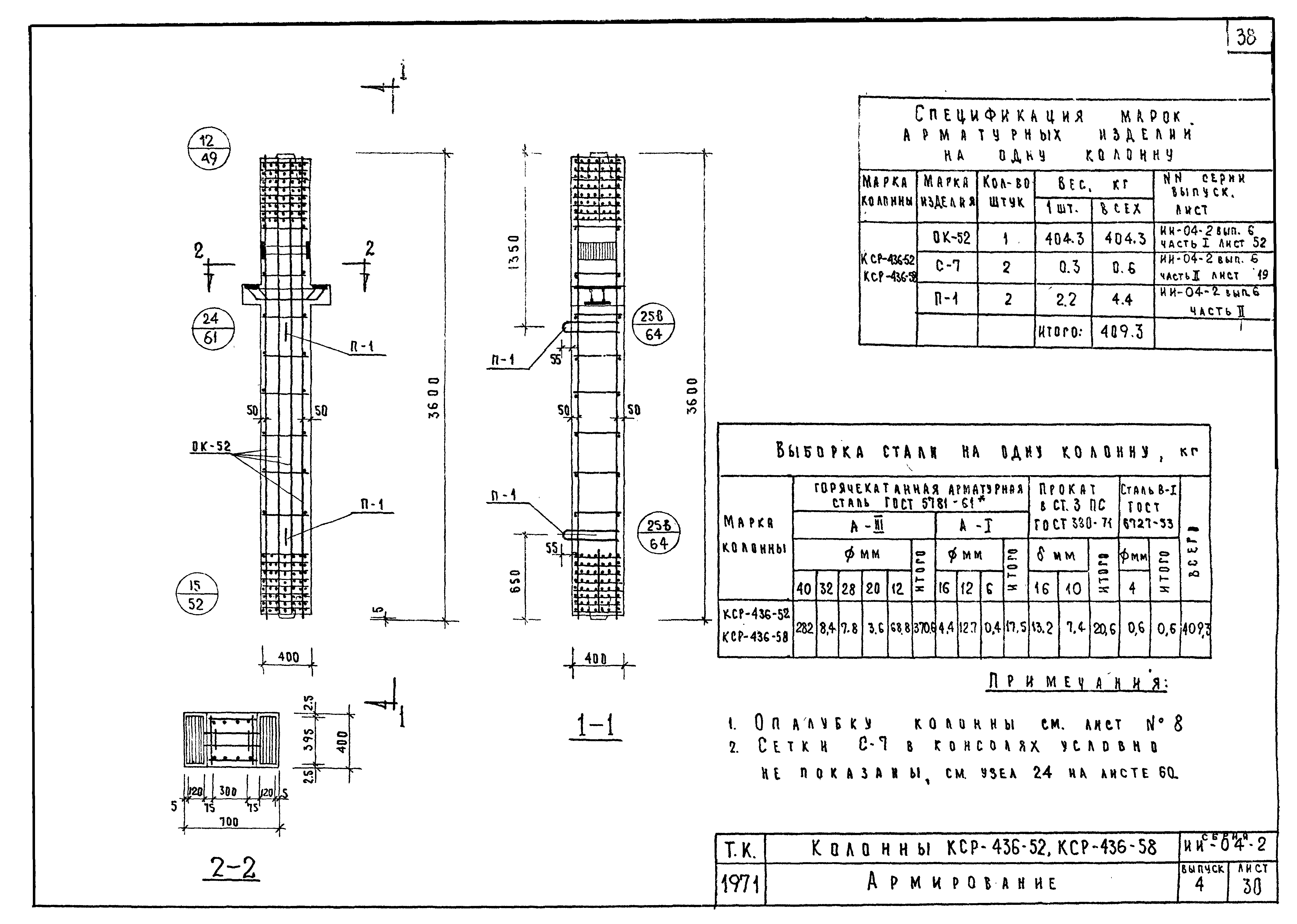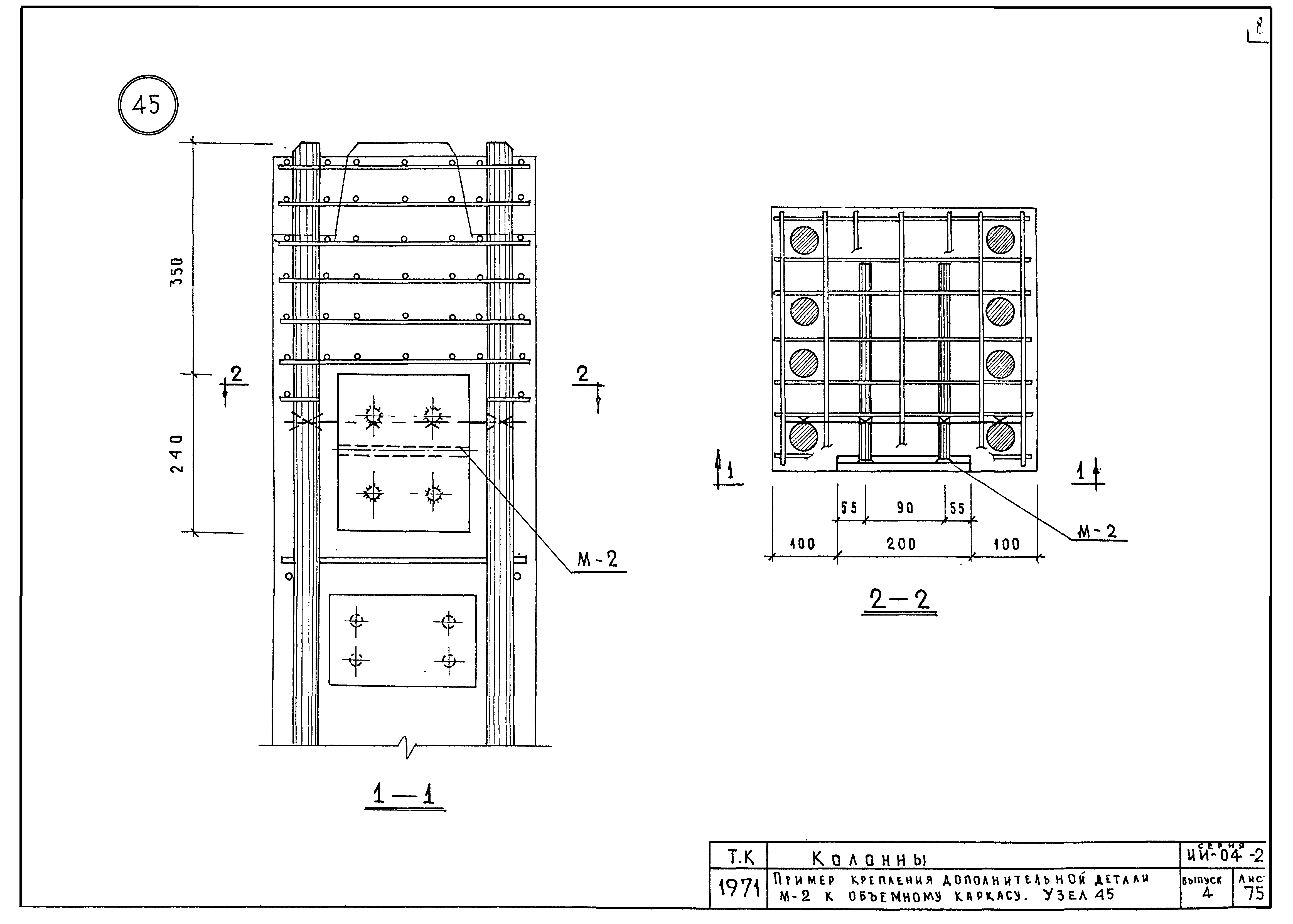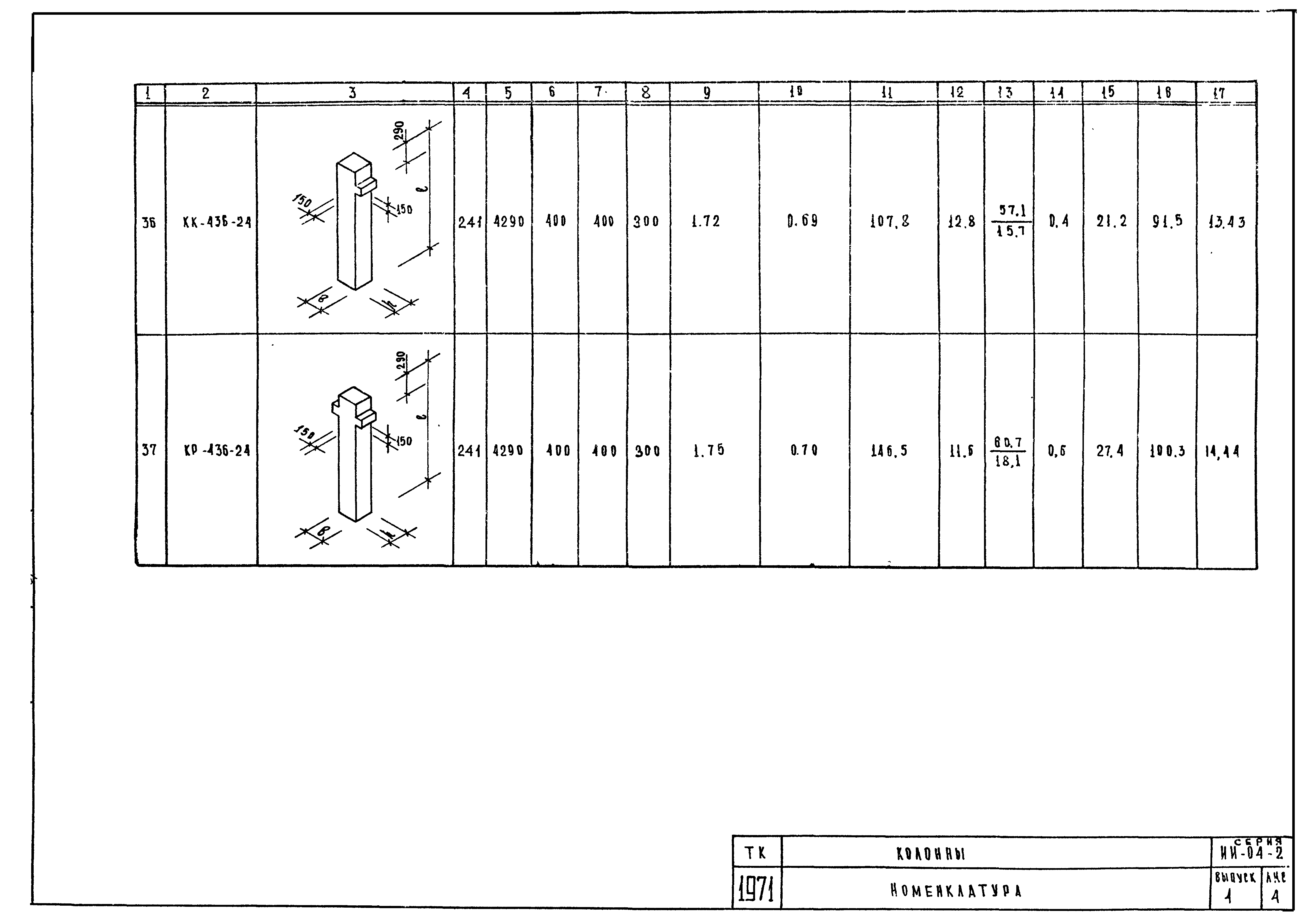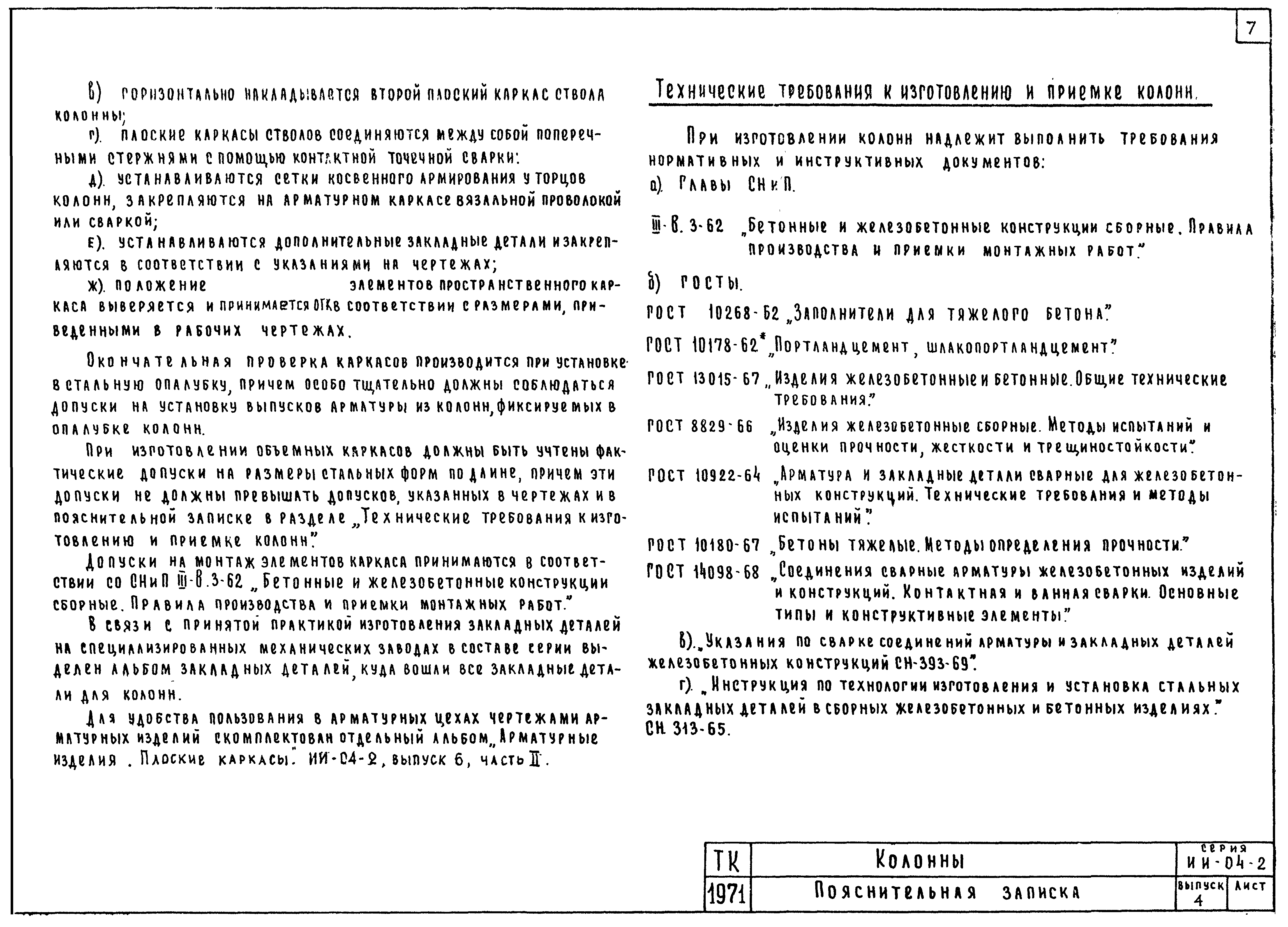 | Оглавление: | ИИ-04-2 Перечень серии и выпусков ИИ-04-2 Содержание выпуска ИИ-04-2 Пояснительная записка ИИ-04-2 Лист 1. Номенклатура ИИ-04-2 Лист 2. Номенклатура ИИ-04-2 Лист 3. Номенклатура ИИ-04-2 Лист 4. Номенклатура ИИ-04-2 Лист 5. Колонна КВК-436-24. Опалубка ИИ-04-2 Лист 6. Колонна КВР-436-24. Опалубка ИИ-04-2 Лист 7. Колонны КСК-436-24,КСК-436-29,КСК-436-34,КСК-436-40,КСК-436-52. Опалубка ИИ-04-2 Лист 8. Колонны КСР-436-24,КСР-436-29,КСР-436-34,КСР-436-40,КСР-436-52,КСР-436-58. Опалубка ИИ-04-2 Лист 9. Колонны КНК-436-24,КНК-436-29,КНК-436-34,КНК-436-40,КНК-436-52. Опалубка ИИ-04-2 Лист 10. Колонны КНР-436-24,КНР-436-29,КНР-436-34,КНР-436-40,КНР-436-52,КНР-436-58. Опалубка ИИ-04-2 Лист 11. Колонны КСК-472-24,КСК-472-29,КСК-472-34,КСК-472-40,КСК-472-52. Опалубка ИИ-04-2 Лист 12. Колонны КСР-472-24,КСР-472-29,КСР-472-34,КСР-472-40,КСР-472-52,КСР-472-58. Опалубка ИИ-04-2 Лист 13. Колонна КК-436-24. Опалубка ИИ-04-2 Лист 14. Колонна КР-436-24. Опалубка ИИ-04-2 Лист 15. Колонны. Опалубка. Узел 1 ИИ-04-2 Лист 16. Колонны. Опалубка. Узел 2 ИИ-04-2 Лист 17. Колонны. Опалубка. Узел 3 ИИ-04-2 Лист 18. Колонны. Опалубка. Узел 4 ИИ-04-2 Лист 19. Колонны. Опалубка. Узел 5 ИИ-04-2 Лист 20. Колонны. Опалубка. Узел 6 ИИ-04-2 Лист 21. Колонны. Опалубка. Узел 7 ИИ-04-2 Лист 22. Колонны. Опалубка. Узел 7а ИИ-04-2 Лист 23. Колонна КВК-436-24. Армирование ИИ-04-2 Лист 24. Колонна КВР-436-24. Армирование ИИ-04-2 Лист 25. Колонны КСК-436-24,КСК-436-29. Армирование ИИ-04-2 Лист 26. Колонны КСК-436-34,КСК-436-40. Армирование ИИ-04-2 Лист 27. Колонна КСК-436-52. Армирование ИИ-04-2 Лист 28. Колонны КСР-436-24,КСР-436-29. Армирование ИИ-04-2 Лист 29. Колонны КСР-436-34,КСР-436-40. Армирование ИИ-04-2 Лист 30. Колонны КСР-436-52,КСР-436-58. Армирование ИИ-04-2 Лист 31. Колонны КНК-436-24,КНК-436-29. Армирование ИИ-04-2 Лист 32. Колонны КНК-436-34,КНК-436-40. Армирование ИИ-04-2 Лист 33. Колонка КНК-436-52. Армирование ИИ-04-2 Лист 34. Колонны КНР-436-24,КНР-436-29. Армирование ИИ-04-2 Лист 35. Колонны КНР-436-34,КНР-436-40. Армирование ИИ-04-2 Лист 36. Колонны КНР-436-52,КНР-436-58. Армирование ИИ-04-2 Лист 37. Колонны КСК-472-24,КСК-472-29. Армирование ИИ-04-2 Лист 38. Колонны КСК-472-34,КСК-472-40. Армирование ИИ-04-2 Лист 39. Колонна КСК-472-52. Армирование ИИ-04-2 Лист 40. Колонны КСР-472-24,КСР-472-29. Армирование ИИ-04-2 Лист 41. Колонны КСР-472-34,КСР-472-40. Армирование ИИ-04-2 Лист 42. Колонны КСР-472-52,КСР-472-58. Армирование ИИ-04-2 Лист 43. Колонна КК-436-24. Армирование ИИ-04-2 Лист 44. Колонна КР-436-24. Армирование ИИ-04-2 Лист 45. Колонны. Армирование. Узел 8 ИИ-04-2 Лист 46. Колонны. Армирование. Узел 9 ИИ-04-2 Лист 47. Колонны. Армирование. Узел 10 ИИ-04-2 Лист 48. Колонны. Армирование. Узел 11 ИИ-04-2 Лист 49. Колонны. Армирование. Узел 12 ИИ-04-2 Лист 50. Колонны. Армирование. Узел 13 ИИ-04-2 Лист 51. Колонны. Армирование. Узел 14 ИИ-04-2 Лист 52. Колонны. Армирование. Узел 15 ИИ-04-2 Лист 53,54. Колонны. Армирование. Узел 16,17 ИИ-04-2 Лист 55. Колонны. Армирование. Узел 18 ИИ-04-2 Лист 56. Колонны. Армирование. Узел 19 ИИ-04-2 Лист 57. Колонны. Армирование. Узел 20 ИИ-04-2 Лист 58. Колонны. Армирование. Узел 21 ИИ-04-2 Лист 59. Колонны. Армирование. Узел 22 ИИ-04-2 Лист 60. Колонны. Армирование. Узел 23 ИИ-04-2 Лист 61. Колонны. Армирование. Узел 24 ИИ-04-2 Лист 62-64. Колонны. Армирование. Узел 25а,25б,25в ИИ-04-2 Лист 65. Колонны. Пример расположения дополнительных закладных деталей для крепления лестниц ИИ-04-2 Лист 66. Колонны. Пример расположения дополнительных закладных деталей для крепления лестниц ИИ-04-2 Лист 67. Колонны. Пример расположения дополнительных закладных деталей для крепления лестниц ИИ-04-2 Лист 68. Колонны. Пример расположения дополнительных закладных деталей для крепления лестниц ИИ-04-2 Лист 69. Колонны. Пример расположения дополнительных заклад