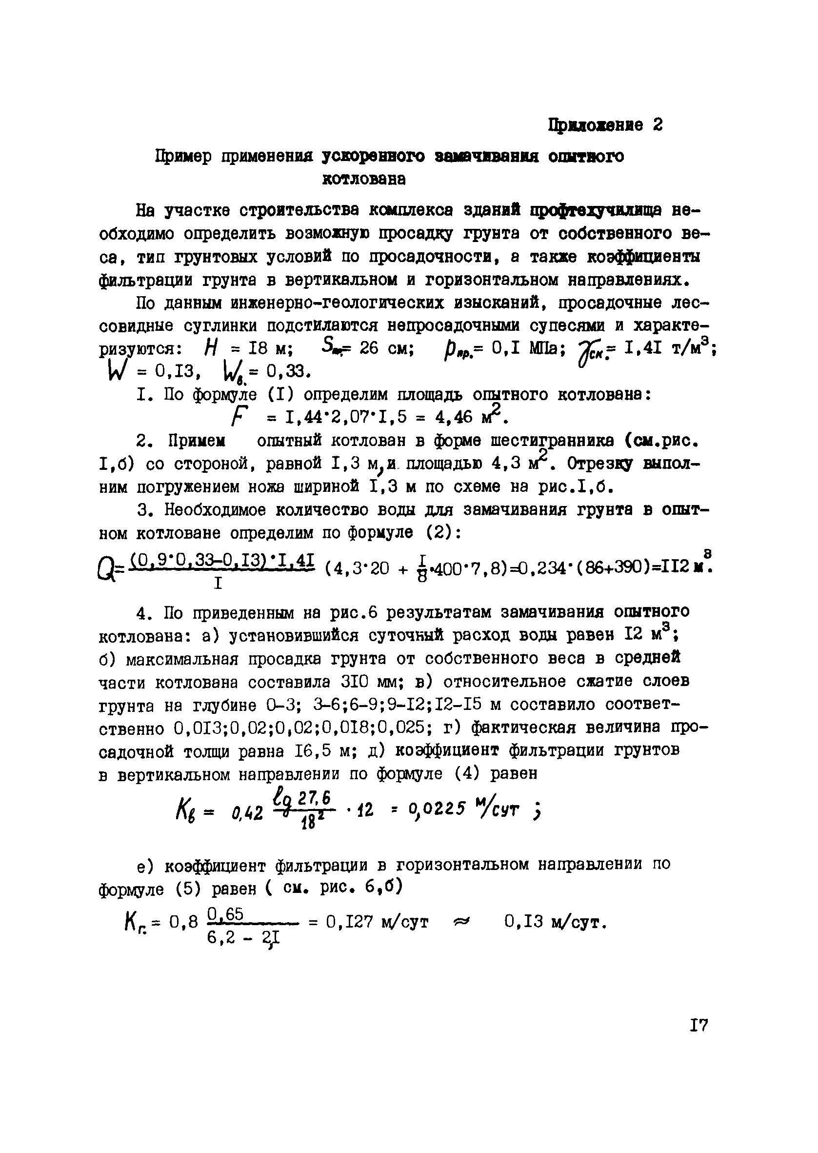 | Область применения: | Рекомендации по ускоренному замачиванию опытных котлованов в просадочных грунтах предназначены для определения возможной величины просадки грунтов от собственного веса, типа грунтовых условий по просадочности, несущей способности уплотненных и закрепленных массивов с учетом воздействия на них дополнительных нагрузок от сил нагружающего трения. |