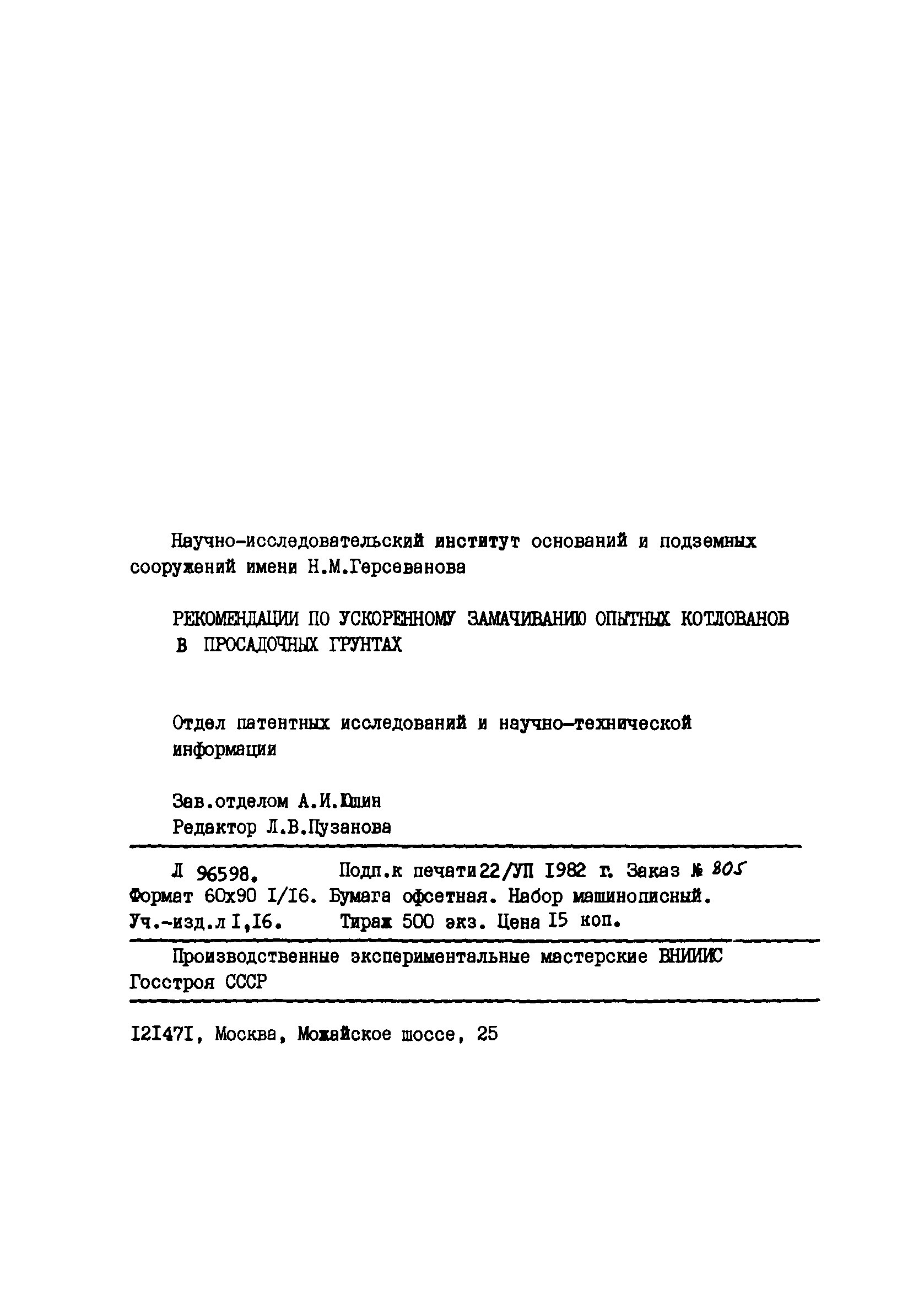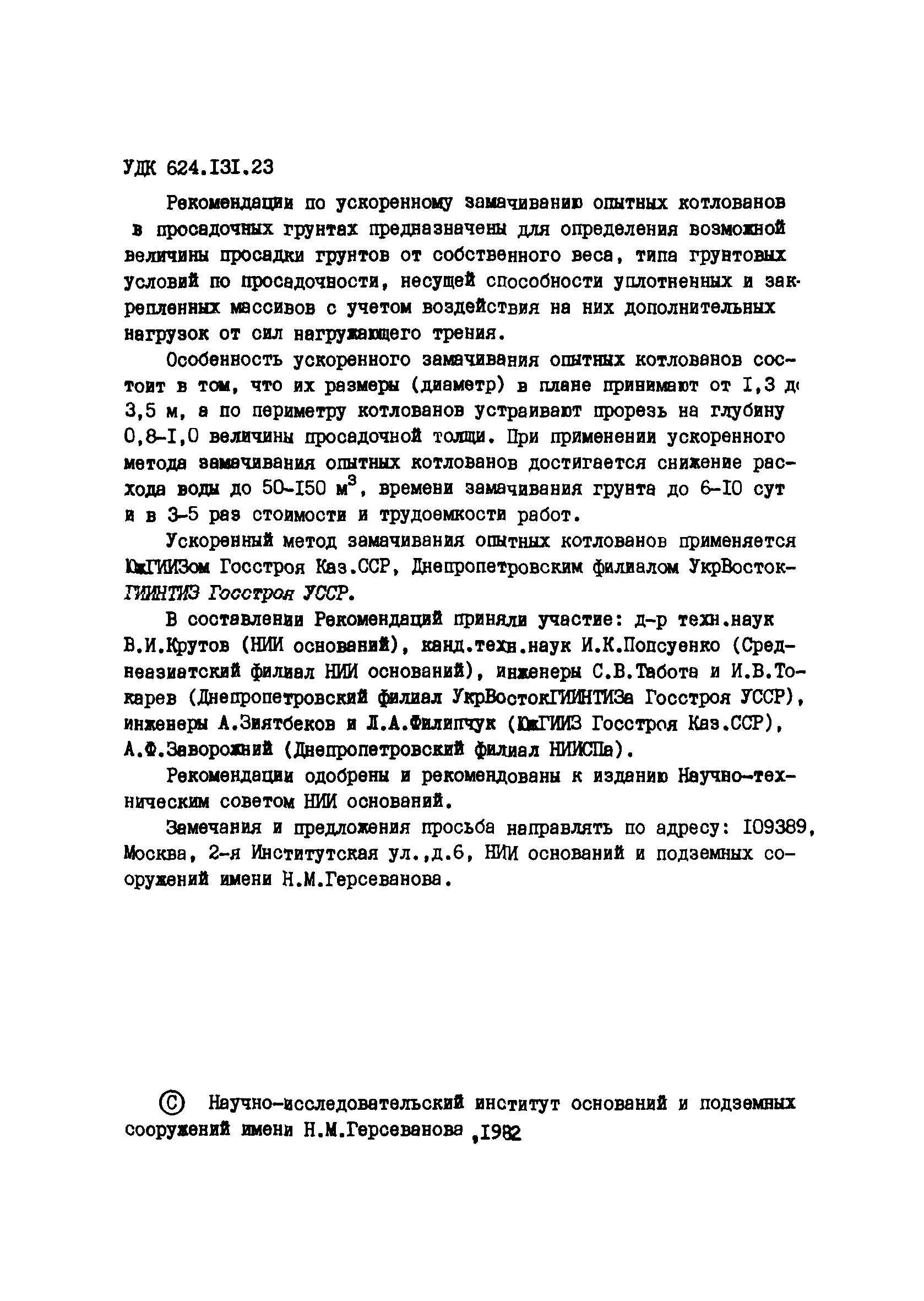 | Утверждён: | Научно-исследовательский институт оснований и подземных сооружений Госстроя СССР