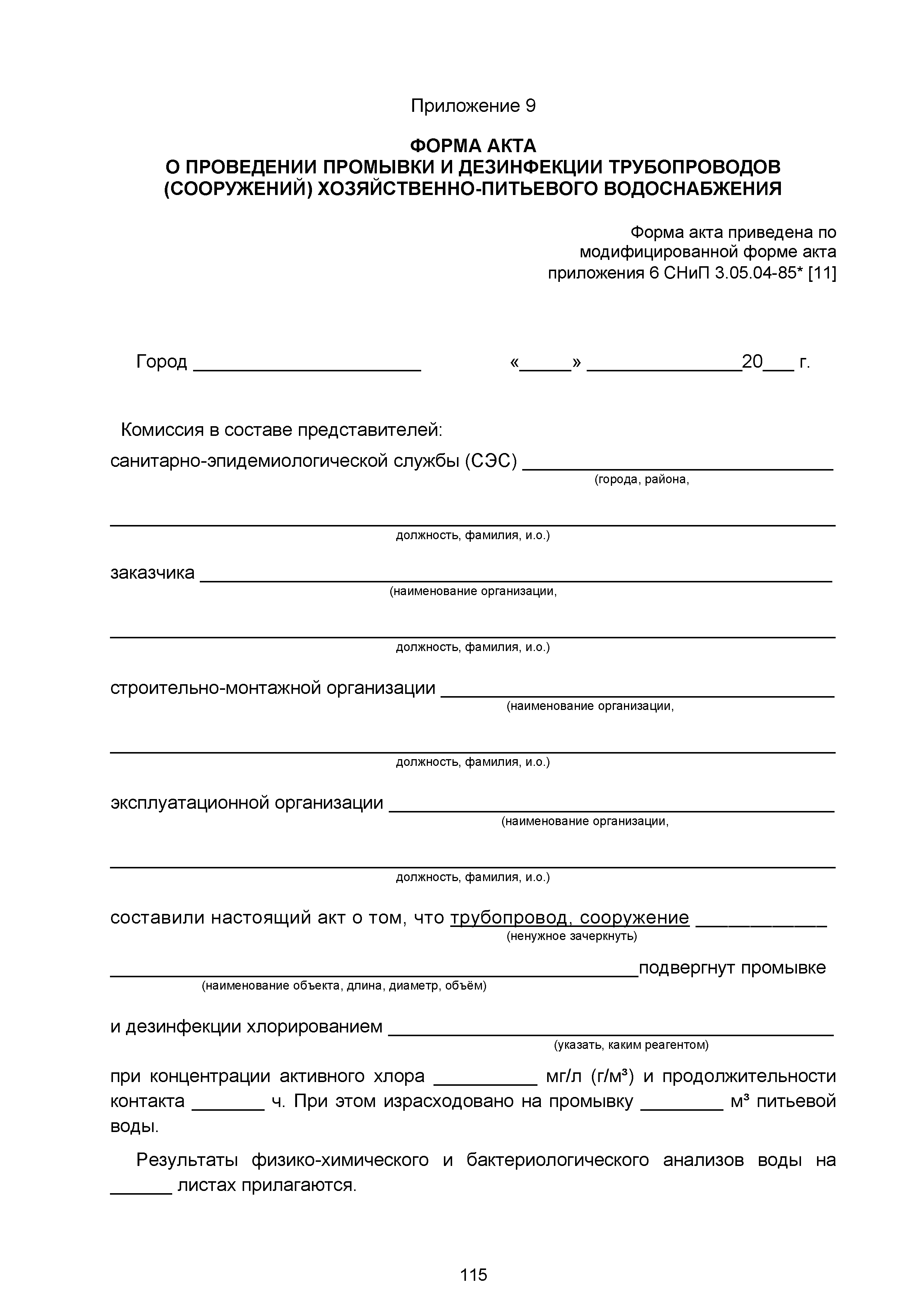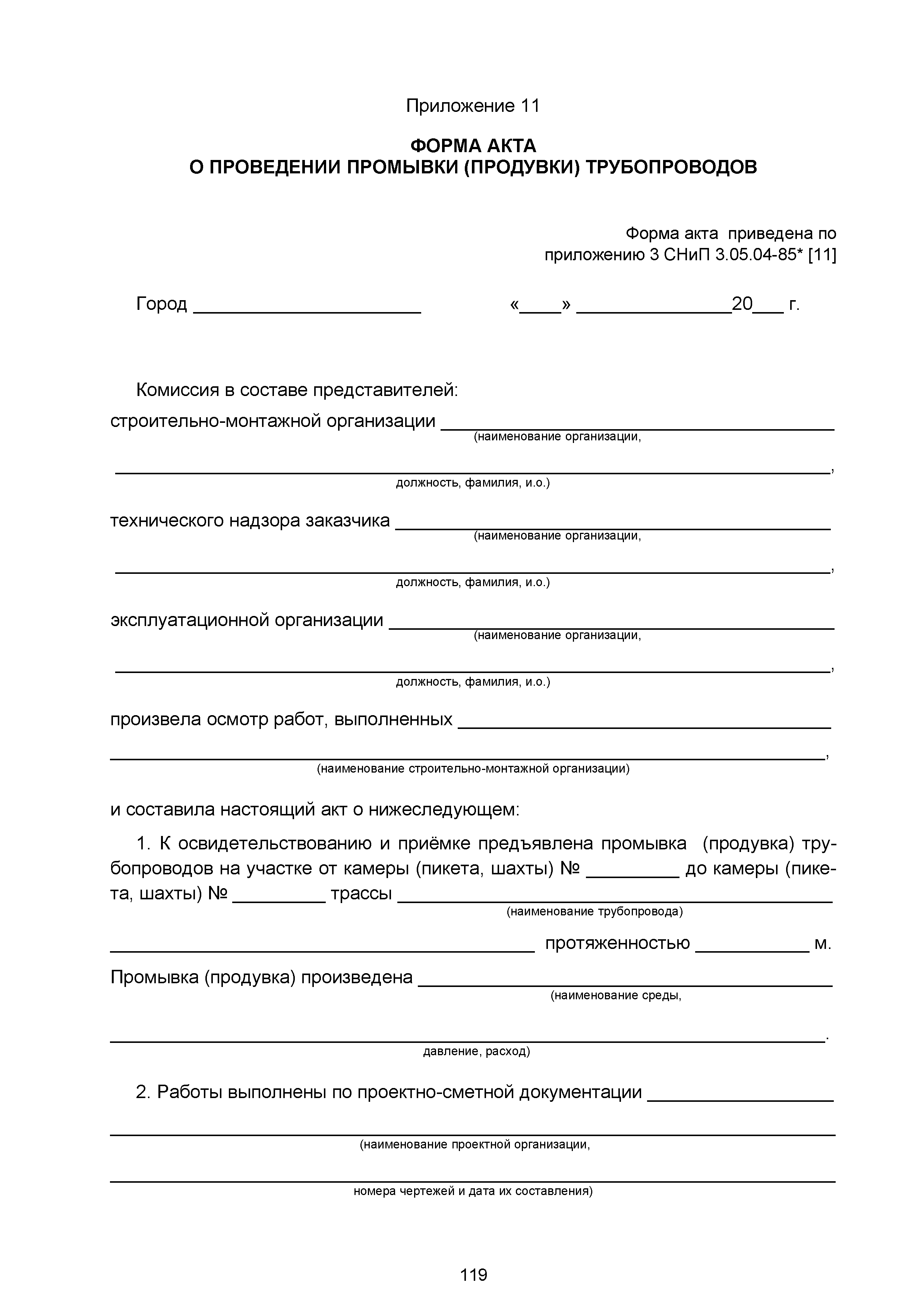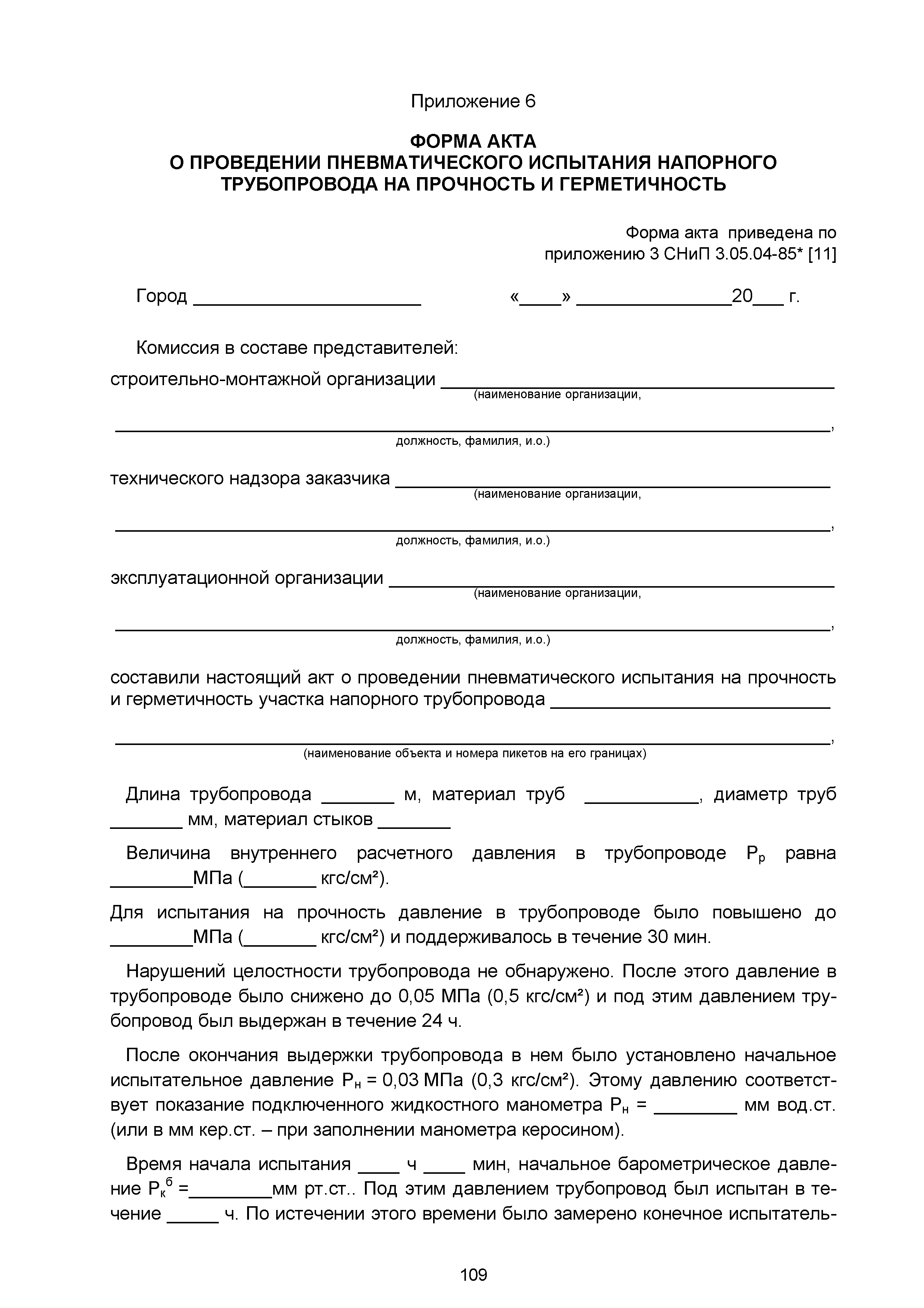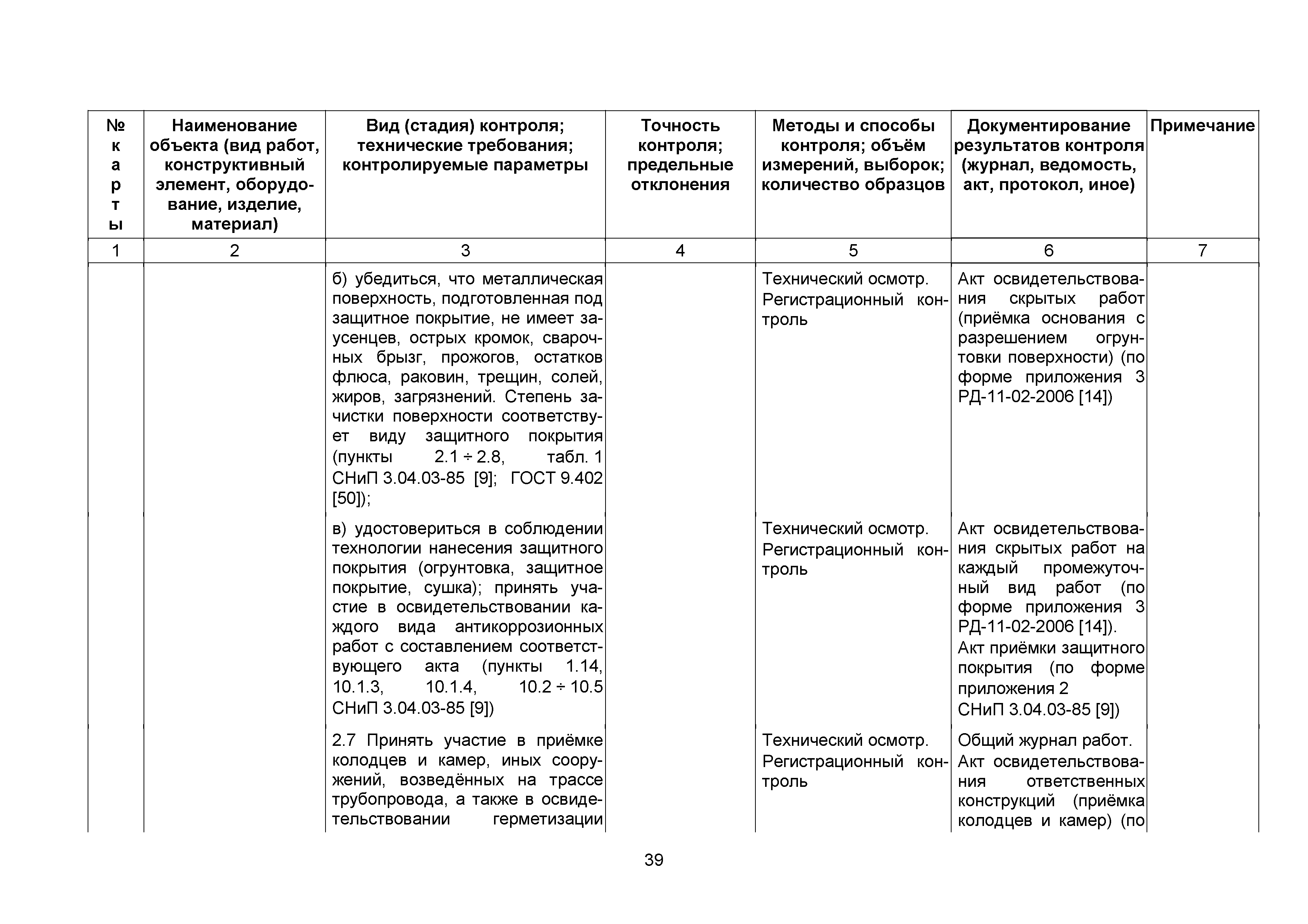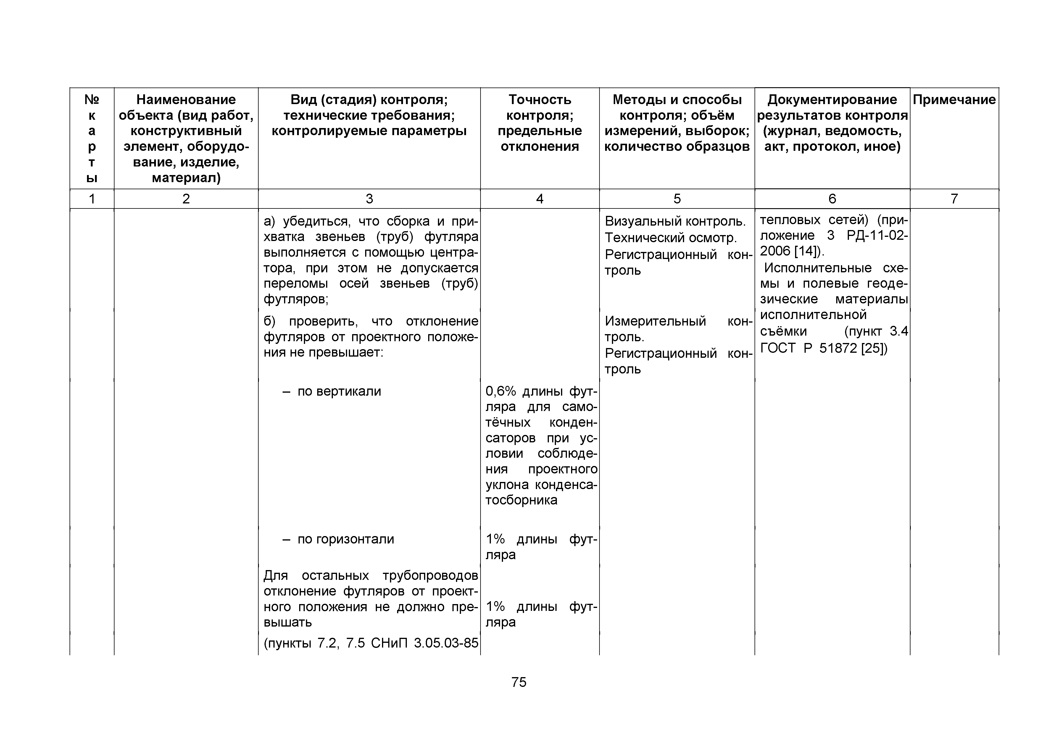 | | Нормативные ссылки: |   СНиП 3.01.03-84 «Геодезические работы в строительстве»  СНиП 3.04.03-85 «Защита строительных конструкций и сооружений от коррозии»  СНиП 2.06.14-85 «Защита горных выработок от подземных и поверхностных вод»  СНиП 2.04.02-84* «Водоснабжение. Наружные сети и сооружения»  СНиП 3.05.04-85* «Наружные сети и сооружения водоснабжения и канализации»  СНиП 3.05.03-85 «Тепловые сети»  СНиП 3.02.01-87 «Земляные сооружения, основания и фундаменты»  СНиП 3.03.01-87 «Несущие и ограждающие конструкции»  ГОСТ 23616-79 «Система обеспечения точности геометрических параметров в строительстве. Контроль точности»  ГОСТ 286-82 «Трубы керамические канализационные. Технические условия»  ГОСТ 539-80 «Трубы и муфты асбестоцементные напорные. Технические условия»  ГОСТ 1839-80 «Трубы и муфты асбестоцементные для безнапорных трубопроводов. Технические условия»  ГОСТ 30301-95 «Изделия асбестоцементные. Правила приемки»  ГОСТ 3262-75 «Трубы стальные водогазопроводные. Технические условия»  ГОСТ 3845-75 «Трубы металлические. Метод испытания гидравлическим давлением»  ГОСТ 6996-66 «Сварные соединения. Методы определения механических свойств»  ГОСТ 7512-82 «Контроль неразрушающий. Соединения сварные. Радиографический метод»  ГОСТ 9466-75 «Электроды покрытые металлические для ручной дуговой сварки сталей и наплавки. Классификация и общие технические условия»  ГОСТ 9583-75 «Трубы чугунные напорные, изготовленные методами центробежного и полунепрерывного литья. Технические условия»  ГОСТ 10692-80 «Трубы стальные, чугунные и соединительные части к ним. Приемка, маркировка, упаковка, транспортирование и хранение»  ГОСТ 10705-80 «Трубы стальные электросварные. Технические условия»  ГОСТ 10706-76 «Трубы стальные электросварные прямошовные. Технические требования»  ГОСТ 14782-86 «Контроль неразрушающий. Соединения сварные. Методы ультразвуковые»  ГОСТ 16037-80 «Соединения сварные стальных трубопроводов. Основные типы, конструктивные элементы и размеры»  ГОСТ 20426-82 «Контроль неразрушающий. Методы дефектоскопии радиационные. Область применения»  ГОСТ 25225-82 «Контроль неразрушающий. Швы сварных соединений трубопроводов. Магнитографический метод»  ГОСТ Р 51232-98 «Вода питьевая. Общие требования к организации и методам контроля качества»  ГОСТ 23118-99 «Конструкции стальные строительные. Общие технические условия»  ПБ 03-273-99 «Правила аттестации сварщиков и специалистов сварочного производства»  ГОСТ 8733-74 «Трубы стальные бесшовные холоднодеформированные и теплодеформированные. Технические требования»  ГОСТ 12816-80 «Фланцы арматуры, соединительных частей и трубопроводов на Ру от 0,1 до 20,0 МПа (от 1 до 200 кгс/см2). Общие технические требования»  ГОСТ 23055-78 «Контроль неразрушающий. Сварка металлов плавлением. Классификация сварных соединений по результатам радиографического контроля»  ГОСТ 8731-74 «Трубы стальные бесшовные горячедеформированные. Технические требования»  СанПиН 2.1.4.1074-01 «Питьевая вода. Гигиенические требования к качеству воды централизованных систем питьевого водоснабжения. Контроль качества. Гигиенические требования к обеспечению безопасности систем горячего водоснабжения»  ГОСТ Р 51872-2002 «Документация исполнительная геодезическая. Правила выполнения»  ПБ 10-573-03 «Правила устройства и безопасной эксплуатации трубопроводов пара и горячей воды»  РД 03-495-02 «Технологический регламент проведения аттестации с