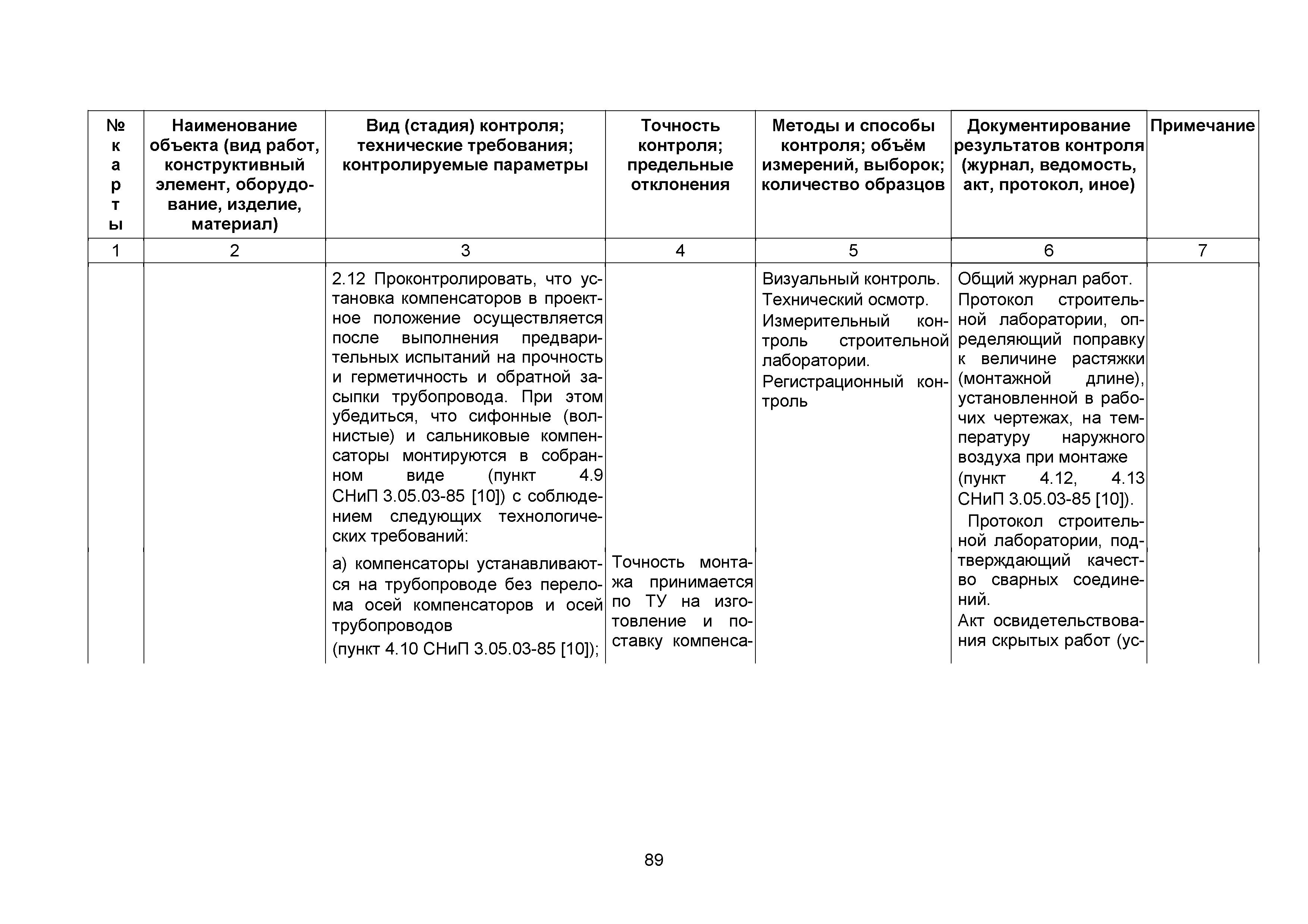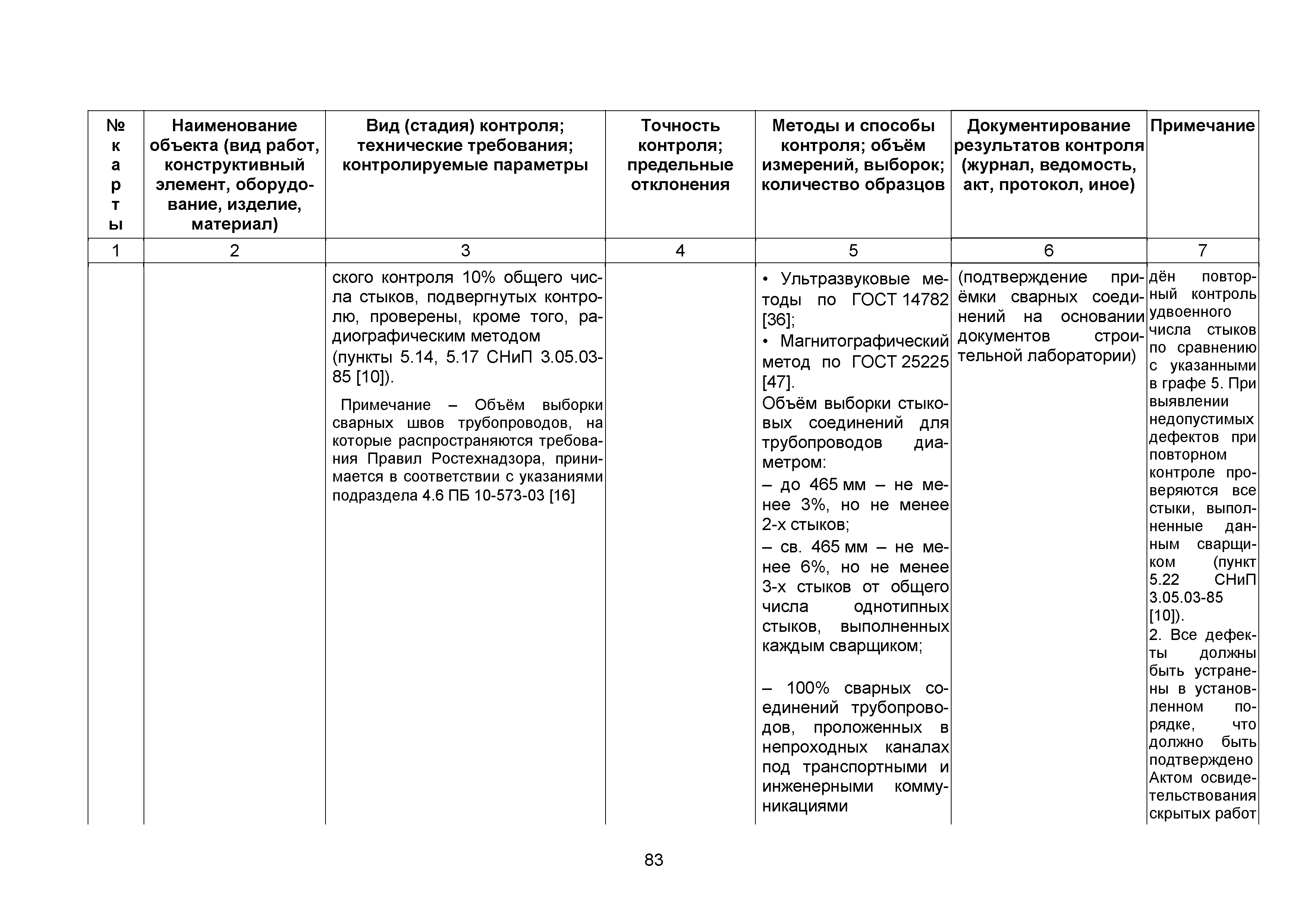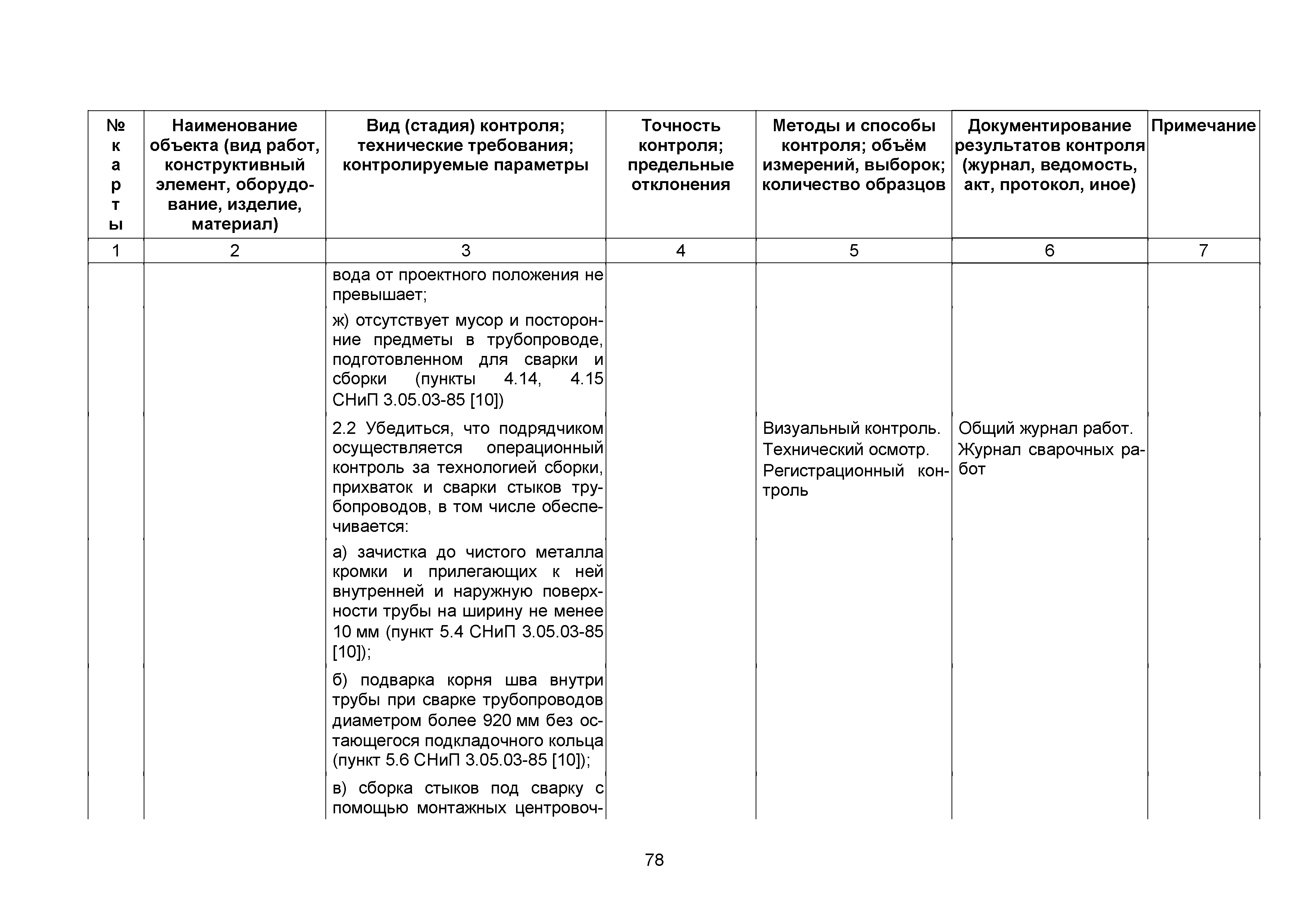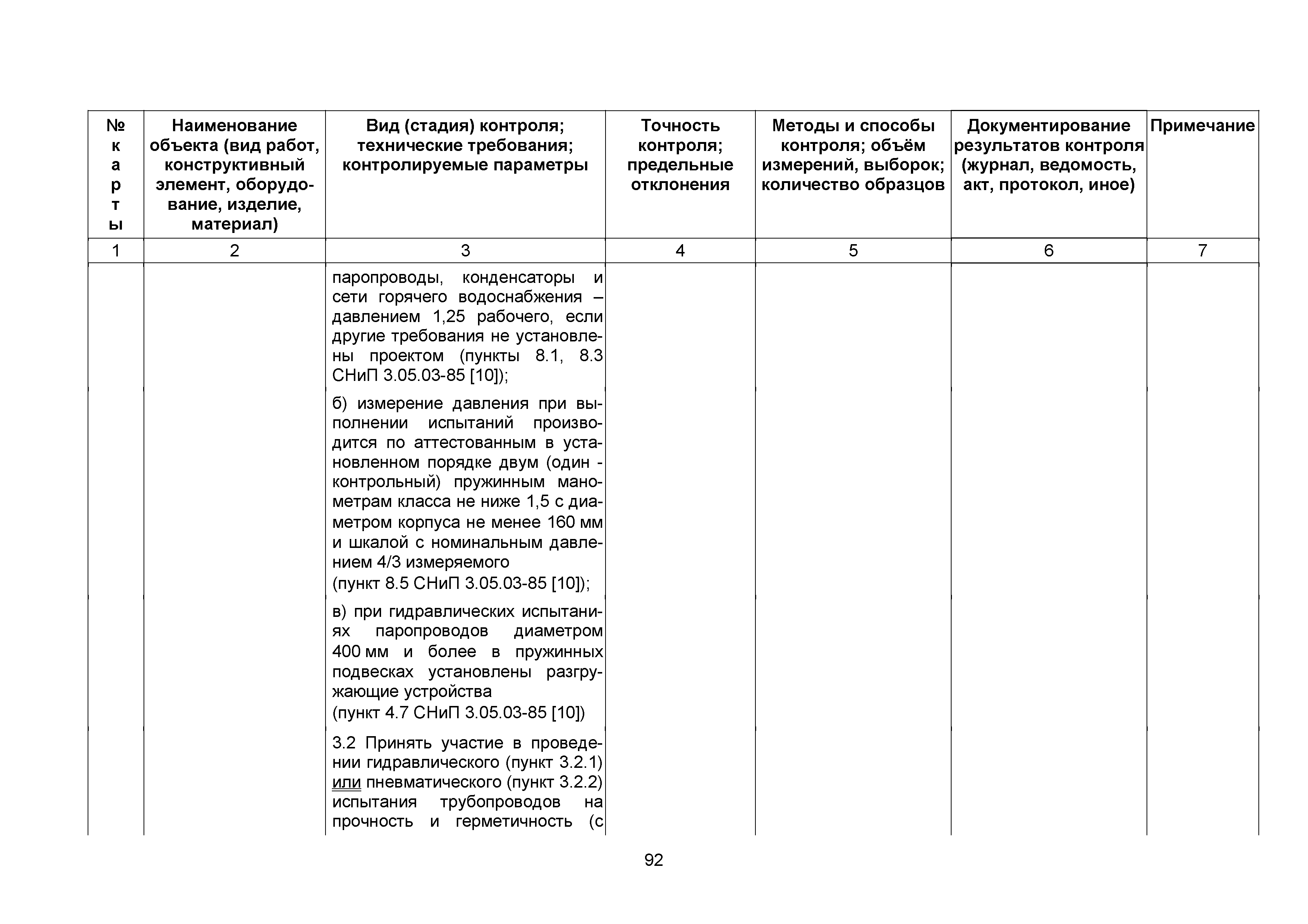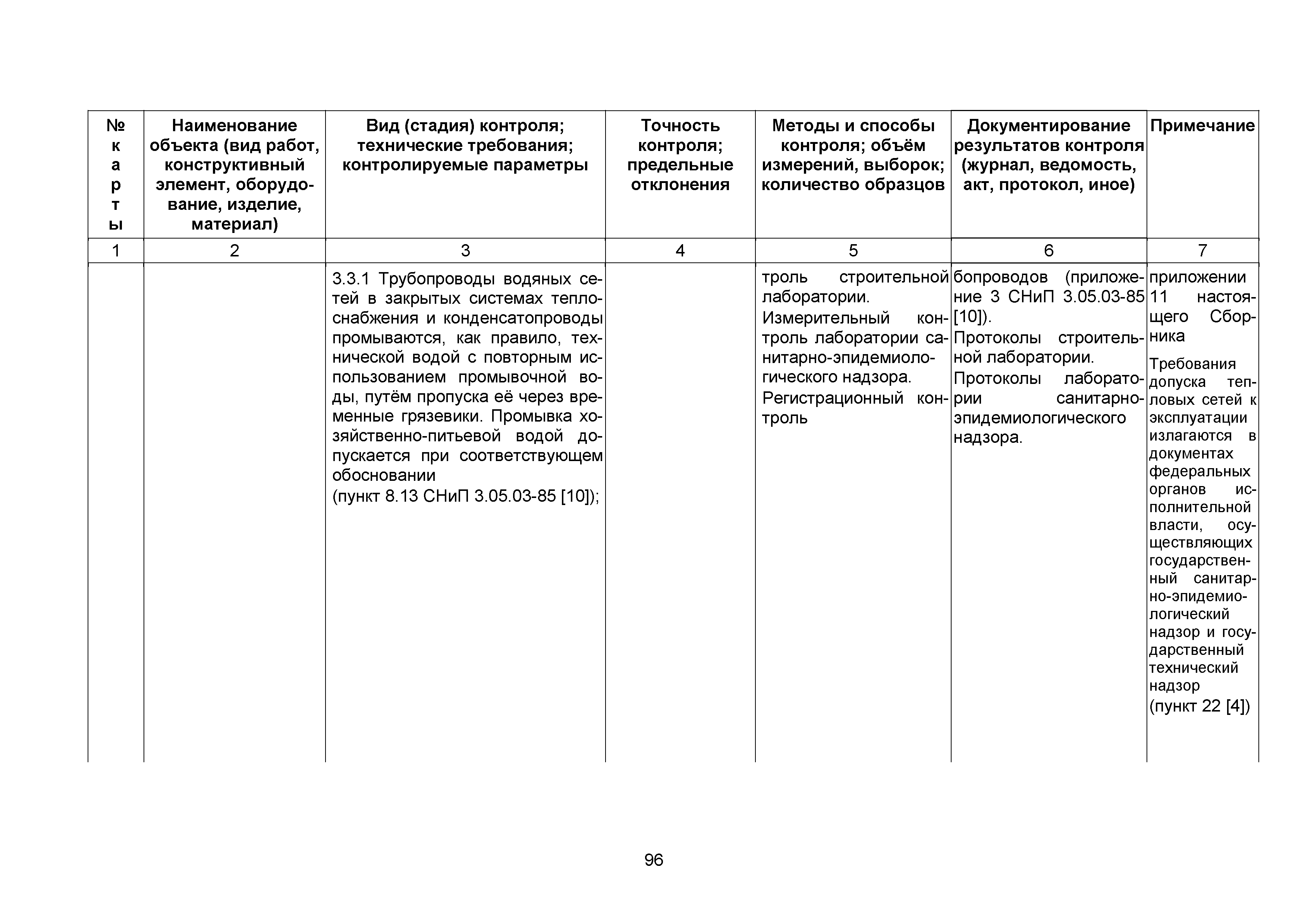 Сборник 10. Технологические карты на осуществление контроля качества работ при устройстве сетей инженерно-технического обеспечения (к Практическому пособию по организации и осуществлению строительного контроля заказчика (технического надзора) за строительством объектов капитального строительства)| Статус: | справочные материалы, мп, тпр | | Название рус.: | Сборник 10. Технологические карты на осуществление контроля качества работ при устройстве сетей инженерно-технического обеспечения (к Практическому пособию по организации и осуществлению строительного контроля заказчика (технического надзора) за строительством объектов капитального строительства) | | Дата добавления в базу: | 01.09.2013 | | Дата актуализации: | 01.01.2021 | | Область применения: | Сборник предназначен для специалистов служб заказчика (застройщика), осуществляющих технический надзор за строительством объектов капитального строительства, и может быть полезен для иных субъектов инвестиционной деятельности (проектировщиков, строительных подрядчиков), принимающих участие в разработке и реализации инвестиционных проектов. | | Оглавление: | 1. Область применения 2. Нормативные ссылки 3. Термины и определения 4. Общие положения 5. Требование к производству сварочных работ и качеству сварных соединений 6. Испытание трубопроводов на прочность и герметичность Приложение 1. Нормативные требования к содержанию документа о качестве стальных труб, гнутых отводов и соединительных частей, поставляемых отдельно от труб Приложение 2. Нормативные требования к содержанию документа о качестве чугунных труб Приложение 3. Технологические карты на осуществление контроля качества работ при устройстве наружных сетей инженерно-технического обеспечения Приложение 4. Виды сварных соединений, швов, а также характерные виды дефектов, выявляемых при визуальном и измерительном контроле Приложение 5. Форма Акта о проведении приемочного гидравлического испытания напорного трубопровода на прочность и герметичность Приложение 6. Форма Акта о проведении пневматического испытания напорного трубопровода на прочность и герметичность Приложение 7. Порядок проведения гидравлического испытания напорного трубопровода на прочность и герметичность Приложение 8. Форма Акта о проведении приемочного гидравлического испытания безнапорного трубопровода на герметичность Приложение 9. Форма Акта о проведении промывки и дезинфекции трубопроводов (сооружений) хозяйственно-питьевого водоснабжения Приложение 10. Форма Акта о проведении испытаний трубопроводов на прочность и герметичность Приложение 11. Форма Акта о проведении промывки (продувки) трубопроводов Приложение 12. Нормативные требования к геометрическим размерам и к качеству поверхности стальных труб Приложение 13. Форма Акта о проведении растяжки компенсаторов Приложение 14. Нормативные требования к показателям внешнего вида поверхности керамических труб Приложение 15. Нормативные требования к глубине заделки стыковых соединений чугунных напорных и керамических труб Библиография | | Разработан: | ОАО Центринвестпроект