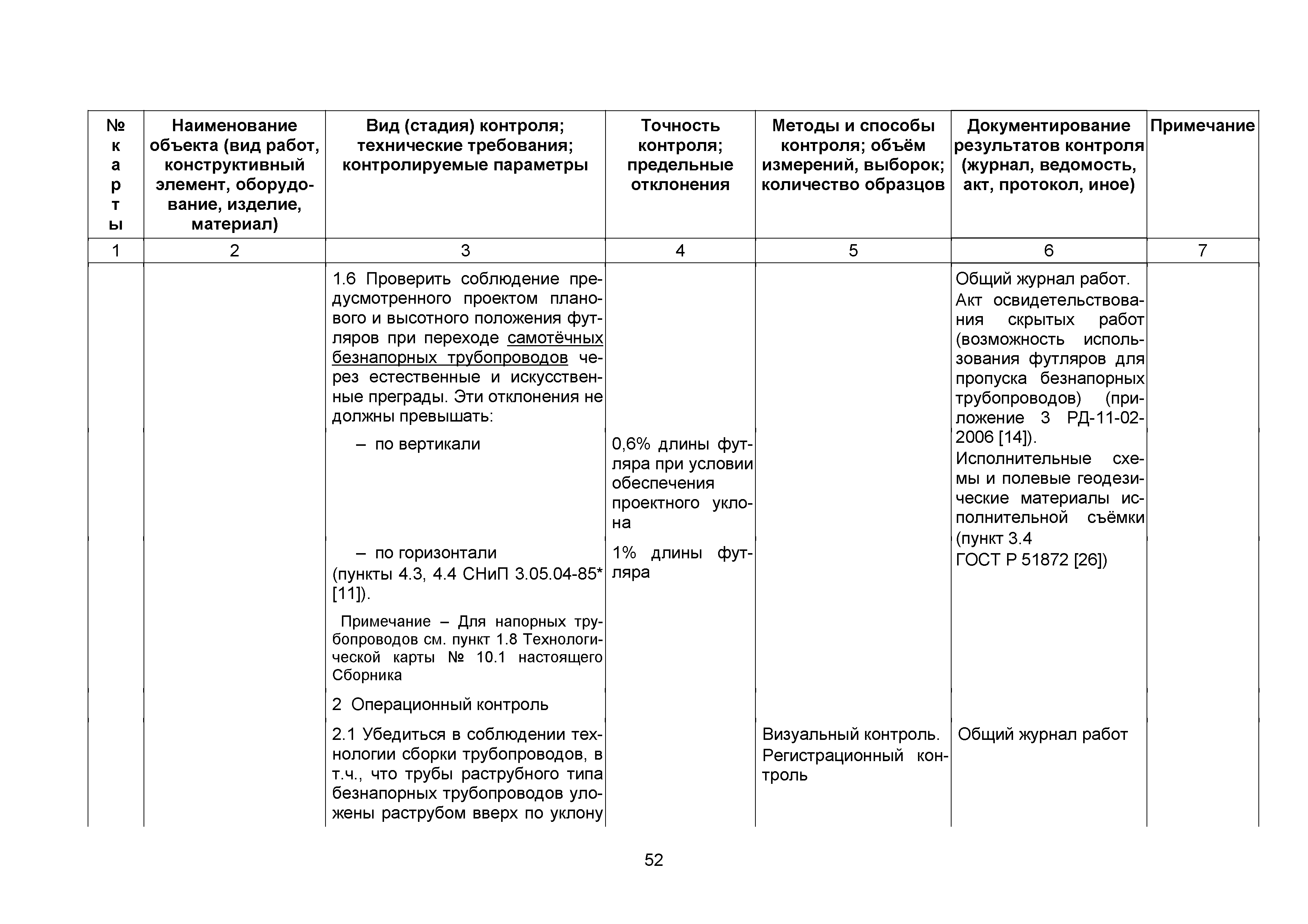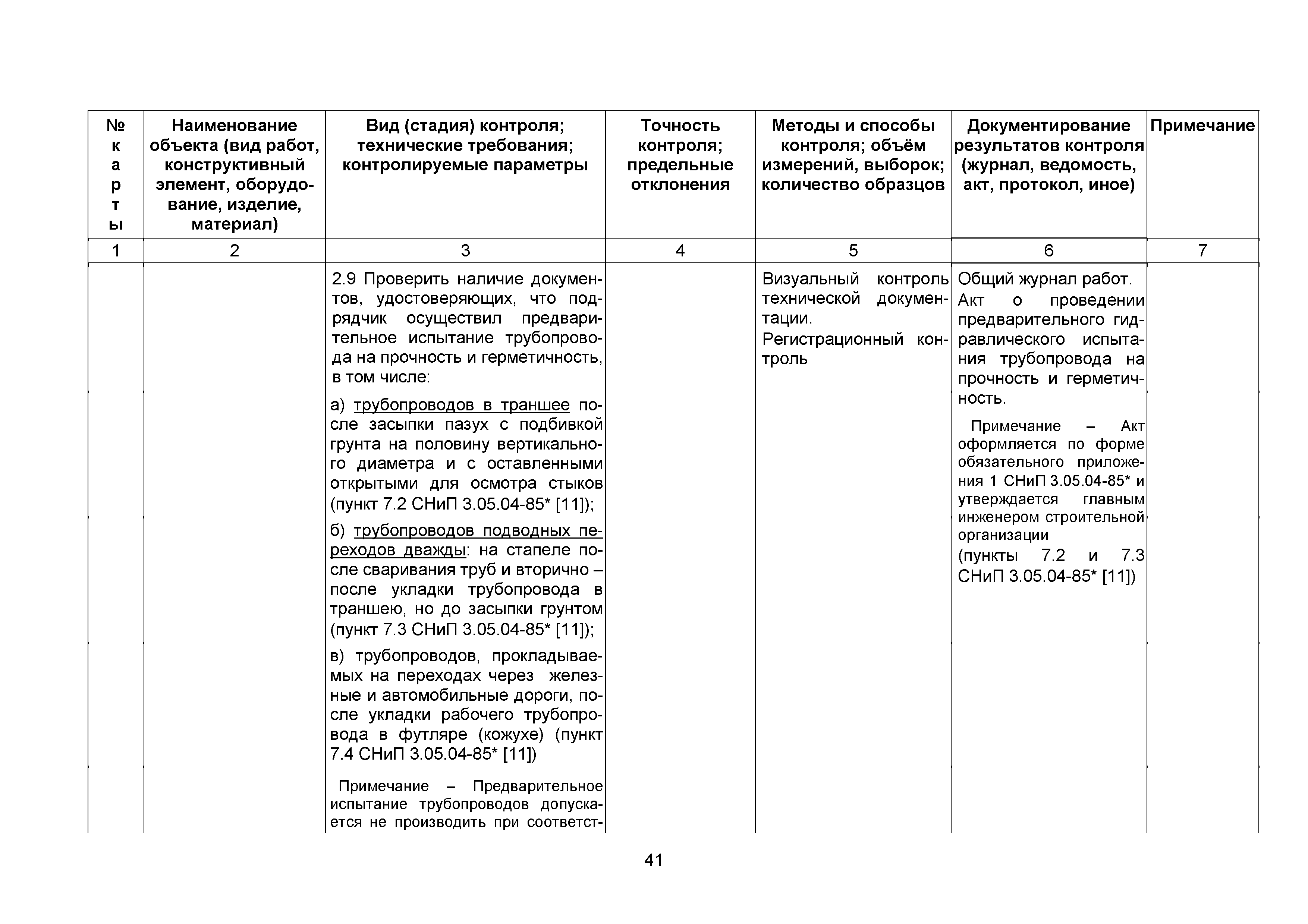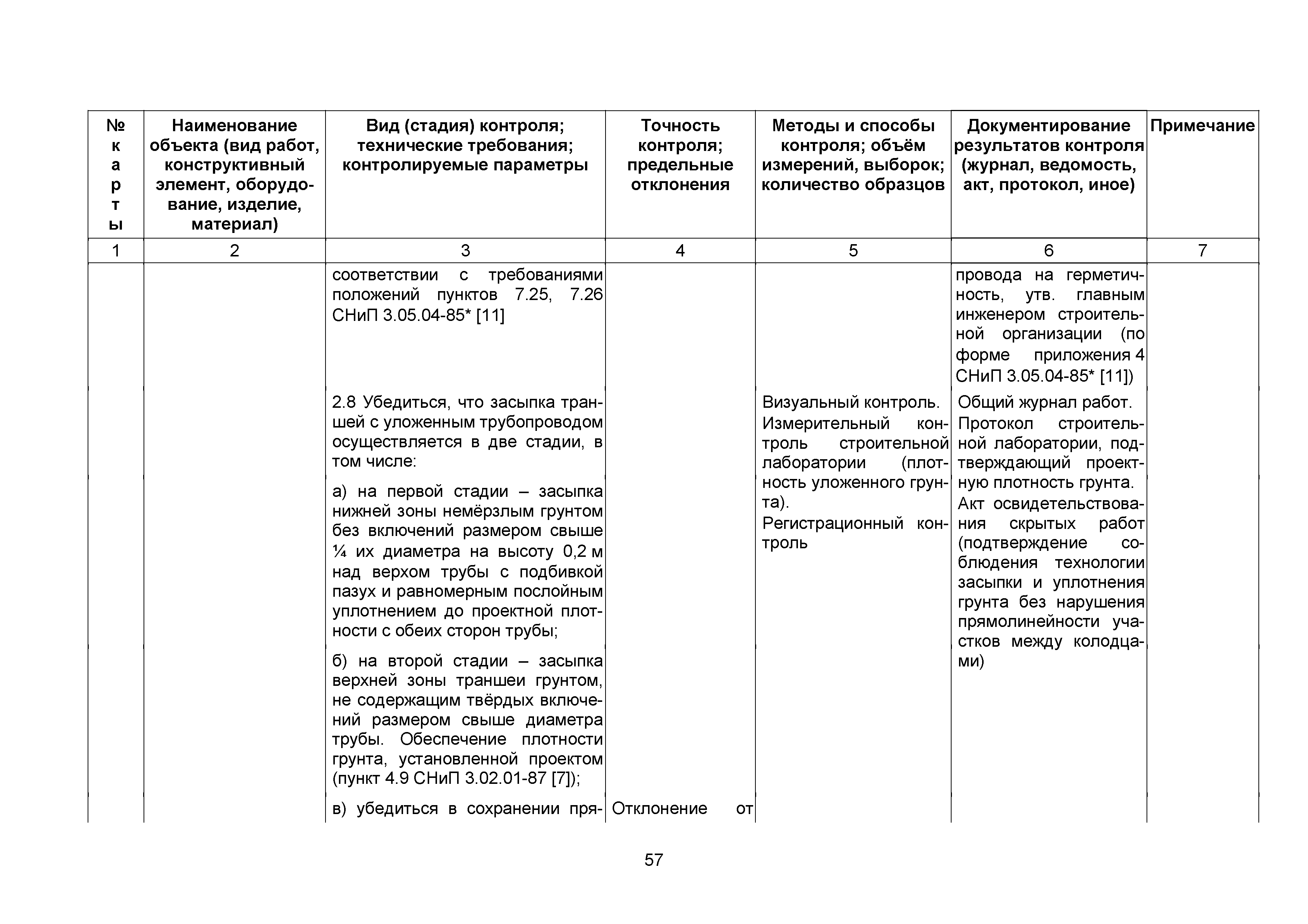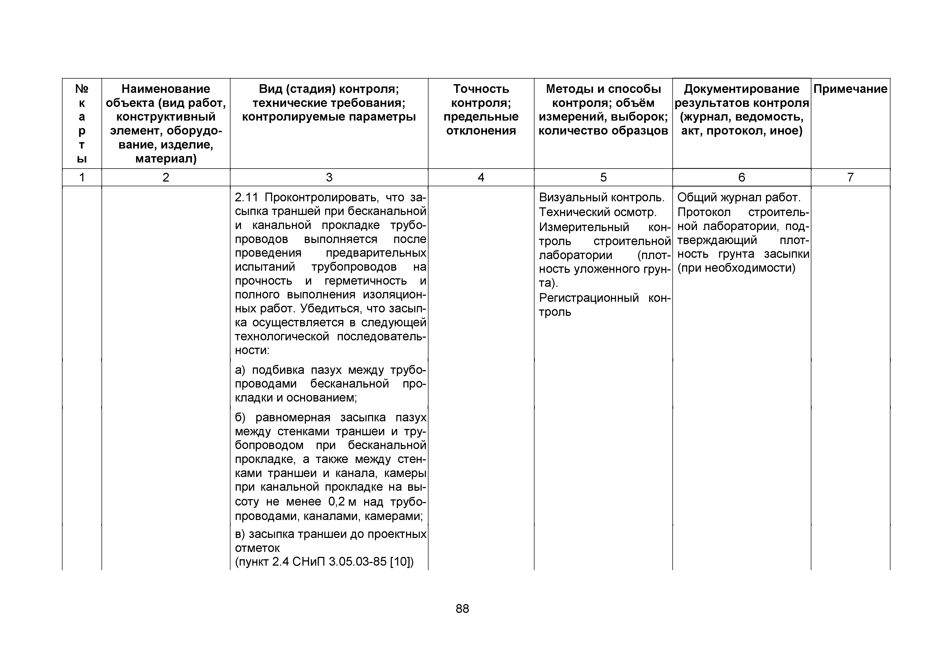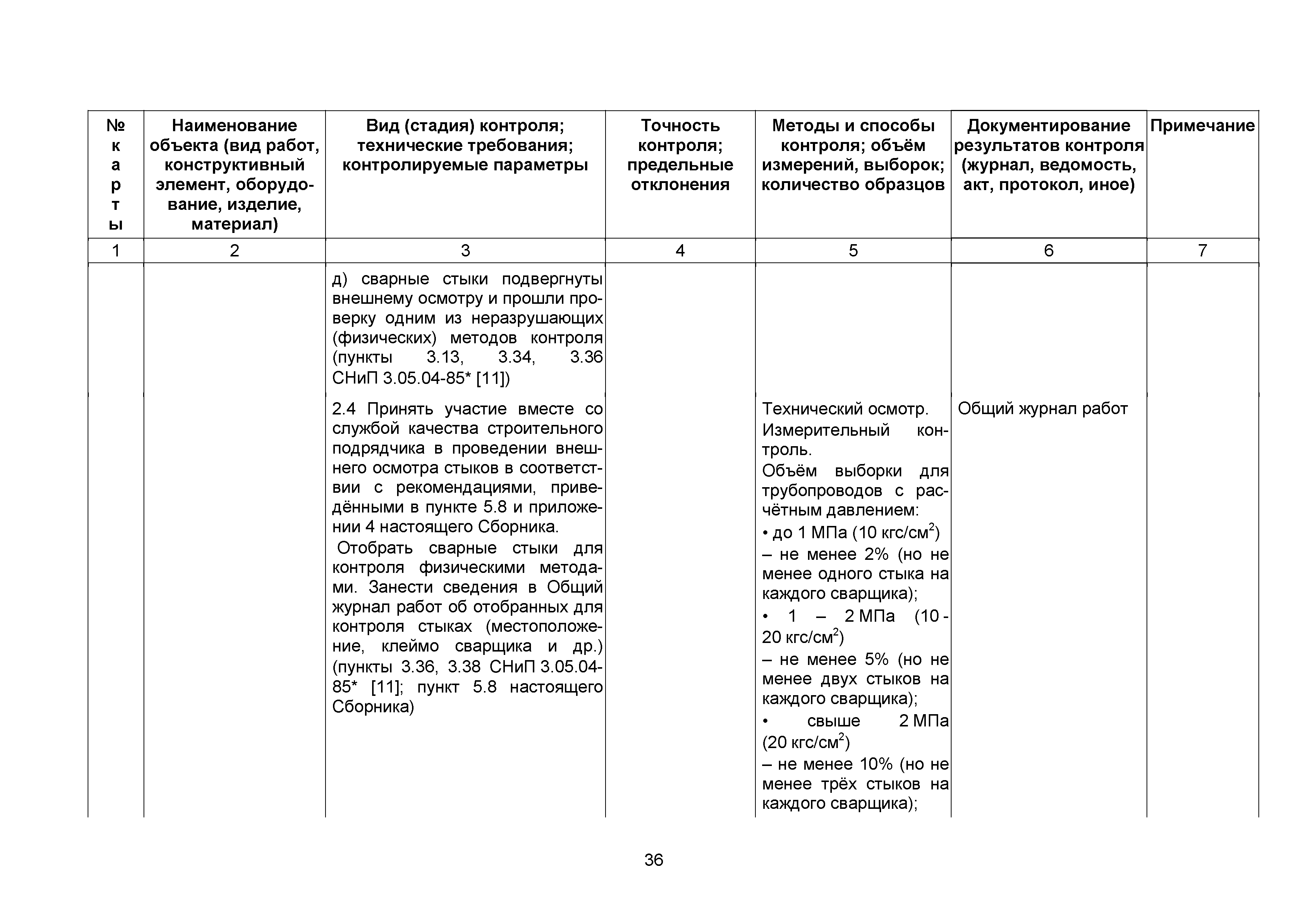 Сборник 10. Технологические карты на осуществление контроля качества работ при устройстве сетей инженерно-технического обеспечения (к Практическому пособию по организации и осуществлению строительного контроля заказчика (технического надзора) за строительством объектов капитального строительства)| Статус: | справочные материалы, мп, тпр | | Название рус.: | Сборник 10. Технологические карты на осуществление контроля качества работ при устройстве сетей инженерно-технического обеспечения (к Практическому пособию по организации и осуществлению строительного контроля заказчика (технического надзора) за строительством объектов капитального строительства) | | Дата добавления в базу: | 01.09.2013 | | Дата актуализации: | 01.01.2021 | | Область применения: | Сборник предназначен для специалистов служб заказчика (застройщика), осуществляющих технический надзор за строительством объектов капитального строительства, и может быть полезен для иных субъектов инвестиционной деятельности (проектировщиков, строительных подрядчиков), принимающих участие в разработке и реализации инвестиционных проектов. | | Оглавление: | 1. Область применения 2. Нормативные ссылки 3. Термины и определения 4. Общие положения 5. Требование к производству сварочных работ и качеству сварных соединений 6. Испытание трубопроводов на прочность и герметичность Приложение 1. Нормативные требования к содержанию документа о качестве стальных труб, гнутых отводов и соединительных частей, поставляемых отдельно от труб Приложение 2. Нормативные требования к содержанию документа о качестве чугунных труб Приложение 3. Технологические карты на осуществление контроля качества работ при устройстве наружных сетей инженерно-технического обеспечения Приложение 4. Виды сварных соединений, швов, а также характерные виды дефектов, выявляемых при визуальном и измерительном контроле Приложение 5. Форма Акта о проведении приемочного гидравлического испытания напорного трубопровода на прочность и герметичность Приложение 6. Форма Акта о проведении пневматического испытания напорного трубопровода на прочность и герметичность Приложение 7. Порядок проведения гидравлического испытания напорного трубопровода на прочность и герметичность Приложение 8. Форма Акта о проведении приемочного гидравлического испытания безнапорного трубопровода на герметичность Приложение 9. Форма Акта о проведении промывки и дезинфекции трубопроводов (сооружений) хозяйственно-питьевого водоснабжения Приложение 10. Форма Акта о проведении испытаний трубопроводов на прочность и герметичность Приложение 11. Форма Акта о проведении промывки (продувки) трубопроводов Приложение 12. Нормативные требования к геометрическим размерам и к качеству поверхности стальных труб Приложение 13. Форма Акта о проведении растяжки компенсаторов Приложение 14. Нормативные требования к показателям внешнего вида поверхности керамических труб Приложение 15. Нормативные требования к глубине заделки стыковых соединений чугунных напорных и керамических труб Библиография | | Разработан: | ОАО Центринвестпроект